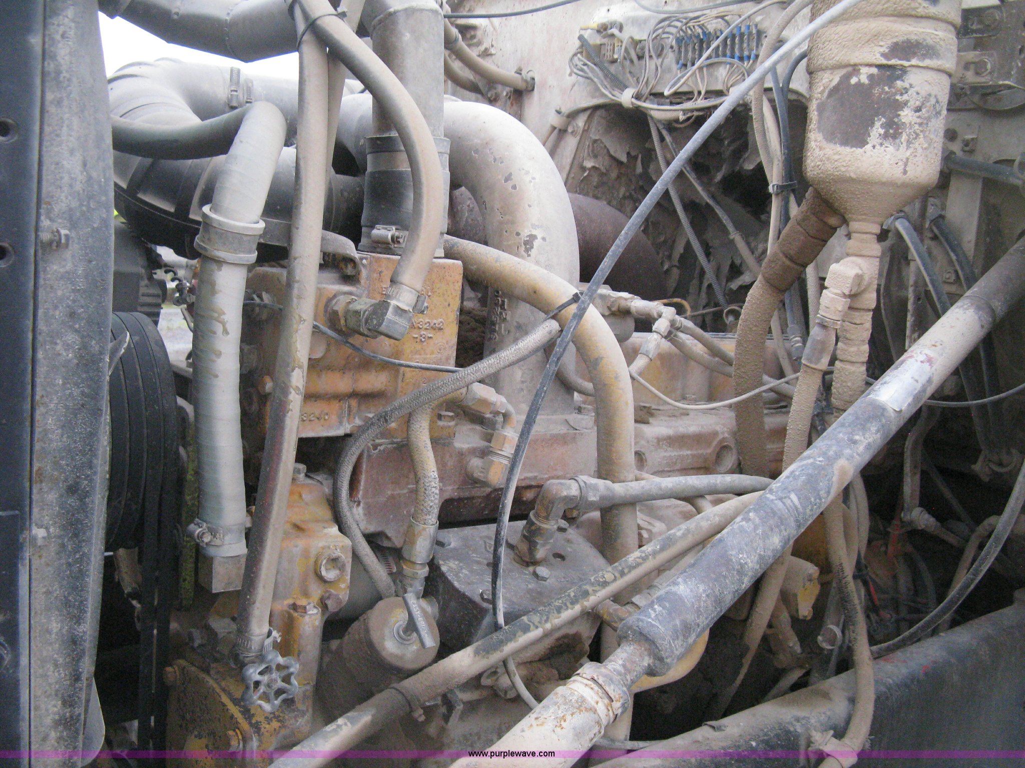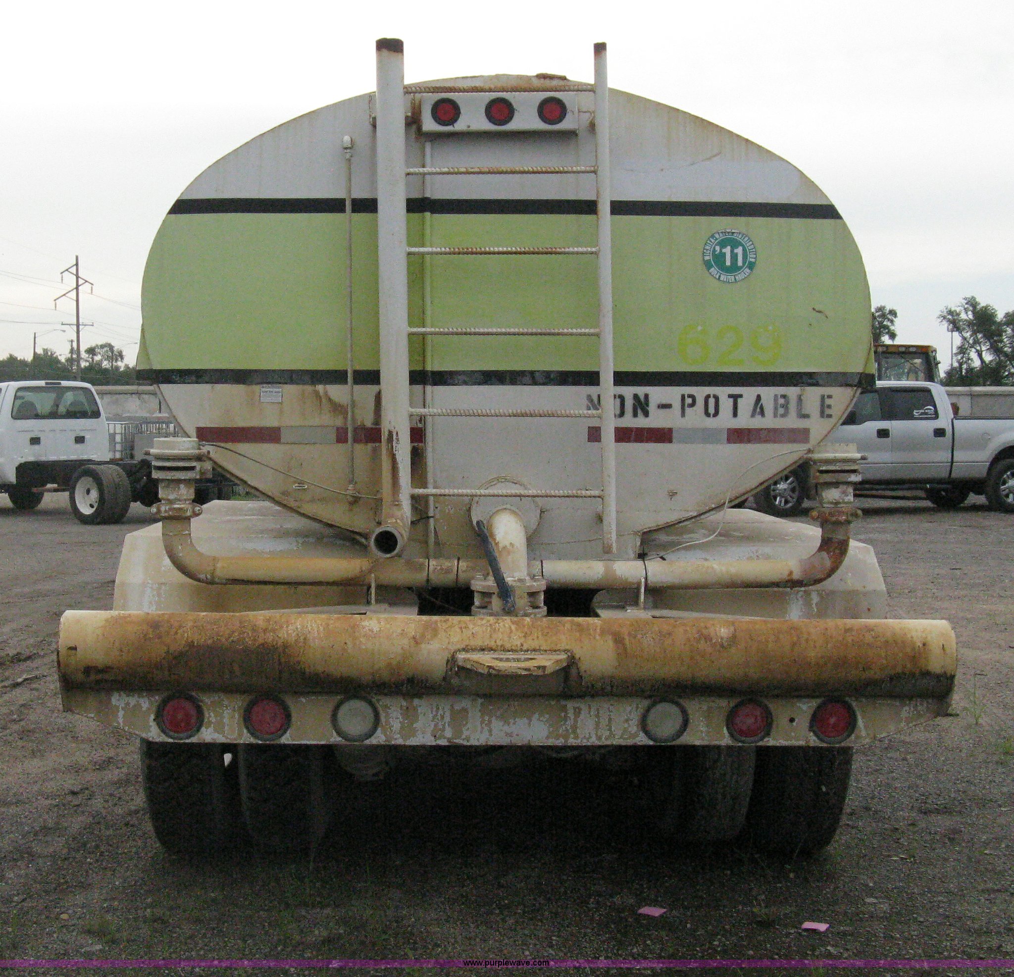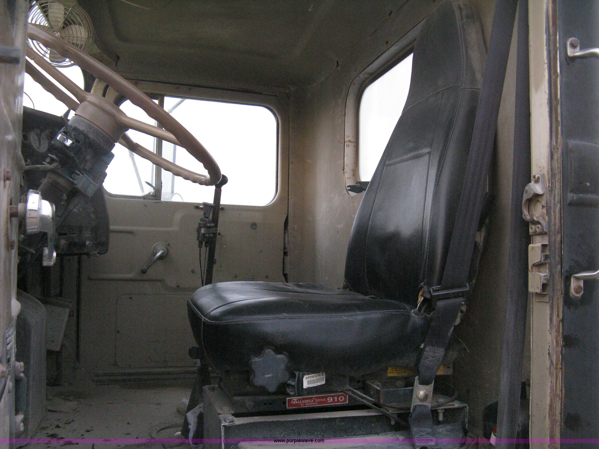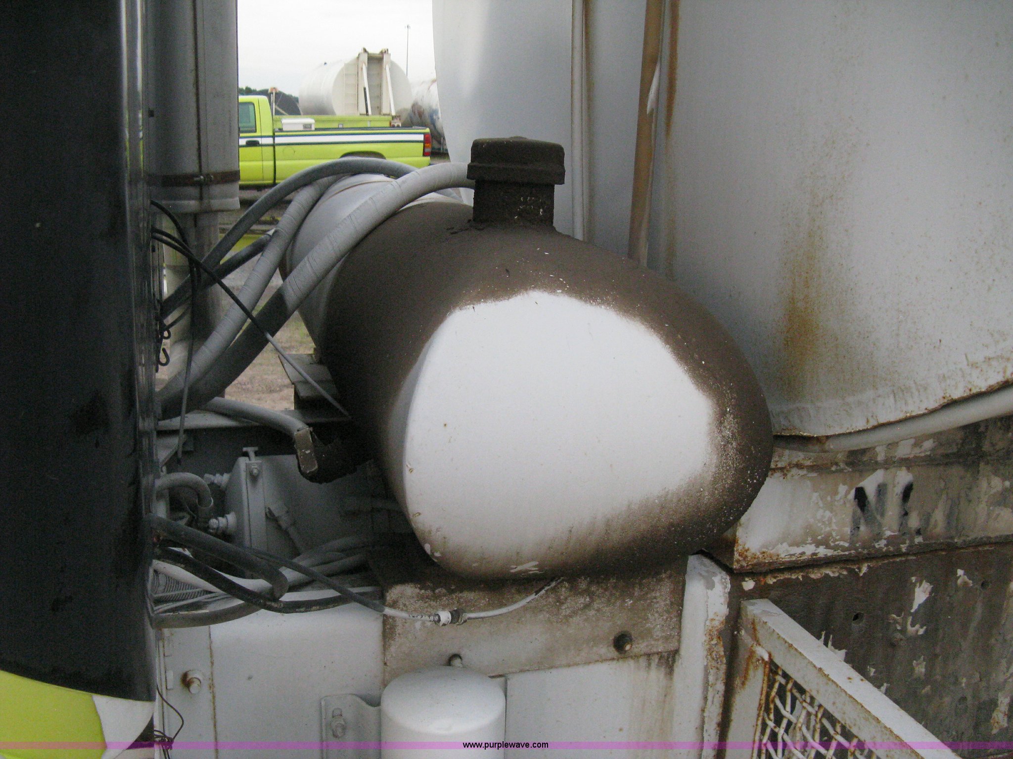 Purple Wave is selling a used Tank Truck or Water Truck in Kansas. This item is a 1977 White Western Star water tanker truck with the following: 432,997 miles on odometer, Not Actual Mileage, 2,233 hours on meter, 3306-PC7 diesel engine, Eaton Fuller RT0-958LL eight speed manual transmission, Deep reduction, Full screw, Heat, Air suspension seat, Single fuel tank, Single rear exhaust stack, PTO, Rear tow bumper, Air suspension, Air brakes, 236" wheelbase, 425/65R22.5 front tires, 295/75R22.5 rear tires, Interior/exterior cosmetic damage, Windshield cracked, Passenger side door handle missing, Driver's side window is rolled down, Will not raise, Brakes need work, Unit# 48.629