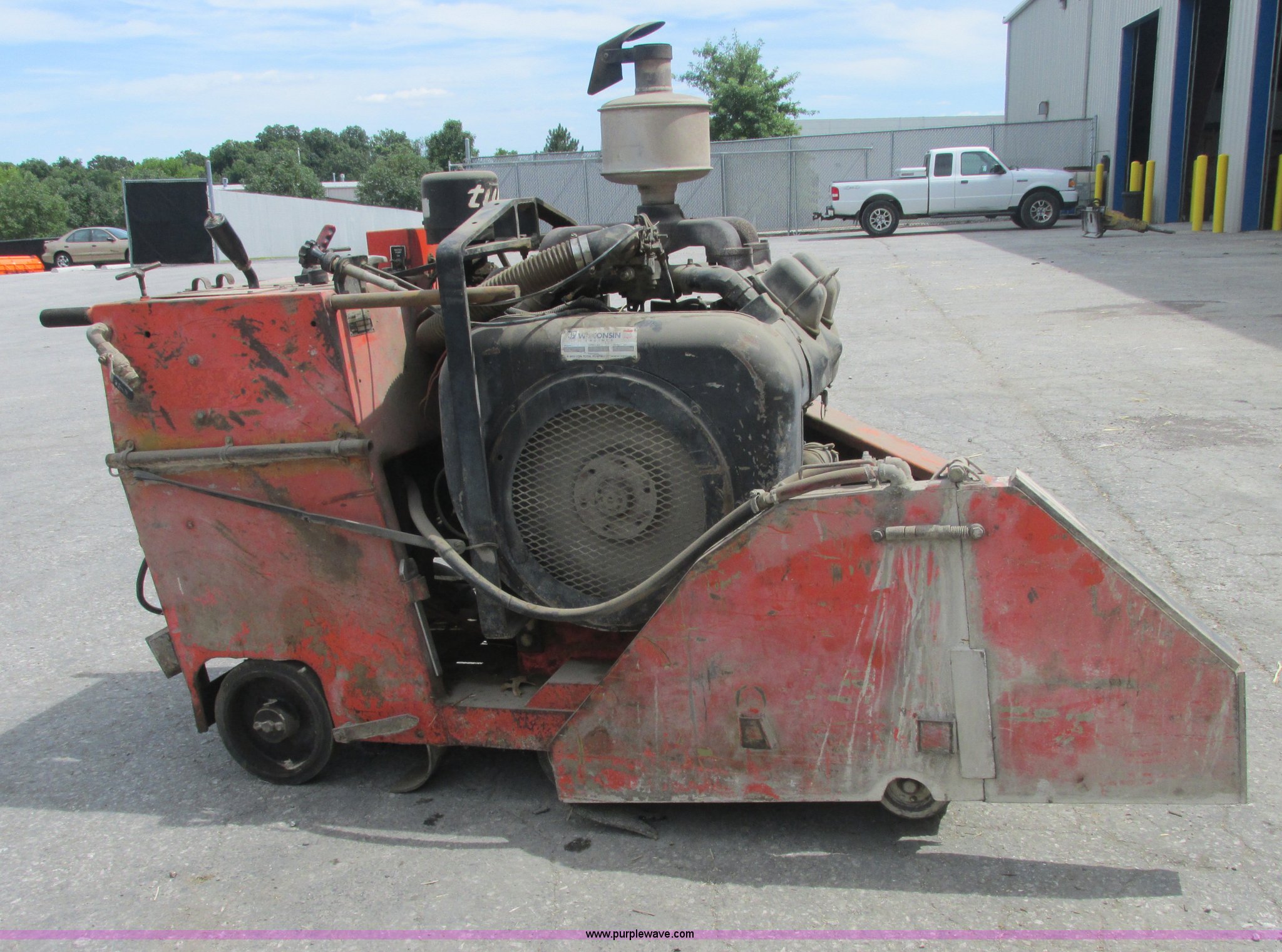 Purple Wave is selling a used Concrete Equip. or Acces. in Missouri. This item is a Norton C65B-KGV 36" concrete saw with the following: 1,088 hours on meter, Wisconsin four cylinder engine, Model BA-55-F-4V65D1, Serial 01010122, 36" blade capacity, Norton clipper, Electric start, Wet saw capable, Water pump, Hydraulic lift, Lifting eyes, Hard surface tires, Weak battery, Serial 0317970301