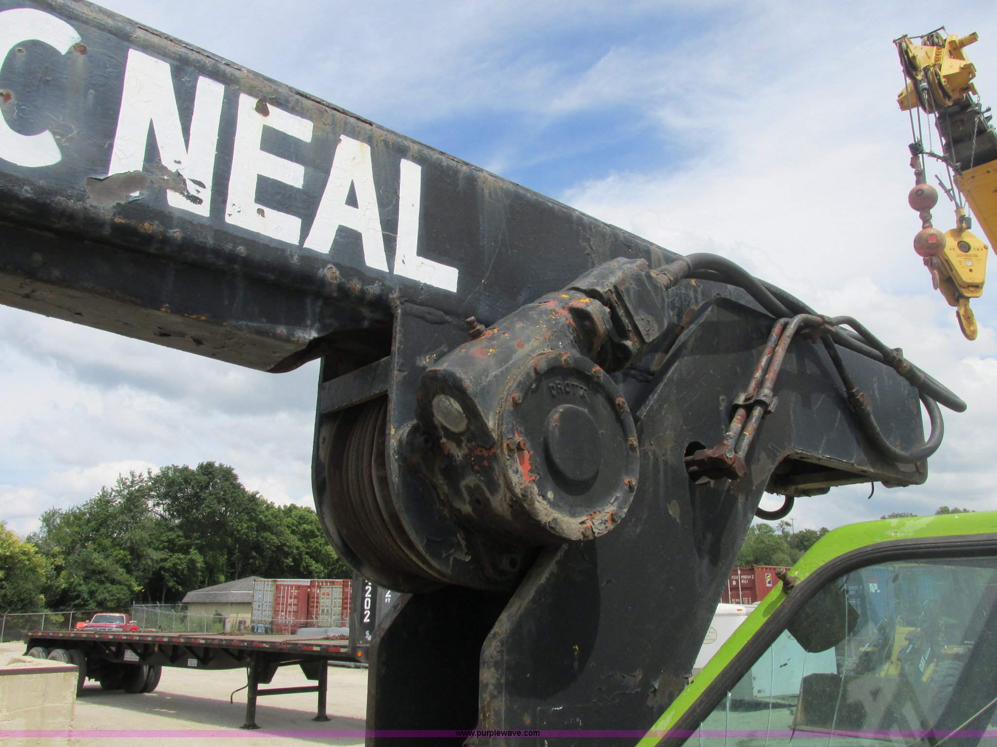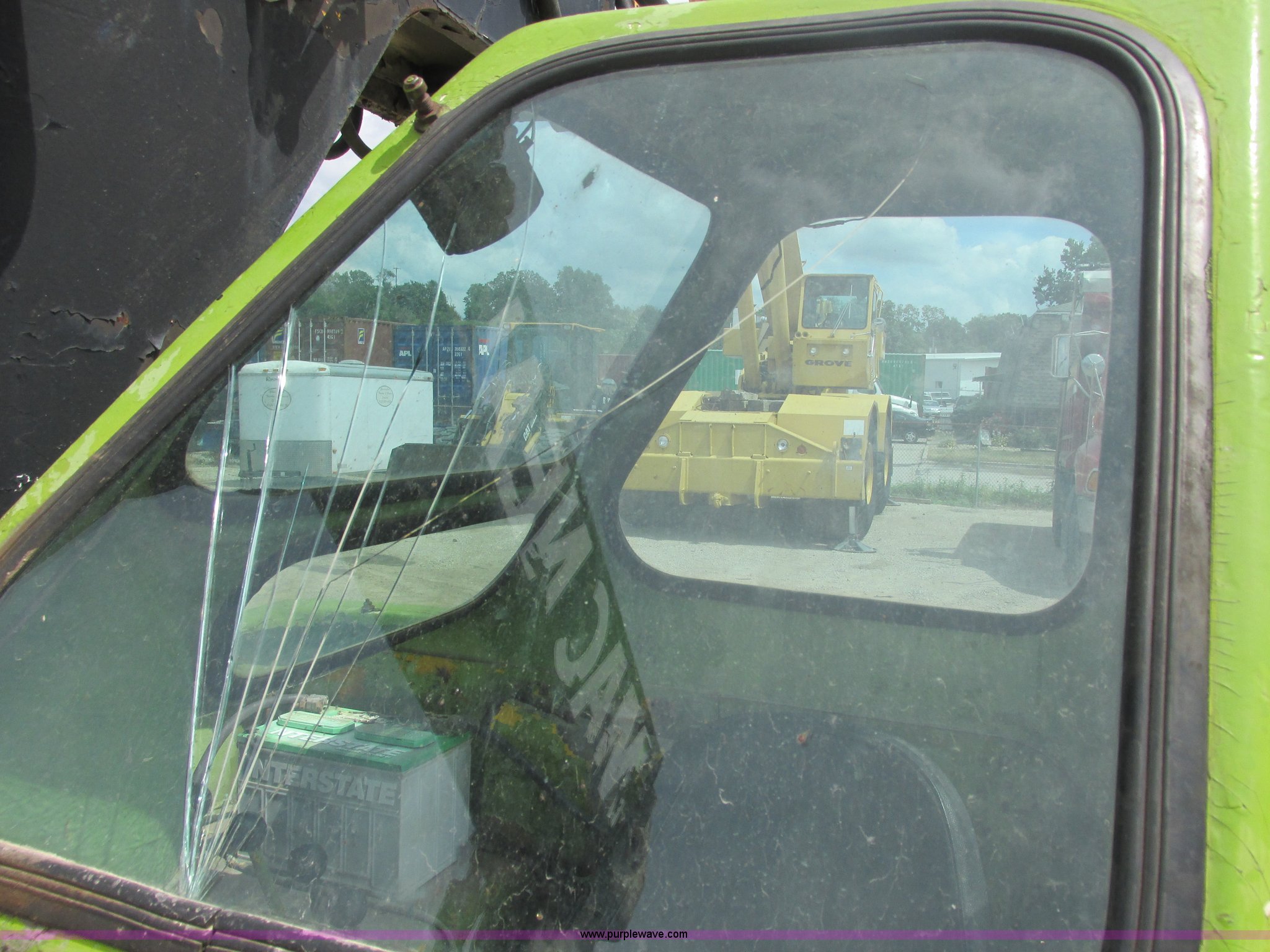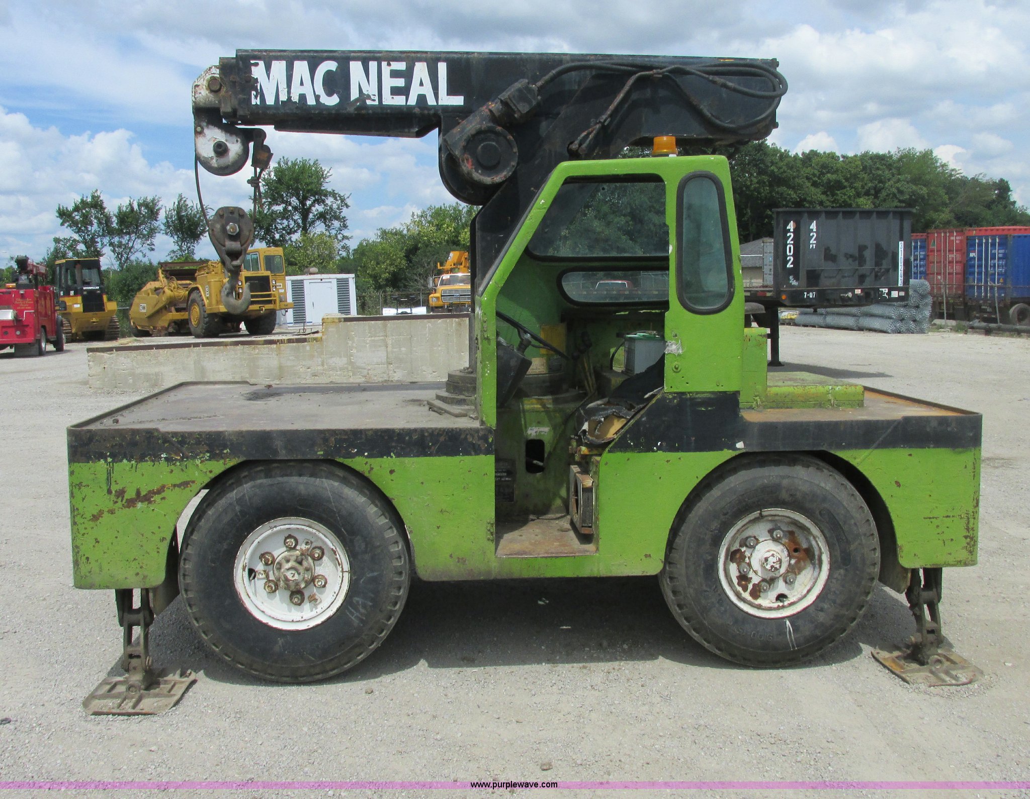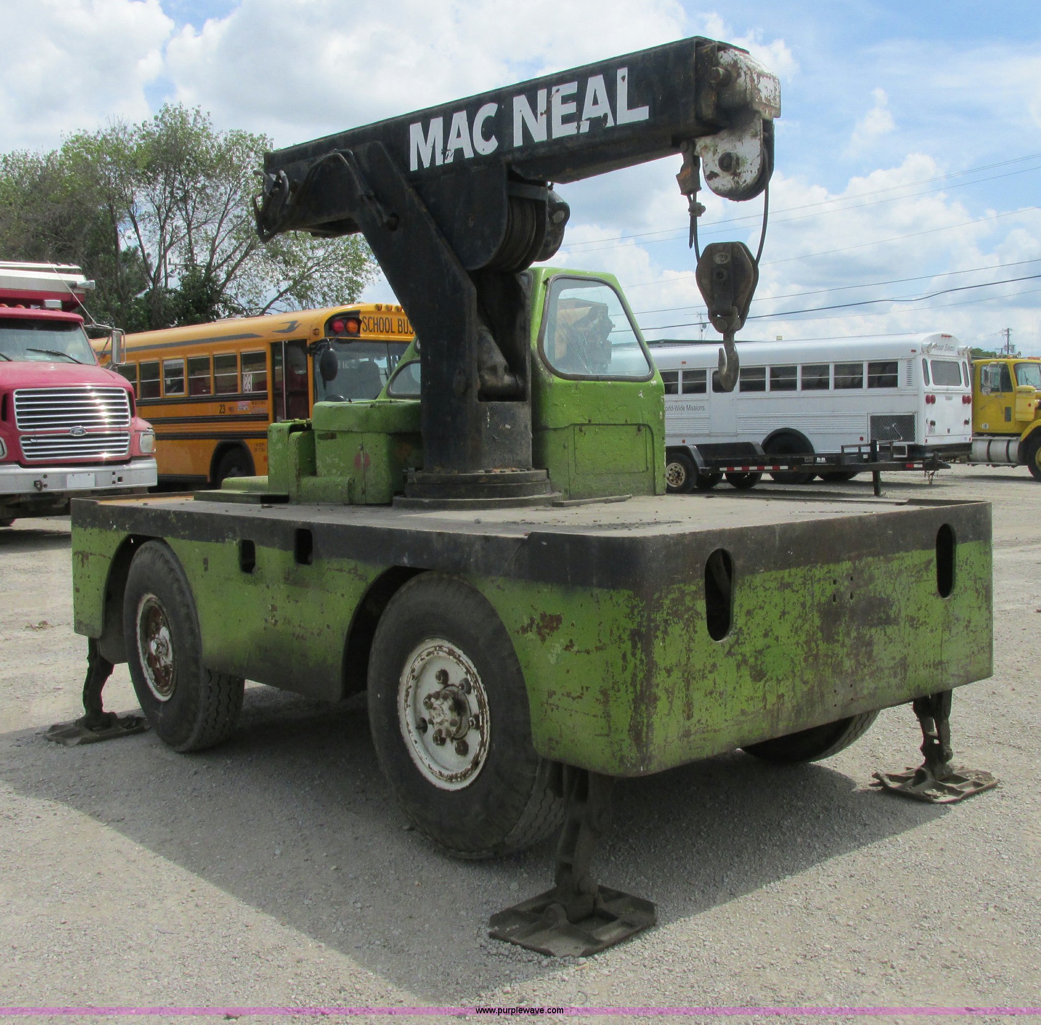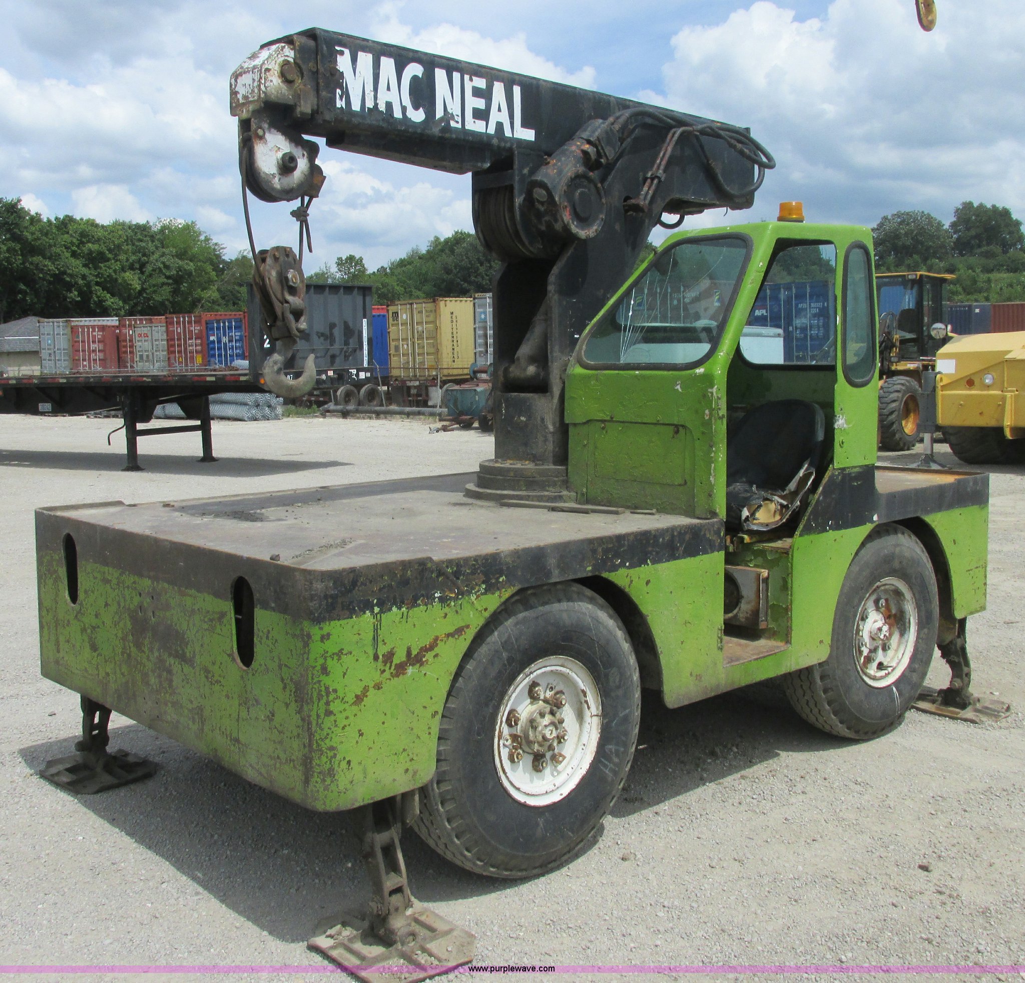 Purple Wave is selling a used Carry Deck Crane in Illinois. This item is a Drott 85RM2 carry deck crane with the following: 2,488 hours on meter, Diesel engine, Three speed transmission, Work platform, 28' maximum reach, Hook and shive, (4) hydraulic outriggers, Rear exhaust, Strobe light, Pin hitch, 9.00 x 15 tires, Windshield cracked, Minor engine leaks, Serial 1584