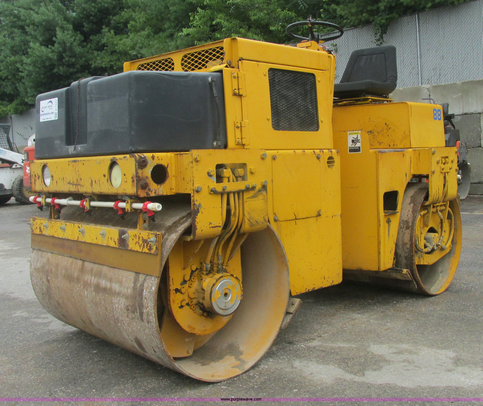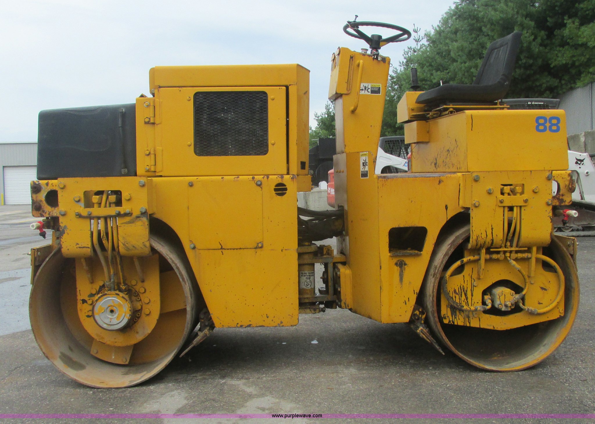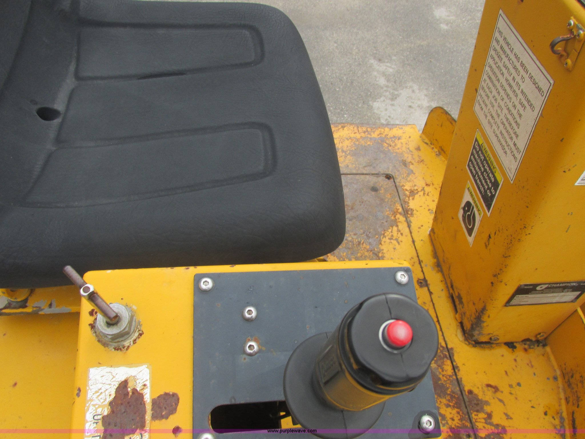 Purple Wave is selling a used Double Drum Roller Compactor in Missouri. This item is a Champion A471 articulated vibratory roller with the following: 2,116 hours on meter, Duetz air cooled diesel engine, Model F3L1011F, Joystick control, 48"W drums, Drum cleaners, Front and rear work lights, Adjustable seat, Console vandalism cover, Locking engine compartment, Emergency brake, Weak battery, Serial X100574X