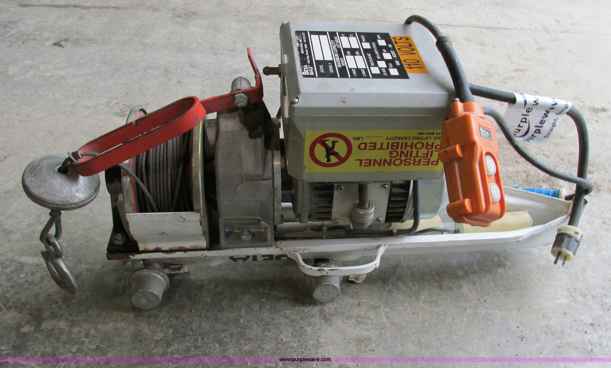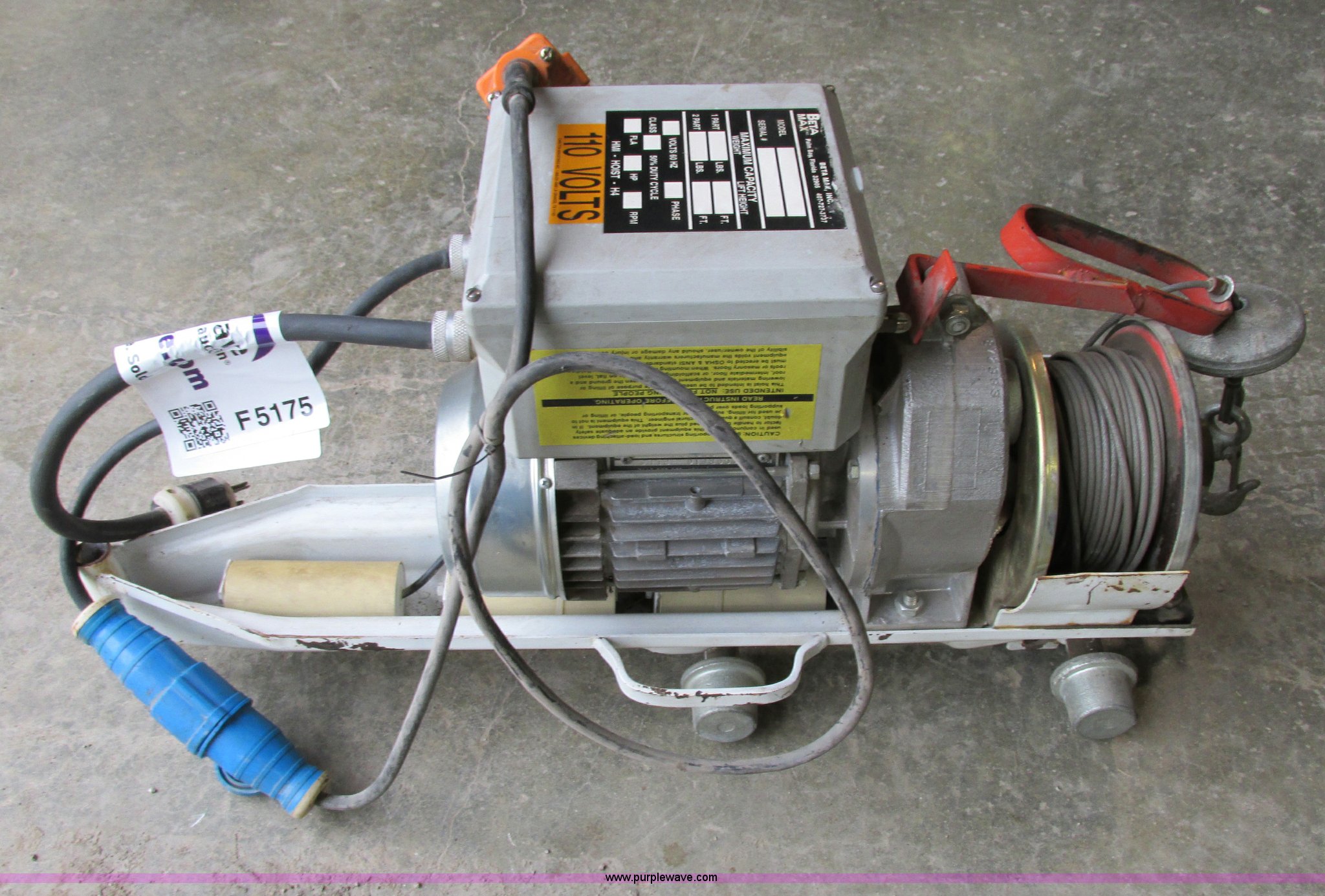 Purple Wave is selling a used Tools in Missouri. This item is a Beta-Max electric hoist lift with the following: 0.75 HP 110V electric motor, Push button controls, Approximately 100'L x 1/4" diameter aircraft cable, Approximately 1,000 lbs maximum capacity, Serial 872383