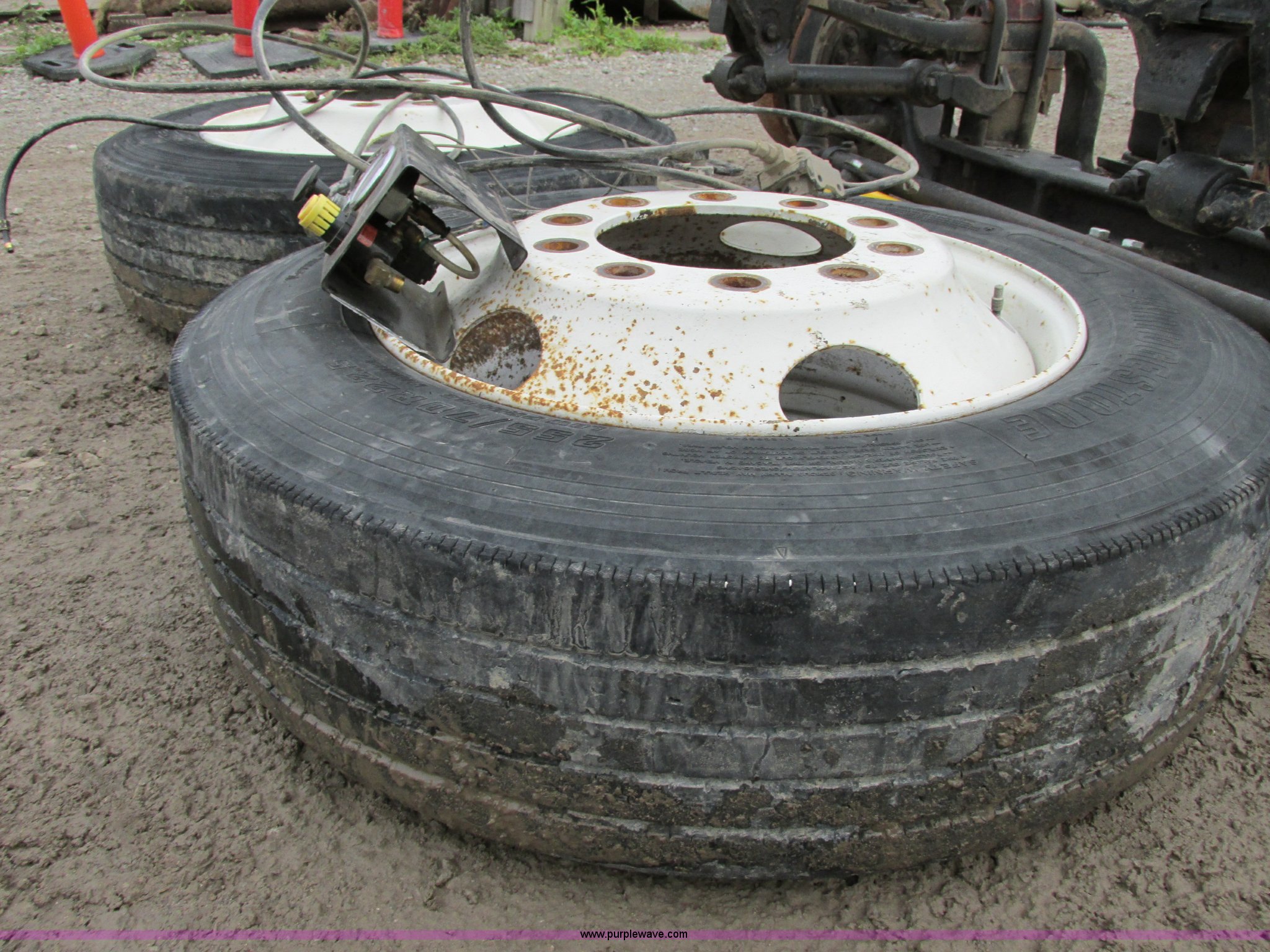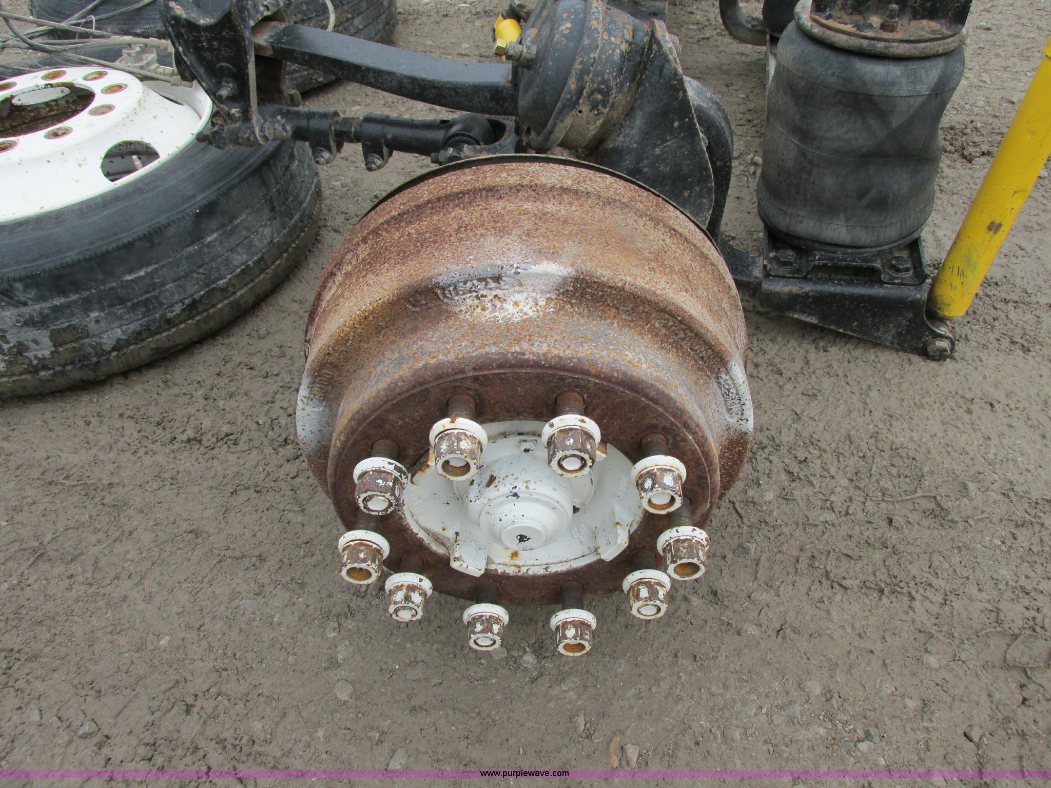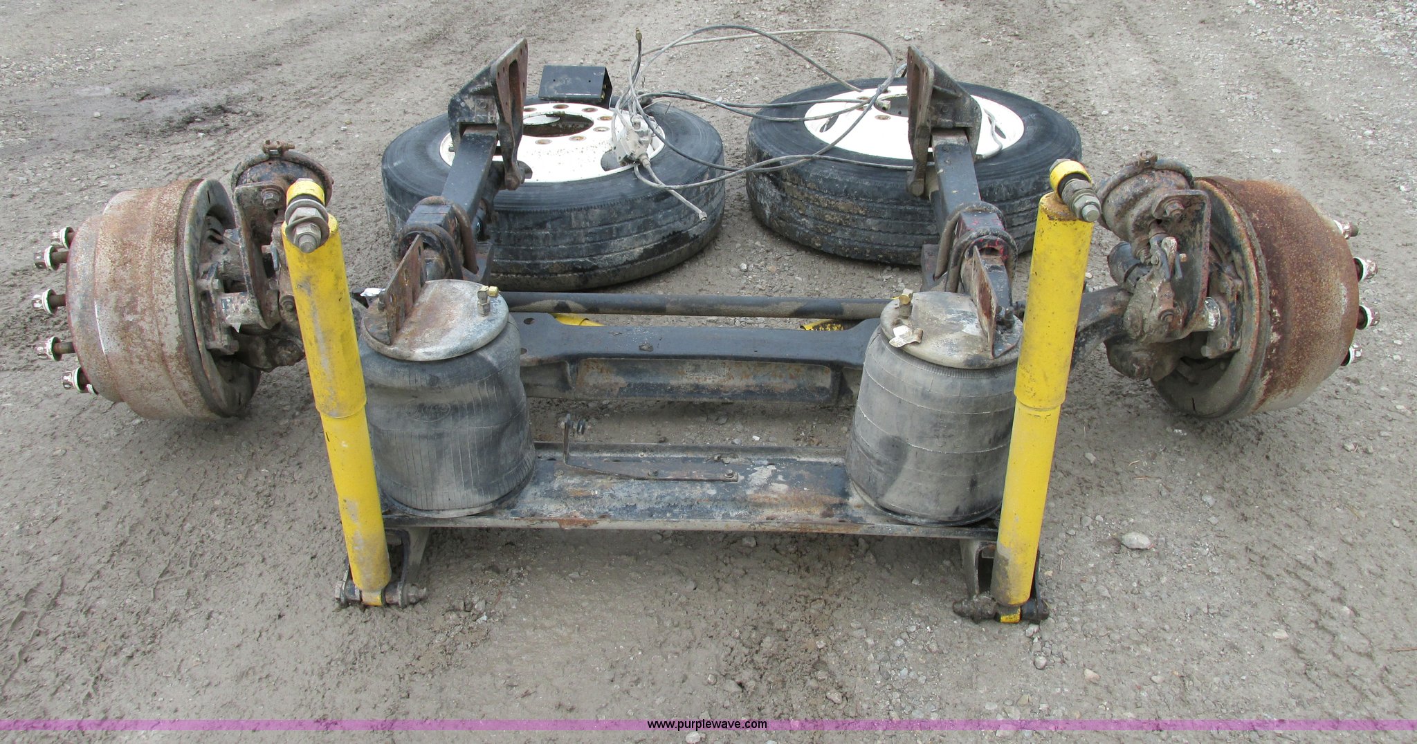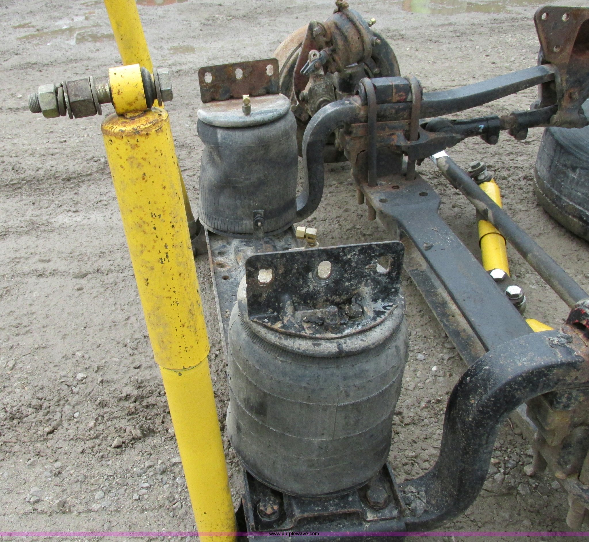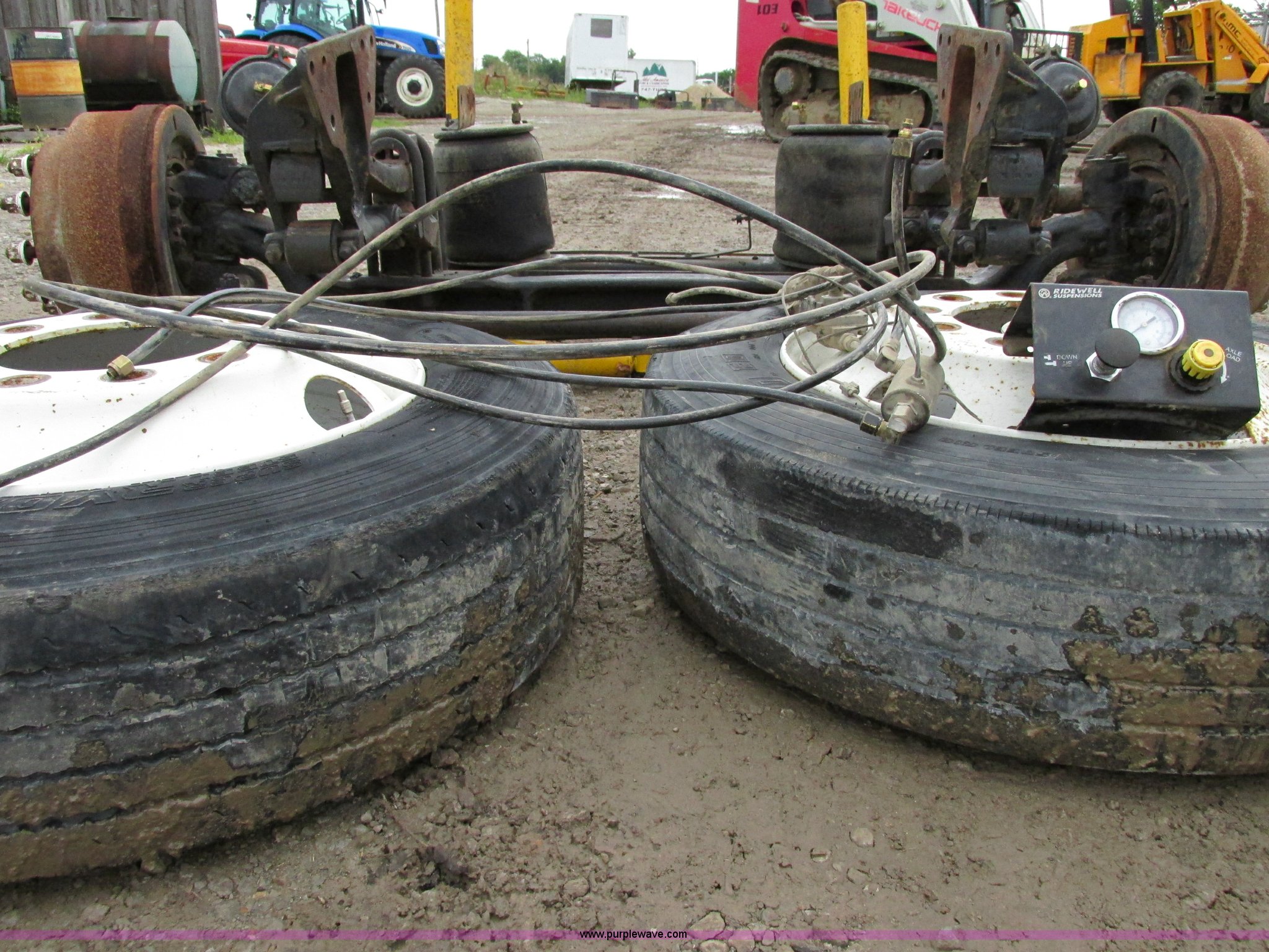 Purple Wave is selling a used Automotive Parts or Acces. in Missouri. This item is a Steerable air tag axle with the following: Air bags included, Shocks, Lug nuts, 10 bolt wheels, Air lines, Gauge and valve, Steering stabilizer shocks, Brakes, Oil bath hubs, 225/70R22.5 tires