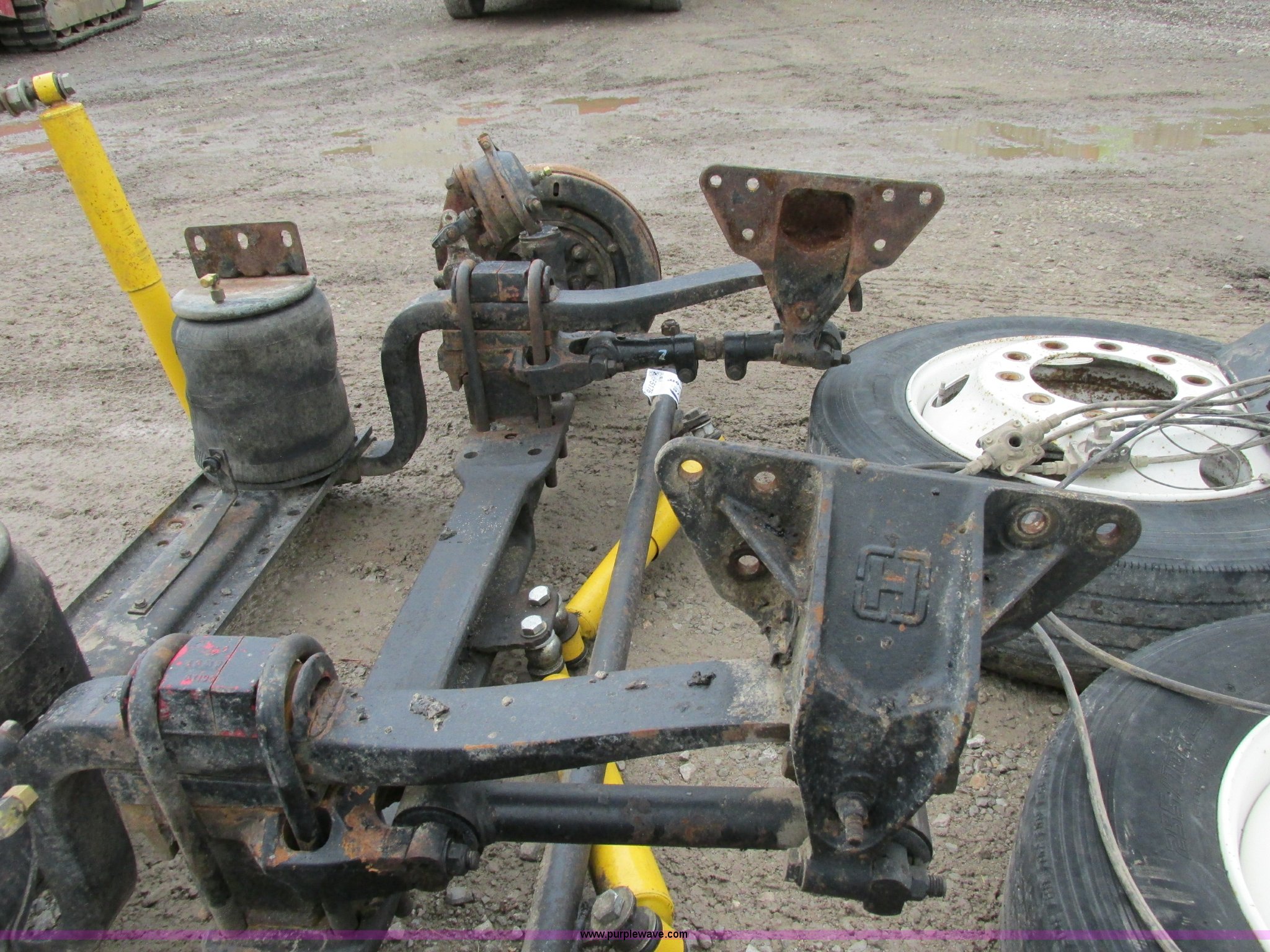 Steerable air tag axle. Air bags included, Shocks, Lug nuts, 10 bolt wheels, Air lines, Gauge and valve, Steering stabilizer shocks, Brakes, Oil bath hubs, 225/70R22.5 tires. Shipping quotes available. Mid-America Turf & Landscaping LLC. Warrensburg, MO 64093