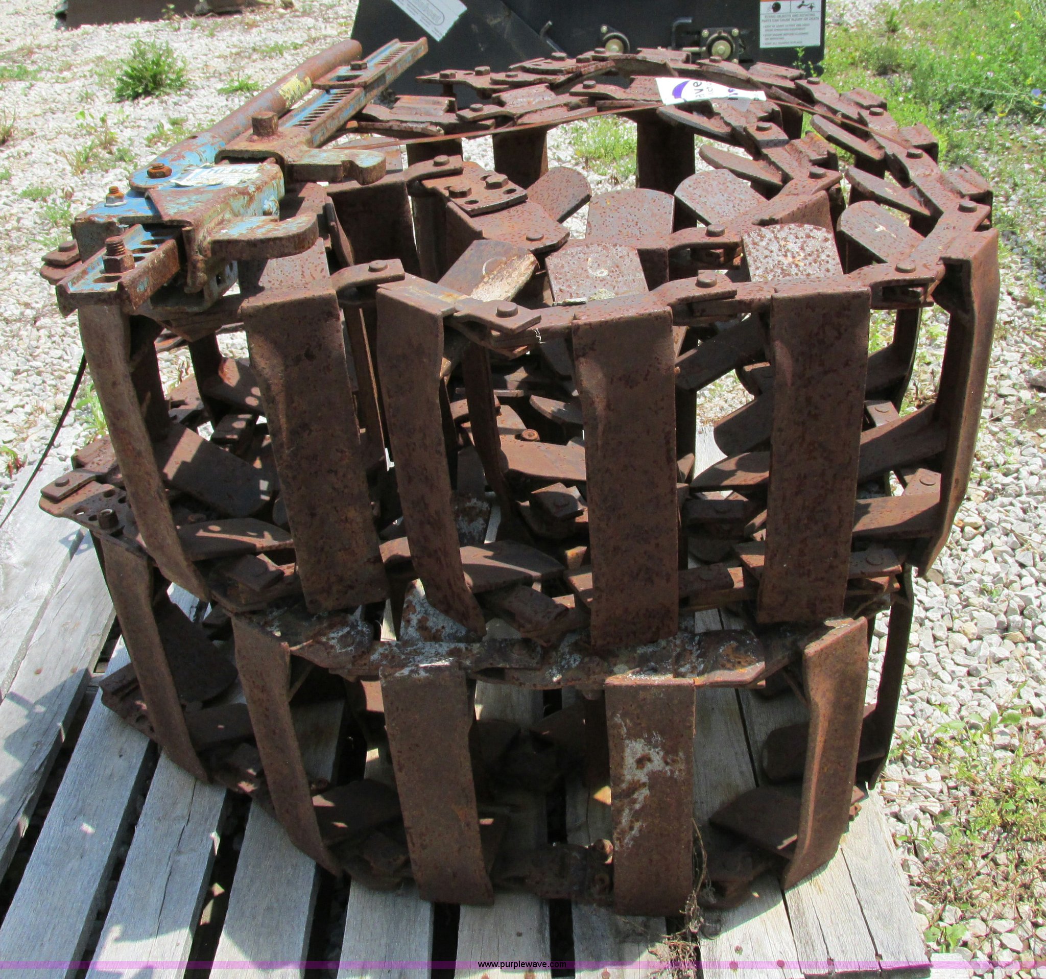 Purple Wave is selling a used Industrial Tires or Tracks in Missouri. This item is a Skid steer steel tracks with the following: 8" inside width, 12" outside width