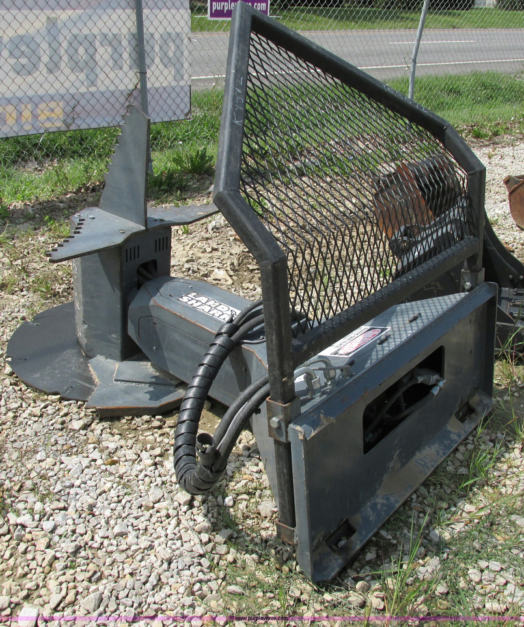 Purple Wave is selling a used Skid Steer Attach. in Missouri. This item is a Land Shark skid steer tree saw with the following: 36" diameter blade, Recently replaced teeth, 1/4" thick, 11" diameter cutting capacity, Unit# 1053658