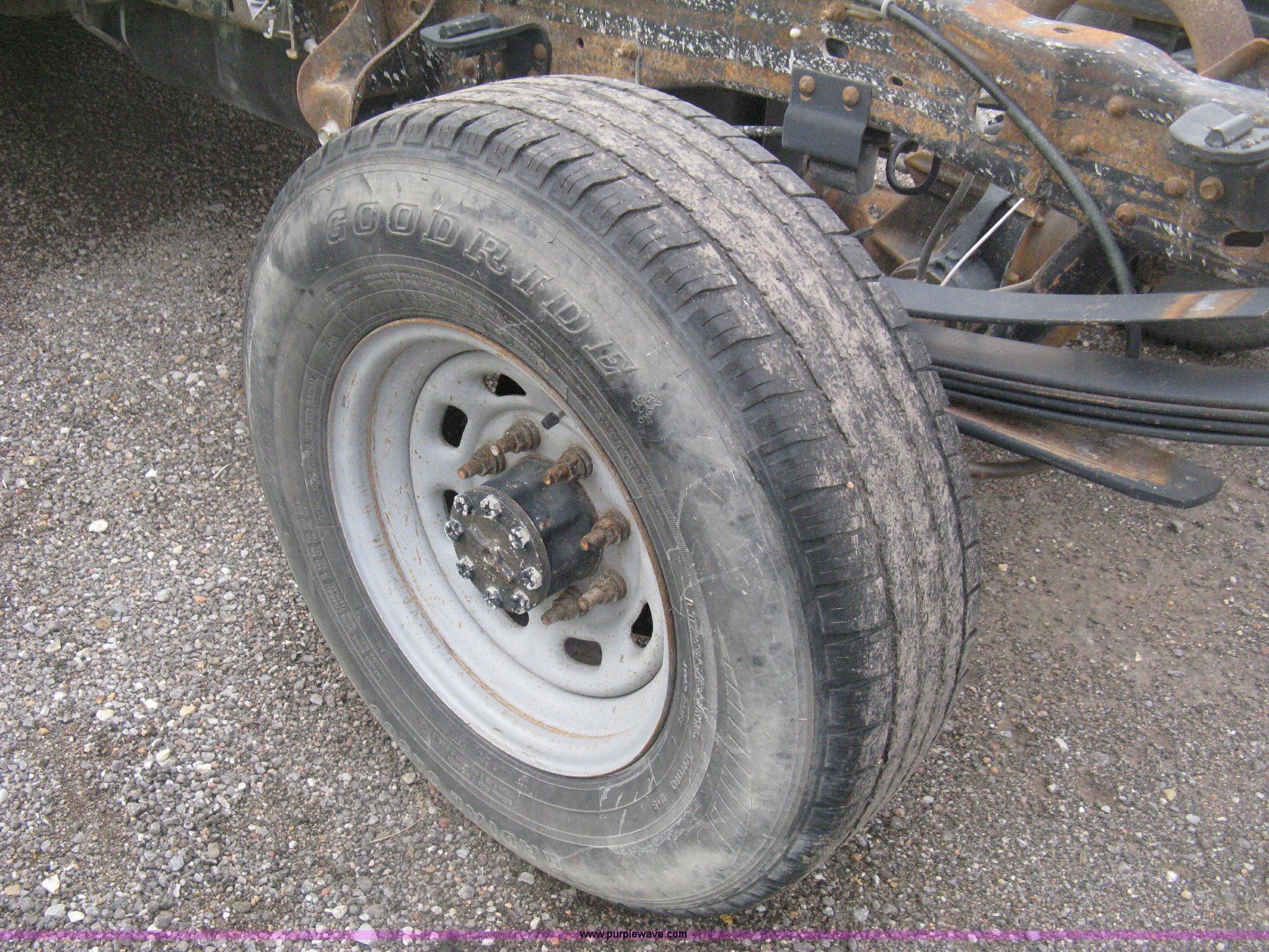 Purple Wave is selling a used Passenger Vehicle in Kansas. This item is a 2003 Ford F250 XL cab and chassis with the following: Unknown miles on odometer, Gas engine, Automatic transmission, AC and heat, AM/FM, Manual windows and locks, Vinyl interior, LT235/85R16 tires, Approximately 56" from rear of cab to center of rear axle, Windshield cracked, Battery dead, Interior/exterior cosmetic damage, Gear shift missing, Missing parts, Unit# 63.097
