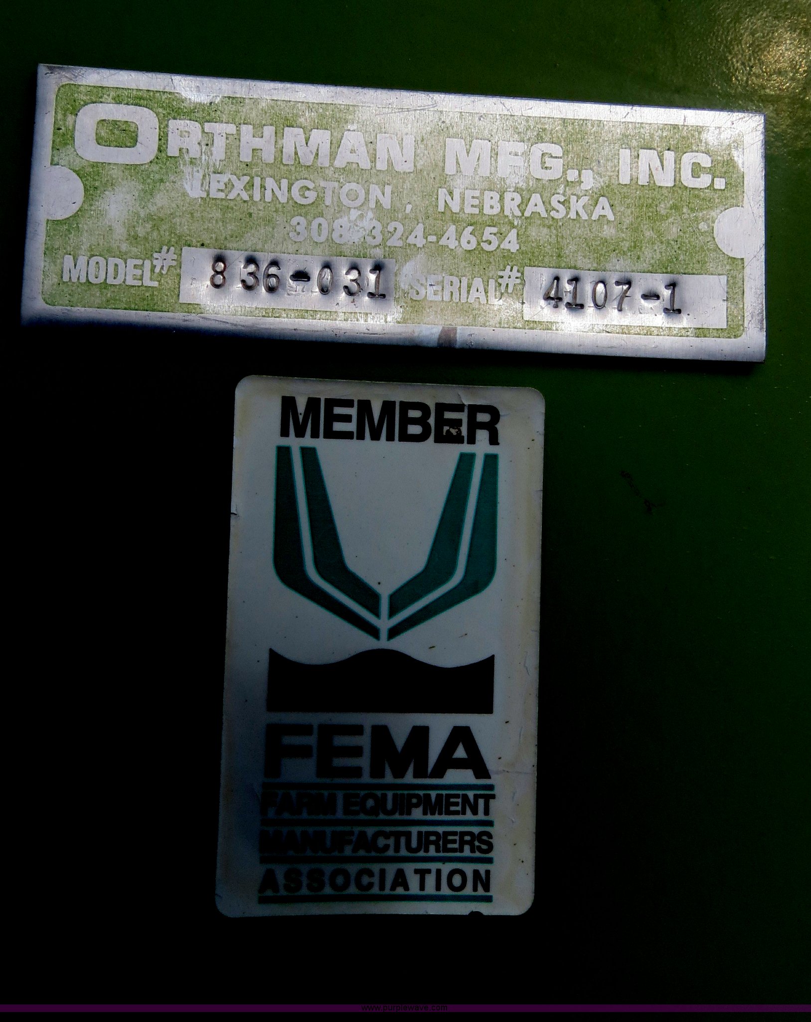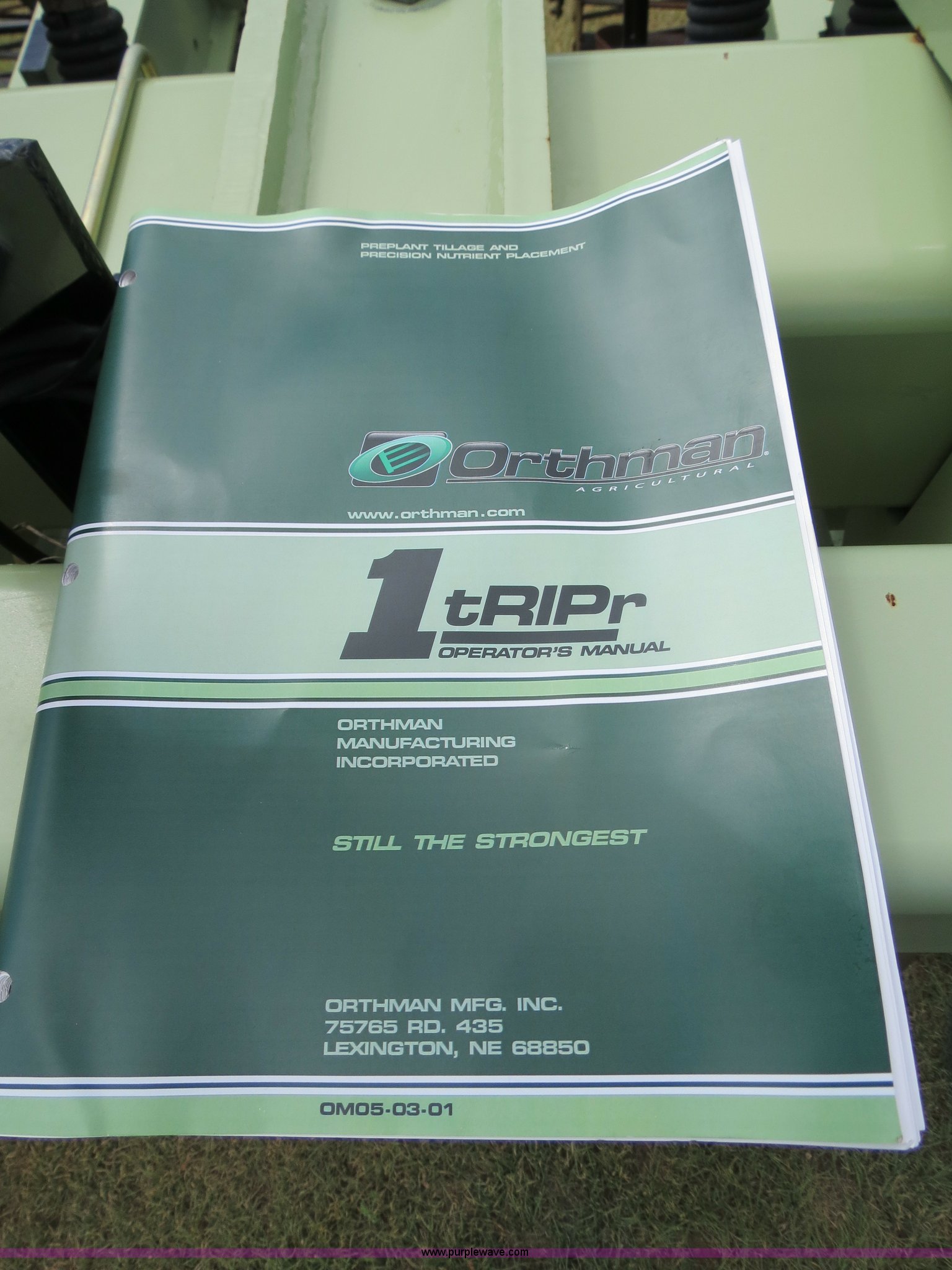 Purple Wave is selling a used Strip-Till in Colorado. This item is a 2007 Orthman 1TRIPR 12R30 strip till with the following: Model 836-031, Rigid frame, 7x7 bar, 12 row units, 30" spacing, Three point, 48" front jack stands, Safety lights, Mechanical depth control, Spring down pressure, Rolling baskets, Adjustable knive shaft, Front cutters, Operators manual, Serial 4107-1