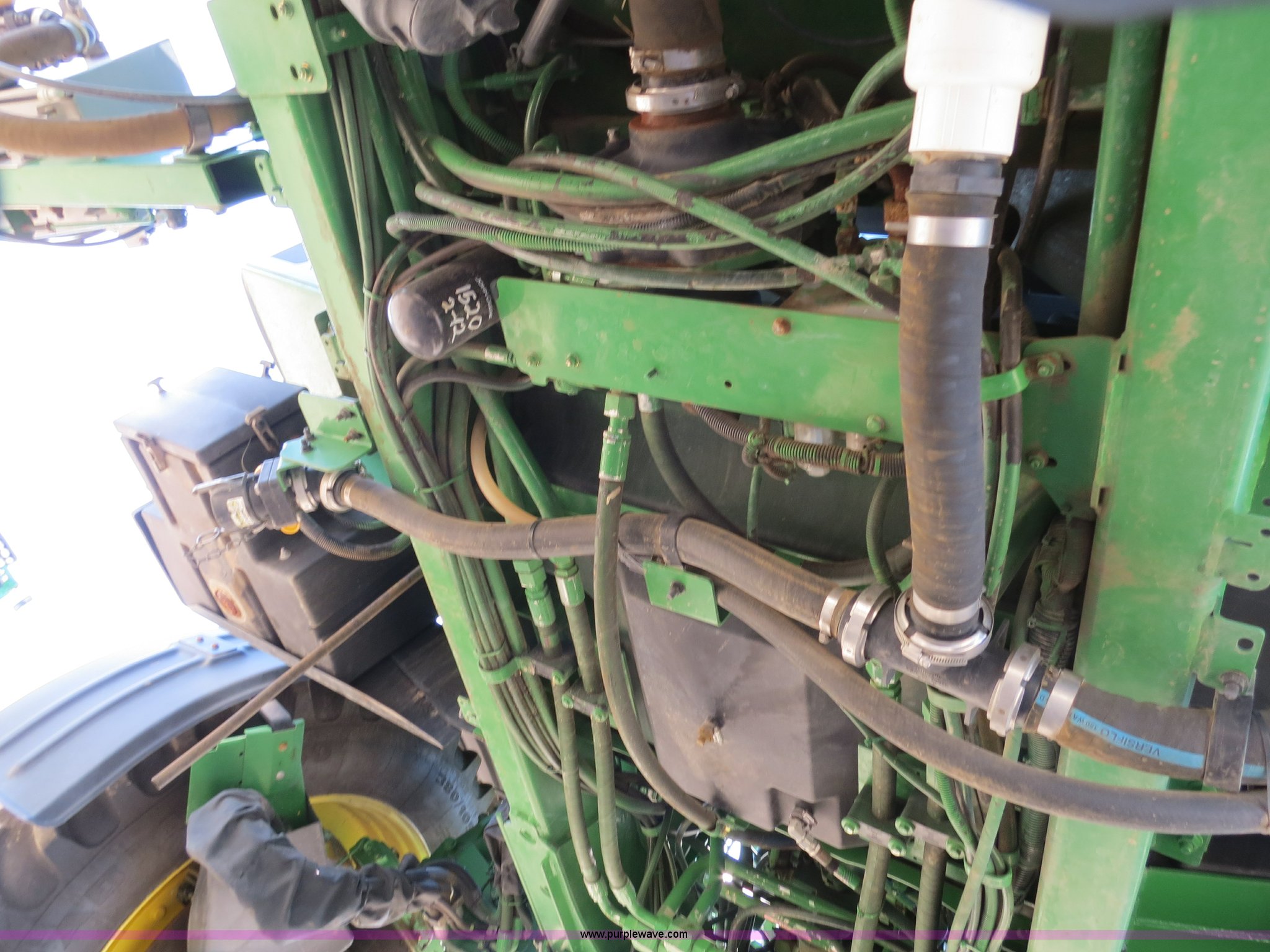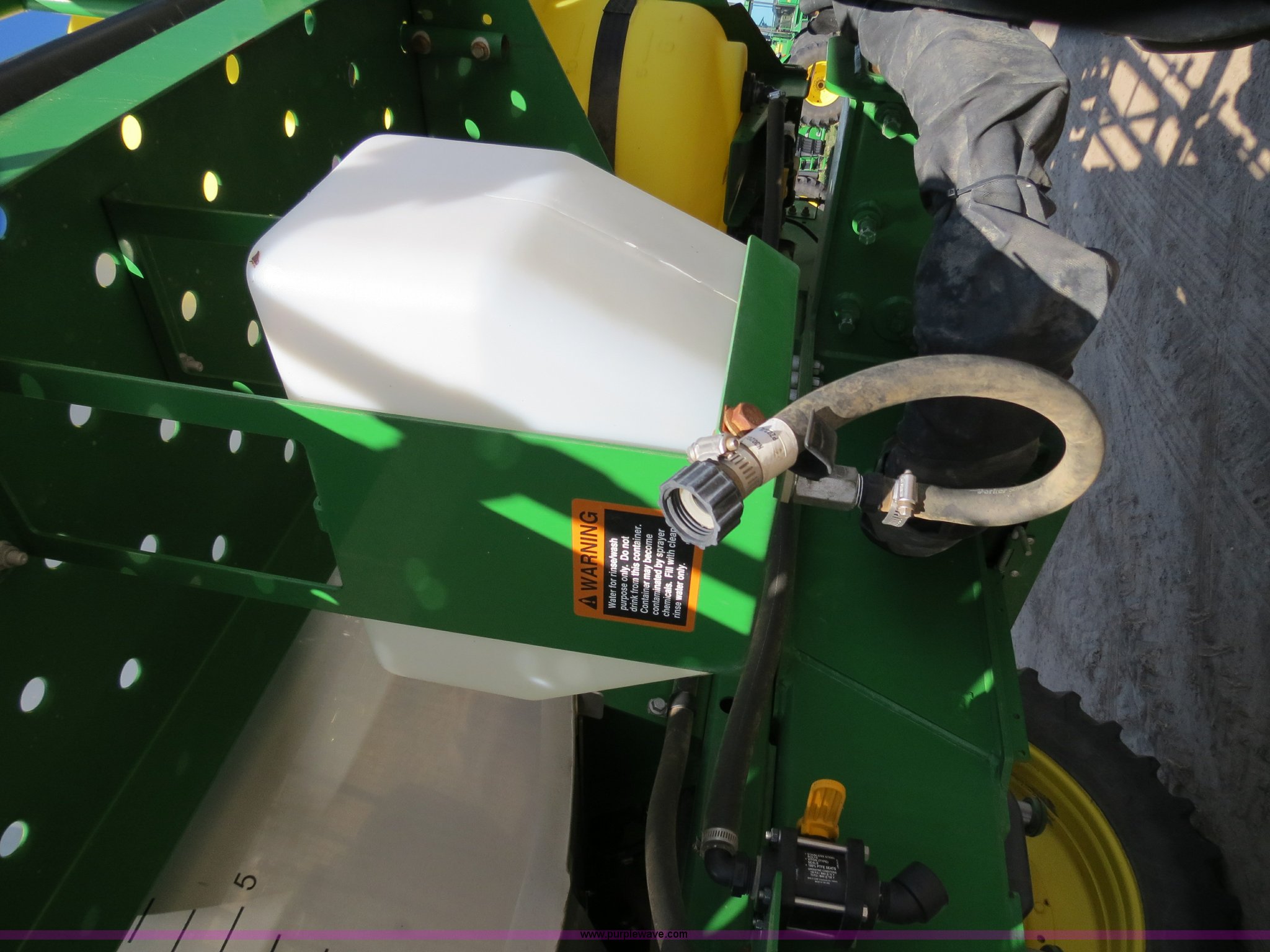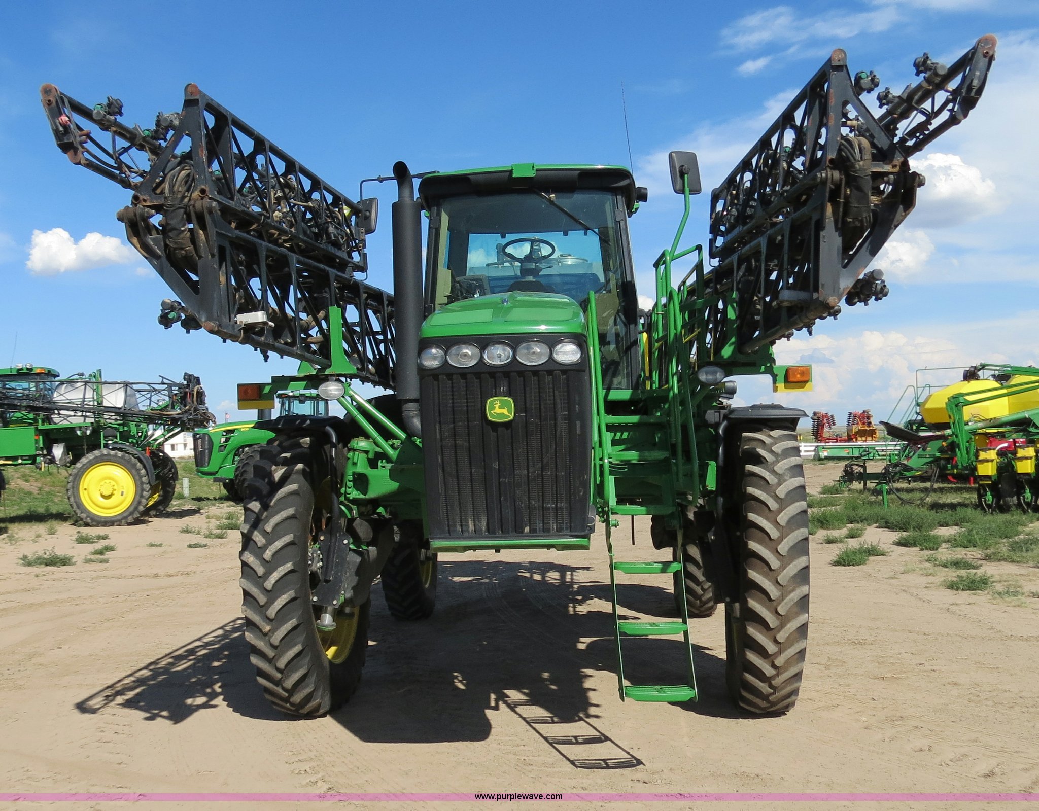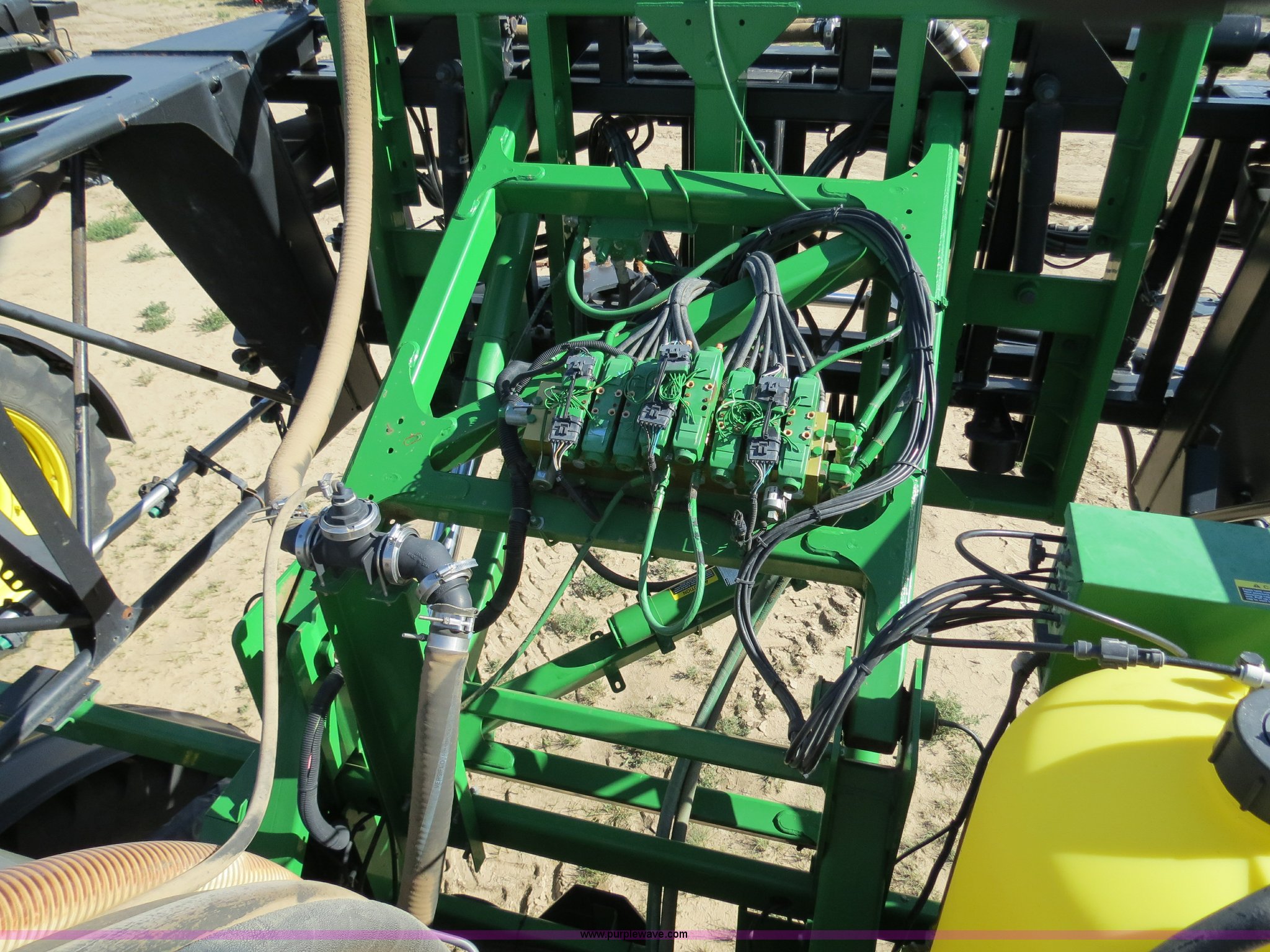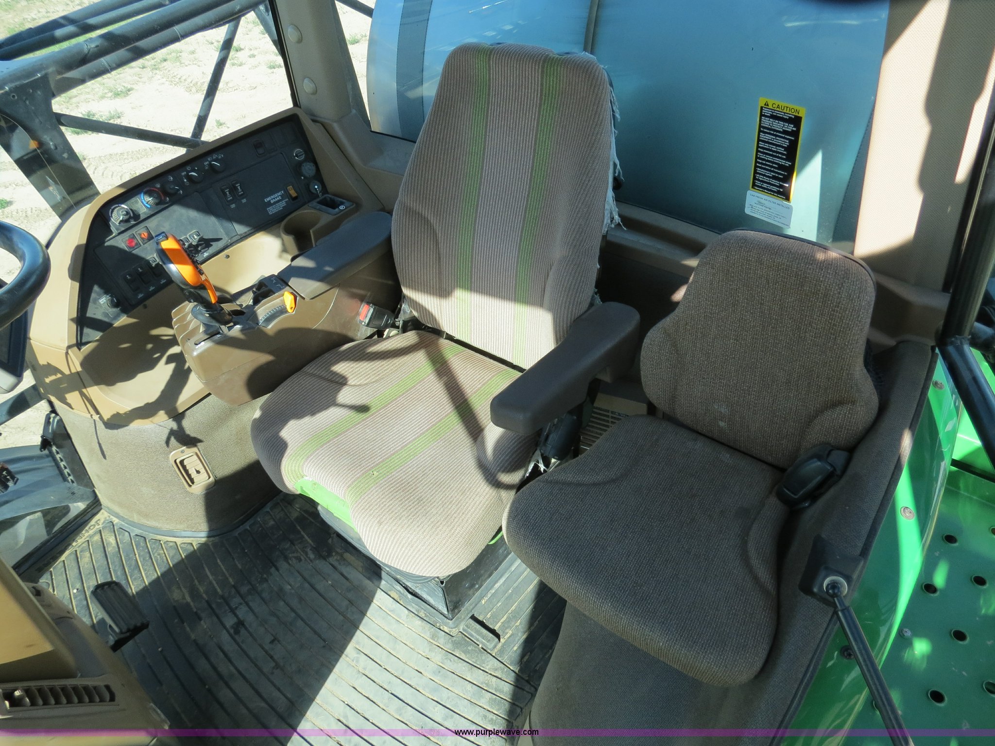 Purple Wave is selling a used Applicator Self Propelled in Colorado. This item is a 2009 John Deere 4930 self-propelled sprayer with the following: 1,870 hours on meter, John Deere 6090 9.0L six cylinder diesel engine, 325 HP, Serial RG6090L046067, Hydrostatic transmission, Four wheel drive, Engine block heater, 1,200 gallon stainless steel tank, 150 gallon rinse tank, 120'W boom, (7) boom sections, 20" nozzle spacing, Hydraulic height adjust, Hydraulic boom fold, Foam marker, Stainless steel chemical eductor, Auto air spring level system, Five position standard flow nozzle, Wet boom, Fence row nozzles, Boomtrac auto level system five sensor, AC and heat, AM/FM/CD, (4) speakers, Air suspension seat, Tilt/telescoping steering wheel, Xenon HID work lights, Radar ground speed sensor, Row crop fenders, Wheel motor shields, Wheel traction control, Hydraulic axle width adjust, 380/105R50 tires, Serial N04930X006154, Unit# C019027
