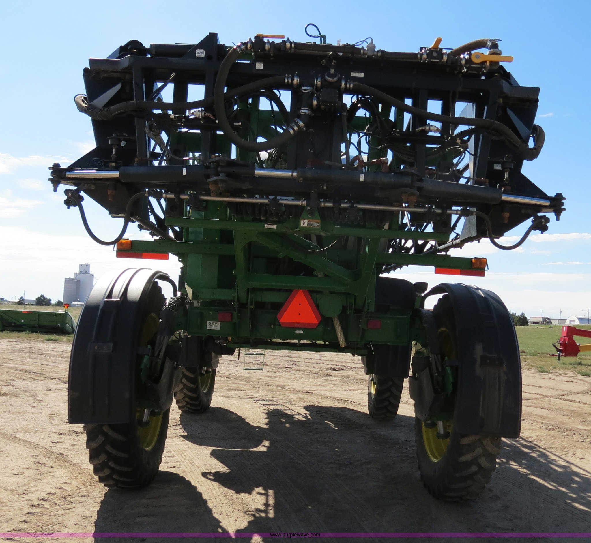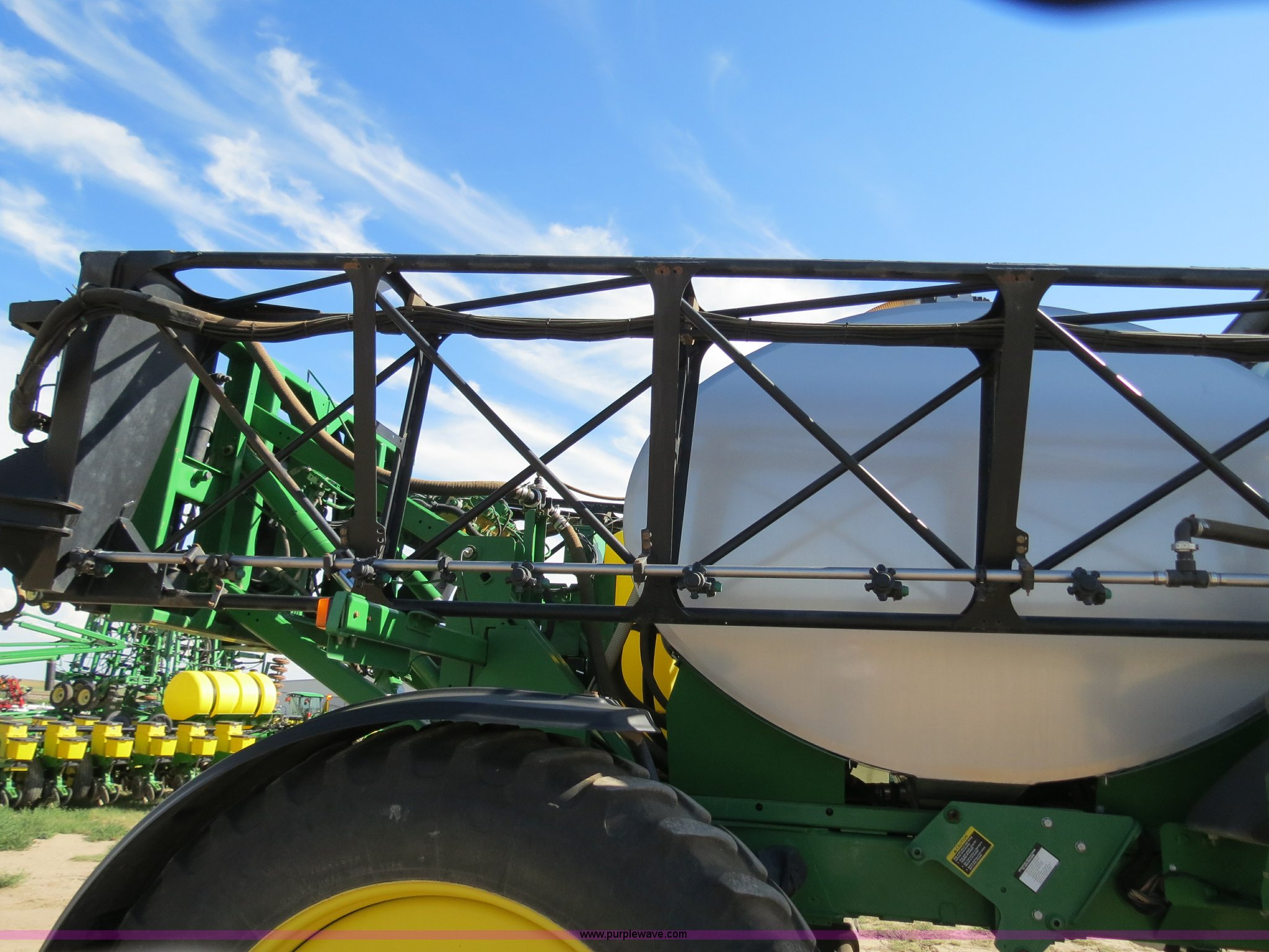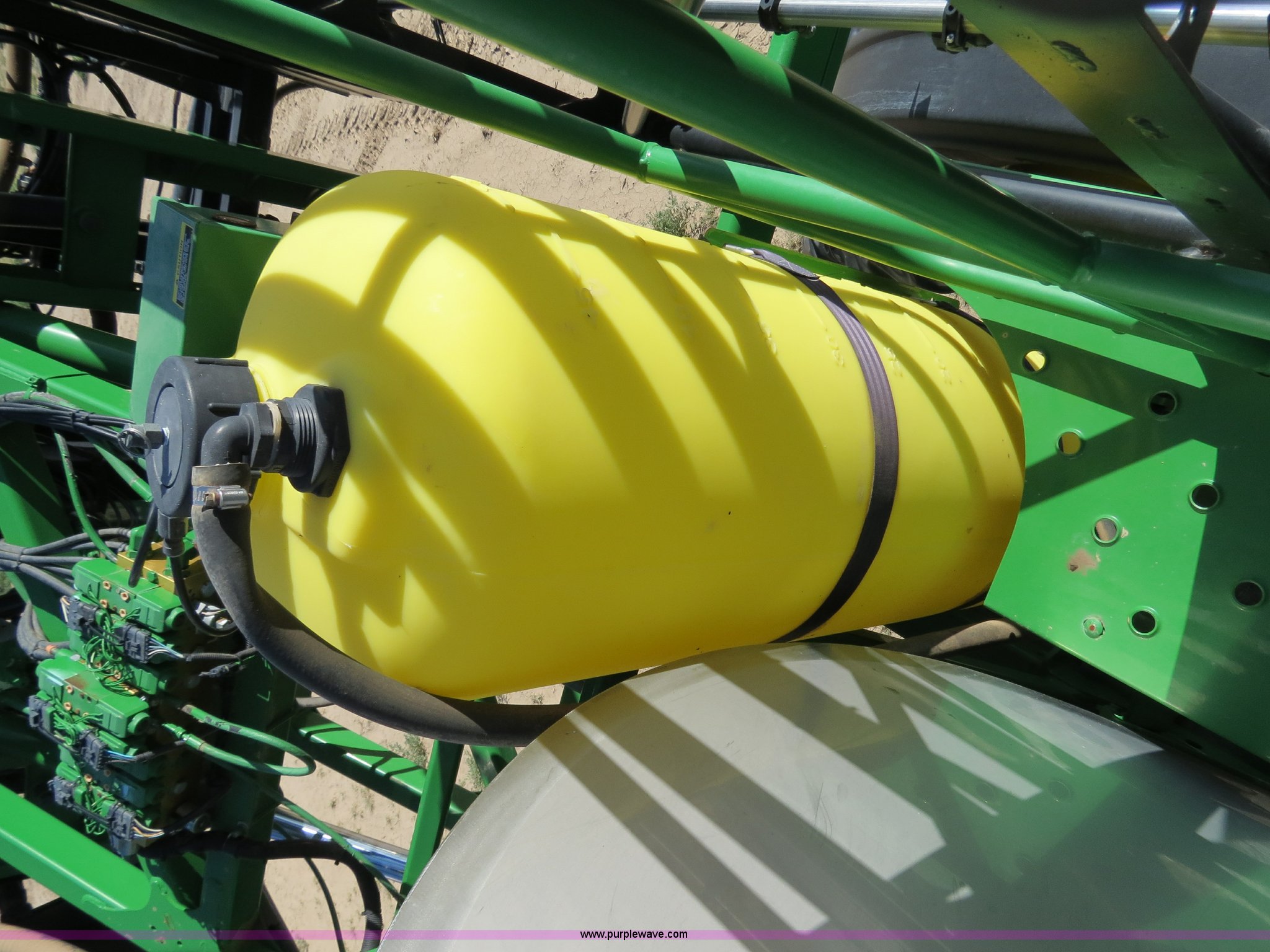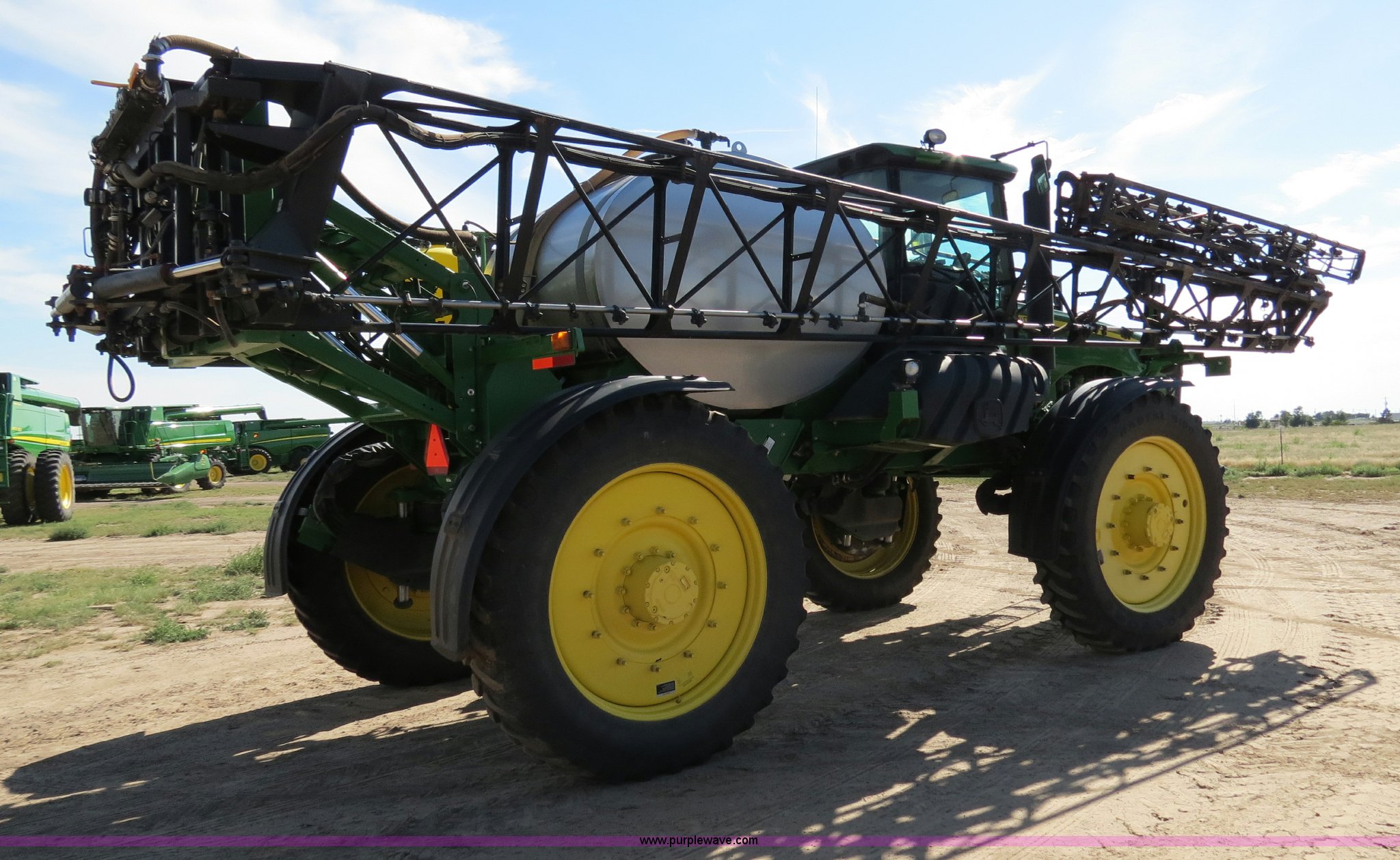 Purple Wave is selling a used Applicator Self Propelled in Colorado. This item is a 2009 John Deere 4930 self-propelled sprayer with the following: 1,870 hours on meter, John Deere 6090 9.0L six cylinder diesel engine, 325 HP, Serial RG6090L046067, Hydrostatic transmission, Four wheel drive, Engine block heater, 1,200 gallon stainless steel tank, 150 gallon rinse tank, 120'W boom, (7) boom sections, 20" nozzle spacing, Hydraulic height adjust, Hydraulic boom fold, Foam marker, Stainless steel chemical eductor, Auto air spring level system, Five position standard flow nozzle, Wet boom, Fence row nozzles, Boomtrac auto level system five sensor, AC and heat, AM/FM/CD, (4) speakers, Air suspension seat, Tilt/telescoping steering wheel, Xenon HID work lights, Radar ground speed sensor, Row crop fenders, Wheel motor shields, Wheel traction control, Hydraulic axle width adjust, 380/105R50 tires, Serial N04930X006154, Unit# C019027