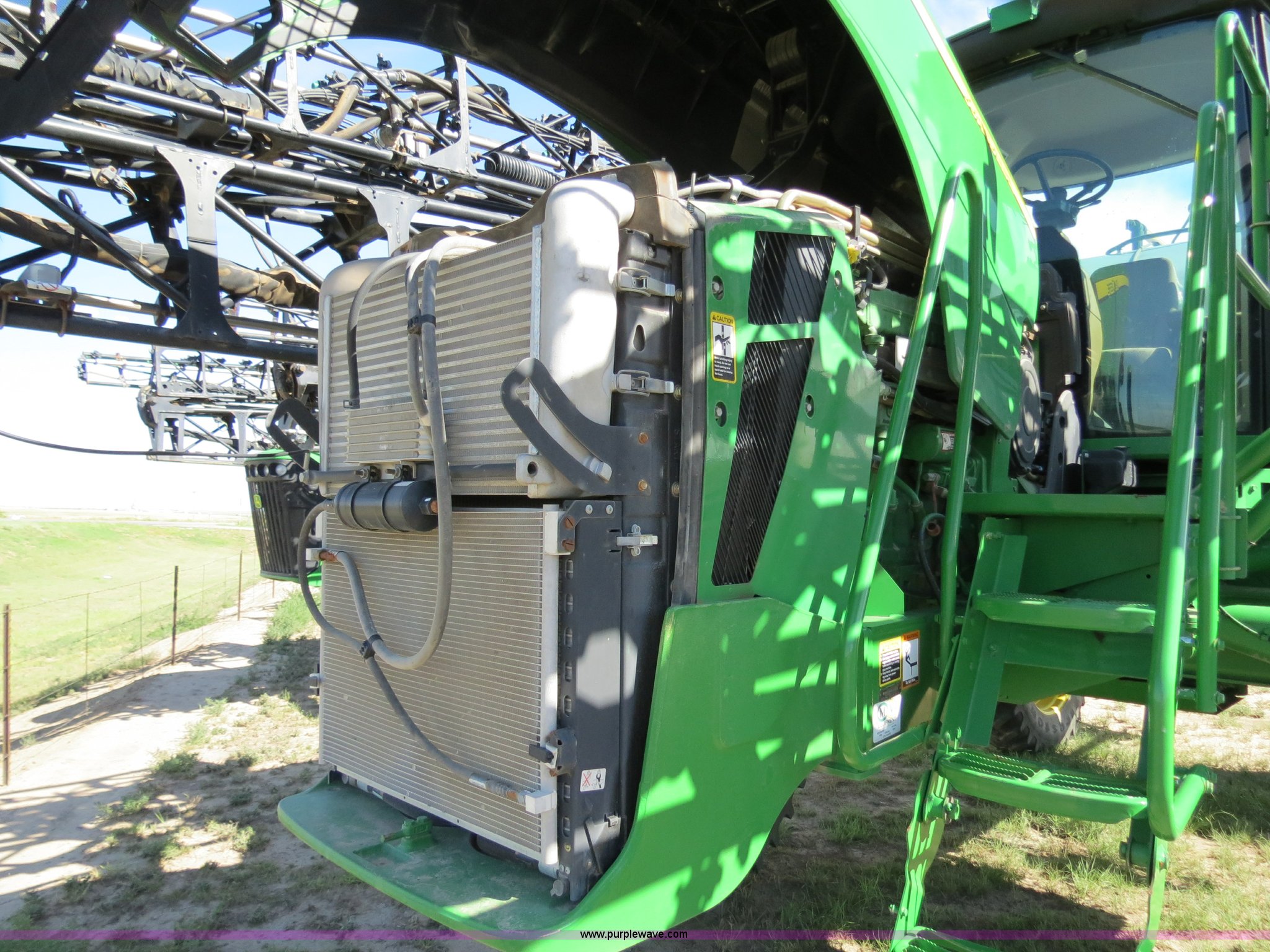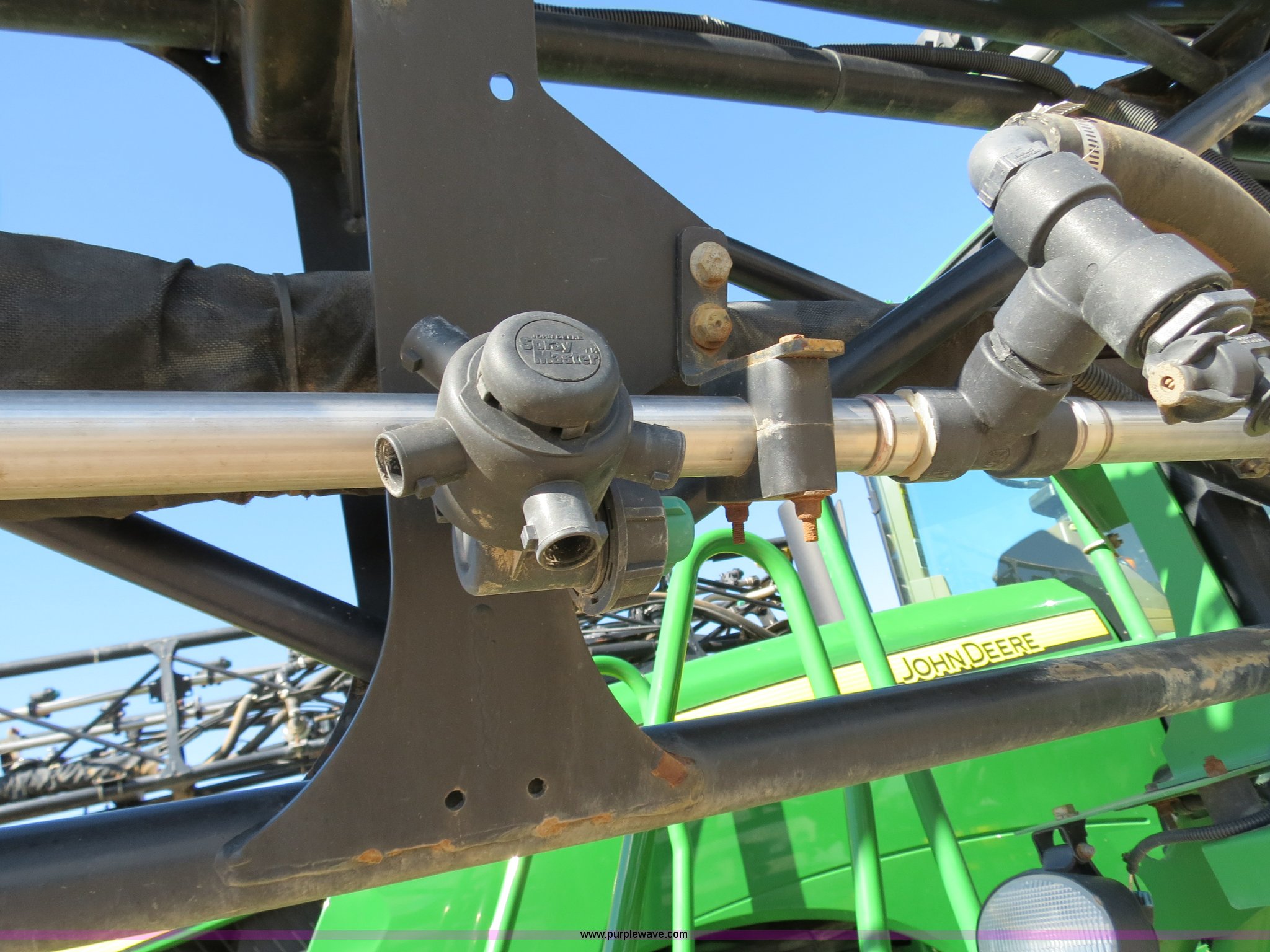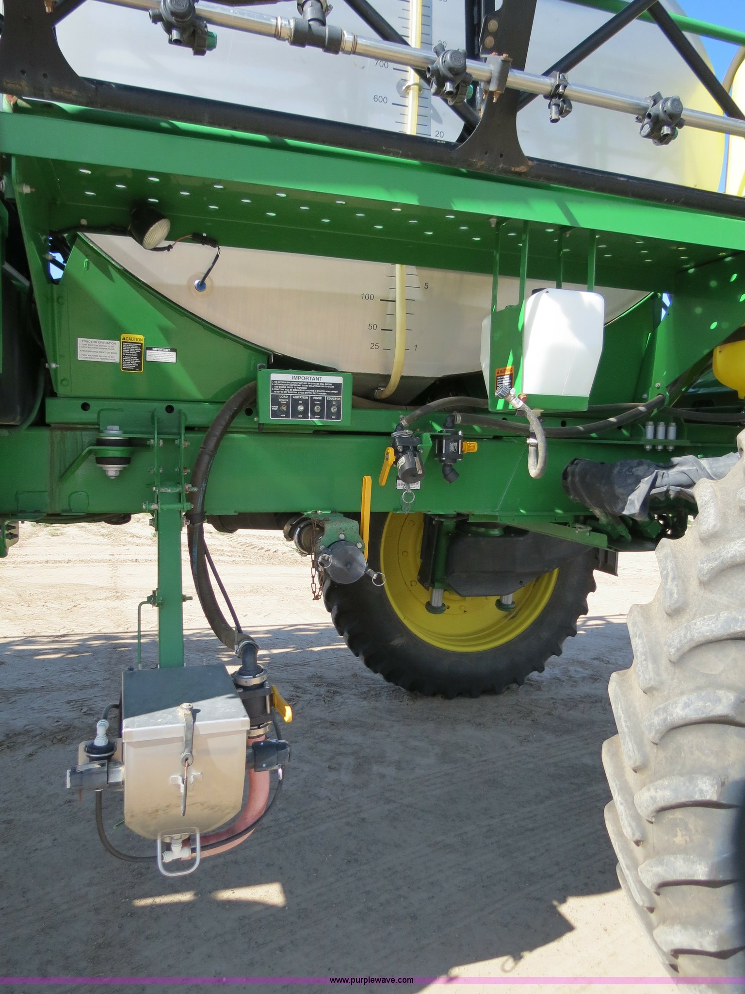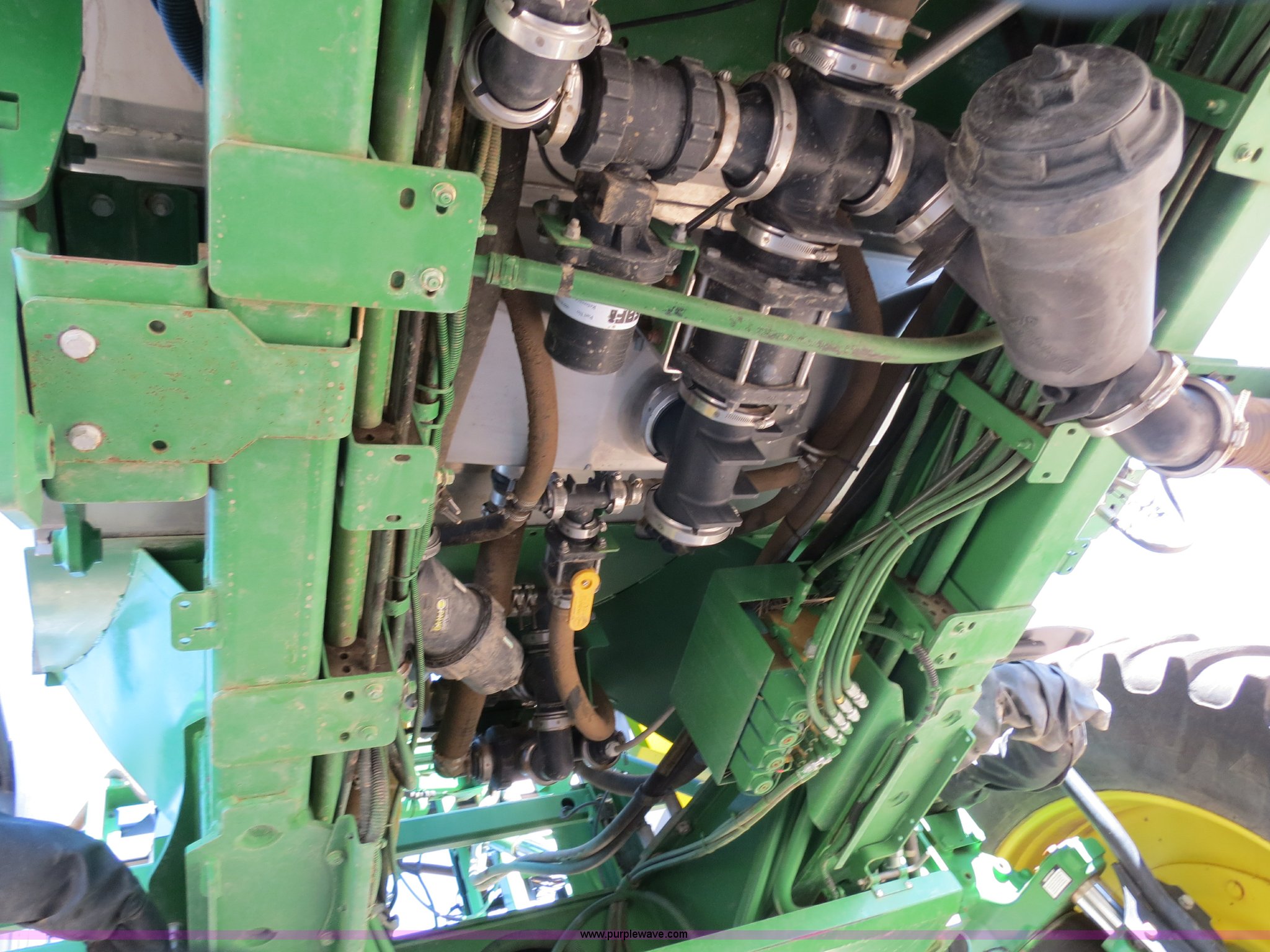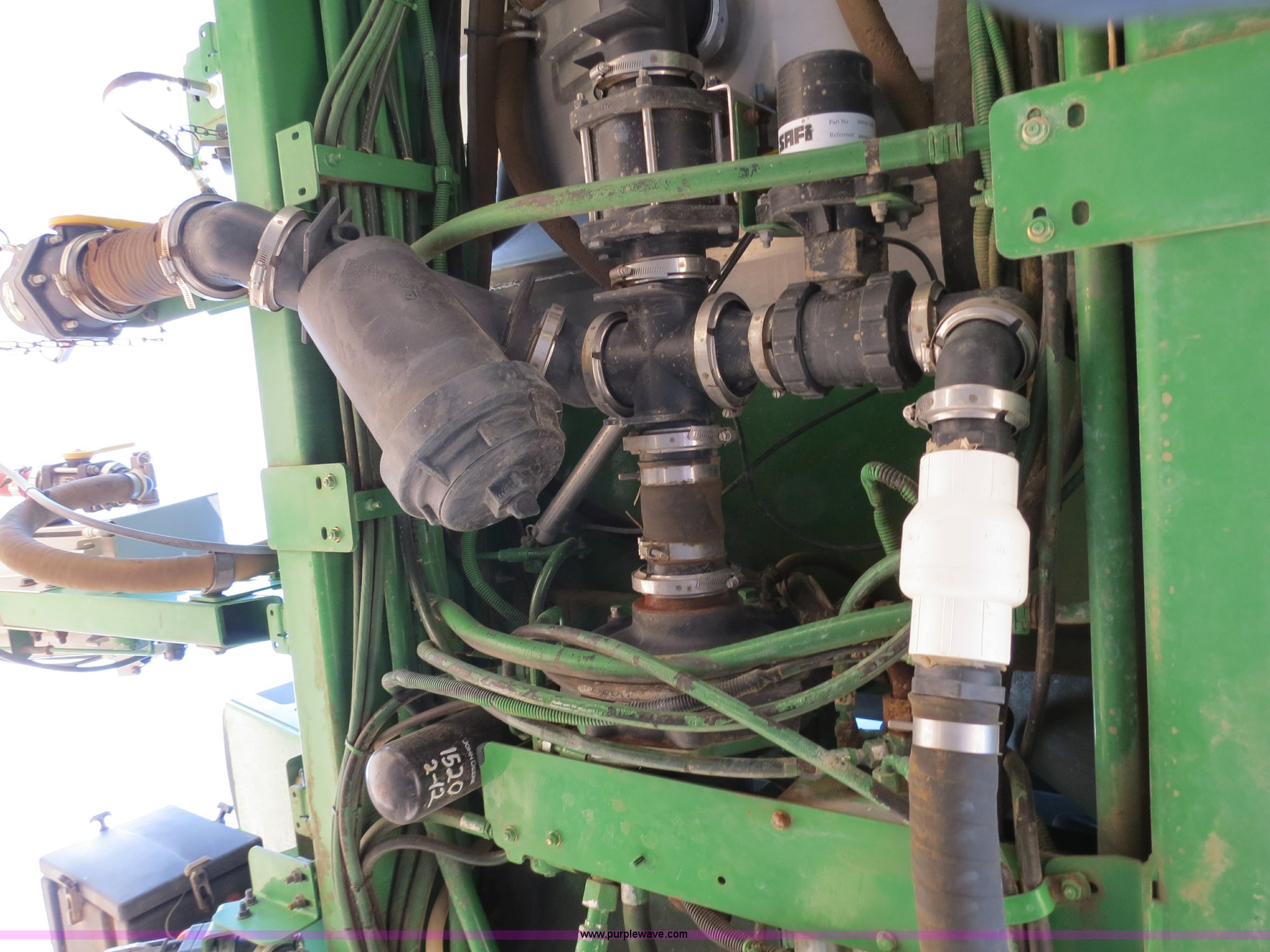 Purple Wave is selling a used Applicator Self Propelled in Colorado. This item is a 2009 John Deere 4930 self-propelled sprayer with the following: 1,870 hours on meter, John Deere 6090 9.0L six cylinder diesel engine, 325 HP, Serial RG6090L046067, Hydrostatic transmission, Four wheel drive, Engine block heater, 1,200 gallon stainless steel tank, 150 gallon rinse tank, 120'W boom, (7) boom sections, 20" nozzle spacing, Hydraulic height adjust, Hydraulic boom fold, Foam marker, Stainless steel chemical eductor, Auto air spring level system, Five position standard flow nozzle, Wet boom, Fence row nozzles, Boomtrac auto level system five sensor, AC and heat, AM/FM/CD, (4) speakers, Air suspension seat, Tilt/telescoping steering wheel, Xenon HID work lights, Radar ground speed sensor, Row crop fenders, Wheel motor shields, Wheel traction control, Hydraulic axle width adjust, 380/105R50 tires, Serial N04930X006154, Unit# C019027