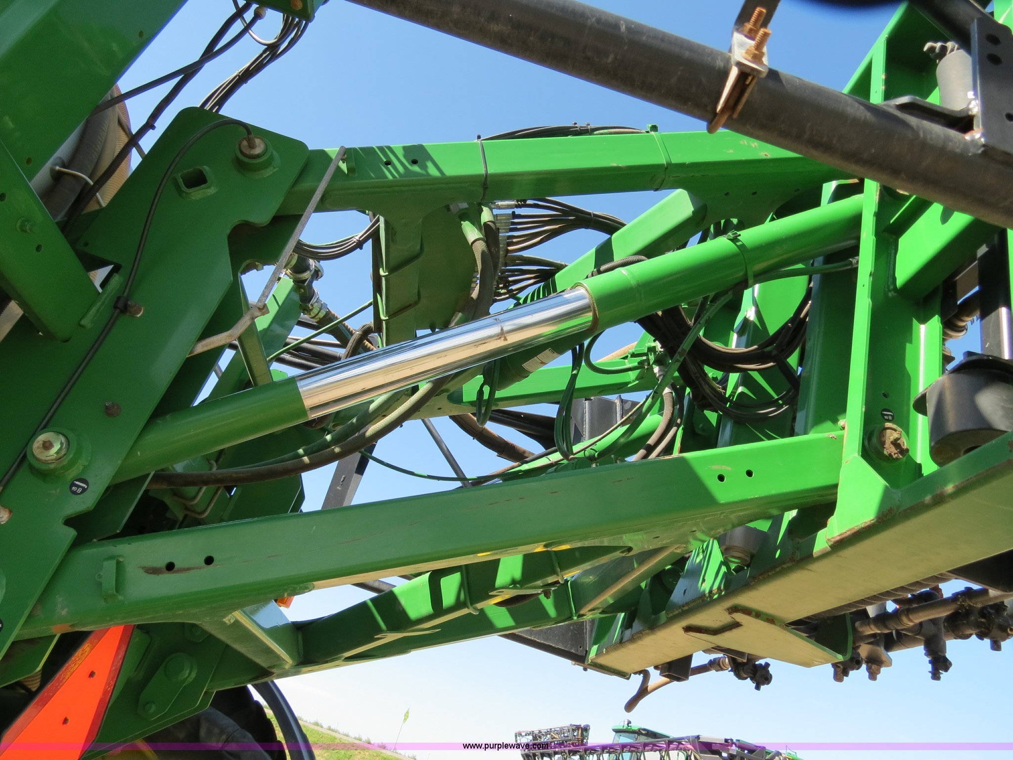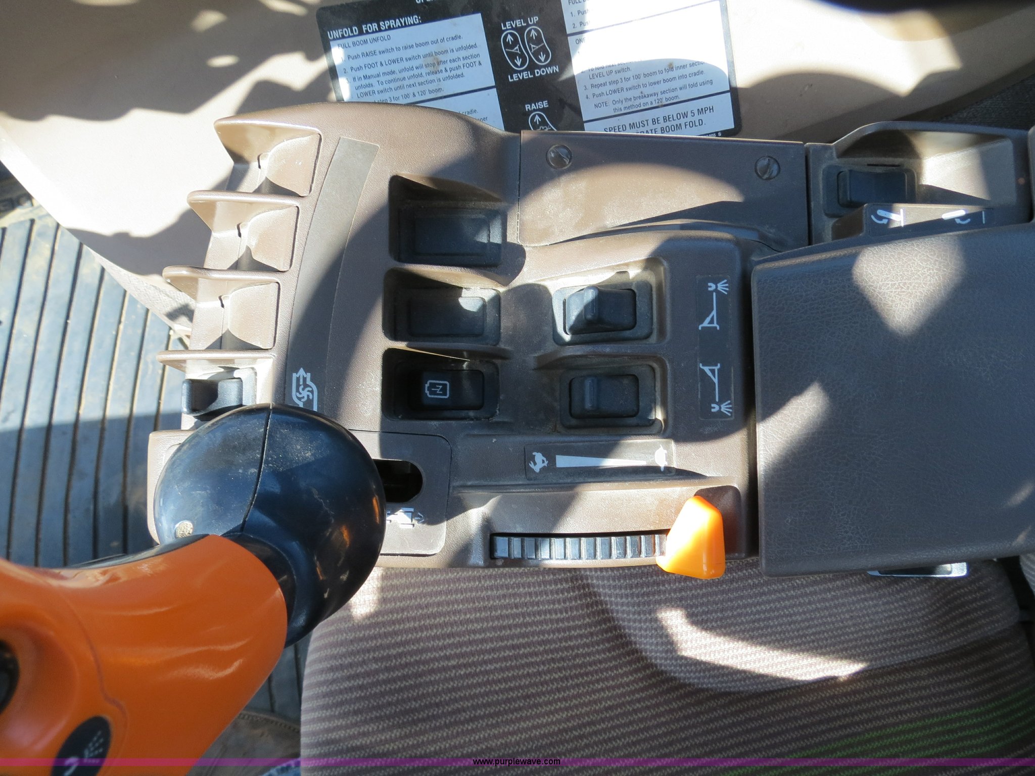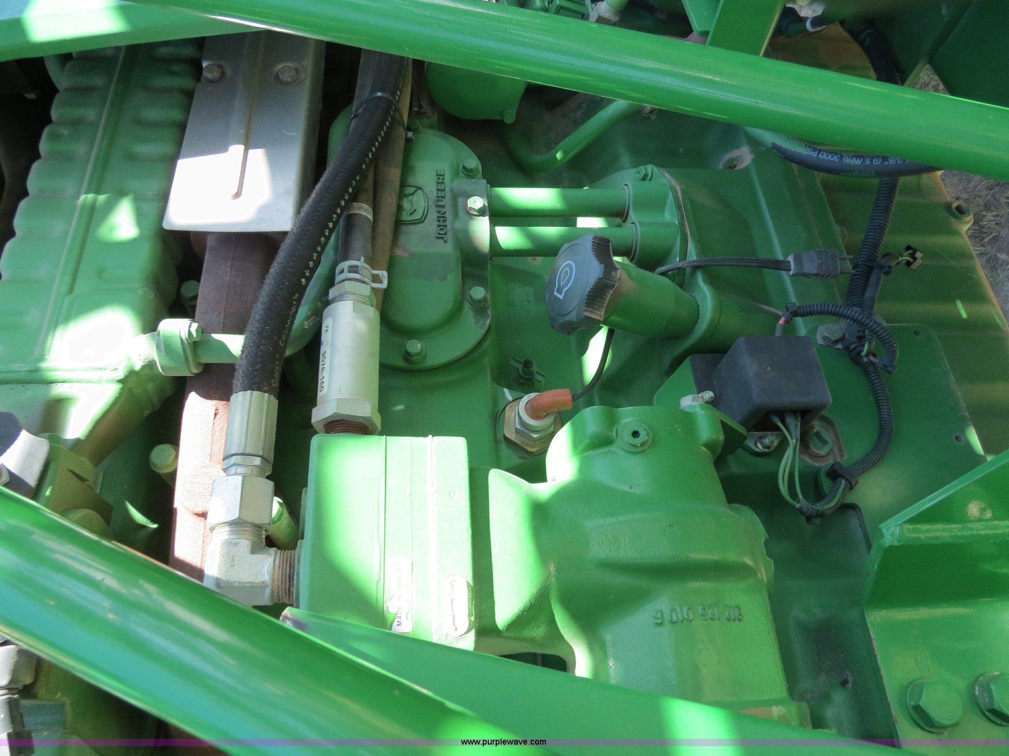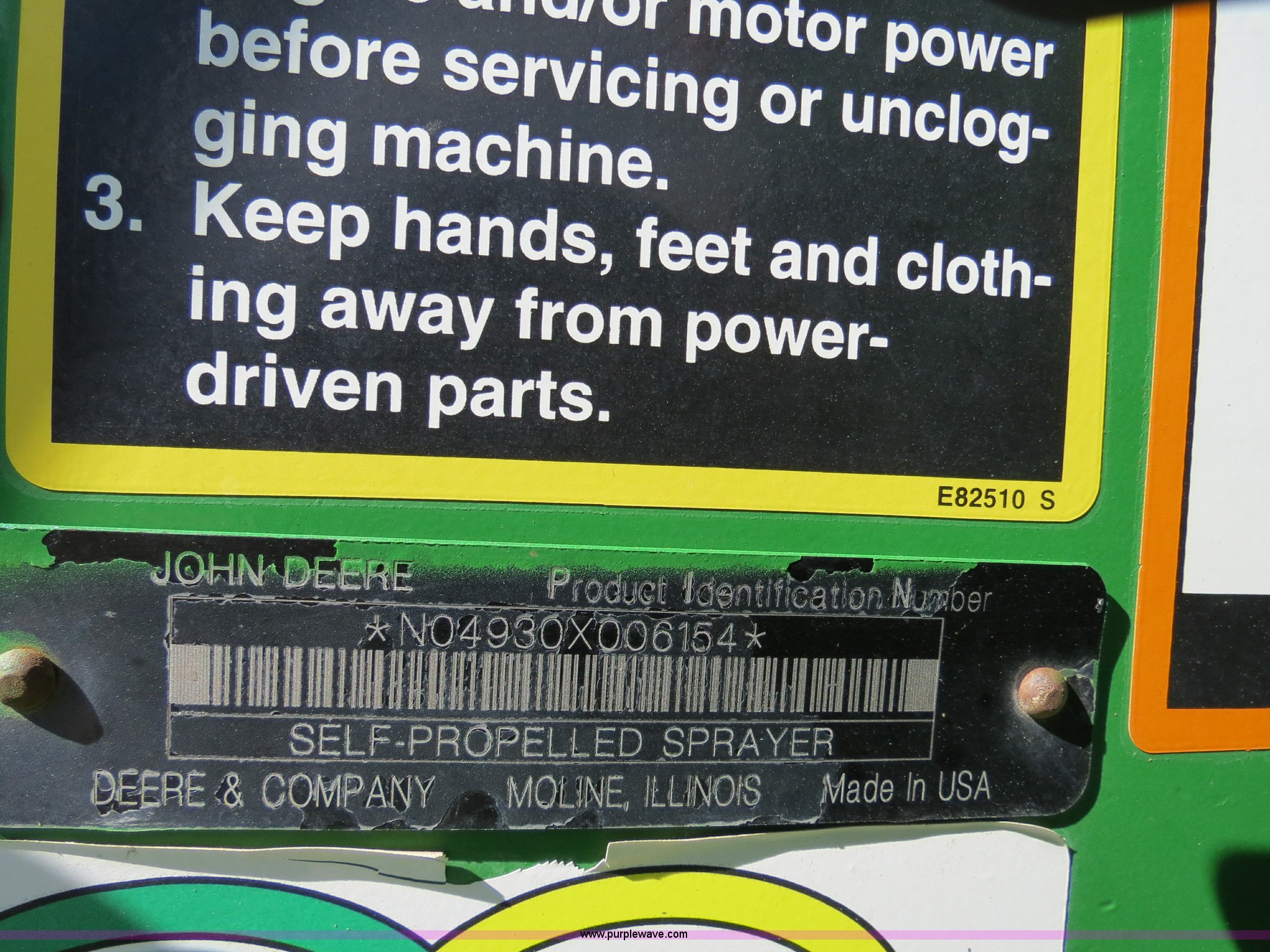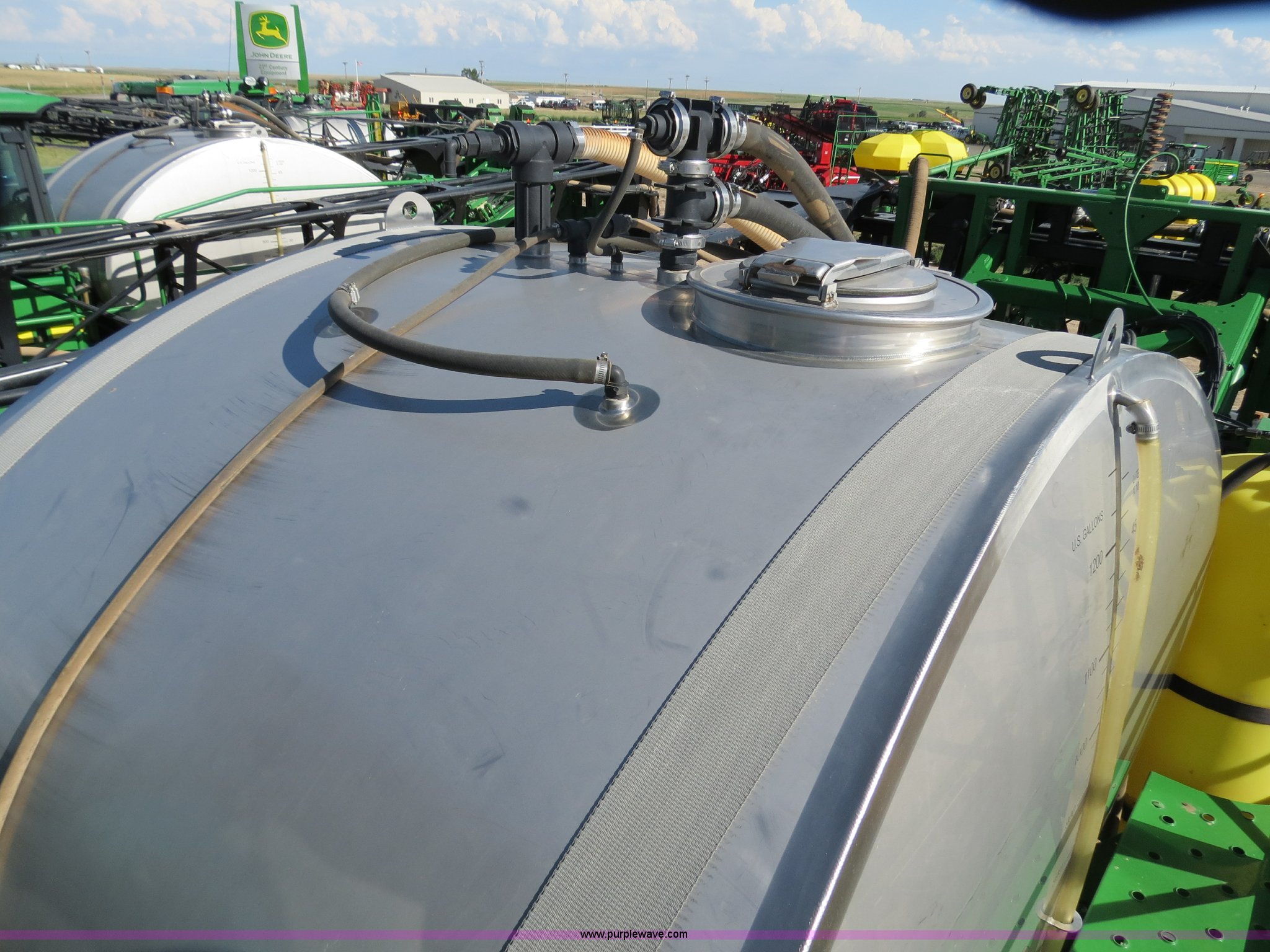 Purple Wave is selling a used Applicator Self Propelled in Colorado. This item is a 2009 John Deere 4930 self-propelled sprayer with the following: 1,870 hours on meter, John Deere 6090 9.0L six cylinder diesel engine, 325 HP, Serial RG6090L046067, Hydrostatic transmission, Four wheel drive, Engine block heater, 1,200 gallon stainless steel tank, 150 gallon rinse tank, 120'W boom, (7) boom sections, 20" nozzle spacing, Hydraulic height adjust, Hydraulic boom fold, Foam marker, Stainless steel chemical eductor, Auto air spring level system, Five position standard flow nozzle, Wet boom, Fence row nozzles, Boomtrac auto level system five sensor, AC and heat, AM/FM/CD, (4) speakers, Air suspension seat, Tilt/telescoping steering wheel, Xenon HID work lights, Radar ground speed sensor, Row crop fenders, Wheel motor shields, Wheel traction control, Hydraulic axle width adjust, 380/105R50 tires, Serial N04930X006154, Unit# C019027