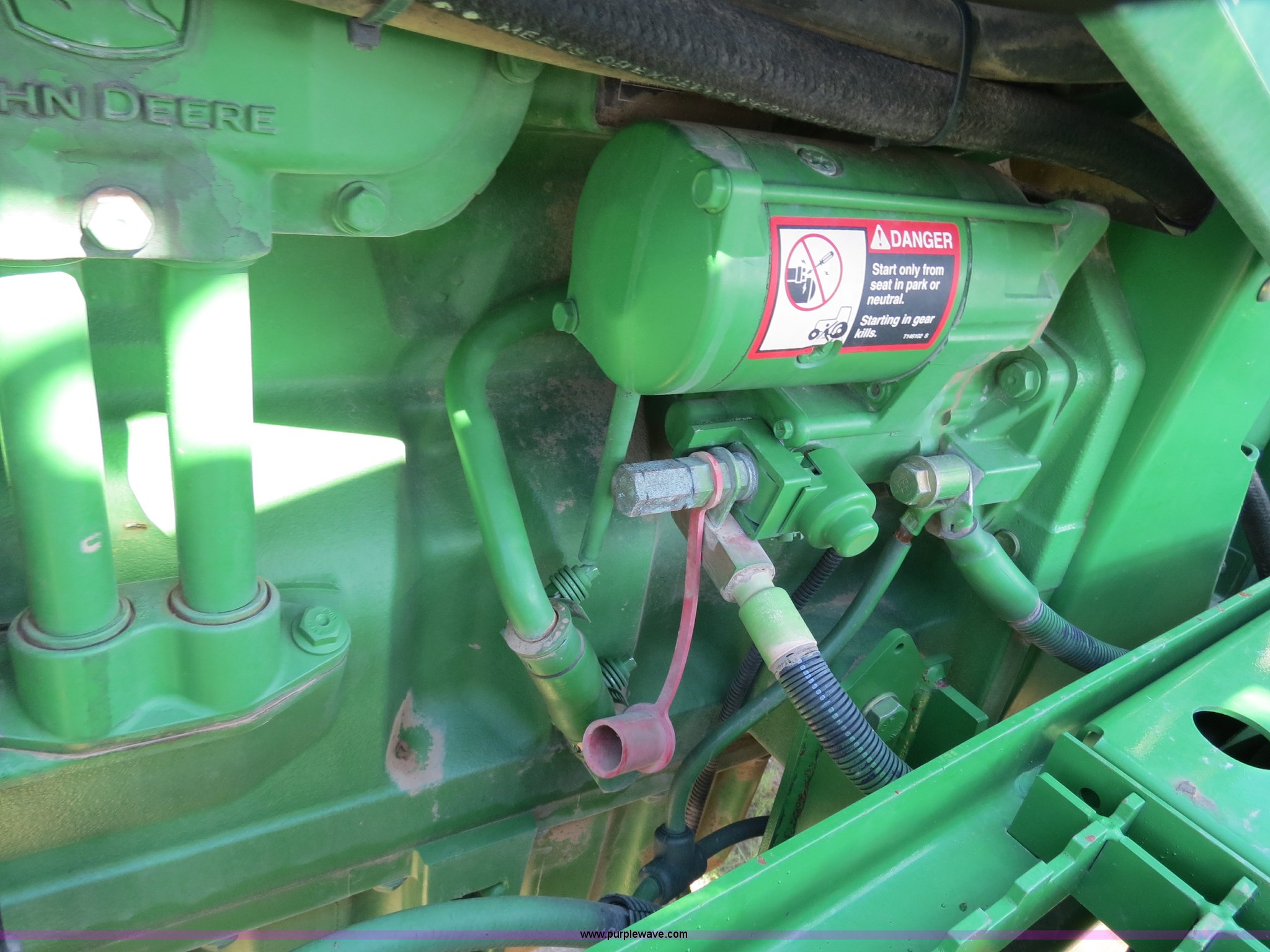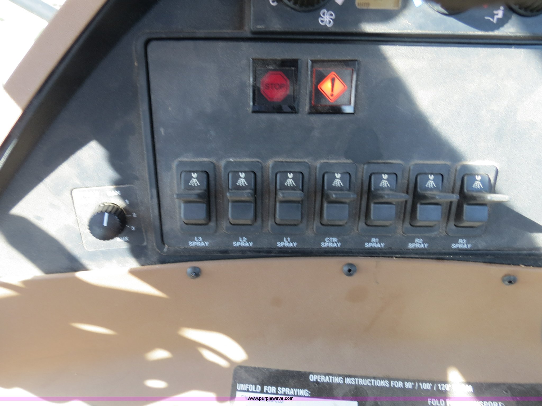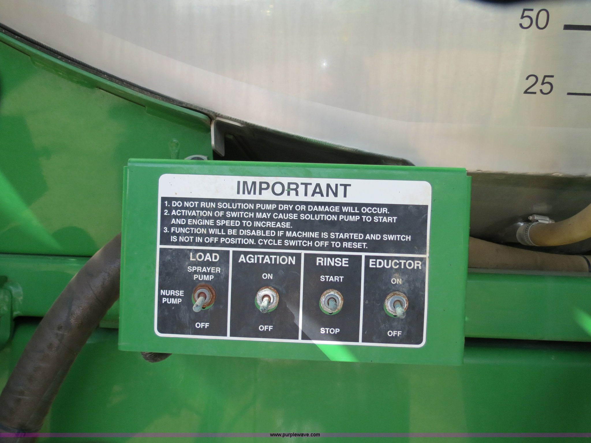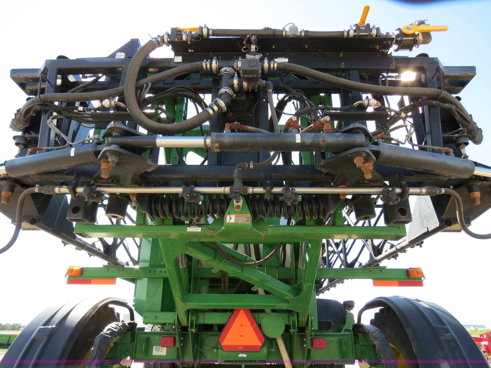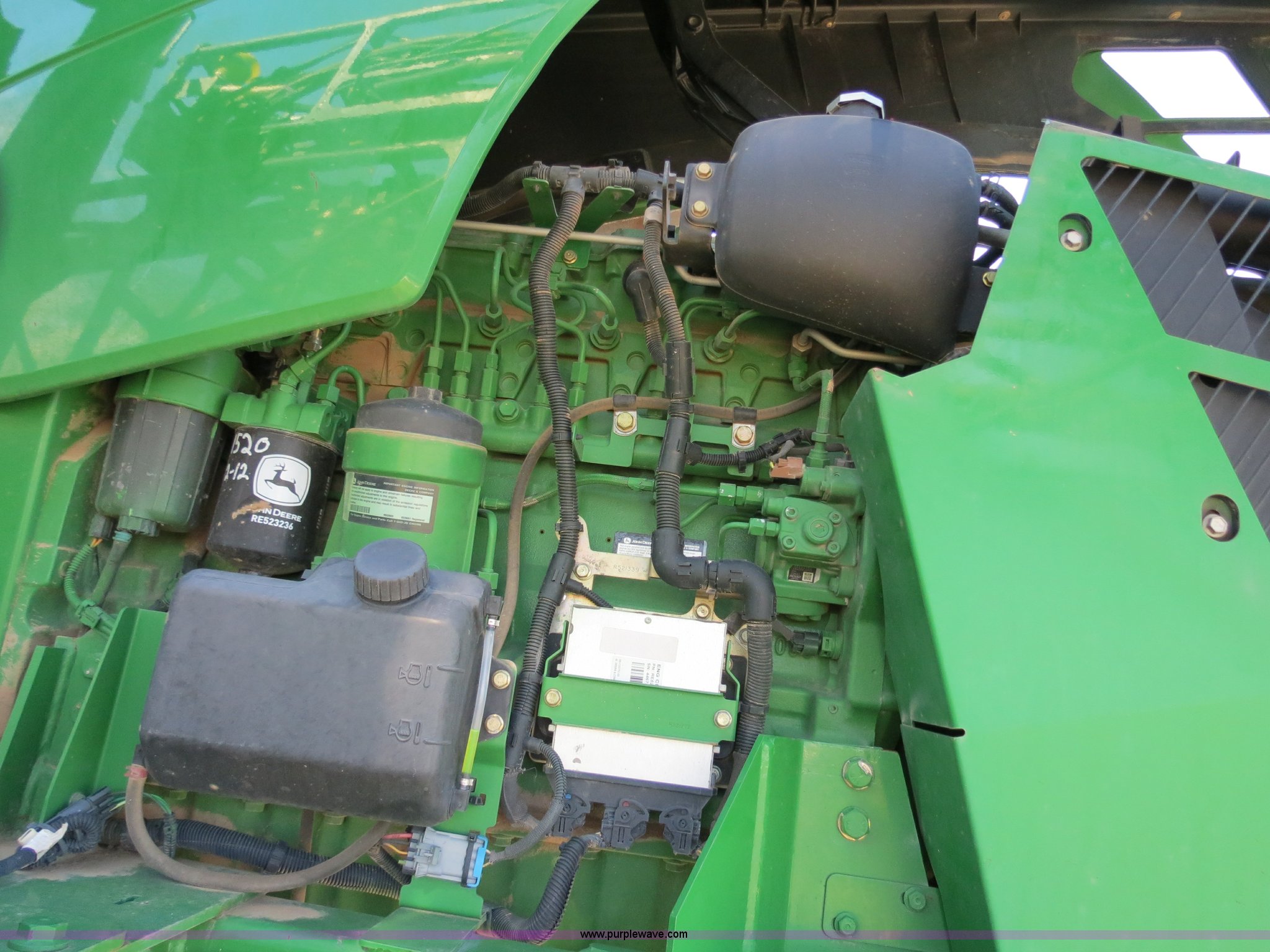 Purple Wave is selling a used Applicator Self Propelled in Colorado. This item is a 2009 John Deere 4930 self-propelled sprayer with the following: 1,870 hours on meter, John Deere 6090 9.0L six cylinder diesel engine, 325 HP, Serial RG6090L046067, Hydrostatic transmission, Four wheel drive, Engine block heater, 1,200 gallon stainless steel tank, 150 gallon rinse tank, 120'W boom, (7) boom sections, 20" nozzle spacing, Hydraulic height adjust, Hydraulic boom fold, Foam marker, Stainless steel chemical eductor, Auto air spring level system, Five position standard flow nozzle, Wet boom, Fence row nozzles, Boomtrac auto level system five sensor, AC and heat, AM/FM/CD, (4) speakers, Air suspension seat, Tilt/telescoping steering wheel, Xenon HID work lights, Radar ground speed sensor, Row crop fenders, Wheel motor shields, Wheel traction control, Hydraulic axle width adjust, 380/105R50 tires, Serial N04930X006154, Unit# C019027