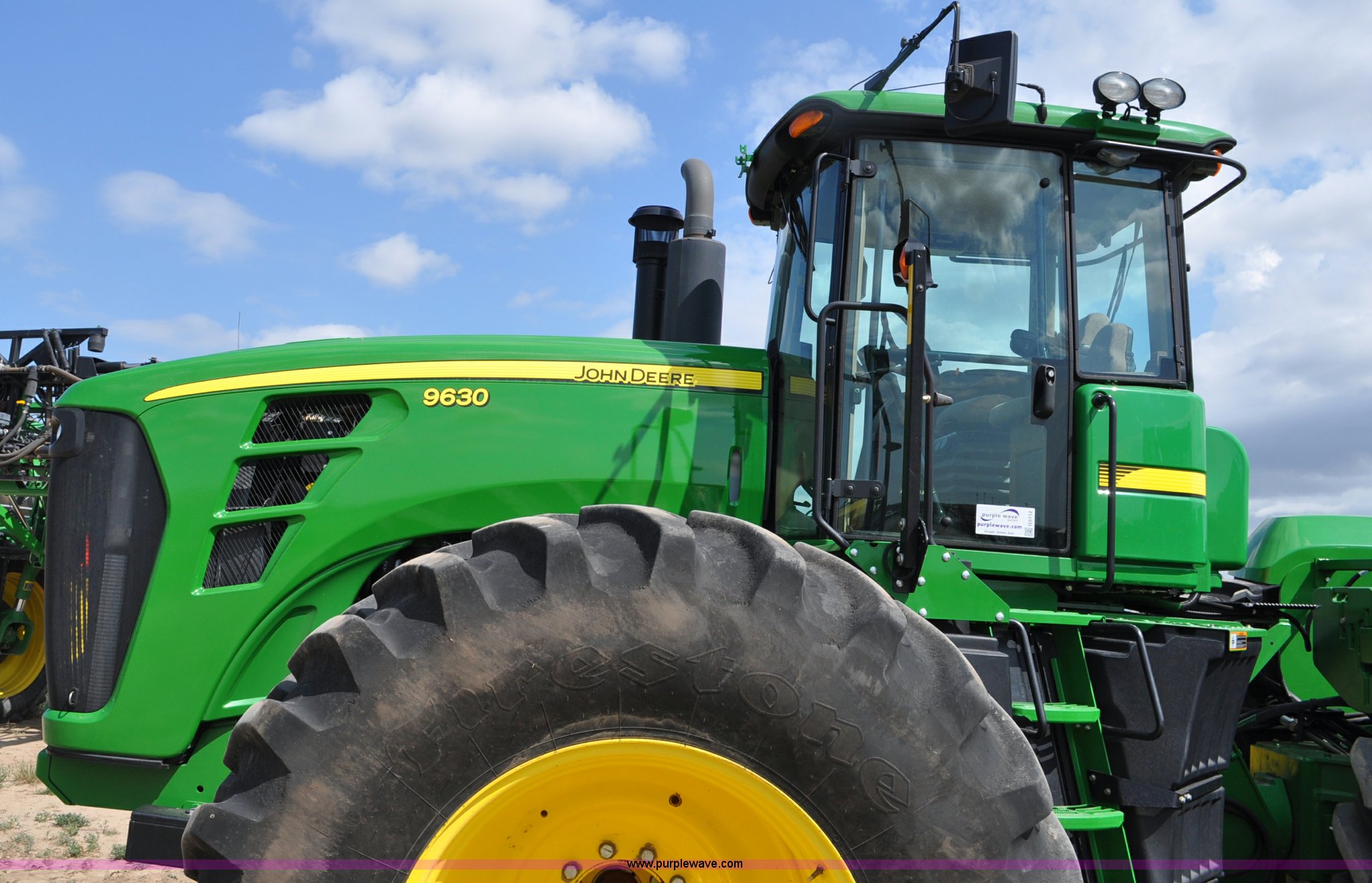Purple Wave is selling a used Articulated 4-Wheel Drive Tractor in Colorado. This item is a 2011 John Deere 9630 4WD tractor with the following: 740 hours on meter, John Deere 6135 13.5L six cylinder diesel engine, 530 HP, Serial RG6135L020674, Powershift transmission, 18F-6R gears, Differential lock, AC and heat, AM/FM/CD, Active seat, Instructor's seat, Power mirrors, Windshield wipers, Ground radar, Visor, Greenstar ready, Xenon rear lighting, Implement Management System, Draw bar, (5) rear hydraulic remotes, 350 gallon fuel tank, (20) rear suitcase weights, Wheel weights, 800/70R38 dual tires, Serial 1RW9630PKBP022892, Unit# C012235