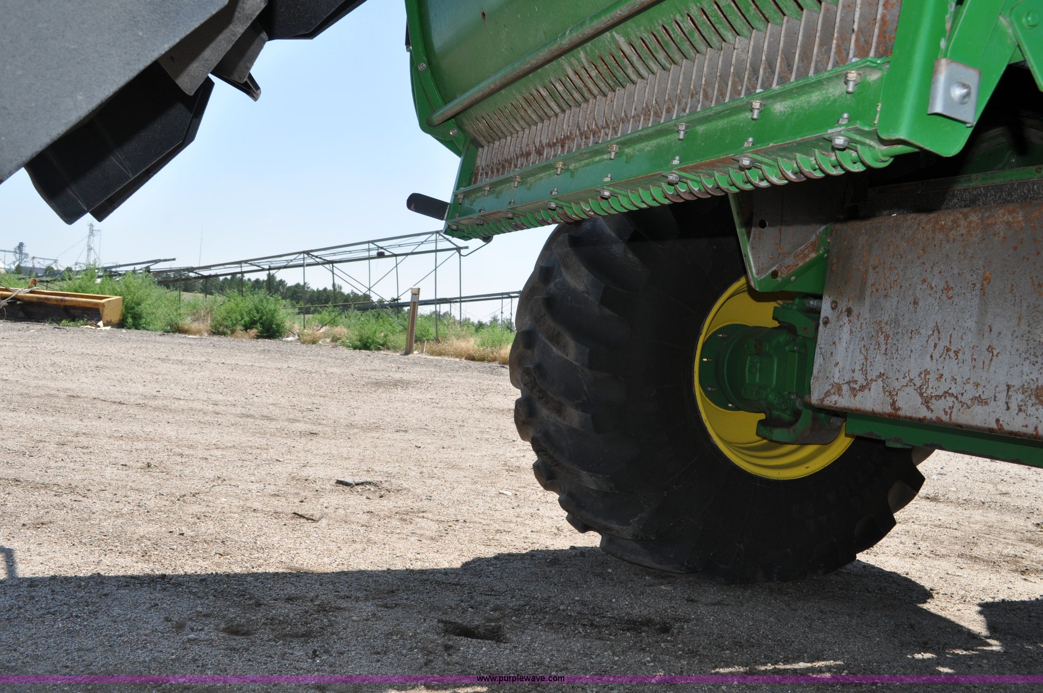 Purple Wave is selling a used Combine in Colorado. This item is a 2010 John Deere 9770 STS RWA combine with the following: 1,681 engine hours on meter, 1,169 separator hours on meter, John Deere 6090 9.0L six cylinder diesel engine, 360 HP, Serial RG6090L076784, ProDrive hydrostatic transmission, Two speed auto shift, Heavy duty final drives, Contour Master feeder house, Xtra Hi-Torque five speed, Reverser, Single point hookup, Custom cutter extended wear package, Automatic self-leveling shoe option, Straw chopper, Power tailboard, Premier cab, AC and heat, AM/FM/CD/weatherband, Air seat, Instructor's seat, Tilt steering wheel, Shades and visors, Engine block heater, Bullet rotor, Harvest Smart™ feed rate control system, John Deere bin extension, Exterior wear system, Hi capacity 26' unload auger, Round bar concaves, Work lights, Two speed rotor, Greenstar ready, Yield monitor, 20.8R42 dual drive tires, 28L-26 rear tires, Serial 1H09770SJA0736370, Unit# C020364