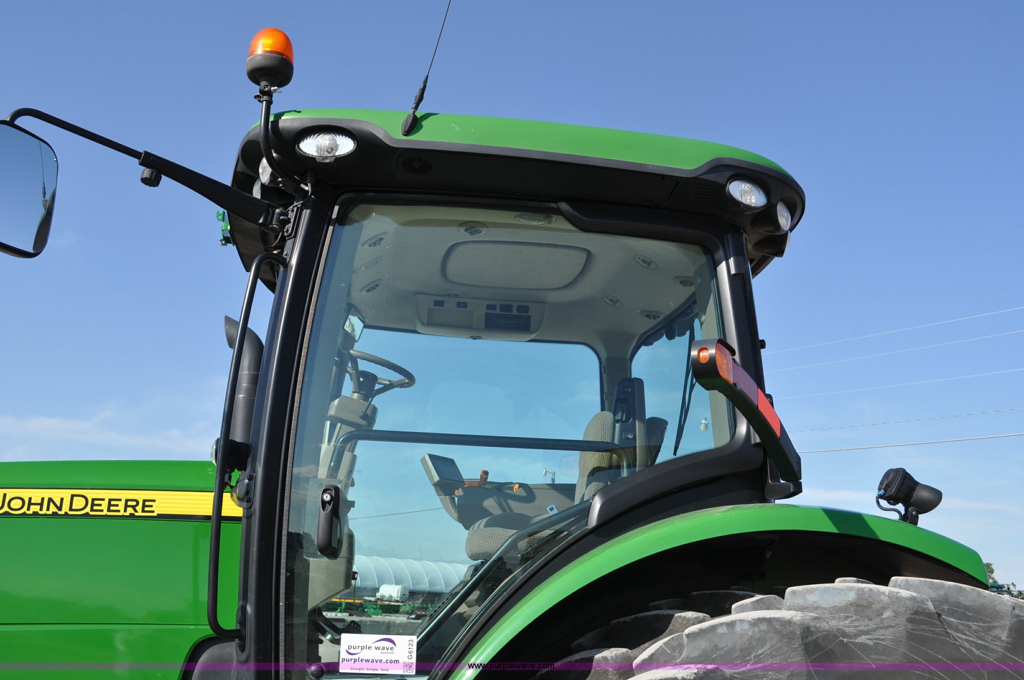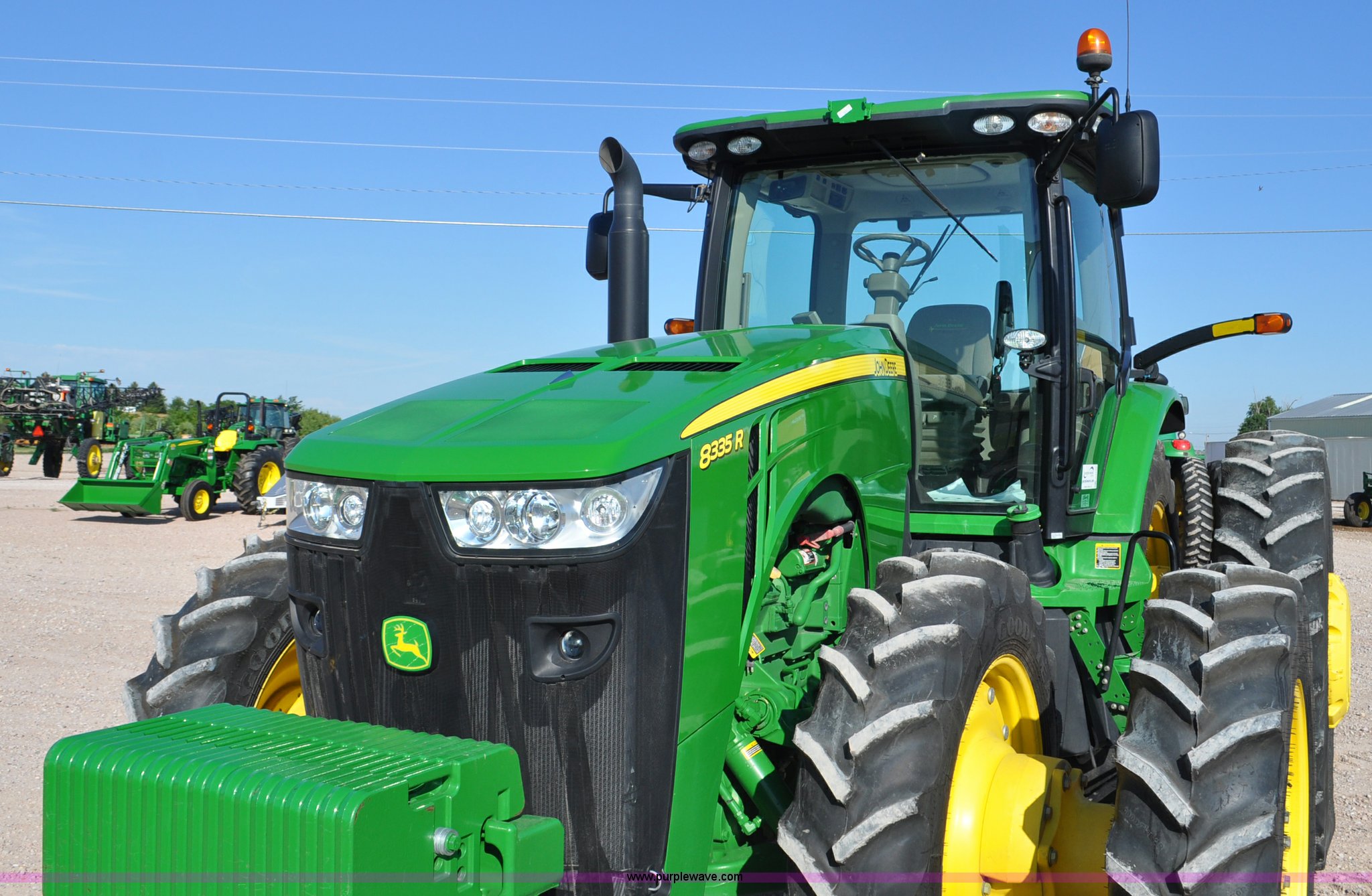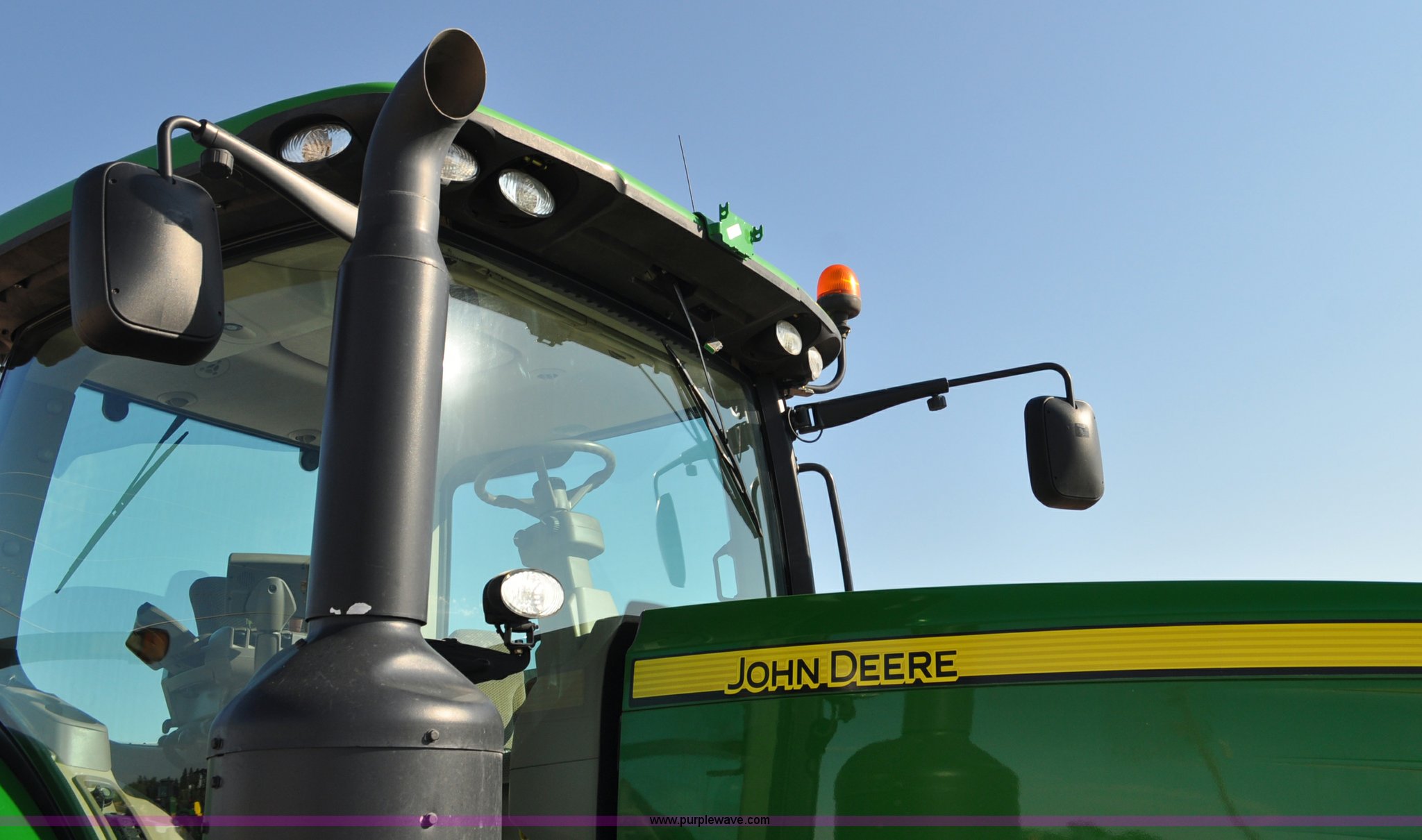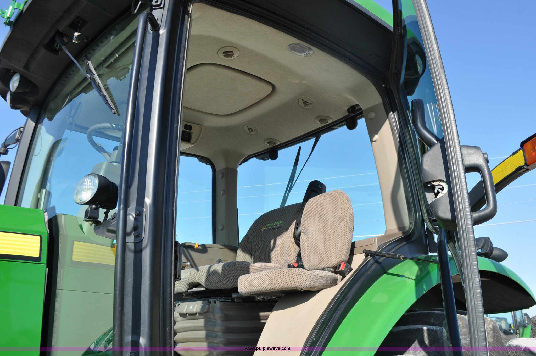 Purple Wave is selling a used Tractor in Nebraska. This item is a 2011 John Deere 8335R MFWD tractor with the following: 1,442 hours on meter, John Deere 6090 9.0L six cylinder diesel engine, IVT transmission, Differential lock, Commandview II Premium cab, AC and heat, AM/FM/CD/XM/weatherband, Active air seat, Instructor's seat, Tilt steering wheel, Visor, Foot operated throttle control, HID light package, Engine block heater, Three point, Quick attach, Draw bar, 1000 PTO, (5) rear hydraulic remotes, Independent link suspension, (20) suitcase weights, Wheel weights, 118.9 wheelbase, 380/80R38 dual front tires, 480/80R50 dual rear tires, New warrantied front tires, Top link on quick tach will be replaced by auction date, Basic Warranty until September 14, 2013, Extended Power Train Warranty until September 14, 2014, JDLINK ULT Promo until September 14, 2014, Serial 1RW8335REBD045194, Unit# C011528