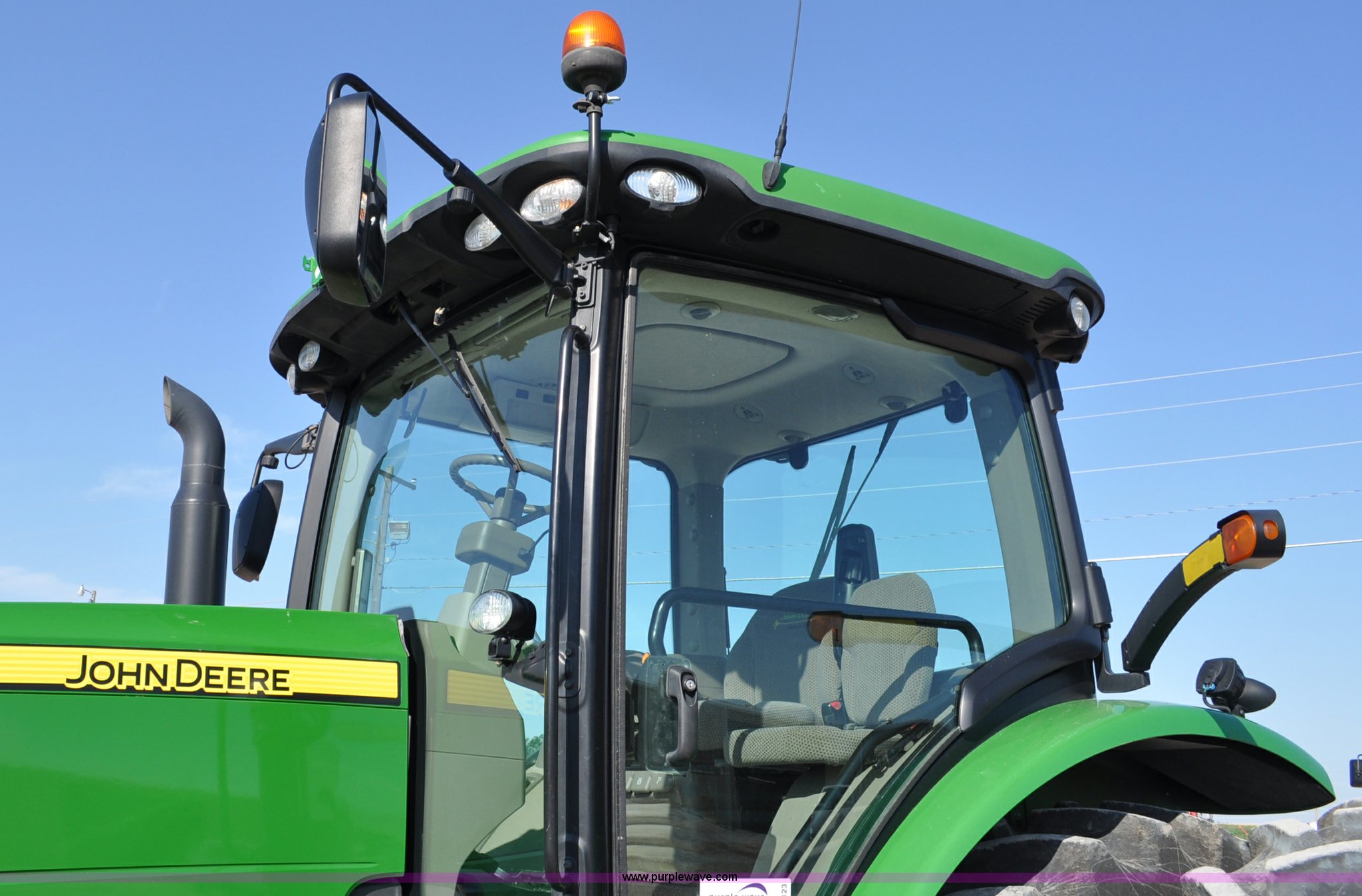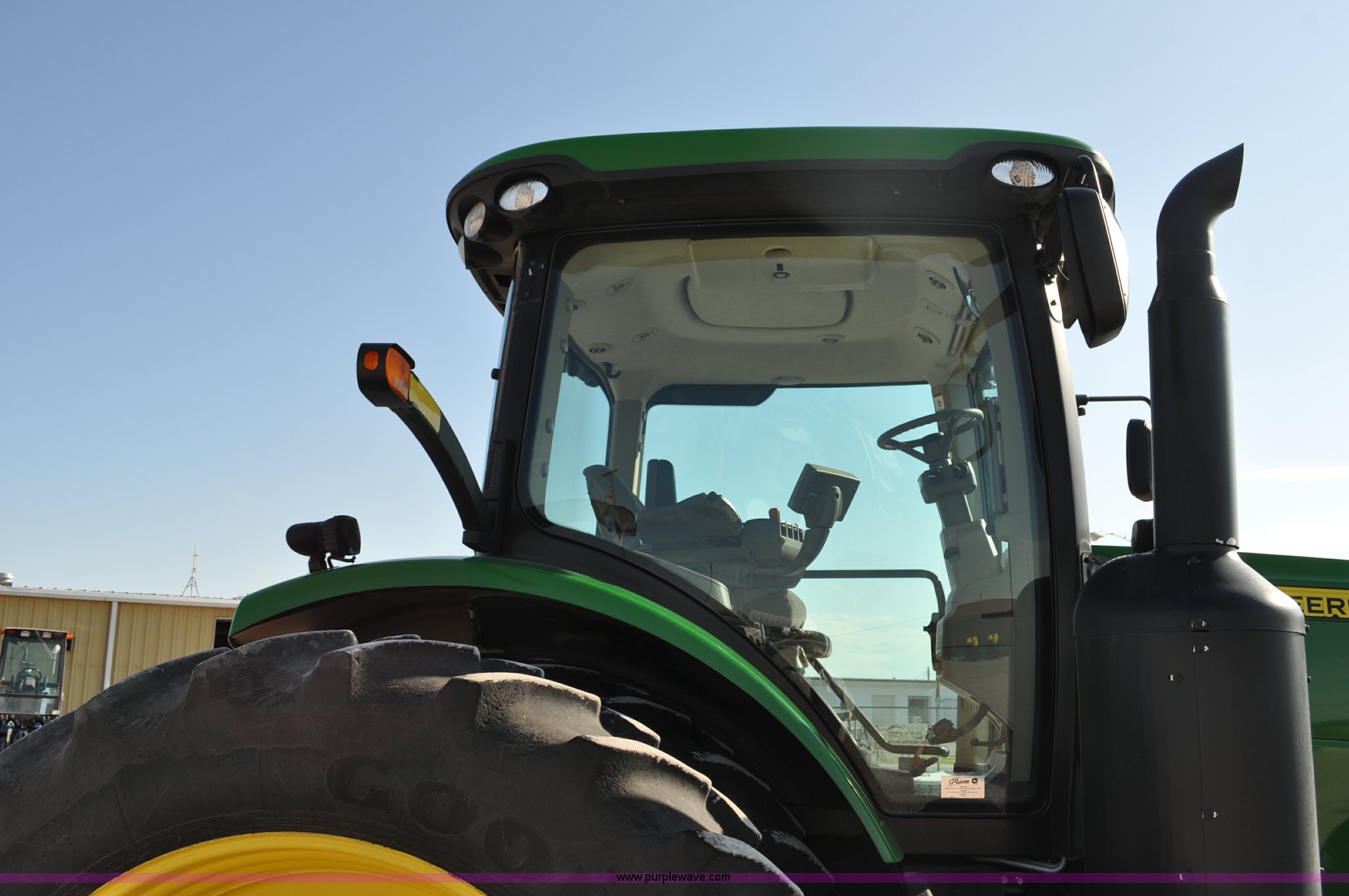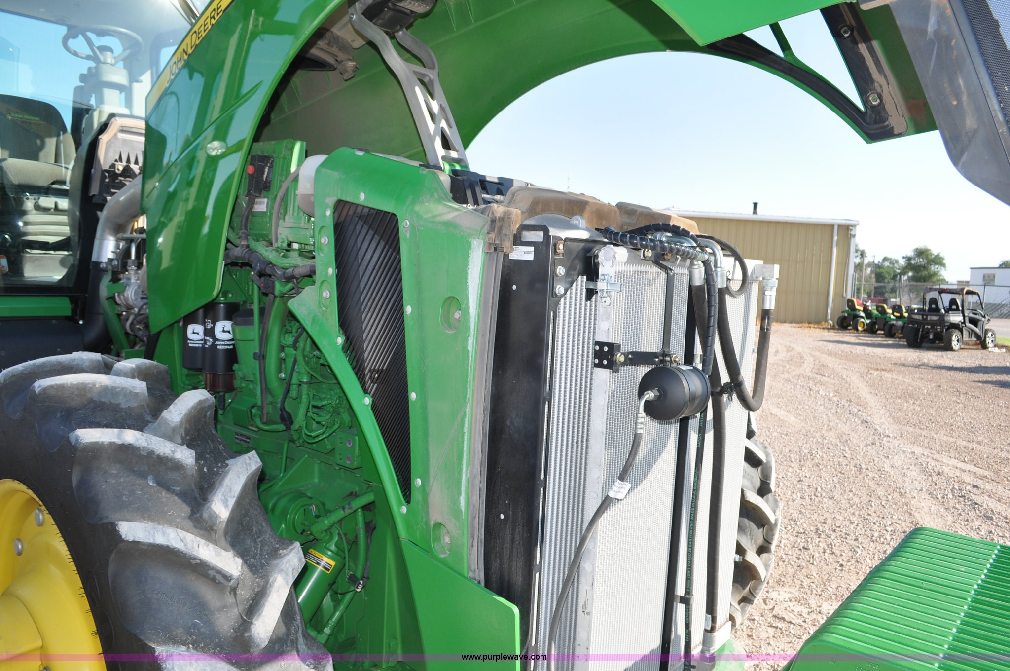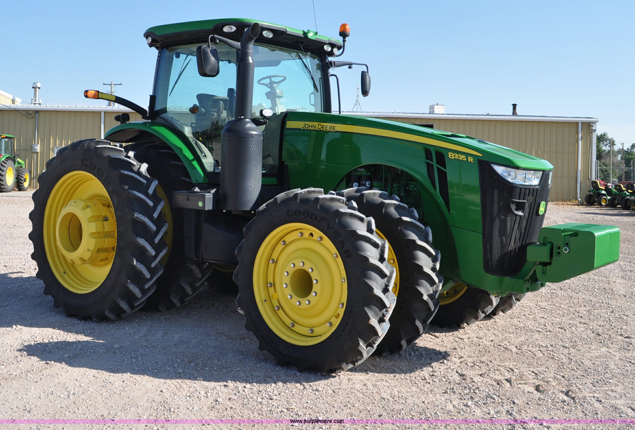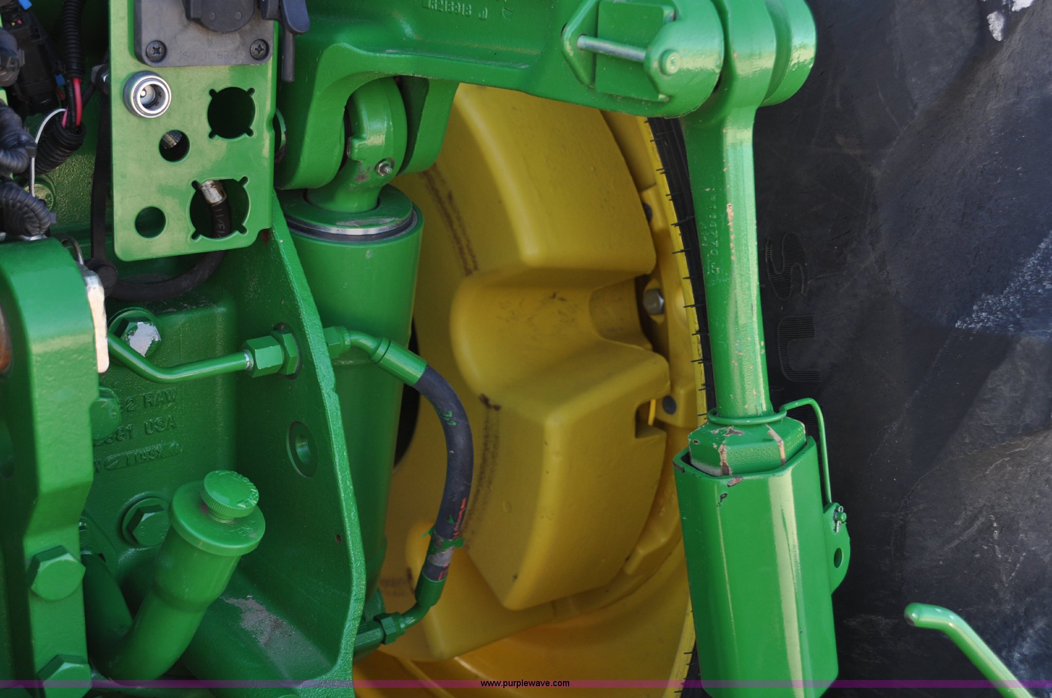 Purple Wave is selling a used Tractor in Nebraska. This item is a 2011 John Deere 8335R MFWD tractor with the following: 1,442 hours on meter, John Deere 6090 9.0L six cylinder diesel engine, IVT transmission, Differential lock, Commandview II Premium cab, AC and heat, AM/FM/CD/XM/weatherband, Active air seat, Instructor's seat, Tilt steering wheel, Visor, Foot operated throttle control, HID light package, Engine block heater, Three point, Quick attach, Draw bar, 1000 PTO, (5) rear hydraulic remotes, Independent link suspension, (20) suitcase weights, Wheel weights, 118.9 wheelbase, 380/80R38 dual front tires, 480/80R50 dual rear tires, New warrantied front tires, Top link on quick tach will be replaced by auction date, Basic Warranty until September 14, 2013, Extended Power Train Warranty until September 14, 2014, JDLINK ULT Promo until September 14, 2014, Serial 1RW8335REBD045194, Unit# C011528