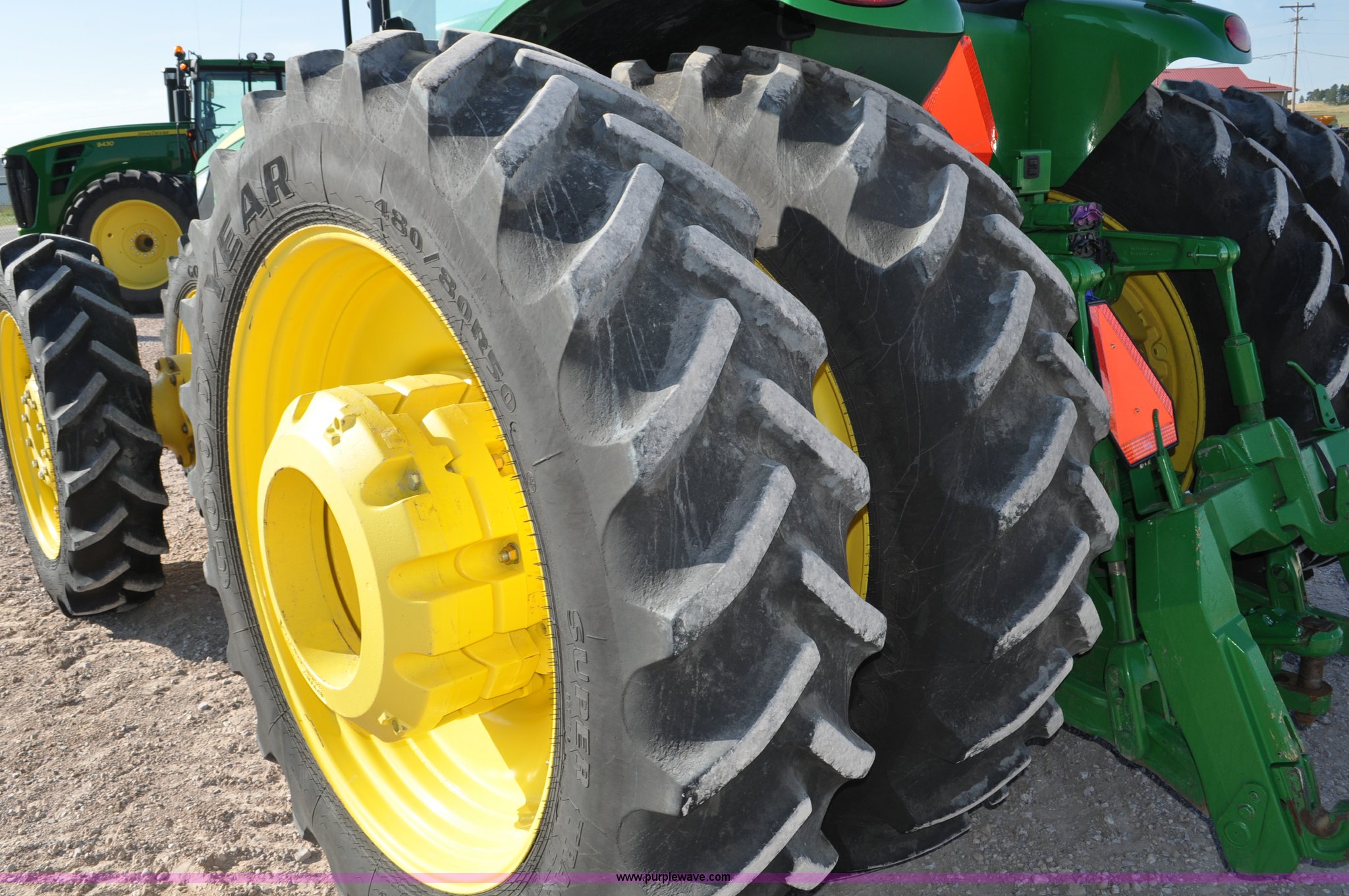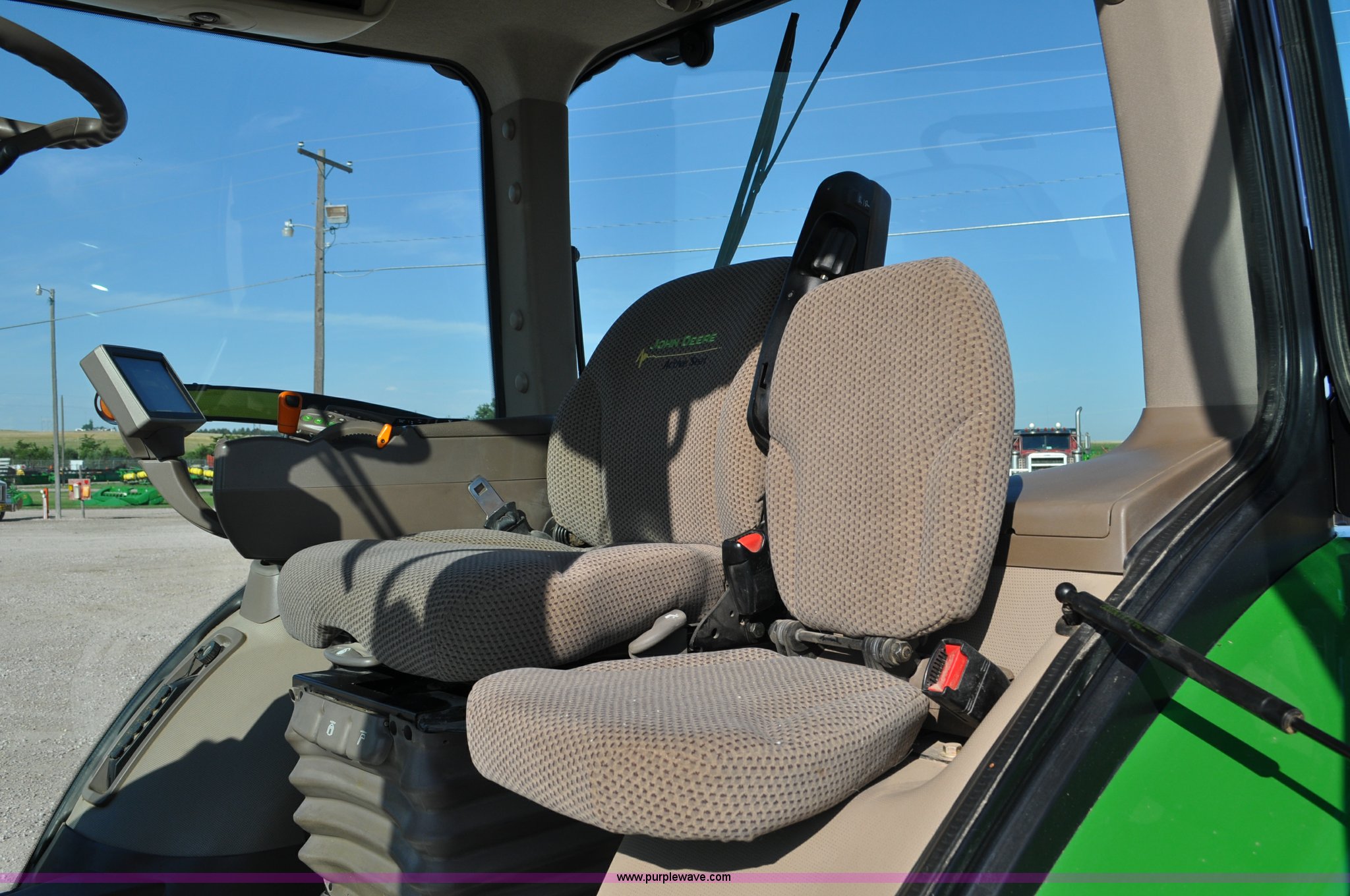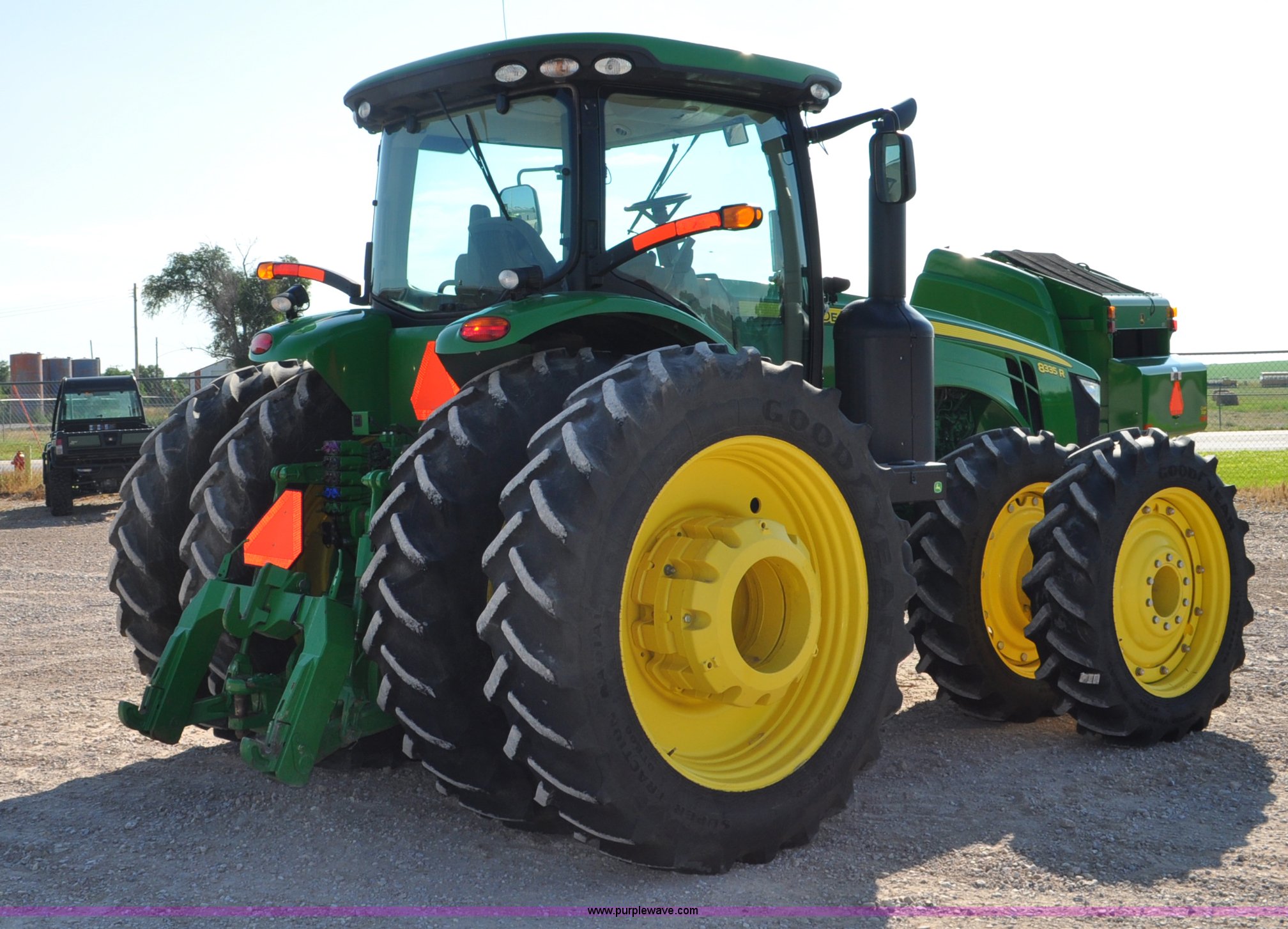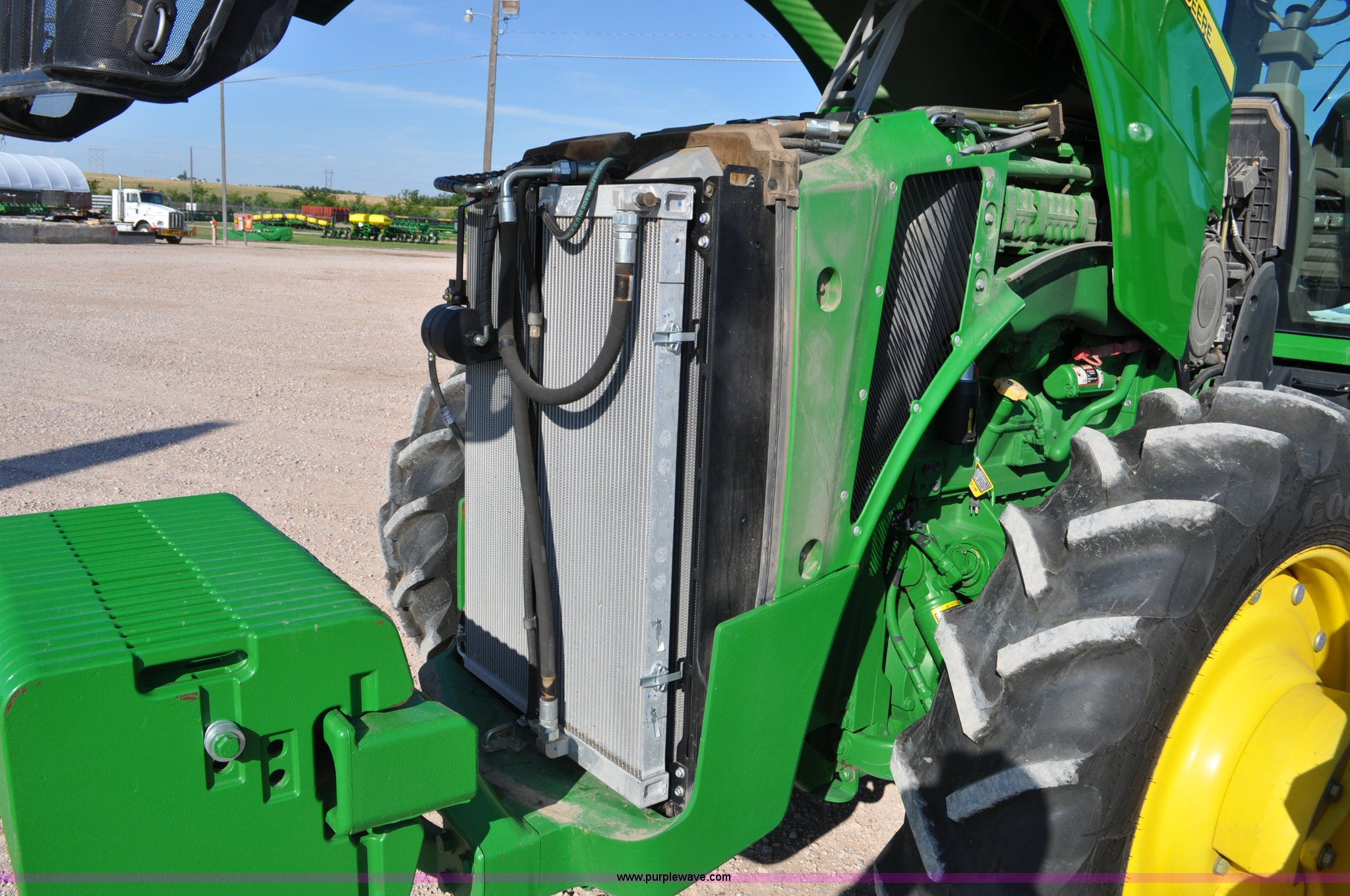 Purple Wave is selling a used Tractor in Nebraska. This item is a 2011 John Deere 8335R MFWD tractor with the following: 1,442 hours on meter, John Deere 6090 9.0L six cylinder diesel engine, IVT transmission, Differential lock, Commandview II Premium cab, AC and heat, AM/FM/CD/XM/weatherband, Active air seat, Instructor's seat, Tilt steering wheel, Visor, Foot operated throttle control, HID light package, Engine block heater, Three point, Quick attach, Draw bar, 1000 PTO, (5) rear hydraulic remotes, Independent link suspension, (20) suitcase weights, Wheel weights, 118.9 wheelbase, 380/80R38 dual front tires, 480/80R50 dual rear tires, New warrantied front tires, Top link on quick tach will be replaced by auction date, Basic Warranty until September 14, 2013, Extended Power Train Warranty until September 14, 2014, JDLINK ULT Promo until September 14, 2014, Serial 1RW8335REBD045194, Unit# C011528