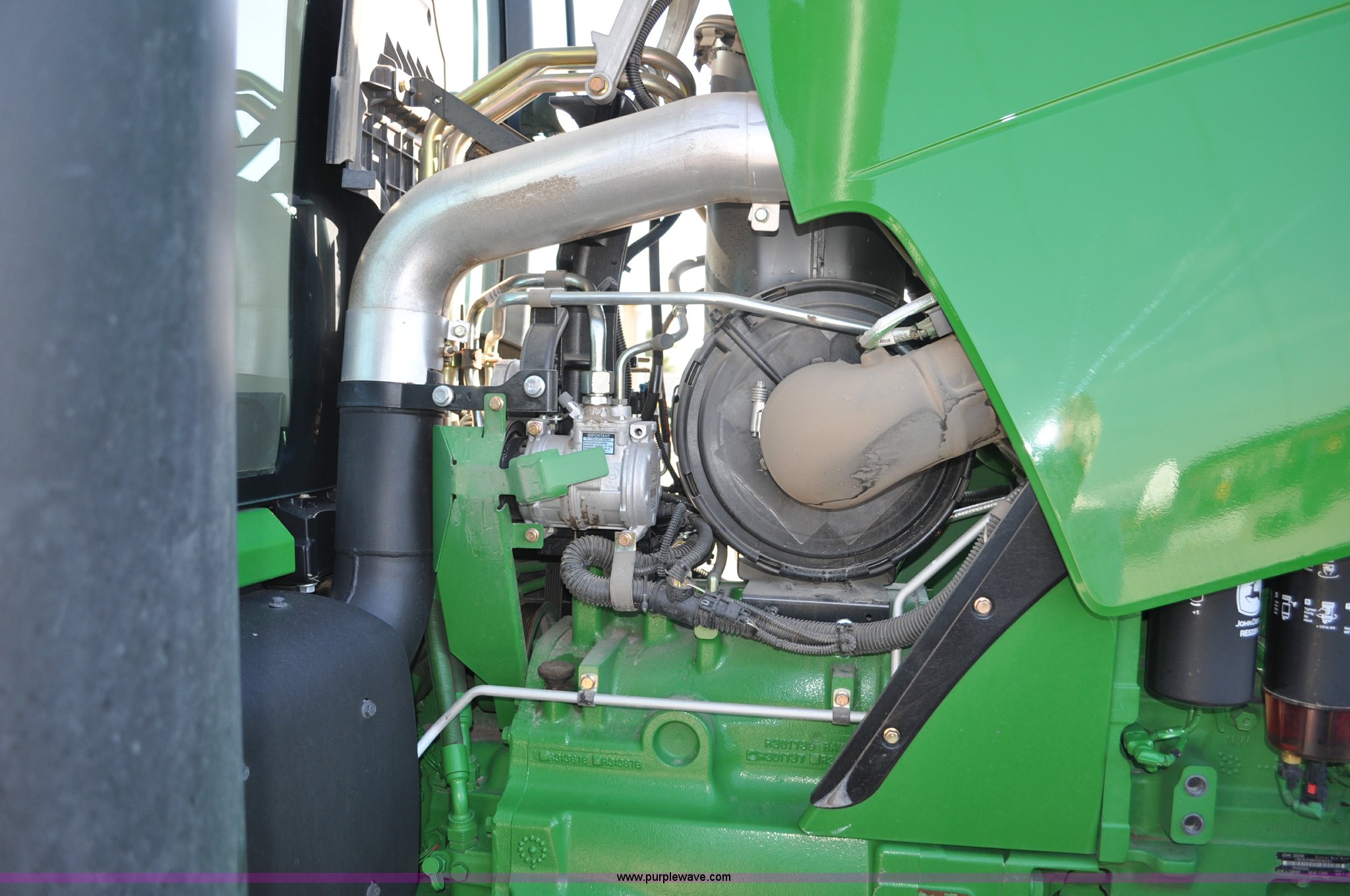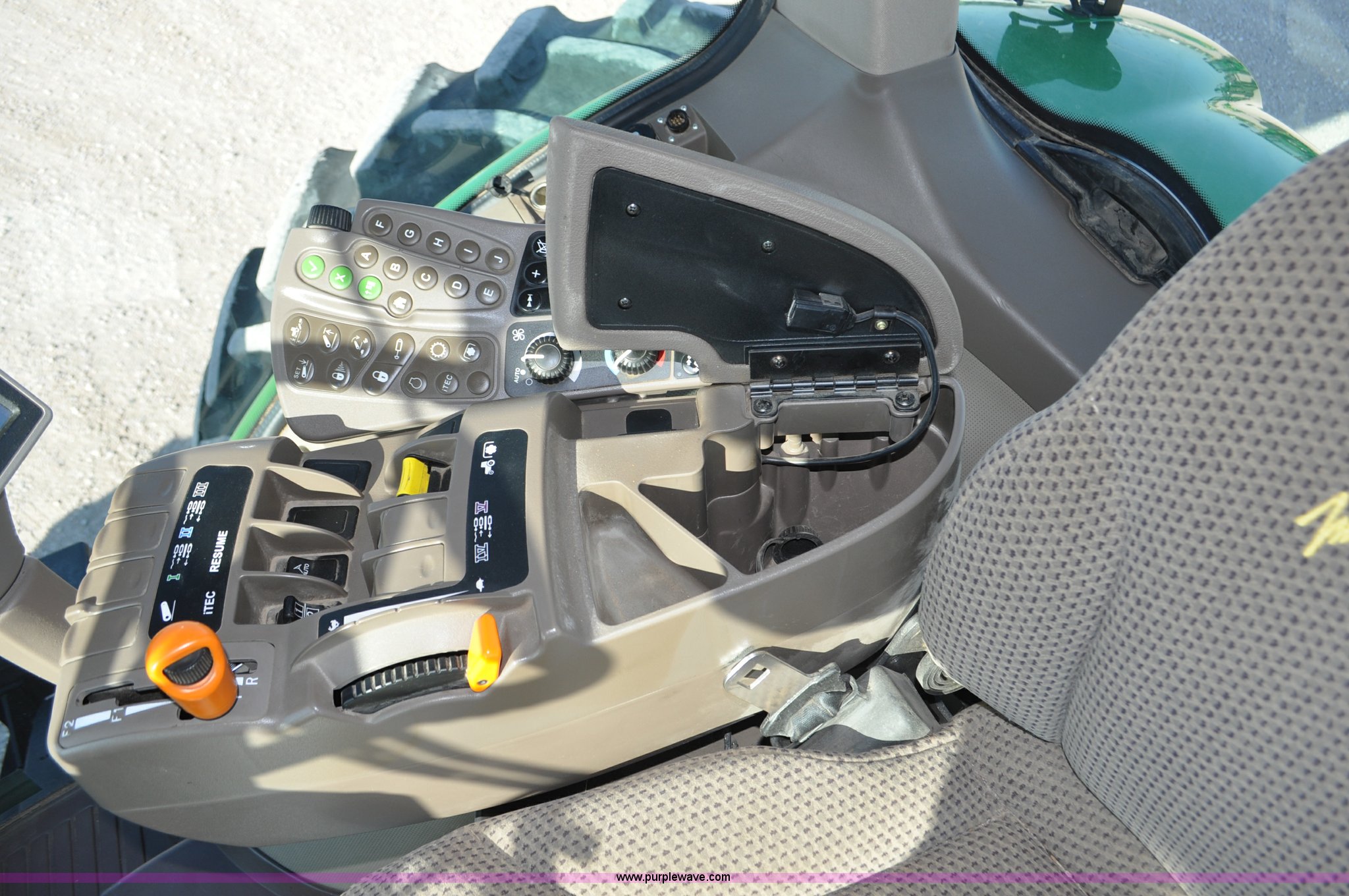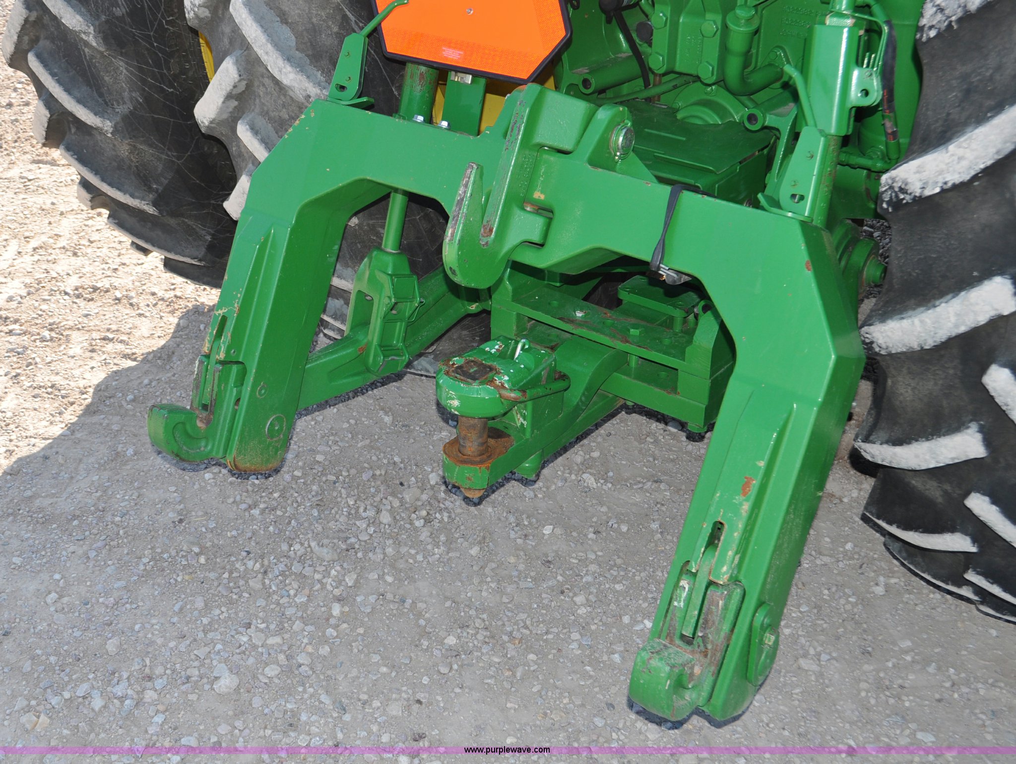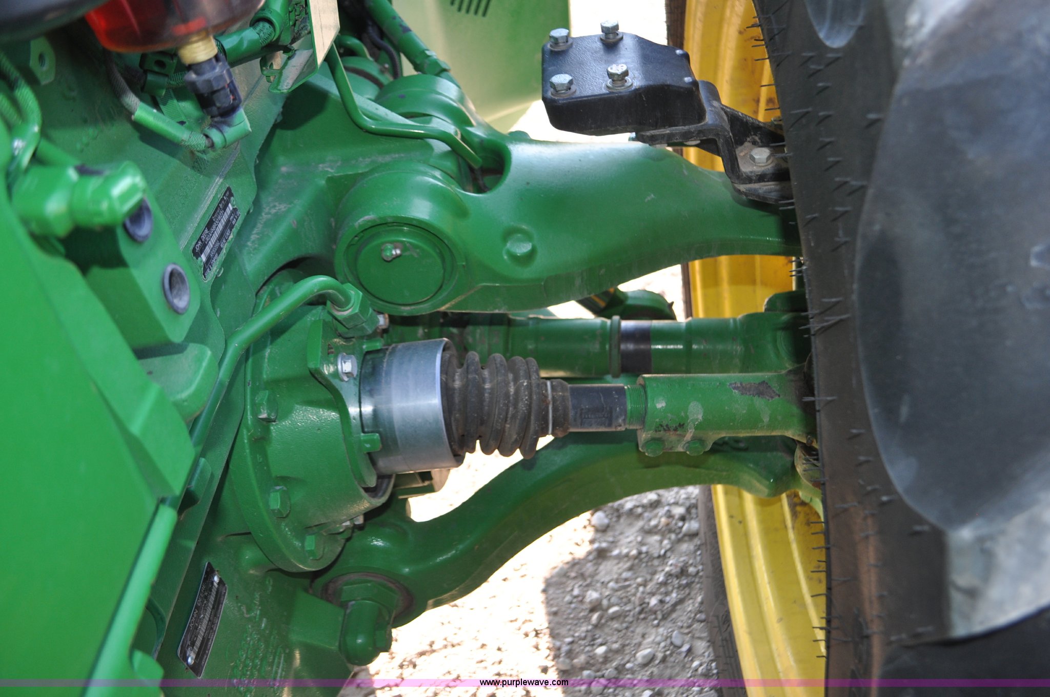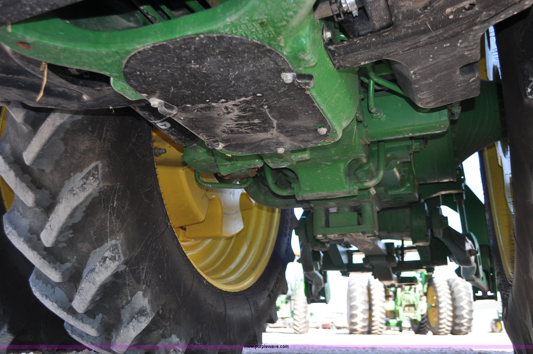 Purple Wave is selling a used Tractor in Nebraska. This item is a 2011 John Deere 8335R MFWD tractor with the following: 1,442 hours on meter, John Deere 6090 9.0L six cylinder diesel engine, IVT transmission, Differential lock, Commandview II Premium cab, AC and heat, AM/FM/CD/XM/weatherband, Active air seat, Instructor's seat, Tilt steering wheel, Visor, Foot operated throttle control, HID light package, Engine block heater, Three point, Quick attach, Draw bar, 1000 PTO, (5) rear hydraulic remotes, Independent link suspension, (20) suitcase weights, Wheel weights, 118.9 wheelbase, 380/80R38 dual front tires, 480/80R50 dual rear tires, New warrantied front tires, Top link on quick tach will be replaced by auction date, Basic Warranty until September 14, 2013, Extended Power Train Warranty until September 14, 2014, JDLINK ULT Promo until September 14, 2014, Serial 1RW8335REBD045194, Unit# C011528