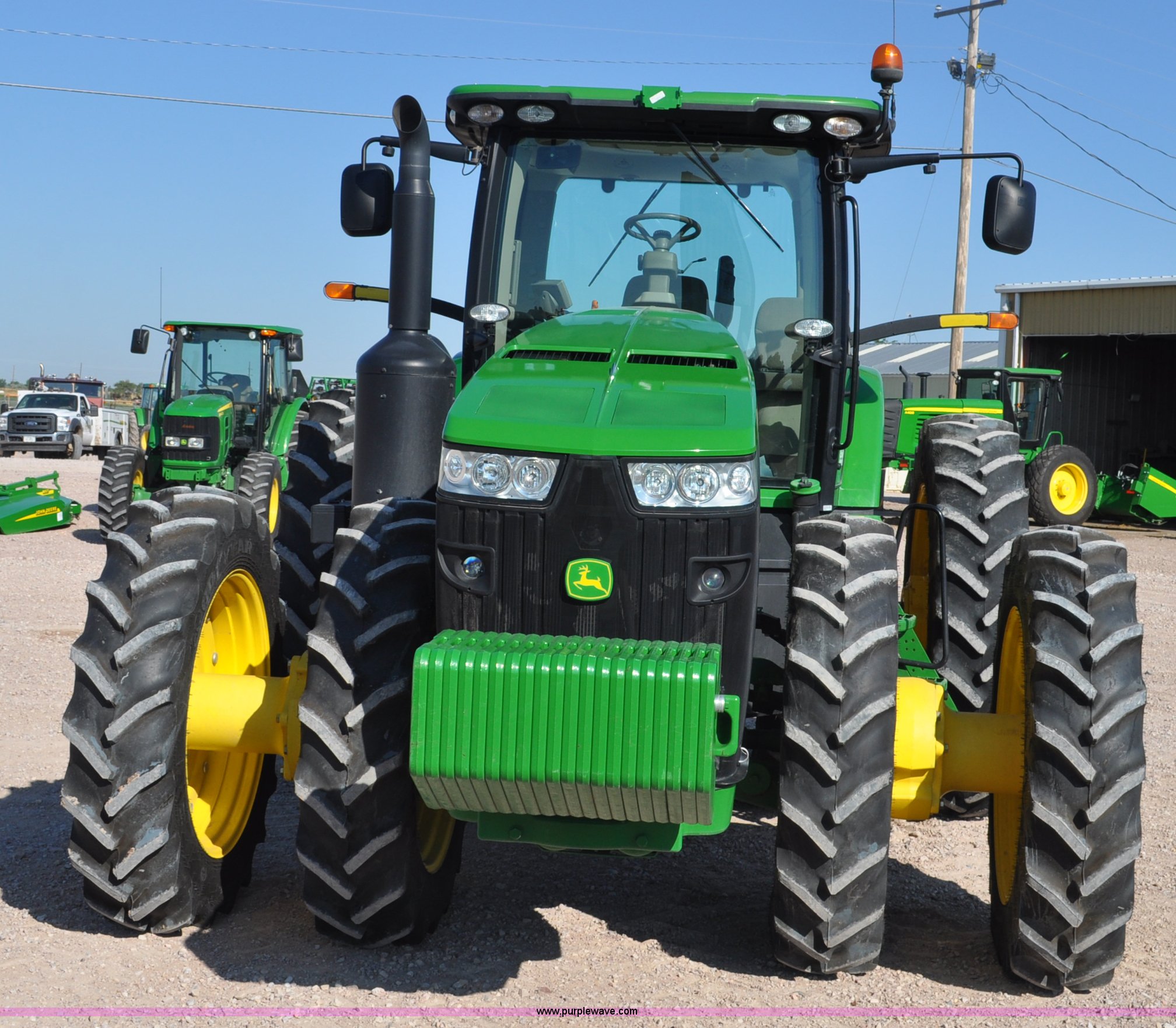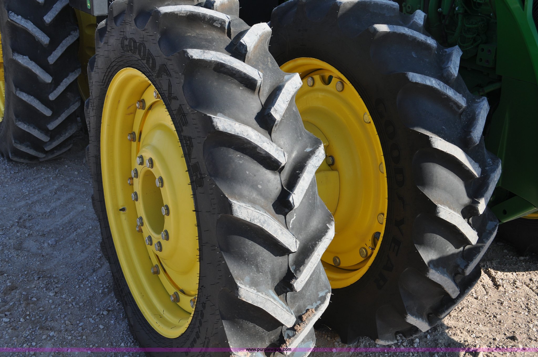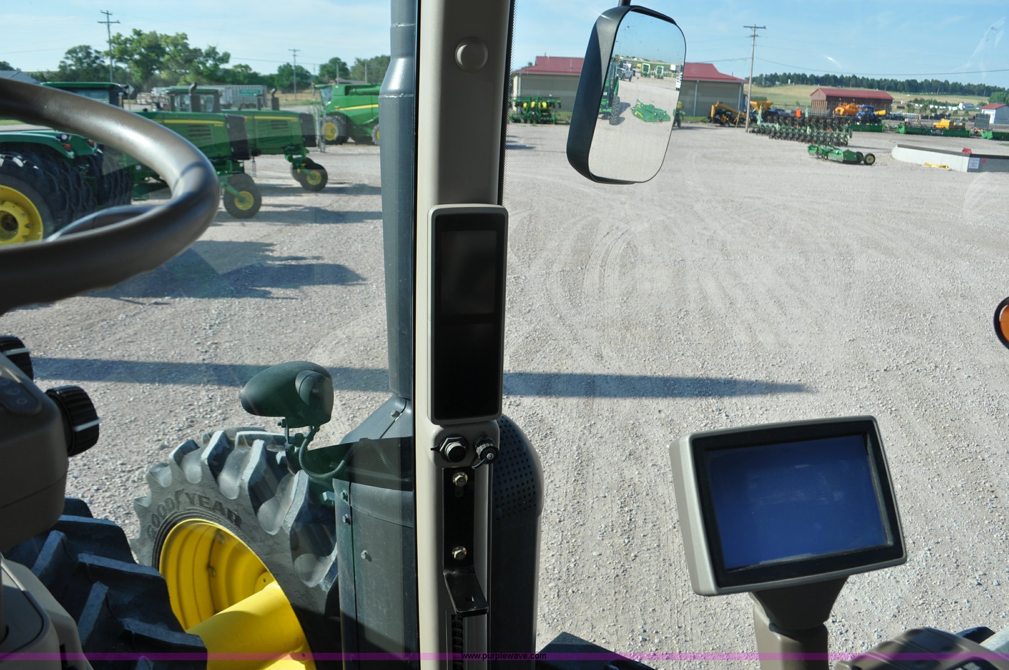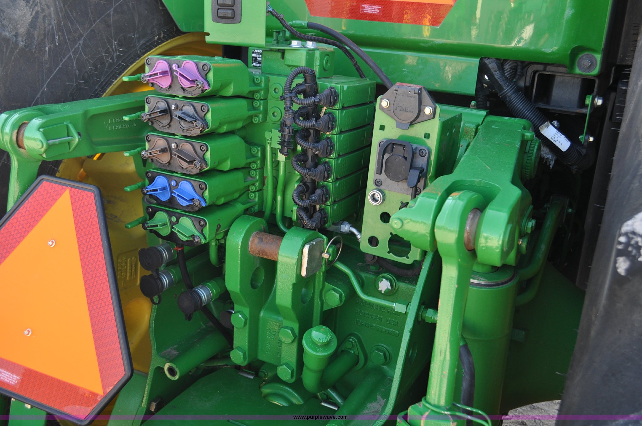 Purple Wave is selling a used Tractor in Nebraska. This item is a 2011 John Deere 8335R MFWD tractor with the following: 1,442 hours on meter, John Deere 6090 9.0L six cylinder diesel engine, IVT transmission, Differential lock, Commandview II Premium cab, AC and heat, AM/FM/CD/XM/weatherband, Active air seat, Instructor's seat, Tilt steering wheel, Visor, Foot operated throttle control, HID light package, Engine block heater, Three point, Quick attach, Draw bar, 1000 PTO, (5) rear hydraulic remotes, Independent link suspension, (20) suitcase weights, Wheel weights, 118.9 wheelbase, 380/80R38 dual front tires, 480/80R50 dual rear tires, New warrantied front tires, Top link on quick tach will be replaced by auction date, Basic Warranty until September 14, 2013, Extended Power Train Warranty until September 14, 2014, JDLINK ULT Promo until September 14, 2014, Serial 1RW8335REBD045194, Unit# C011528