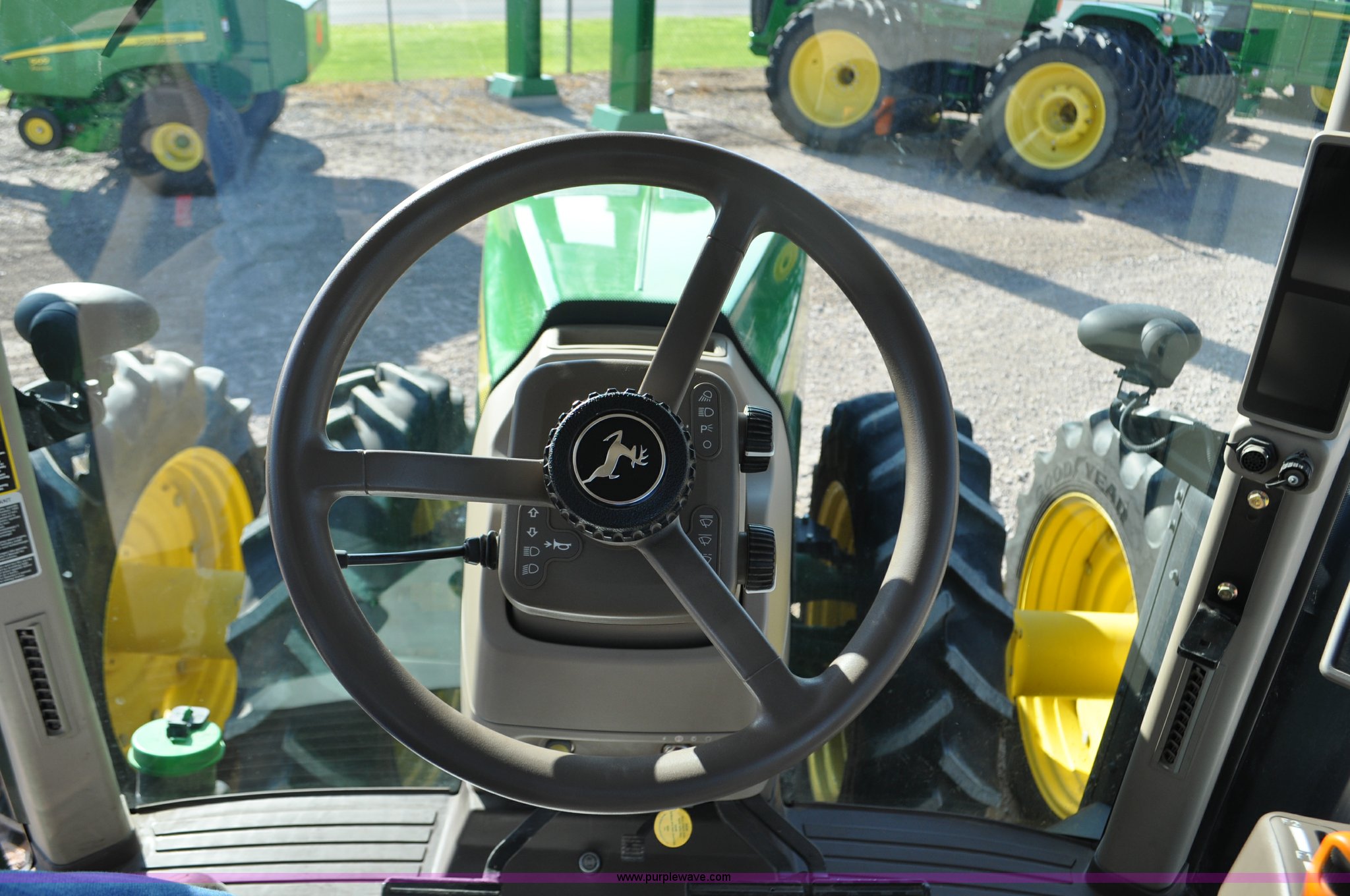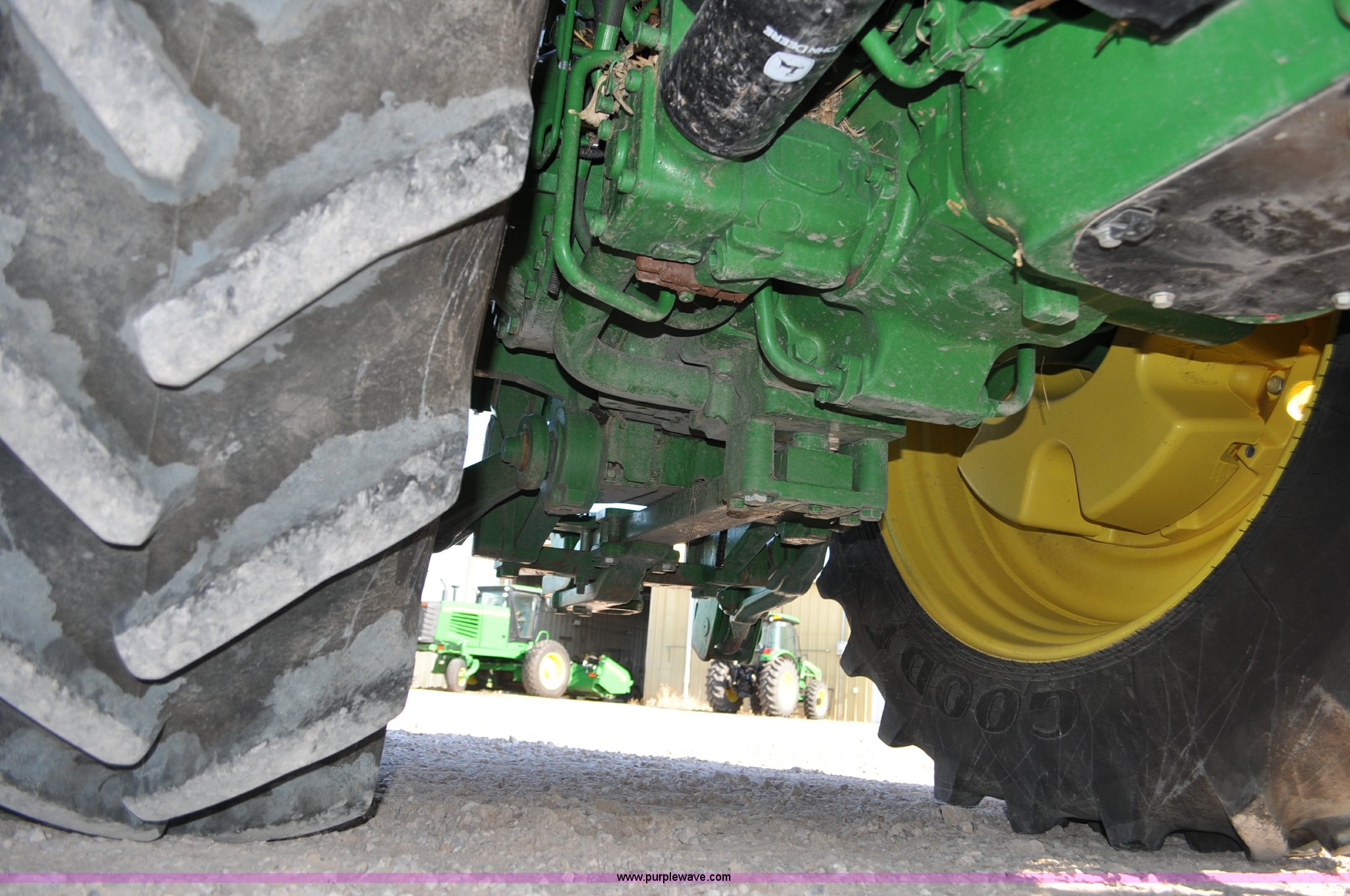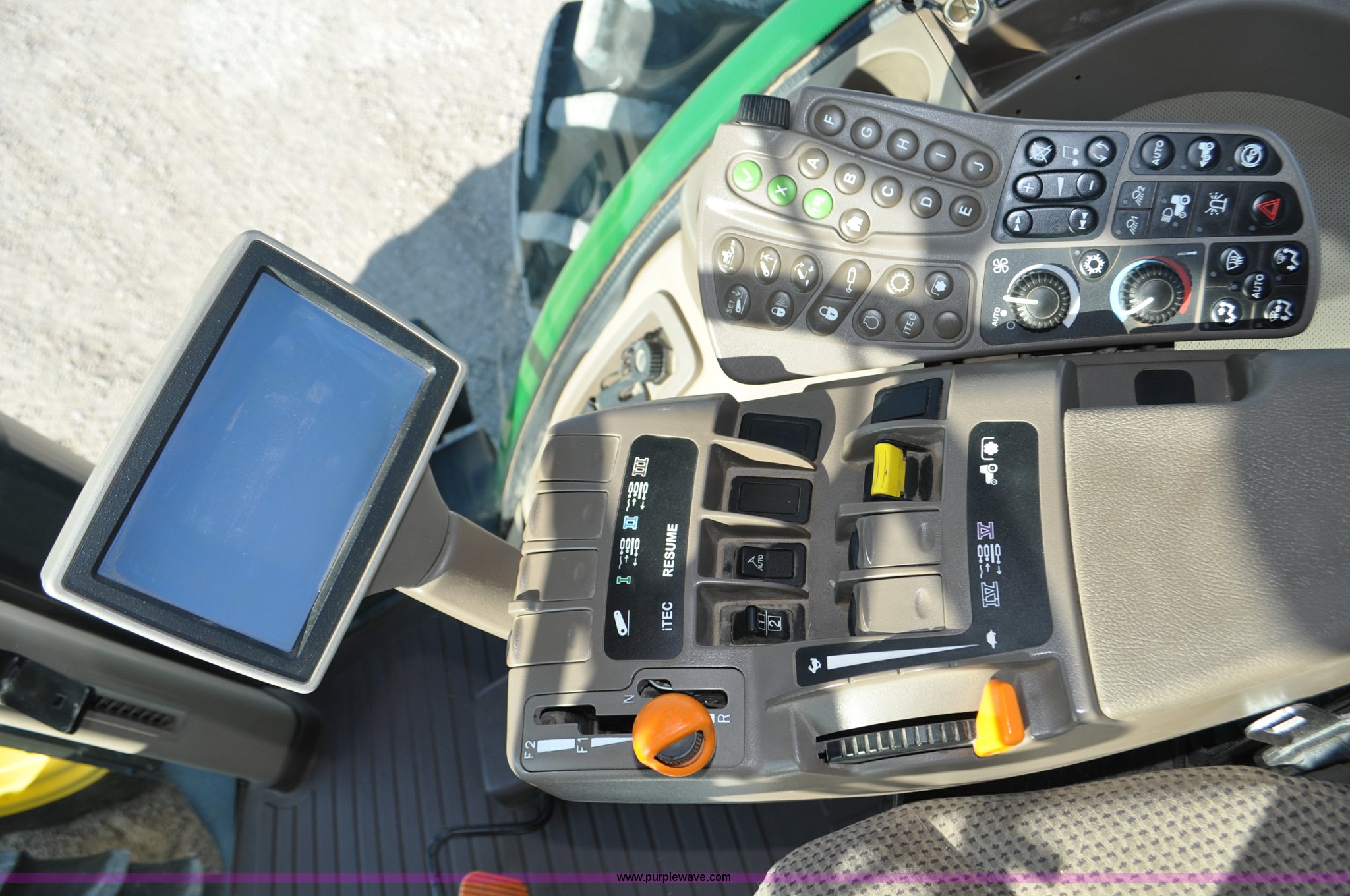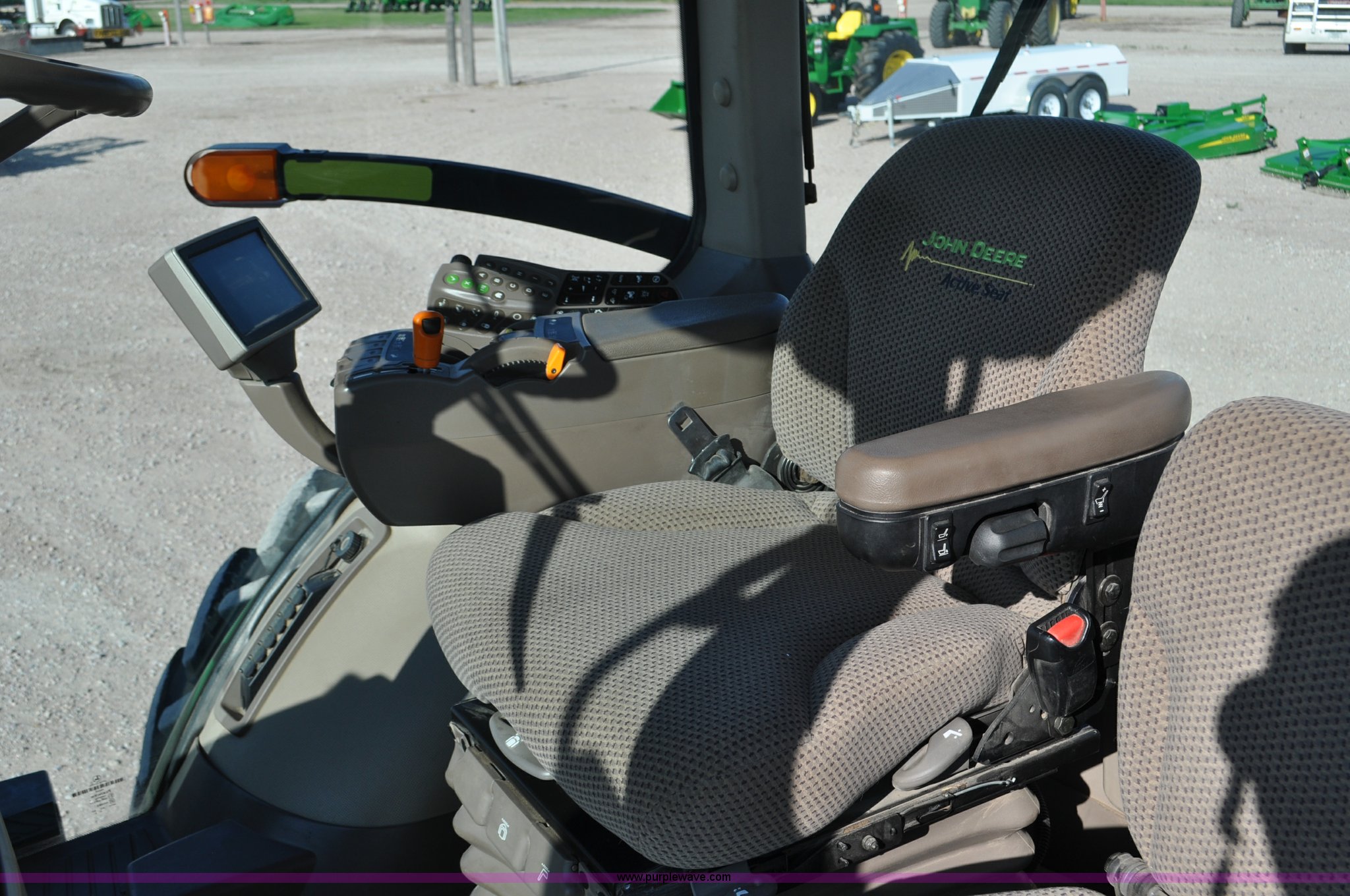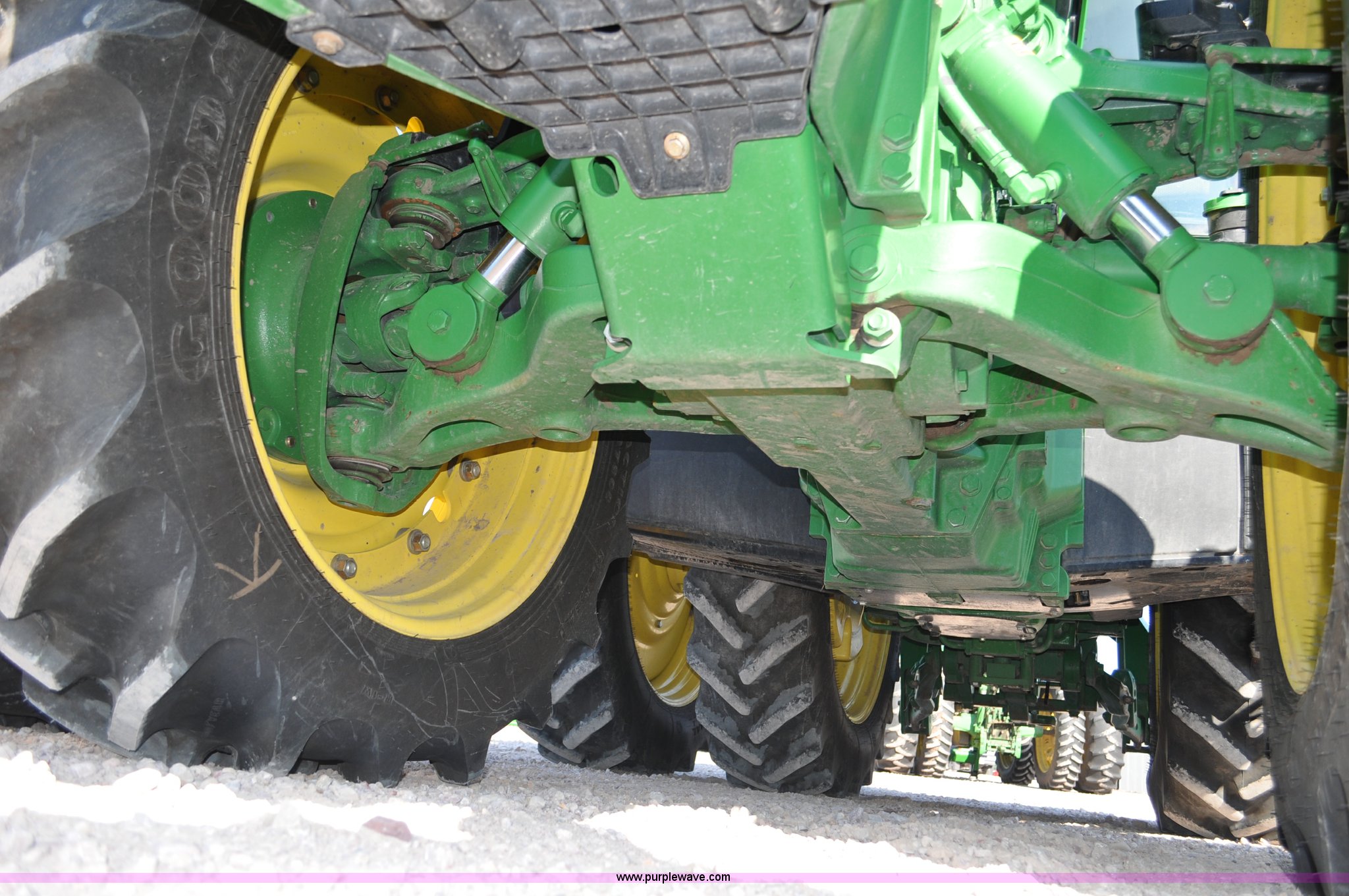 Purple Wave is selling a used Tractor in Nebraska. This item is a 2011 John Deere 8335R MFWD tractor with the following: 1,442 hours on meter, John Deere 6090 9.0L six cylinder diesel engine, IVT transmission, Differential lock, Commandview II Premium cab, AC and heat, AM/FM/CD/XM/weatherband, Active air seat, Instructor's seat, Tilt steering wheel, Visor, Foot operated throttle control, HID light package, Engine block heater, Three point, Quick attach, Draw bar, 1000 PTO, (5) rear hydraulic remotes, Independent link suspension, (20) suitcase weights, Wheel weights, 118.9 wheelbase, 380/80R38 dual front tires, 480/80R50 dual rear tires, New warrantied front tires, Top link on quick tach will be replaced by auction date, Basic Warranty until September 14, 2013, Extended Power Train Warranty until September 14, 2014, JDLINK ULT Promo until September 14, 2014, Serial 1RW8335REBD045194, Unit# C011528