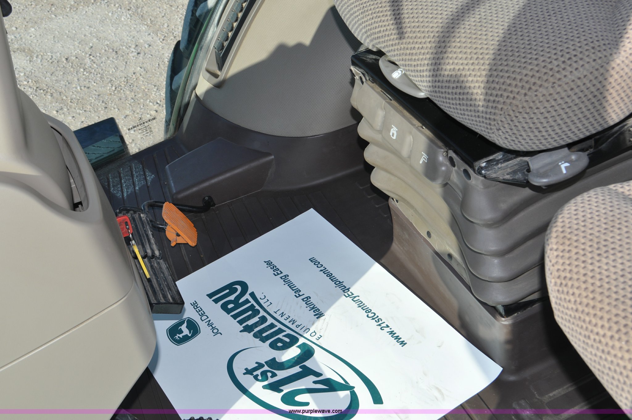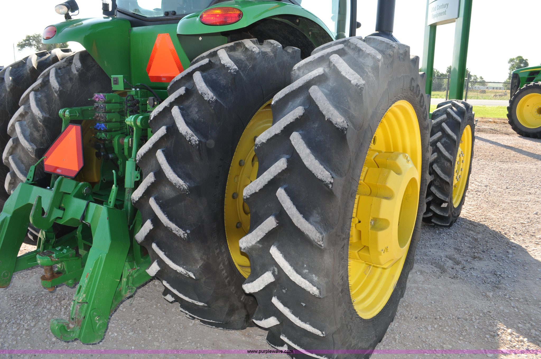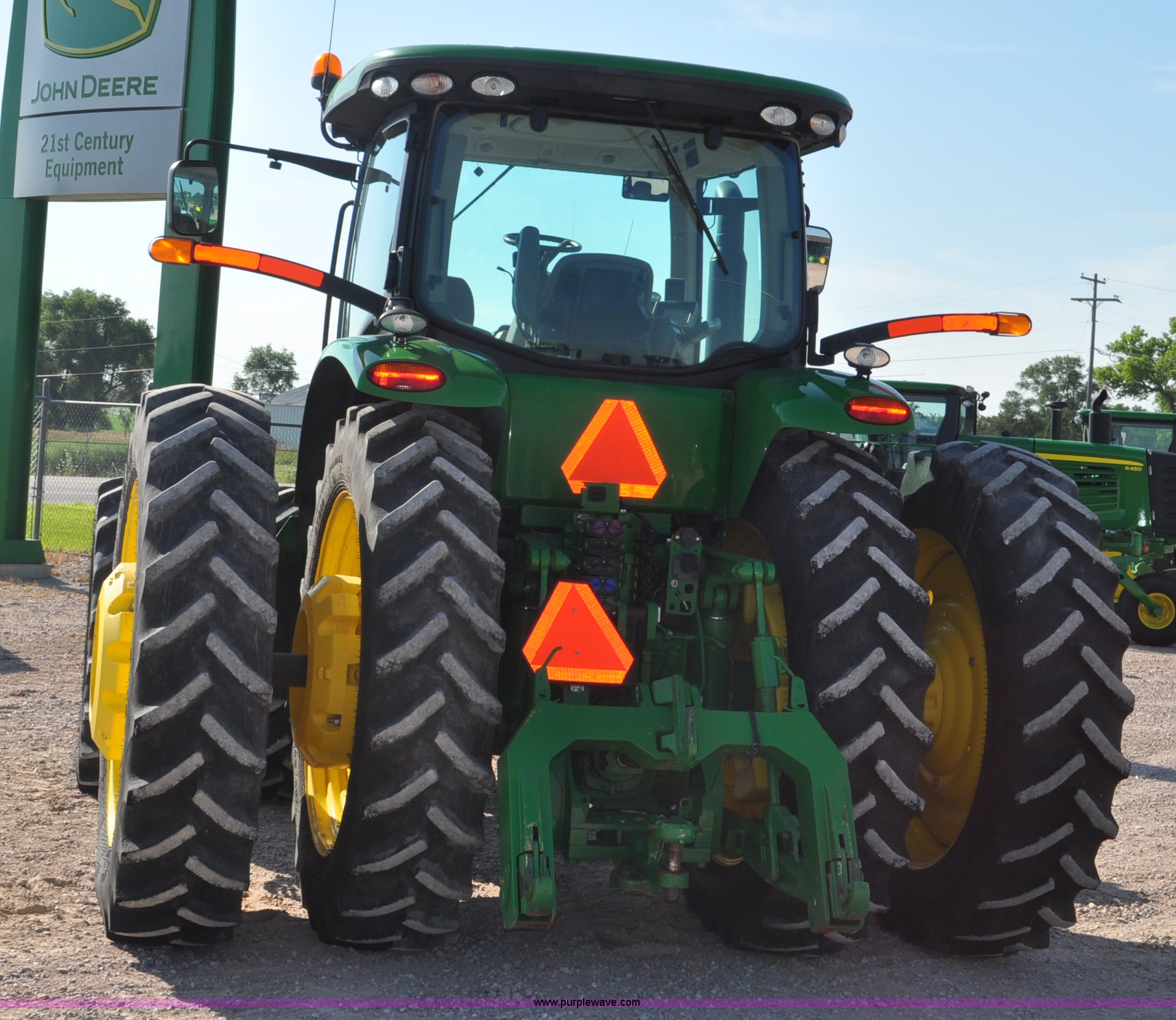 2011 John Deere 8335R MFWD tractor. 1,442 hours on meter, John Deere 6090 9.0L six cylinder diesel engine, IVT transmission, Differential lock, Commandview II Premium cab, AC and heat, AM/FM/CD/XM/weatherband, Active air seat, Instructor's seat, Tilt steering wheel, Visor, Foot operated throttle control, HID light package, Engine block heater, Three point Quick attach, Draw bar, 1000 PTO, (5) rear hydraulic remotes, Independent link suspension, (20) suitcase weights, Wheel weights, 118.9 wheelbase, 380/80R38 dual front tires, 480/80R50 dual rear tires, New warrantied front tires, Top link on quick tach will be replaced by auction date, Basic Warranty until September 14, 2013, Extended Power Train Warranty until September 14, 2014, JDLINK ULT Promo until September 14, 2014, Serial 1RW8335REBD045194, Unit# C011528. Bid for Blue program asset. Shipping quotes available. 21st Century Equipment. 1520 W 10th. Gordon, NE 69343