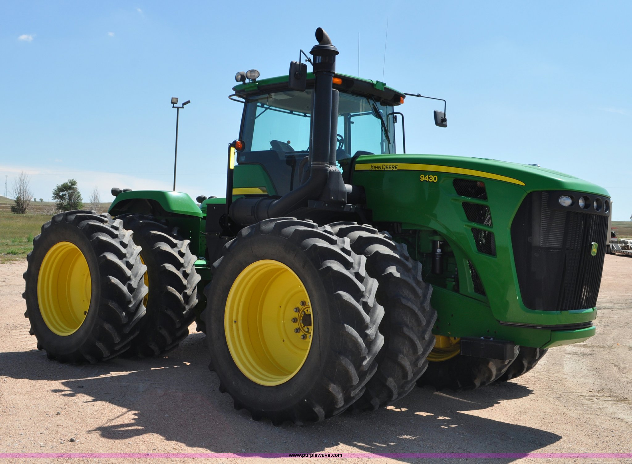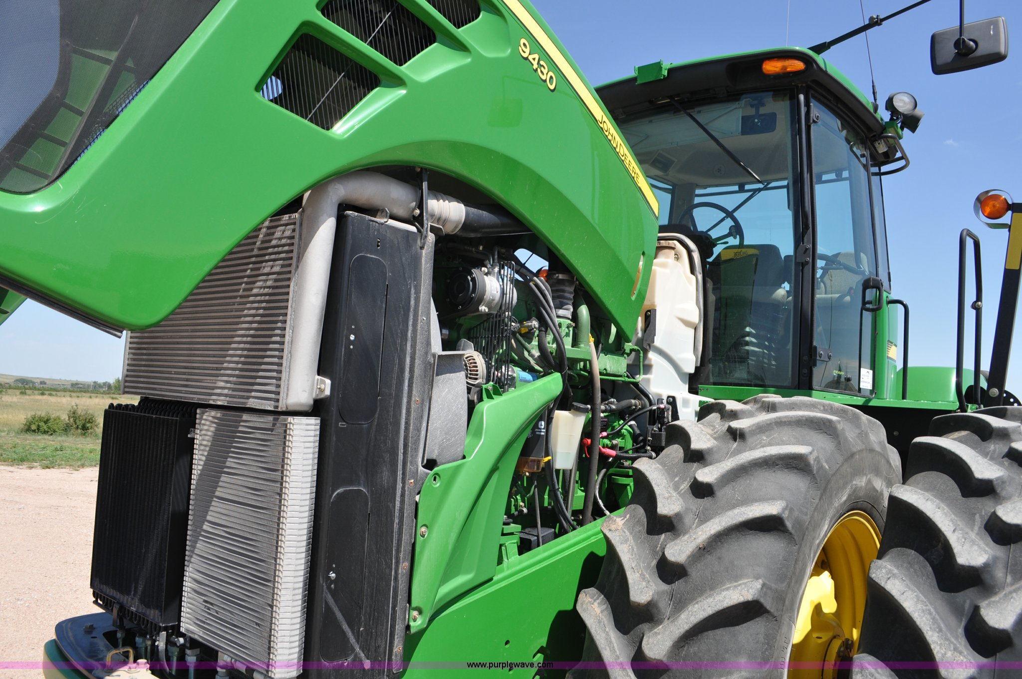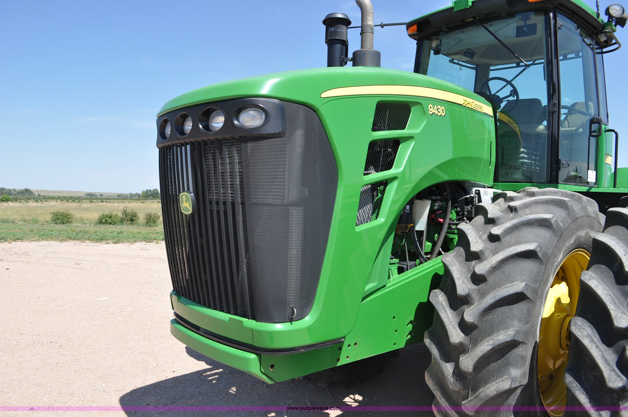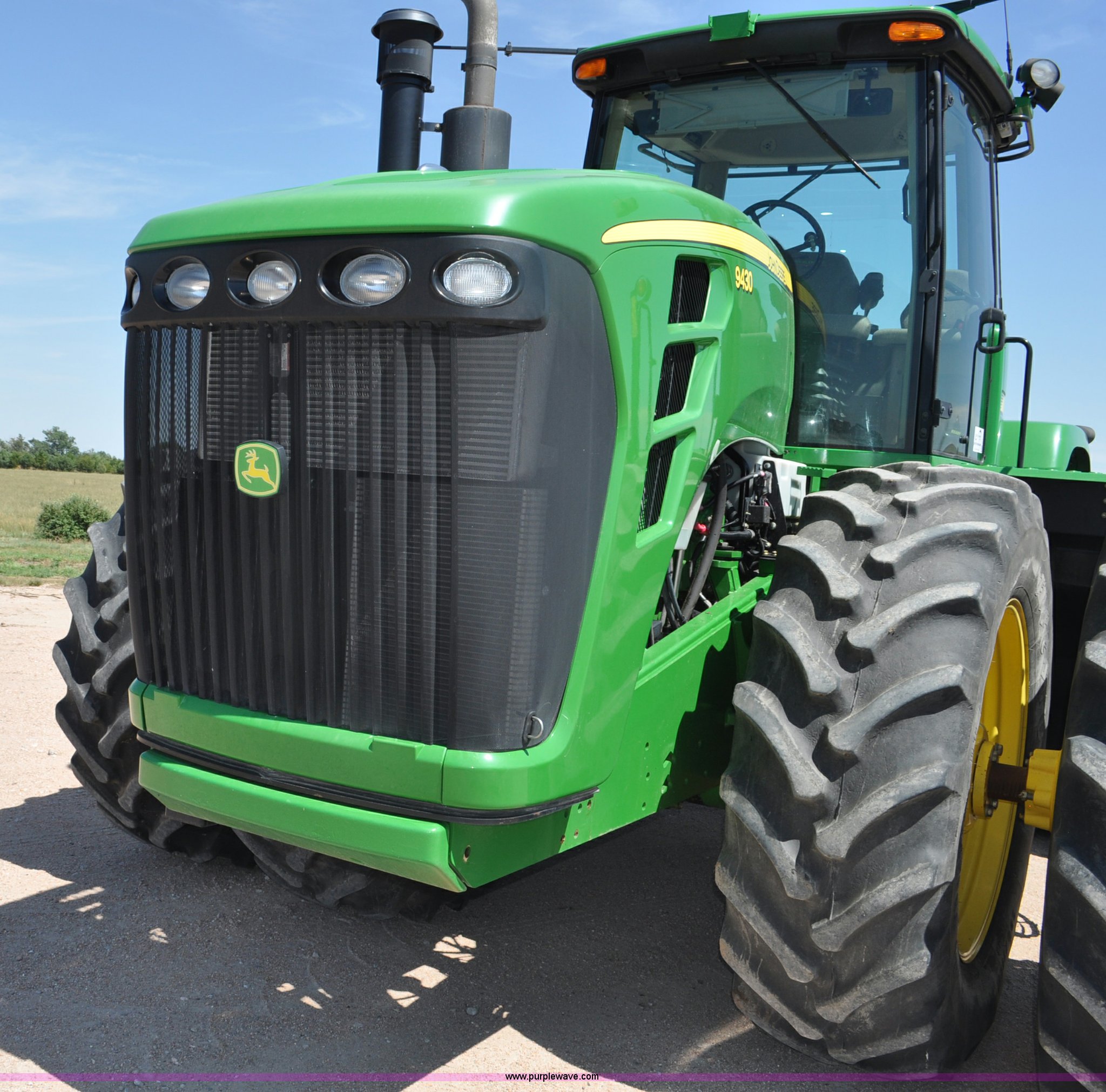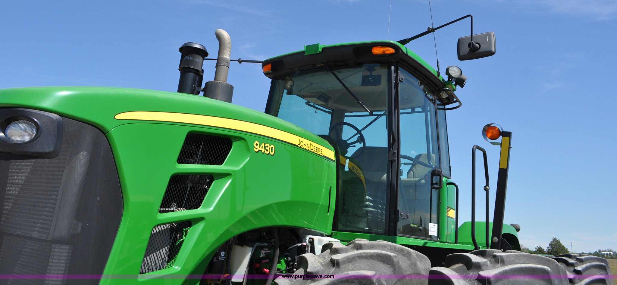 Purple Wave is selling a used Articulated 4-Wheel Drive Tractor in Nebraska. This item is a 2008 John Deere 9430 4WD tractor with the following: 2,906 hours on meter, John Deere 6135 13.5L six cylinder diesel engine, 425 HP, Serial RG6135L001861, Powrsync transmission, 24F-6R gears, Differential lock, Deluxe comfort package cab, AC and heat, AM/FM/CD, Air suspension seat, Instructor's seat, Dual Beam radar sensor, Tilt steering wheel, Visor, Premier lighting package, Xenon lighting,, Draw bar, (4) rear hydraulic remotes, Wheel weights, 350 gallon fuel tank, 137.8 wheelbase, 620/70R42 dual tires, 36,359 lbs. base operating weight, Serial RW9430H002521, Unit # C018544