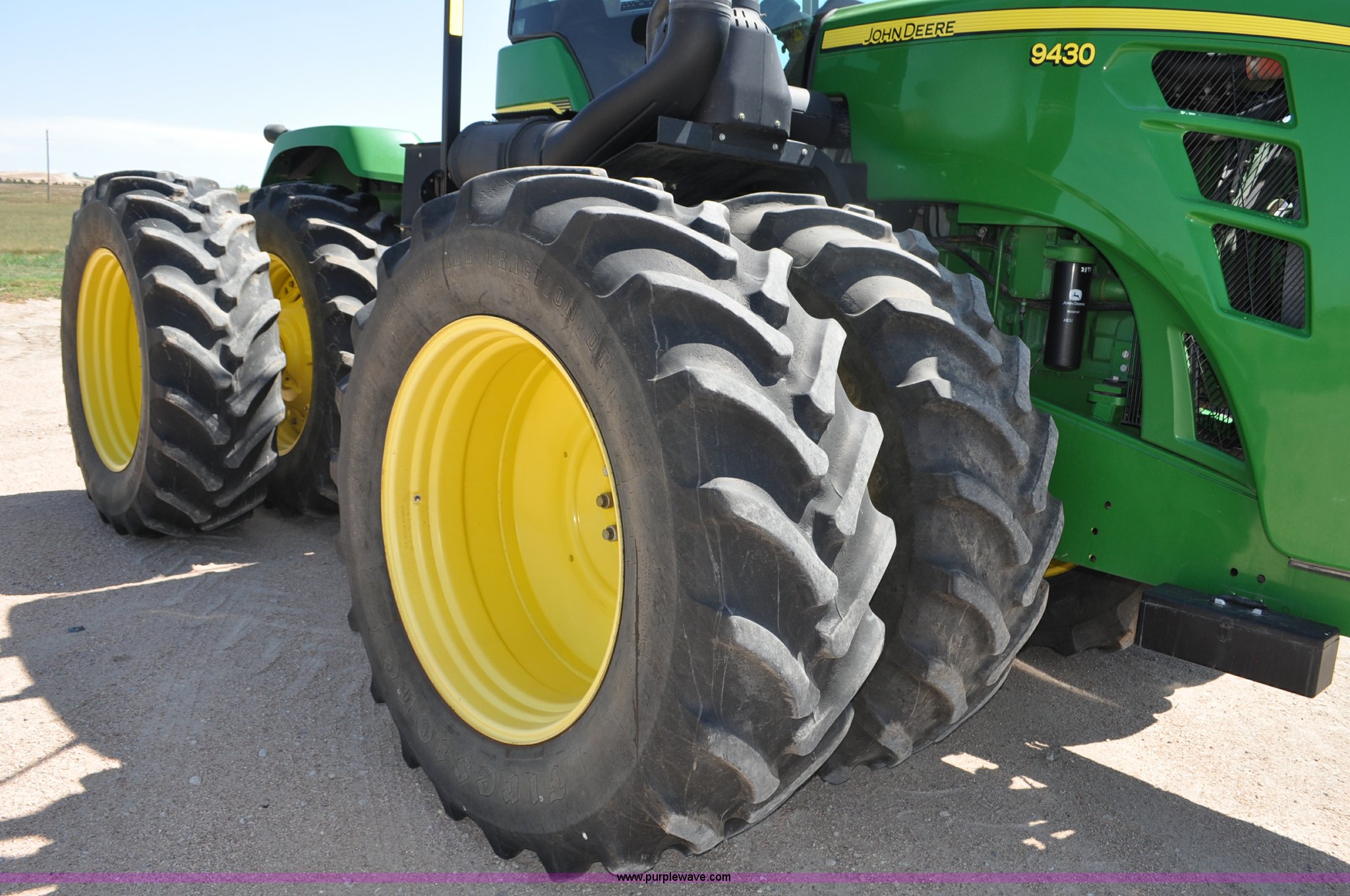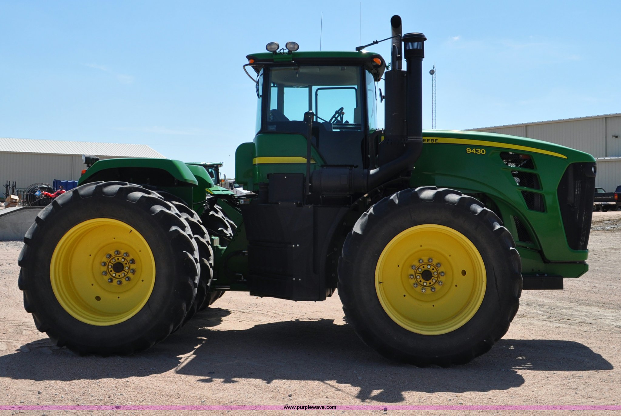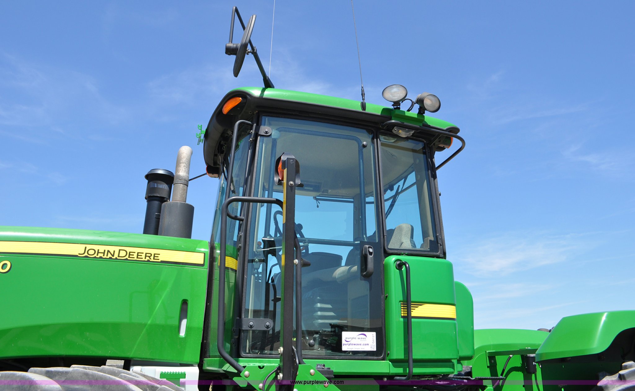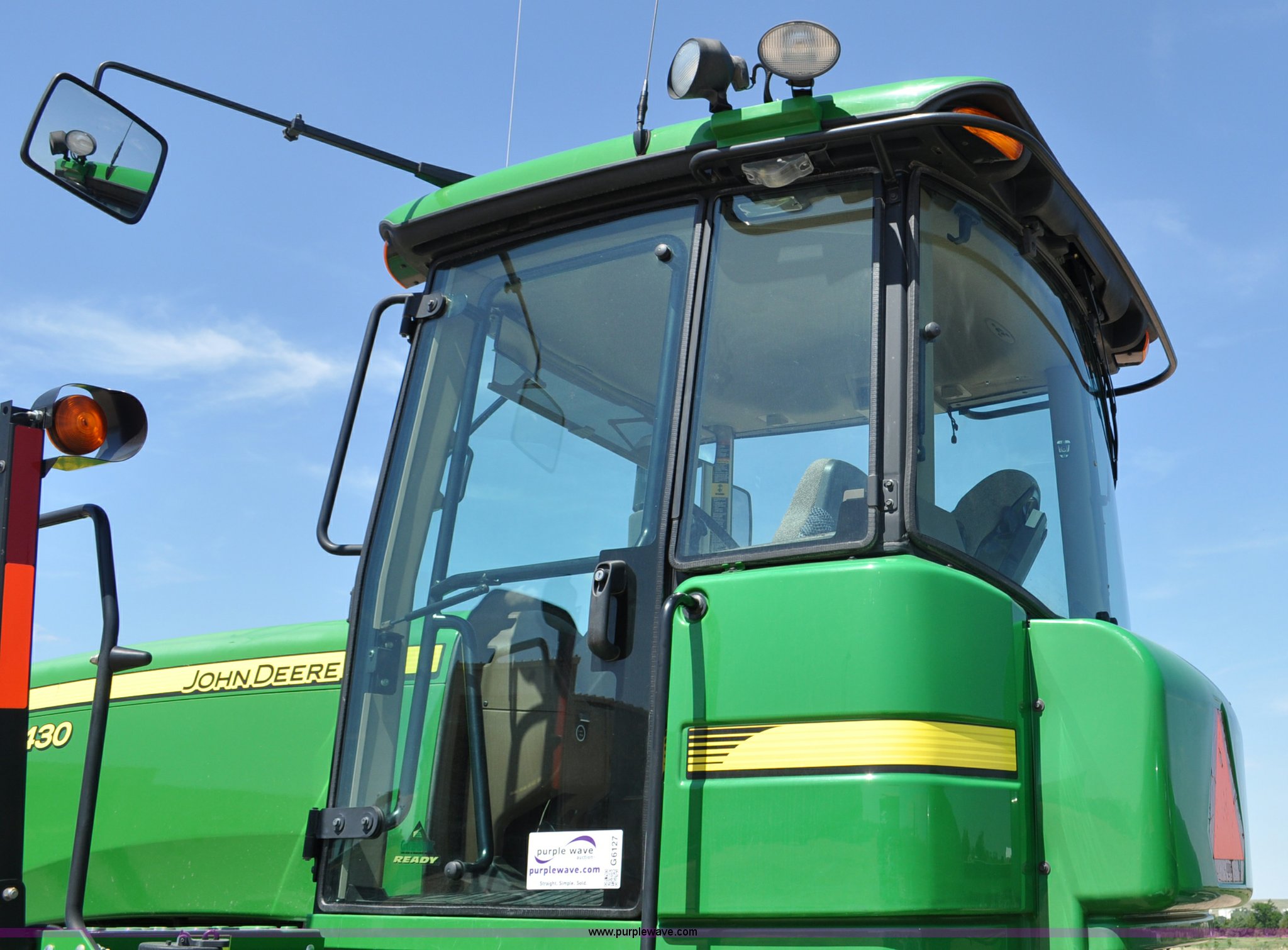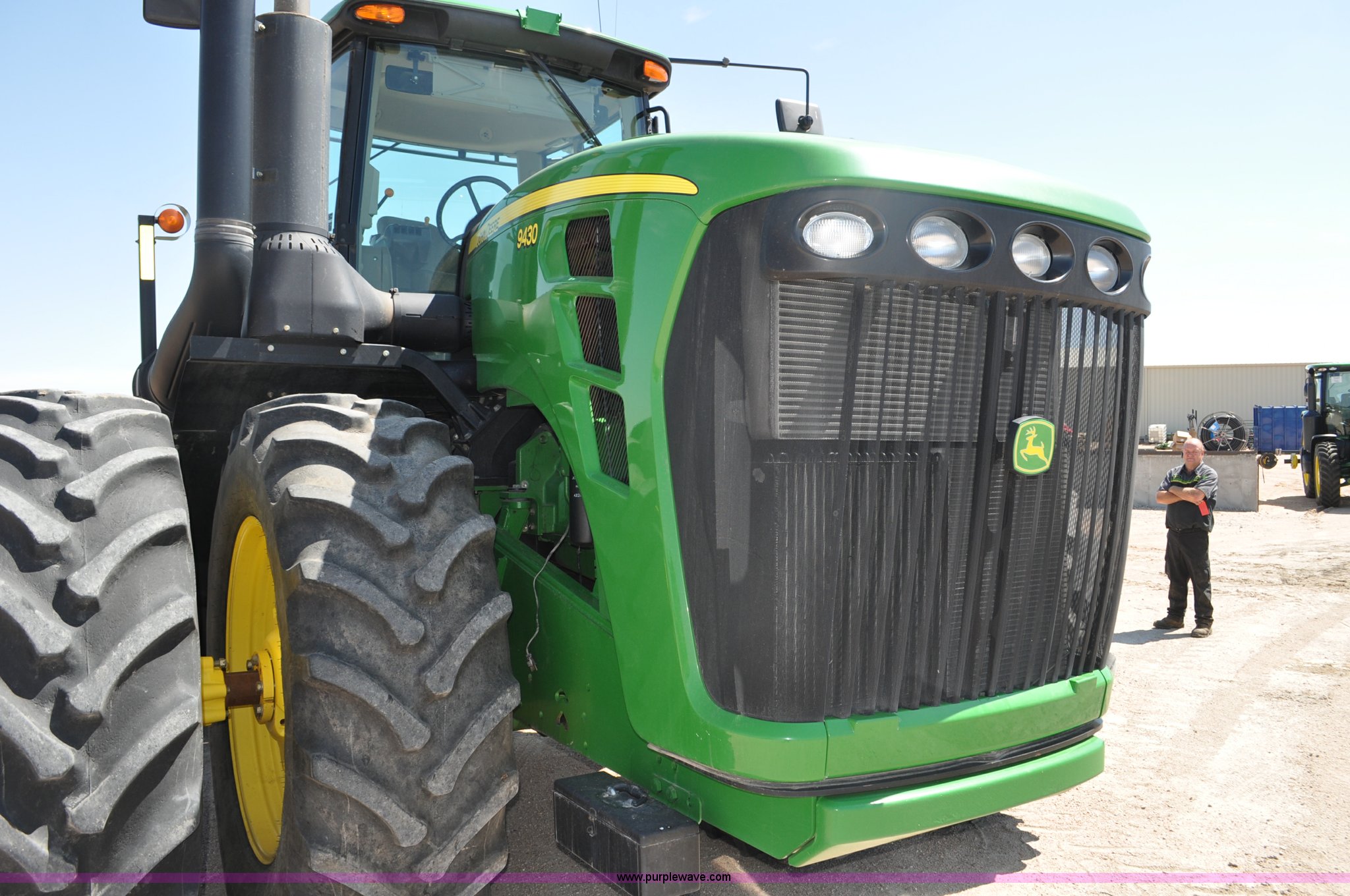Purple Wave is selling a used Articulated 4-Wheel Drive Tractor in Nebraska. This item is a 2008 John Deere 9430 4WD tractor with the following: 2,906 hours on meter, John Deere 6135 13.5L six cylinder diesel engine, 425 HP, Serial RG6135L001861, Powrsync transmission, 24F-6R gears, Differential lock, Deluxe comfort package cab, AC and heat, AM/FM/CD, Air suspension seat, Instructor's seat, Dual Beam radar sensor, Tilt steering wheel, Visor, Premier lighting package, Xenon lighting,, Draw bar, (4) rear hydraulic remotes, Wheel weights, 350 gallon fuel tank, 137.8 wheelbase, 620/70R42 dual tires, 36,359 lbs. base operating weight, Serial RW9430H002521, Unit # C018544