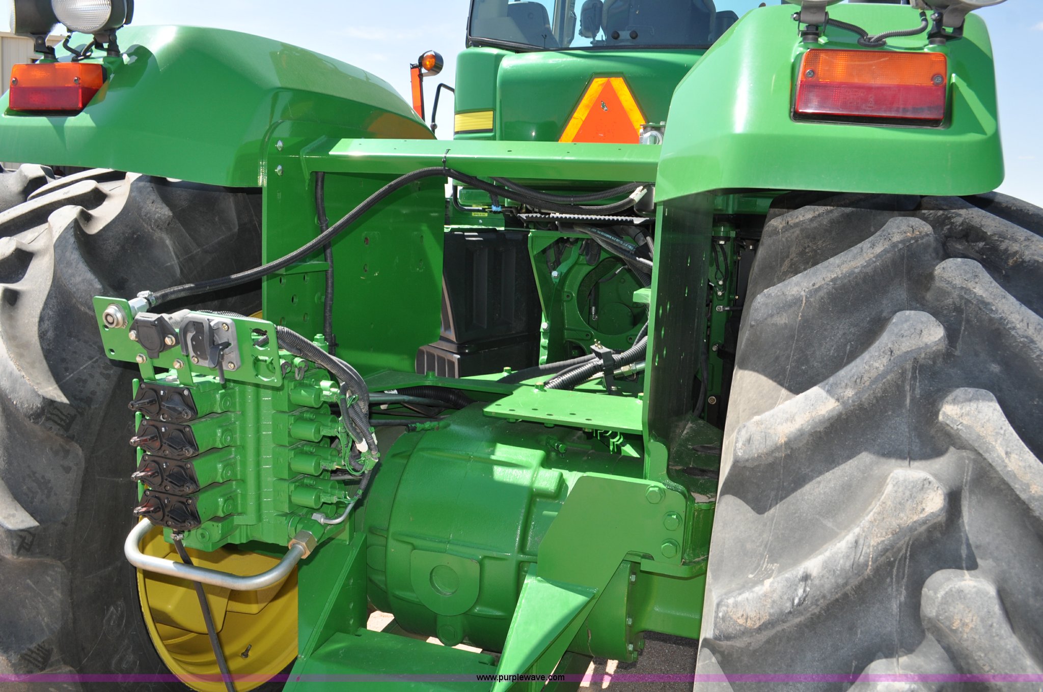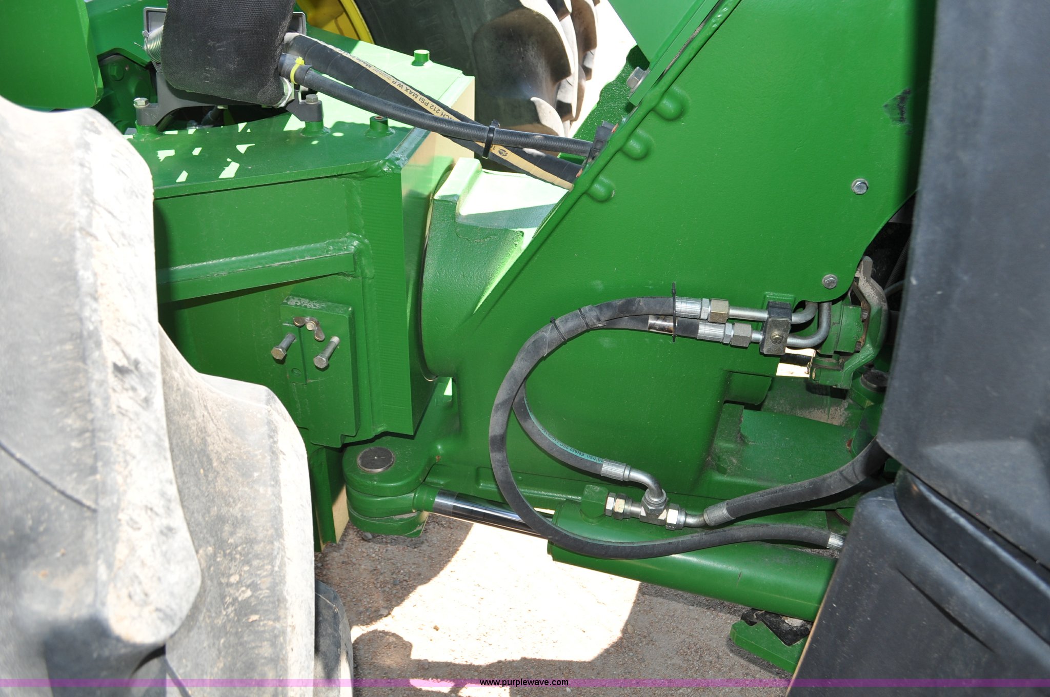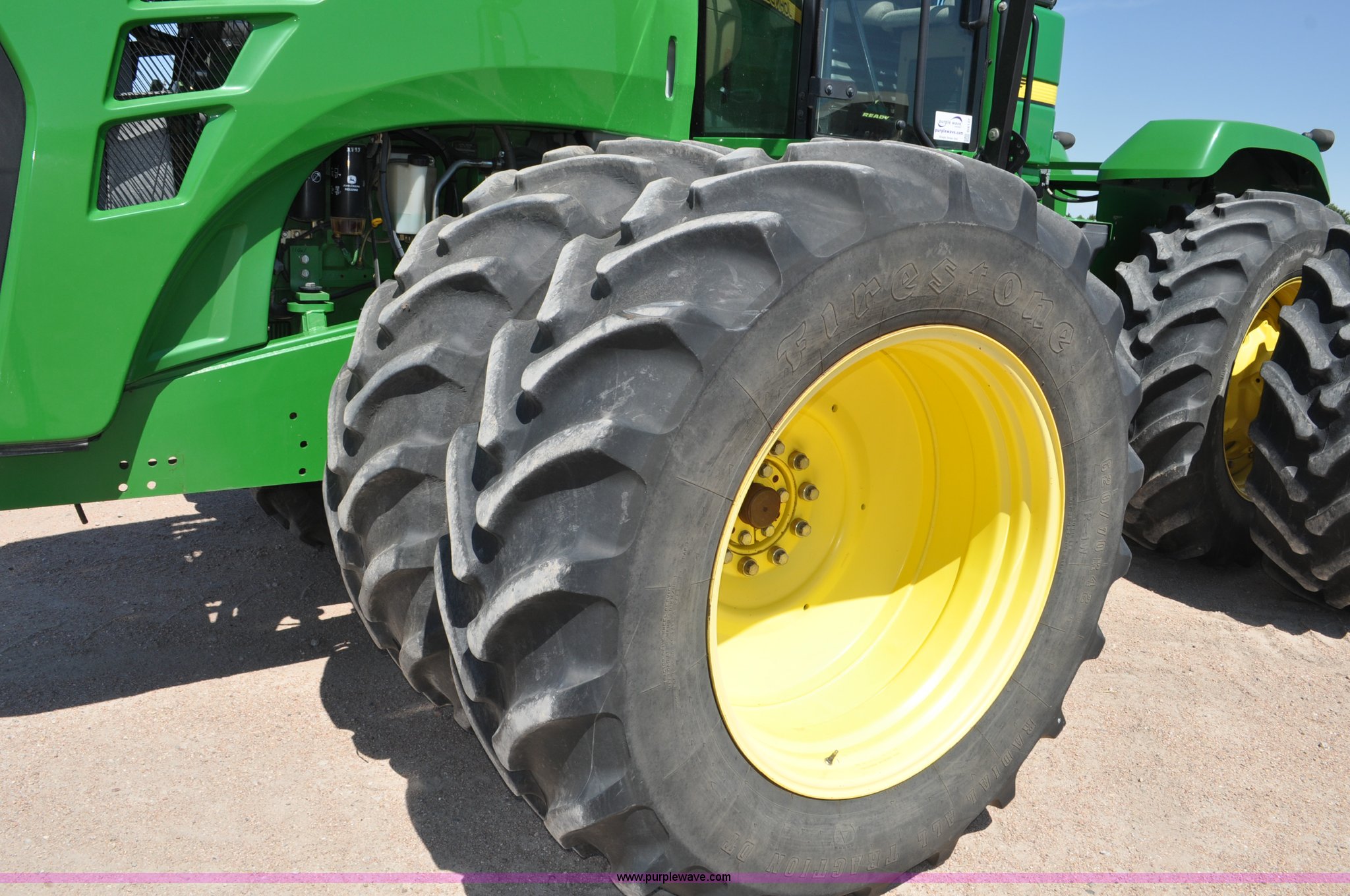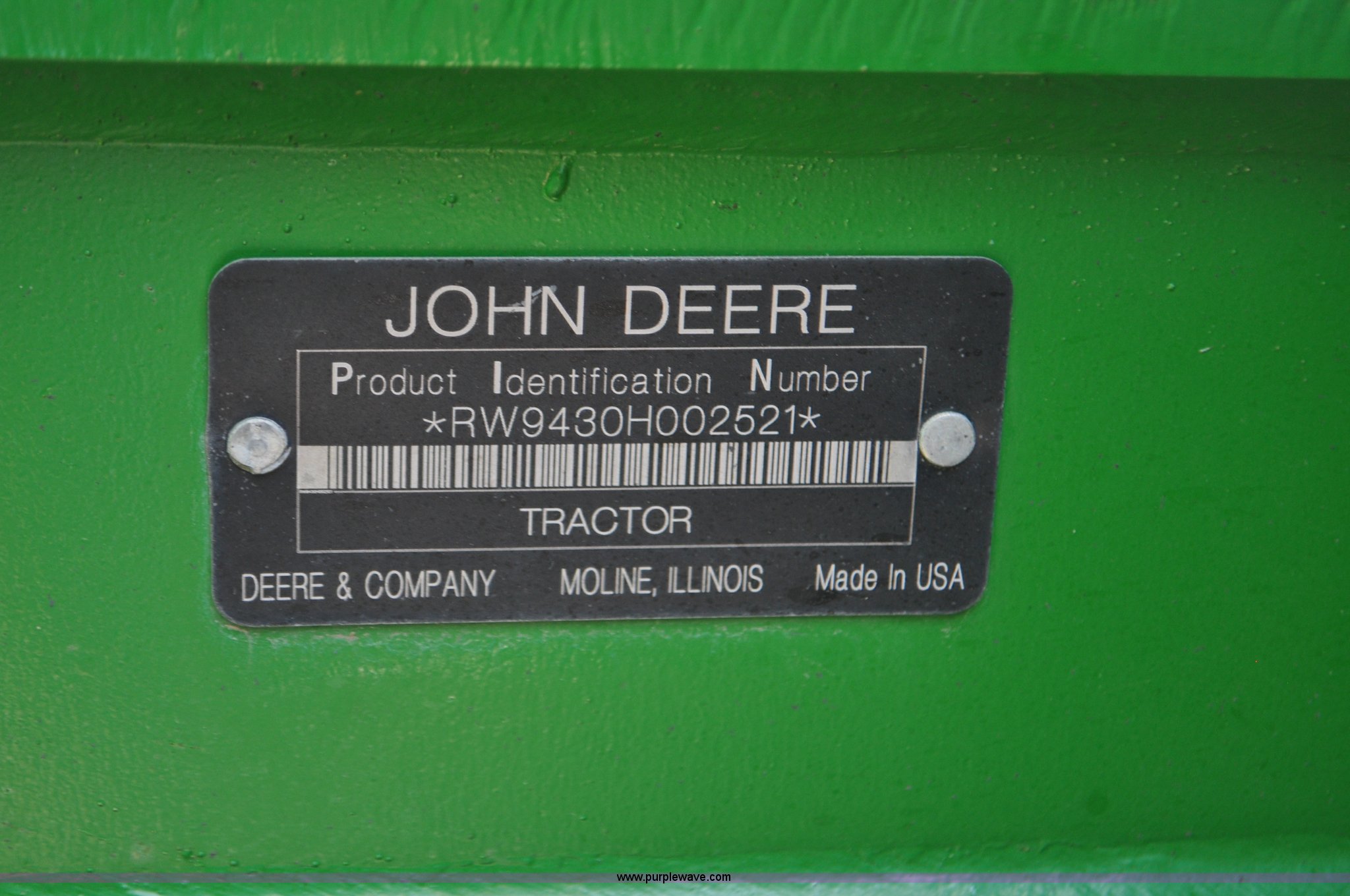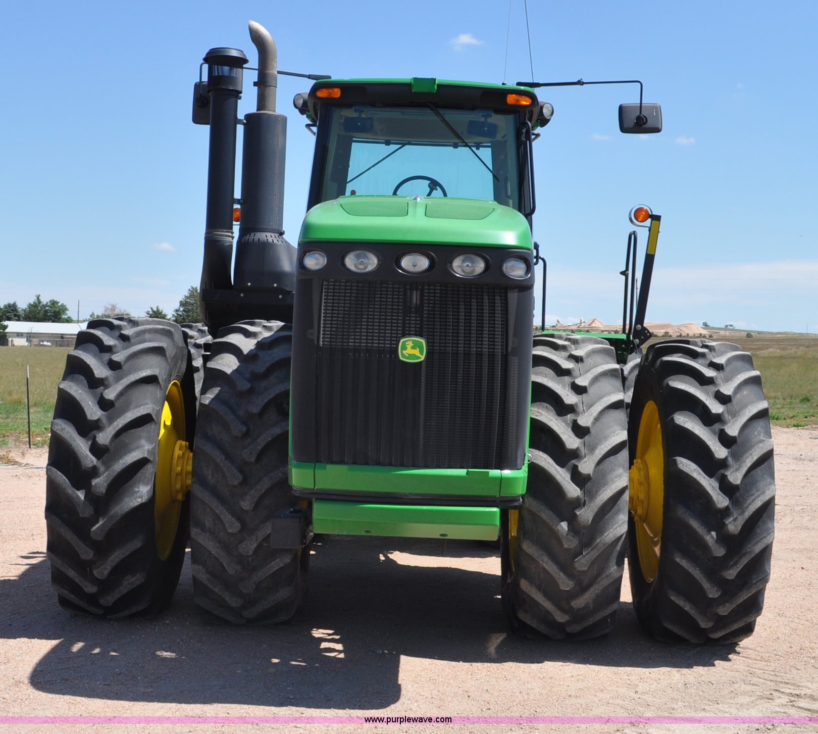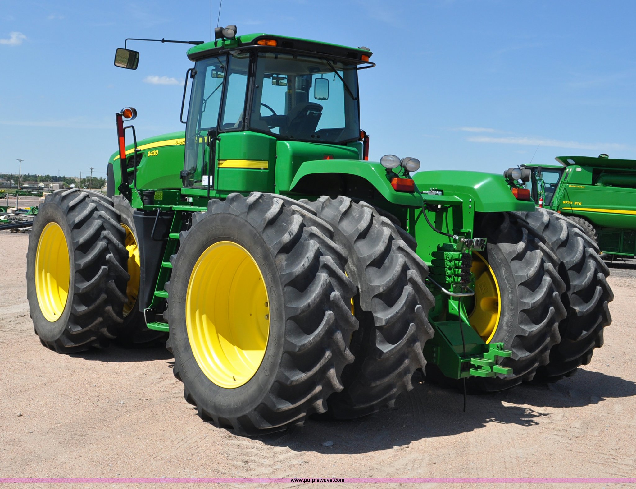 Purple Wave is selling a used Articulated 4-Wheel Drive Tractor in Nebraska. This item is a 2008 John Deere 9430 4WD tractor with the following: 2,906 hours on meter, John Deere 6135 13.5L six cylinder diesel engine, 425 HP, Serial RG6135L001861, Powrsync transmission, 24F-6R gears, Differential lock, Deluxe comfort package cab, AC and heat, AM/FM/CD, Air suspension seat, Instructor's seat, Dual Beam radar sensor, Tilt steering wheel, Visor, Premier lighting package, Xenon lighting,, Draw bar, (4) rear hydraulic remotes, Wheel weights, 350 gallon fuel tank, 137.8 wheelbase, 620/70R42 dual tires, 36,359 lbs. base operating weight, Serial RW9430H002521, Unit # C018544