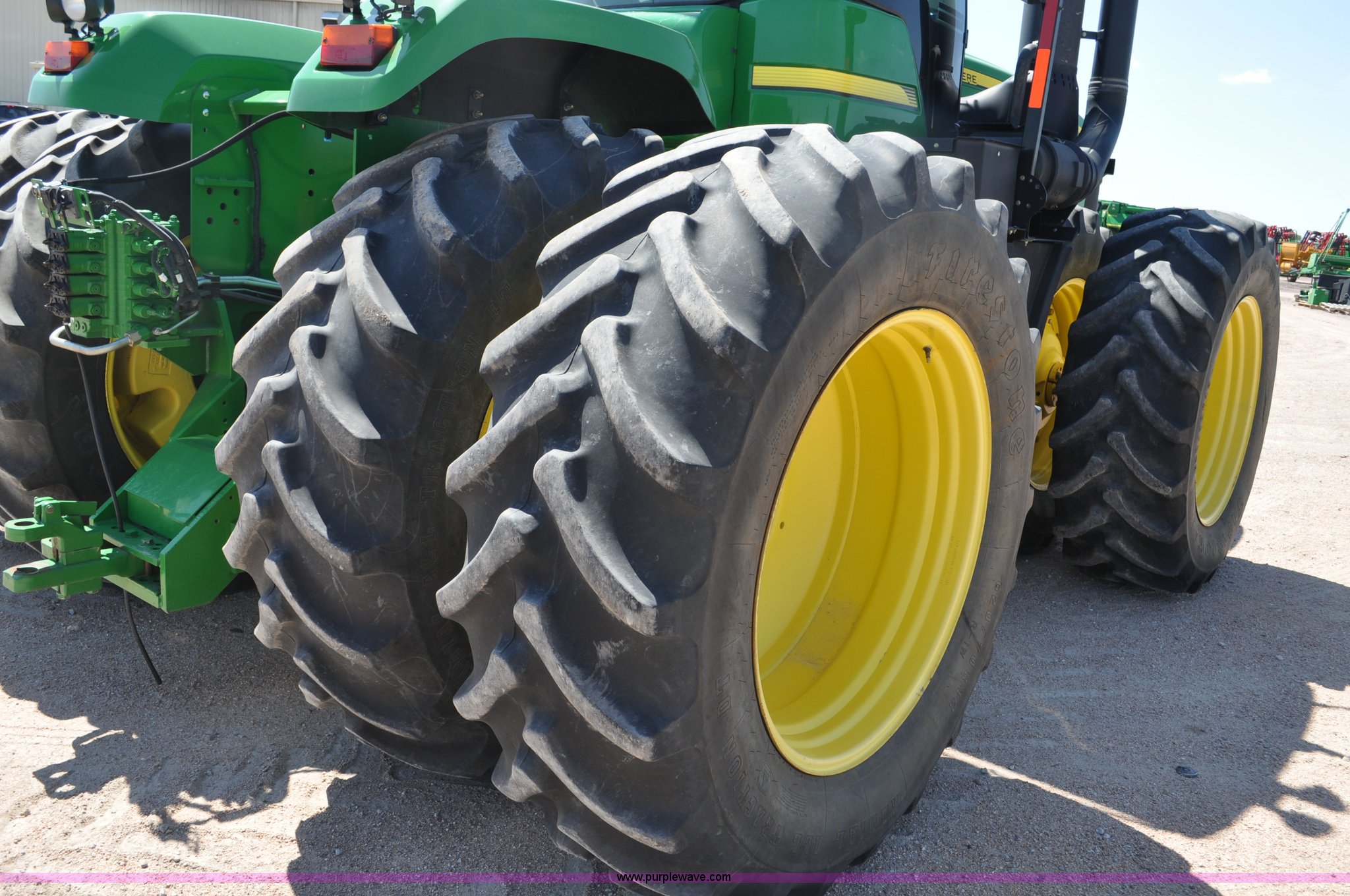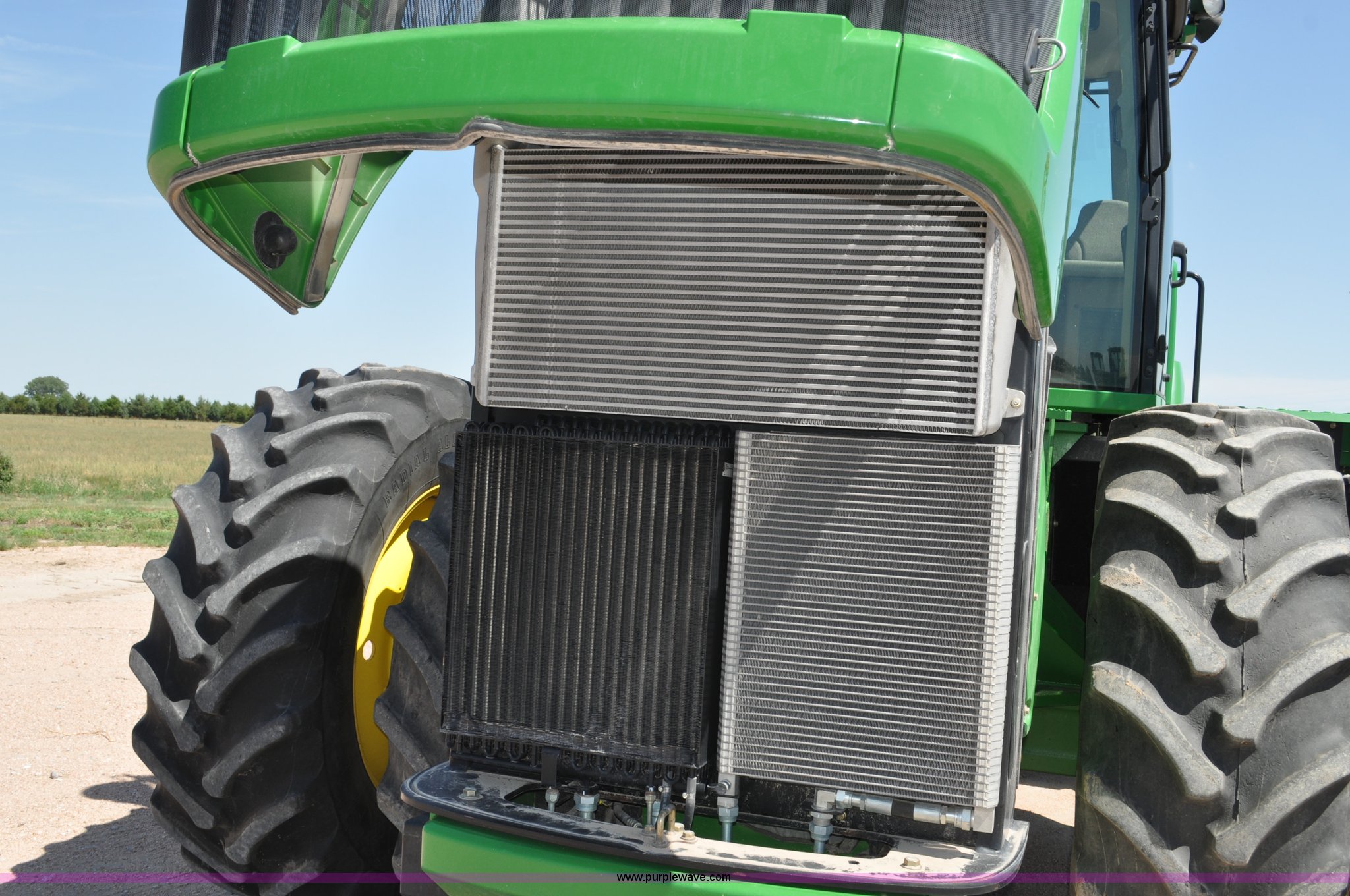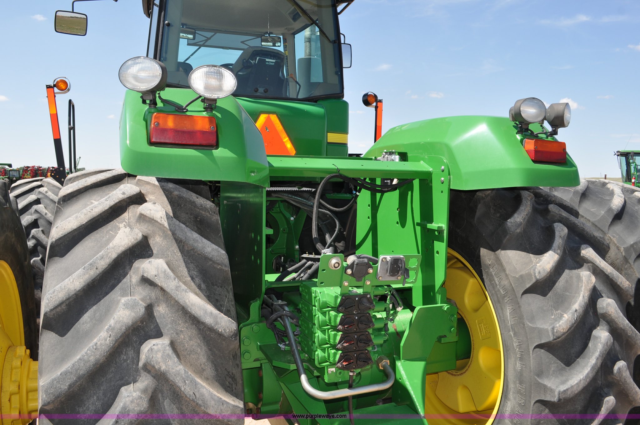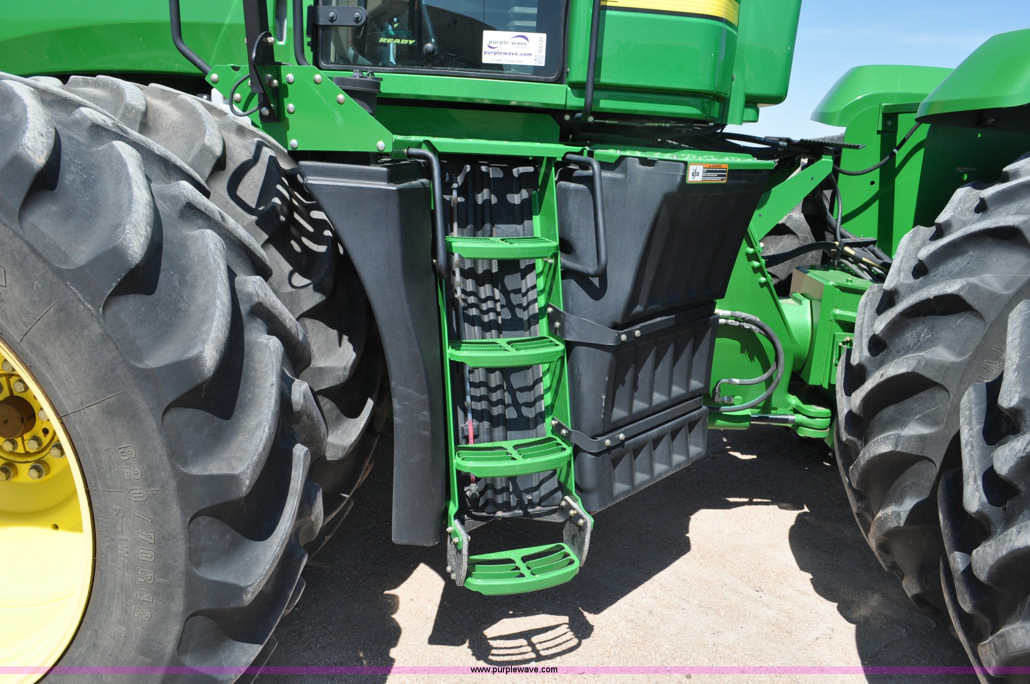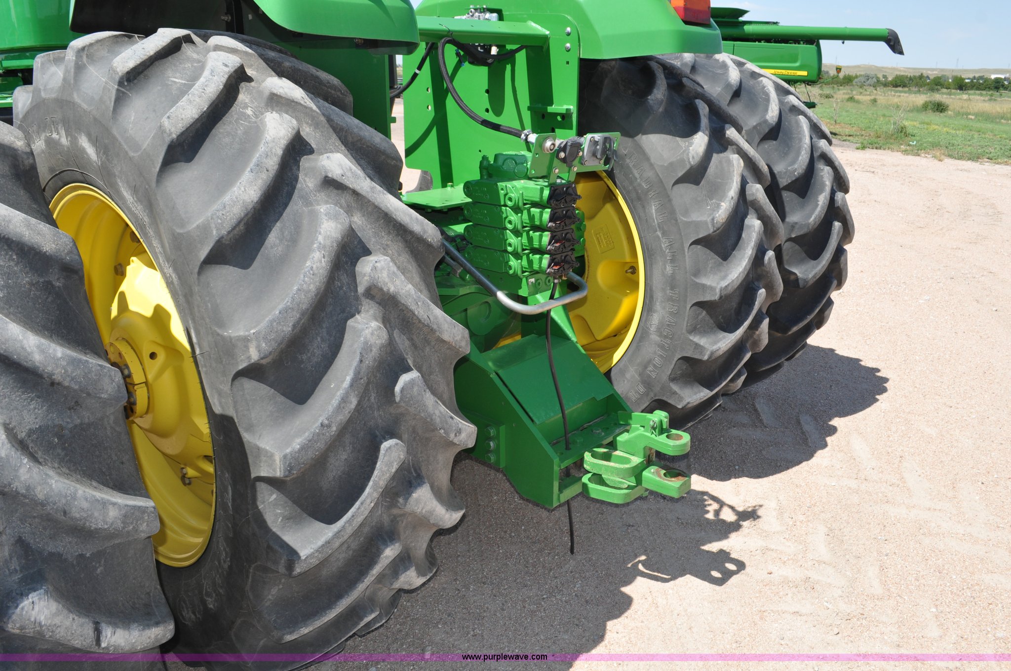 Purple Wave is selling a used Articulated 4-Wheel Drive Tractor in Nebraska. This item is a 2008 John Deere 9430 4WD tractor with the following: 2,906 hours on meter, John Deere 6135 13.5L six cylinder diesel engine, 425 HP, Serial RG6135L001861, Powrsync transmission, 24F-6R gears, Differential lock, Deluxe comfort package cab, AC and heat, AM/FM/CD, Air suspension seat, Instructor's seat, Dual Beam radar sensor, Tilt steering wheel, Visor, Premier lighting package, Xenon lighting,, Draw bar, (4) rear hydraulic remotes, Wheel weights, 350 gallon fuel tank, 137.8 wheelbase, 620/70R42 dual tires, 36,359 lbs. base operating weight, Serial RW9430H002521, Unit # C018544