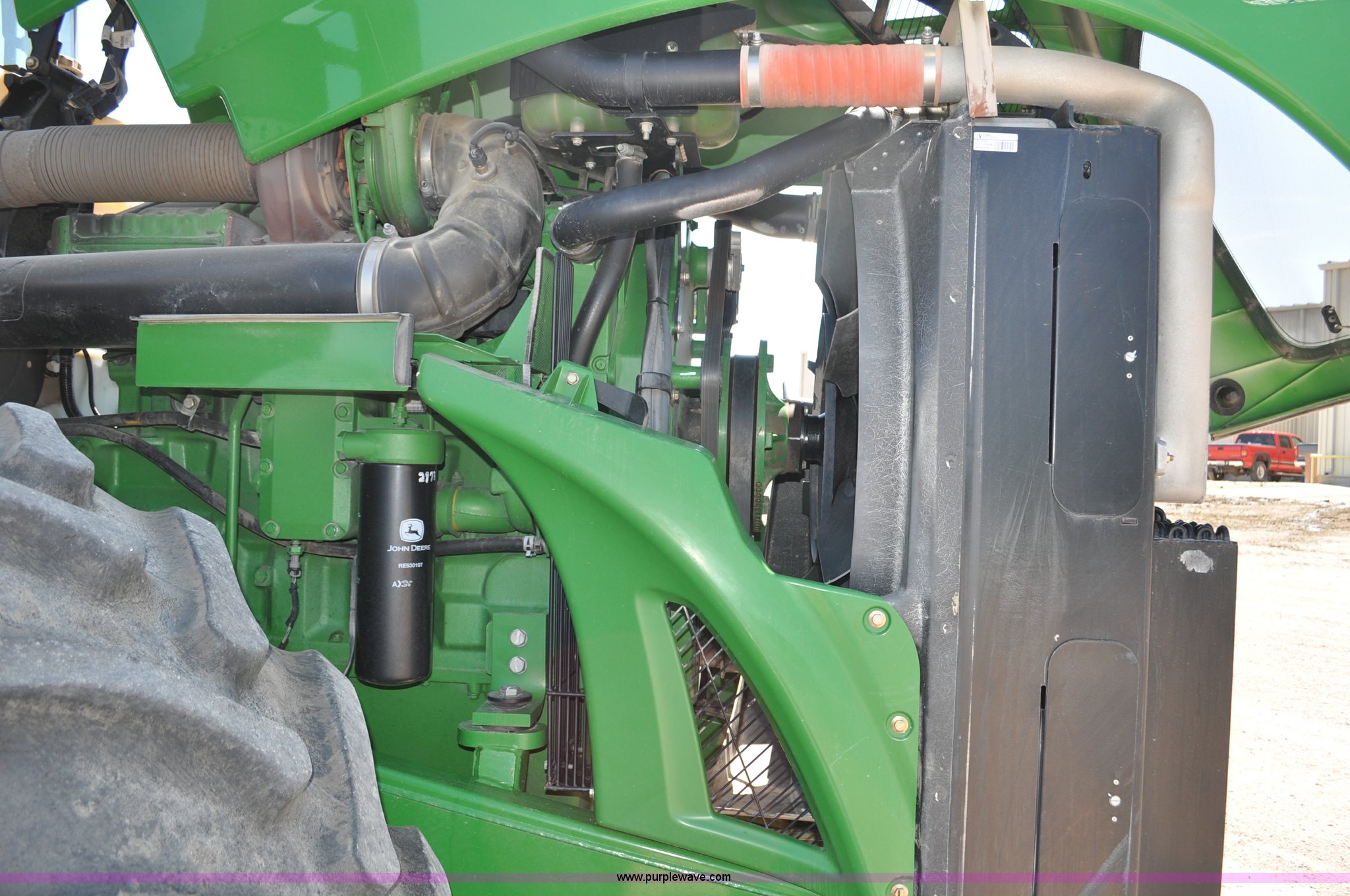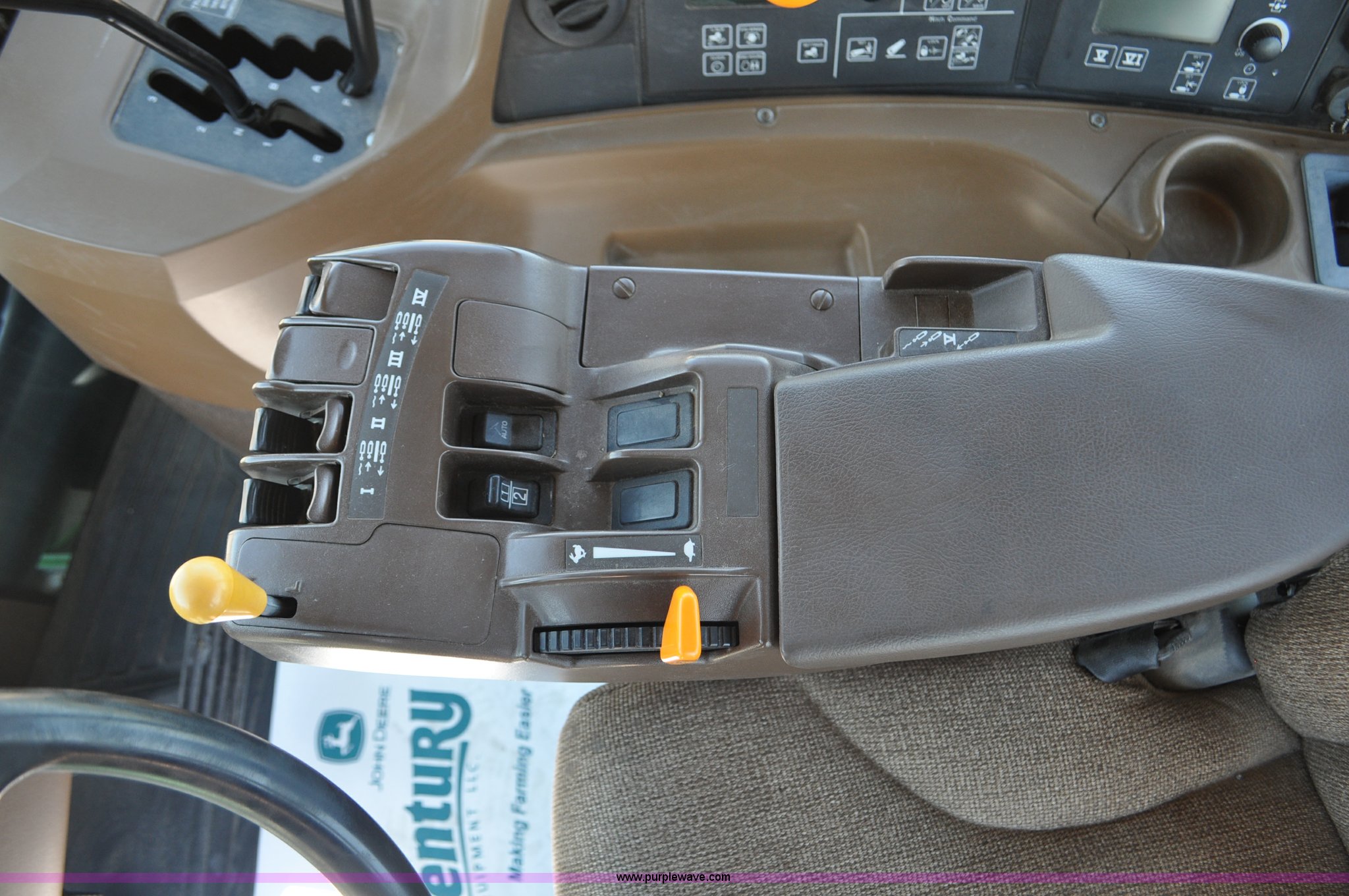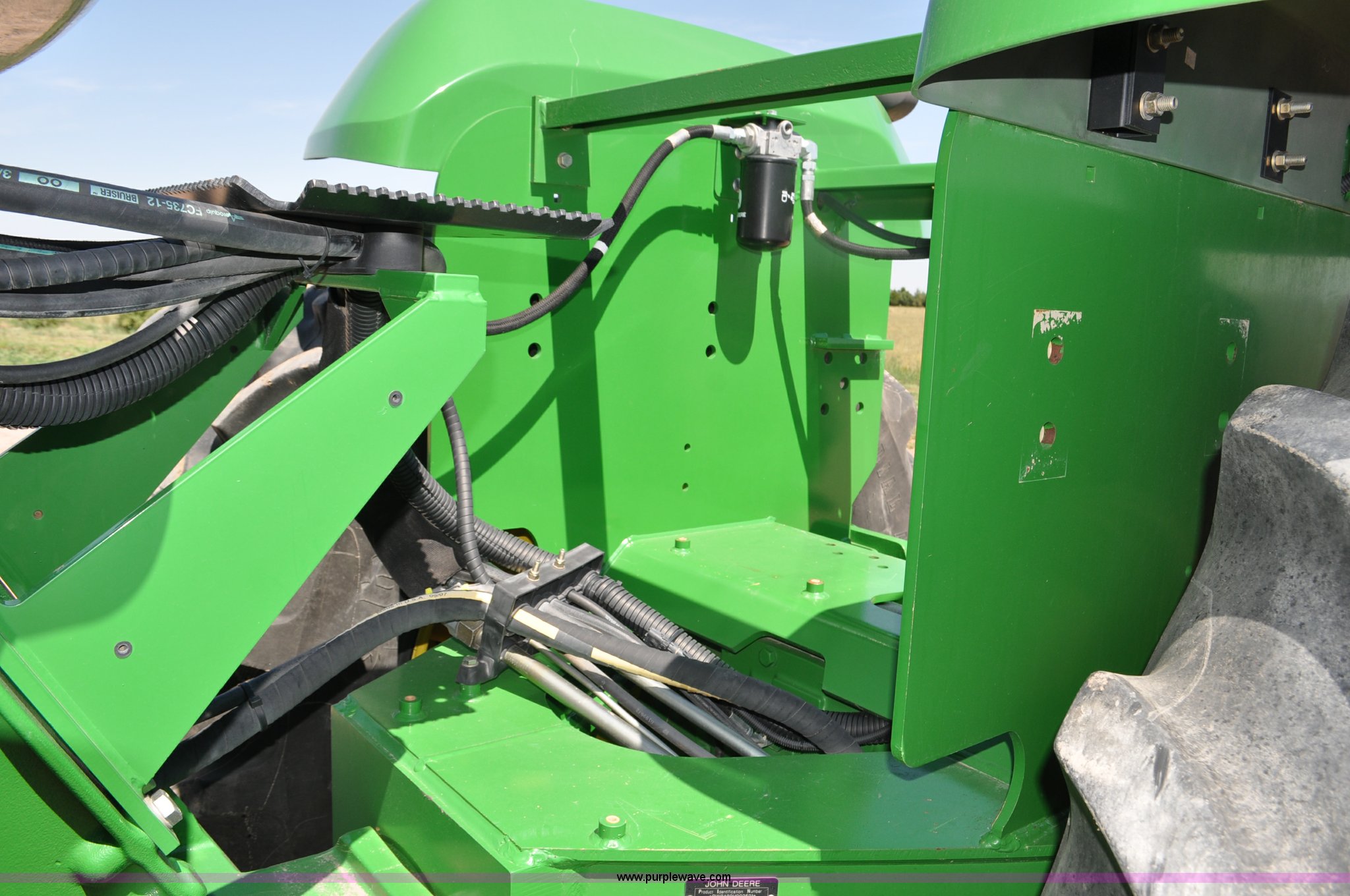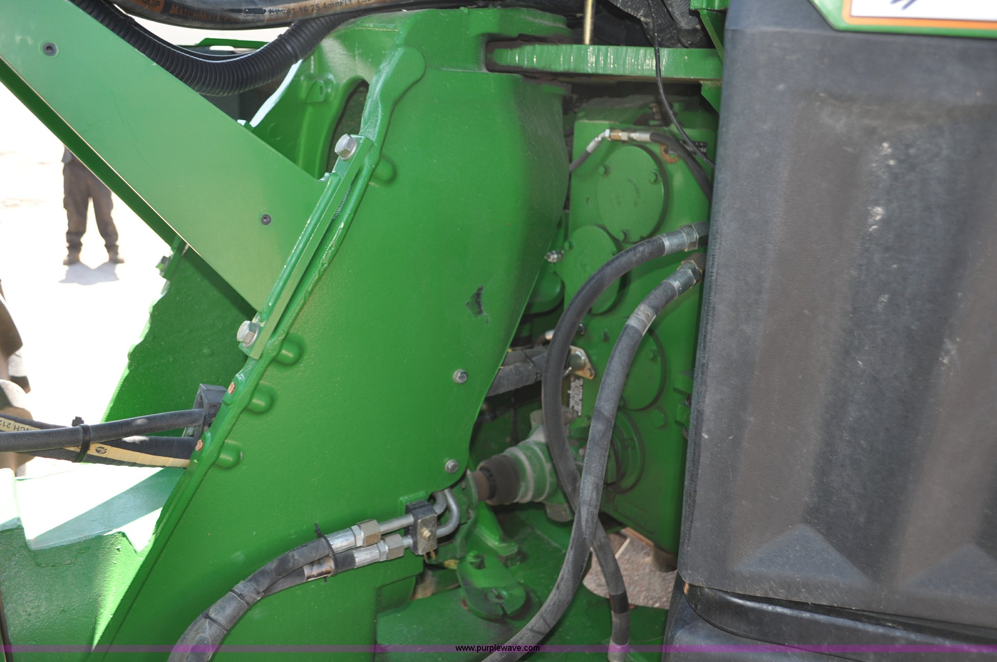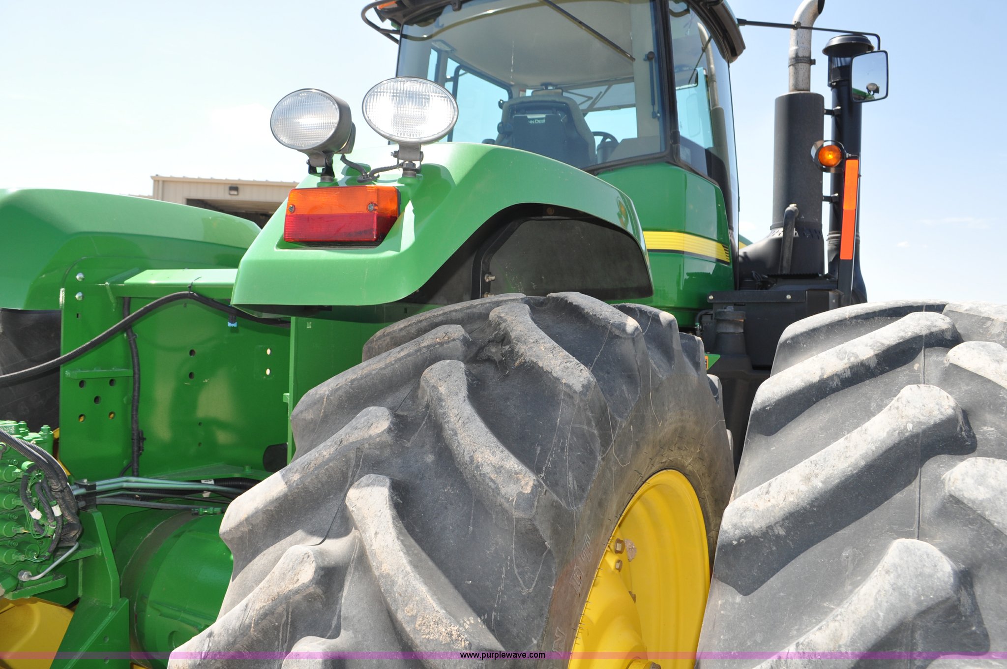 Purple Wave is selling a used Articulated 4-Wheel Drive Tractor in Nebraska. This item is a 2008 John Deere 9430 4WD tractor with the following: 2,906 hours on meter, John Deere 6135 13.5L six cylinder diesel engine, 425 HP, Serial RG6135L001861, Powrsync transmission, 24F-6R gears, Differential lock, Deluxe comfort package cab, AC and heat, AM/FM/CD, Air suspension seat, Instructor's seat, Dual Beam radar sensor, Tilt steering wheel, Visor, Premier lighting package, Xenon lighting,, Draw bar, (4) rear hydraulic remotes, Wheel weights, 350 gallon fuel tank, 137.8 wheelbase, 620/70R42 dual tires, 36,359 lbs. base operating weight, Serial RW9430H002521, Unit # C018544