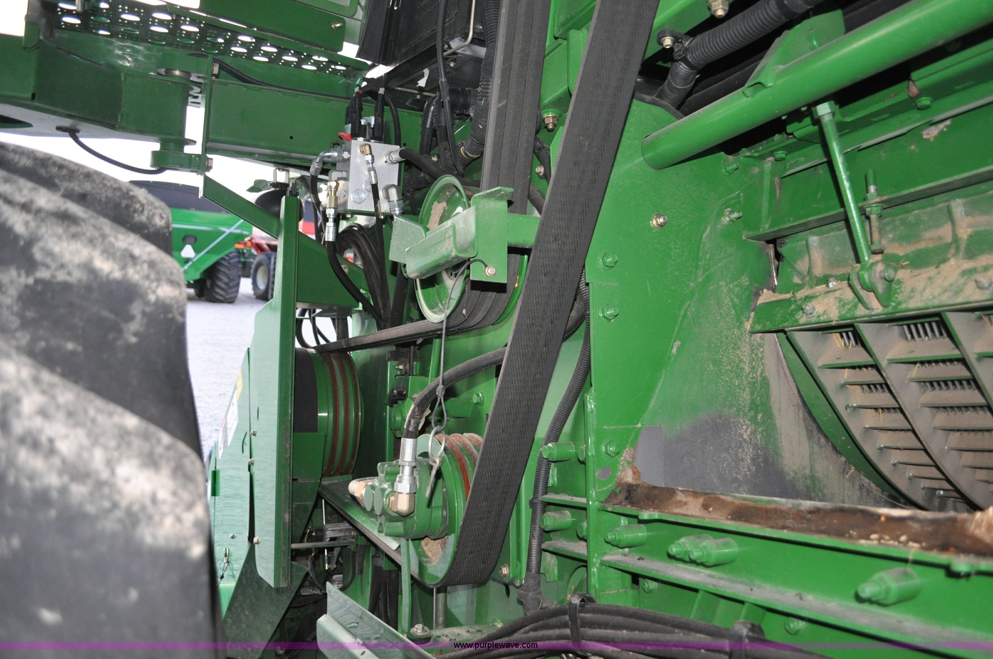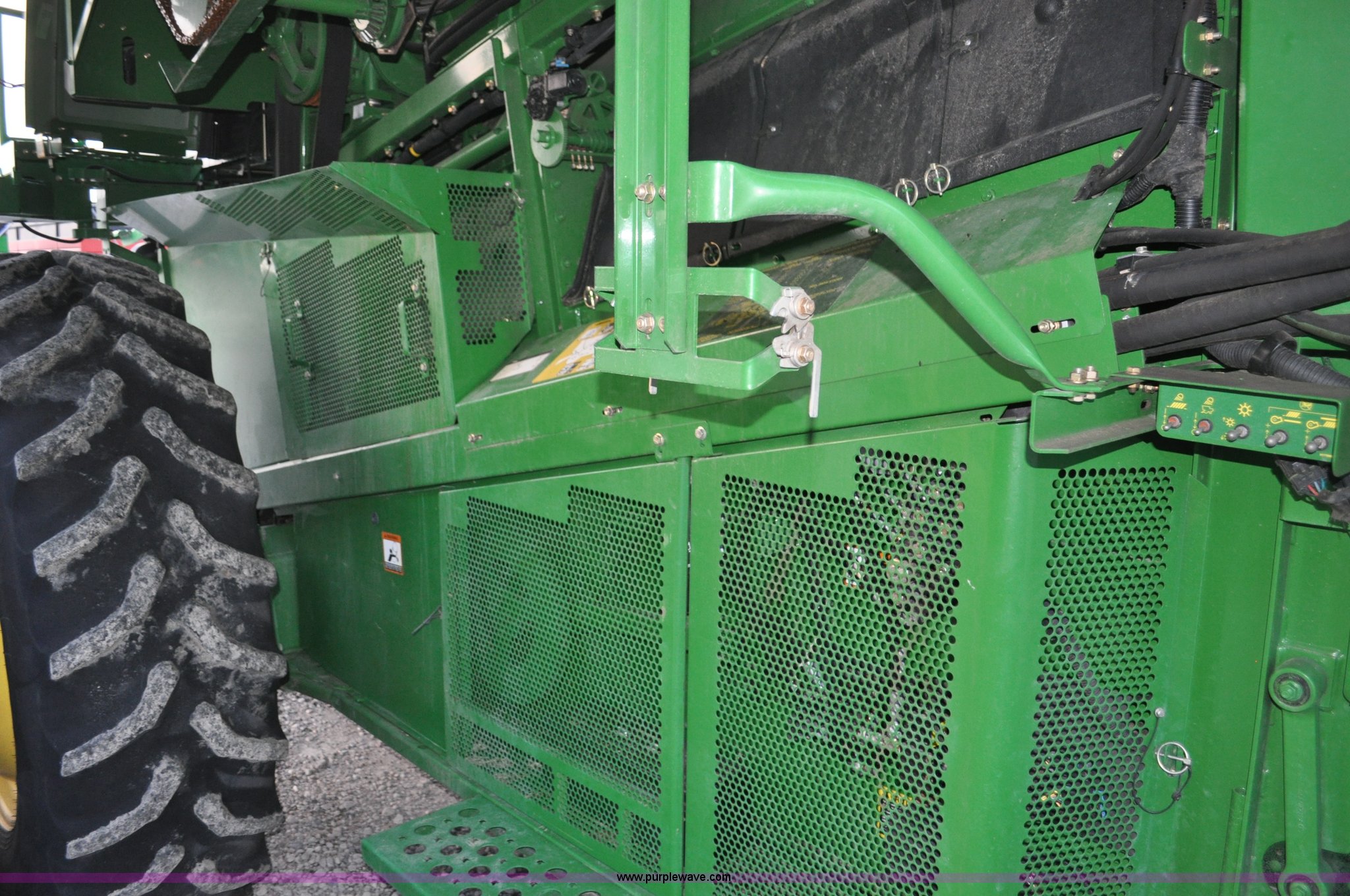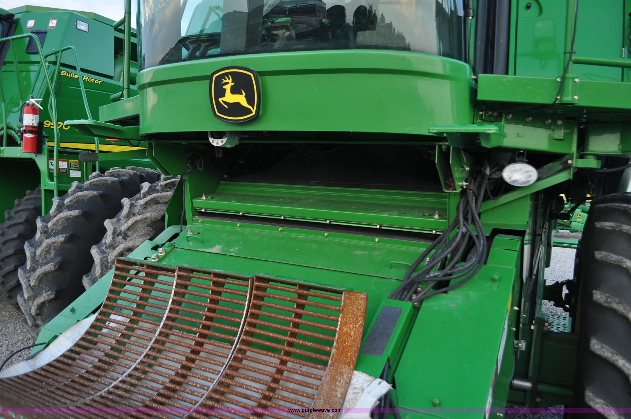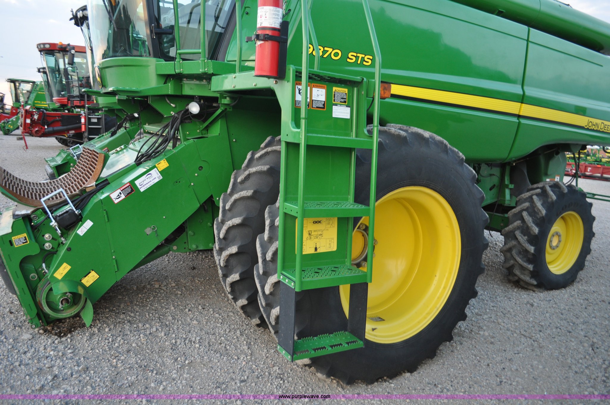 Purple Wave is selling a used Combine in Nebraska. This item is a 2008 John Deere 9870 STS 2WD combine with the following: 1,554 engine hours on meter, 1,076 separator hours on meter, John Deere 6135 13.5L six cylinder diesel engine, 440 HP, Hydrostatic transmission, 3F-3R gears, Contour Master feeder house, Reverser, Single point hookup, Straw chopper, AC and heat, AM/FM/CD/weatherband, Air suspension seat, Instructor's seat, Tilt steering wheel, Visor, Power mirrors, In-cab chaffer and sieve adjust, John Deere bin extensions, 300 bushel bin capacity, Work lights, Yield monitor, Greenstar ready, 520/85R42 dual drive tires, 480/70R30 rear tires, Serial H09870S725859, Unit# C009974