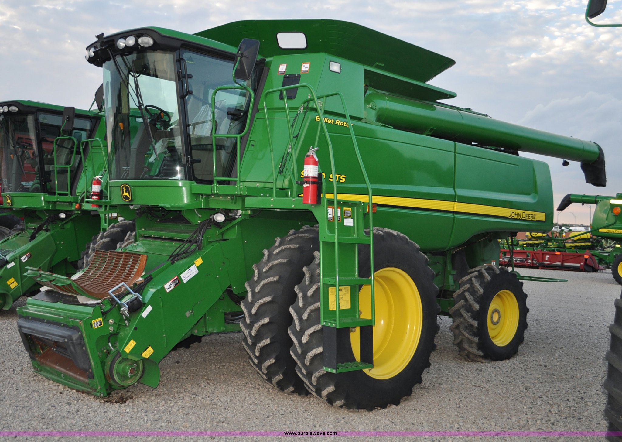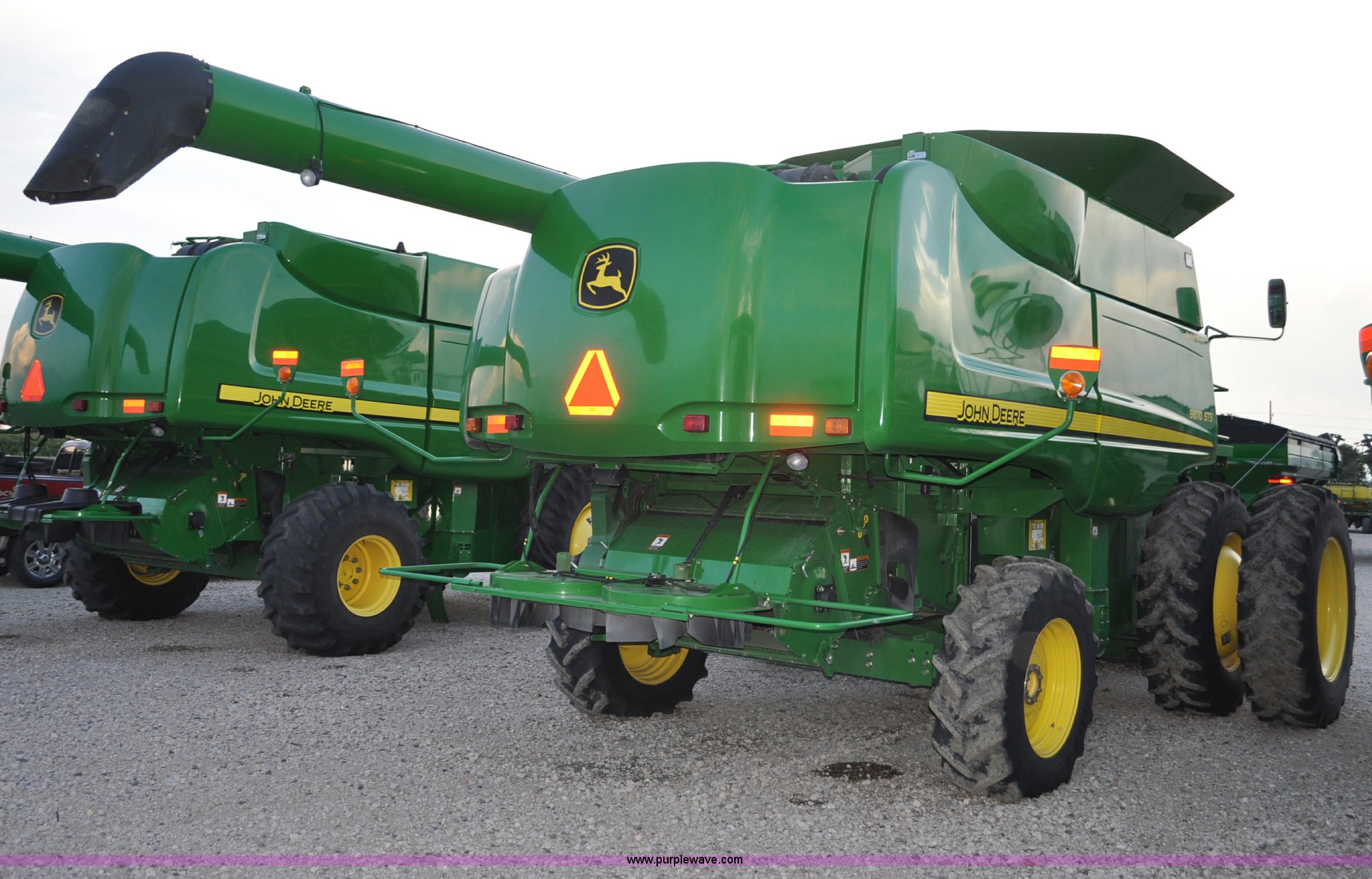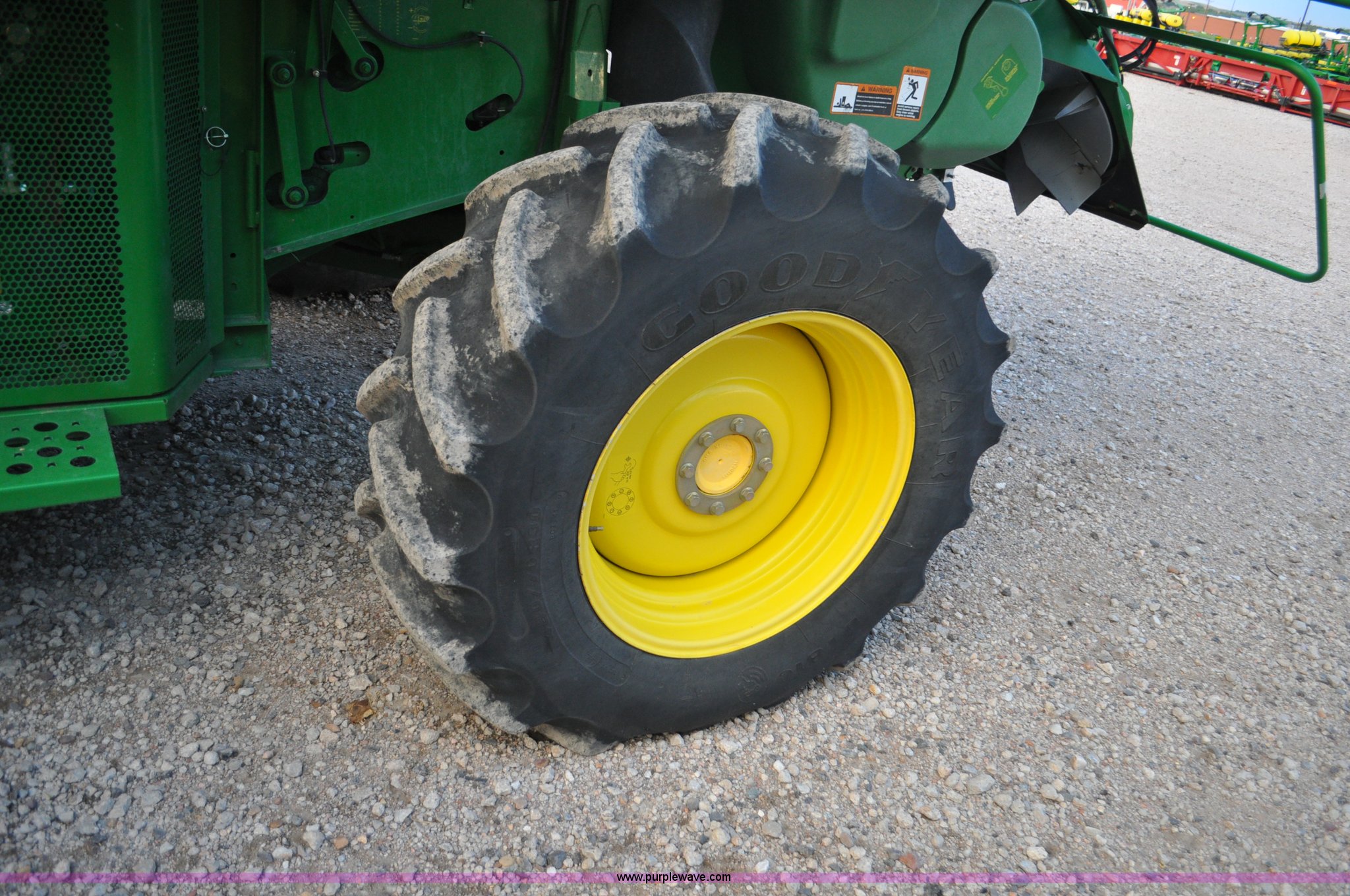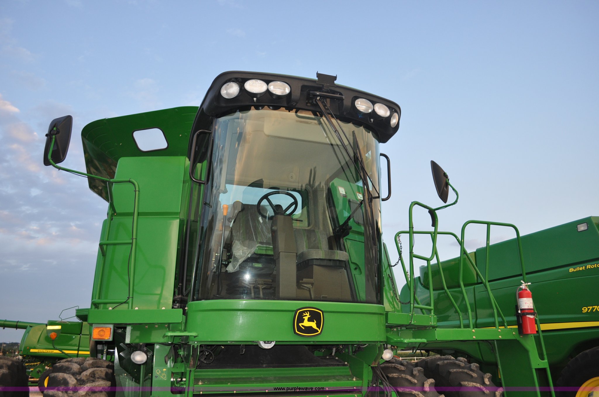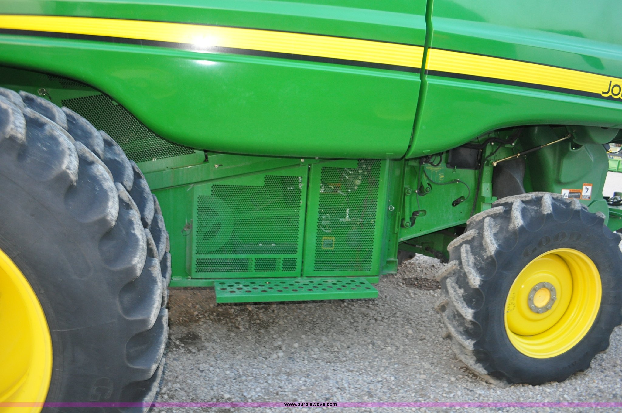 Purple Wave is selling a used Combine in Nebraska. This item is a 2008 John Deere 9870 STS 2WD combine with the following: 1,554 engine hours on meter, 1,076 separator hours on meter, John Deere 6135 13.5L six cylinder diesel engine, 440 HP, Hydrostatic transmission, 3F-3R gears, Contour Master feeder house, Reverser, Single point hookup, Straw chopper, AC and heat, AM/FM/CD/weatherband, Air suspension seat, Instructor's seat, Tilt steering wheel, Visor, Power mirrors, In-cab chaffer and sieve adjust, John Deere bin extensions, 300 bushel bin capacity, Work lights, Yield monitor, Greenstar ready, 520/85R42 dual drive tires, 480/70R30 rear tires, Serial H09870S725859, Unit# C009974