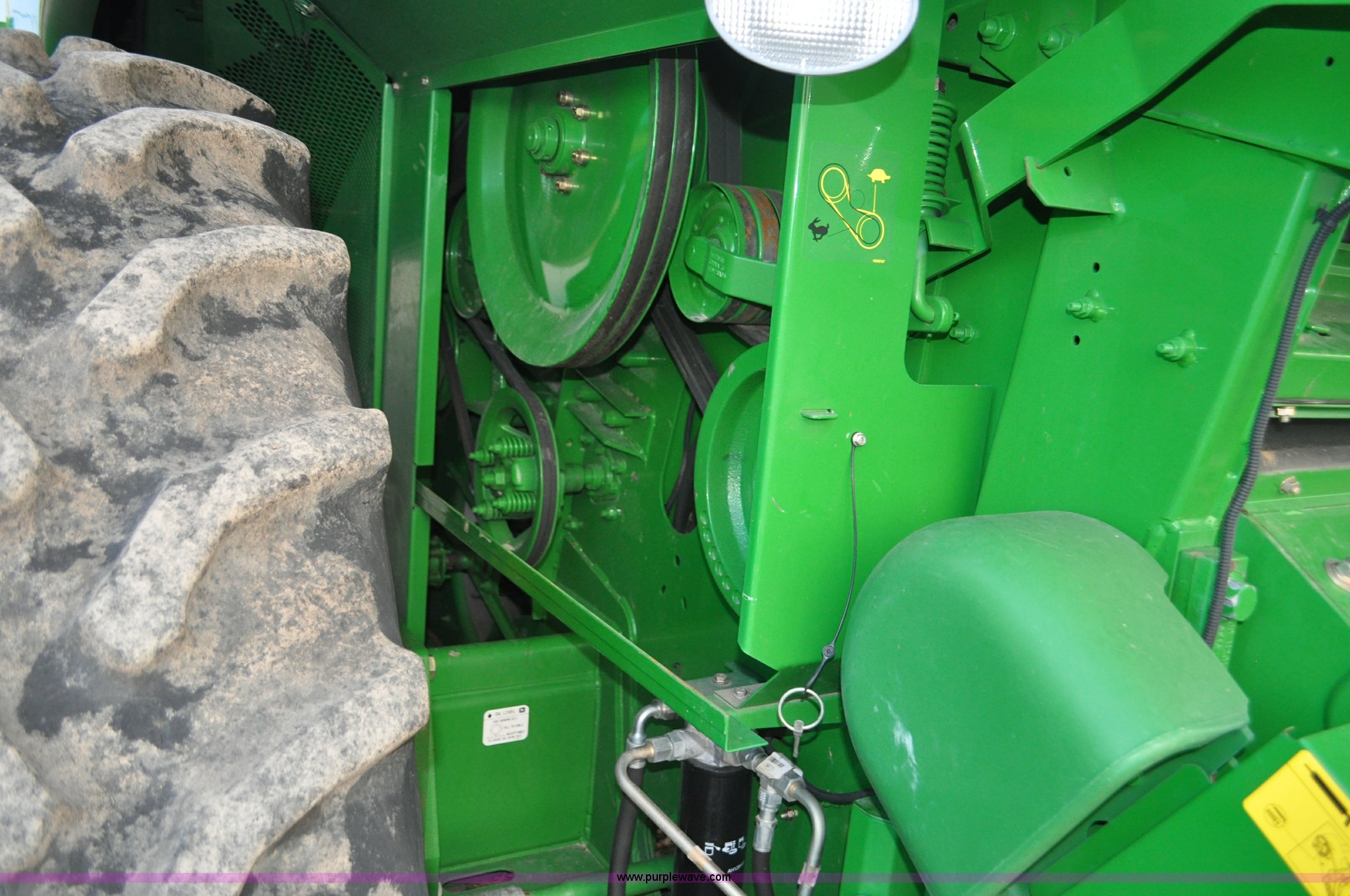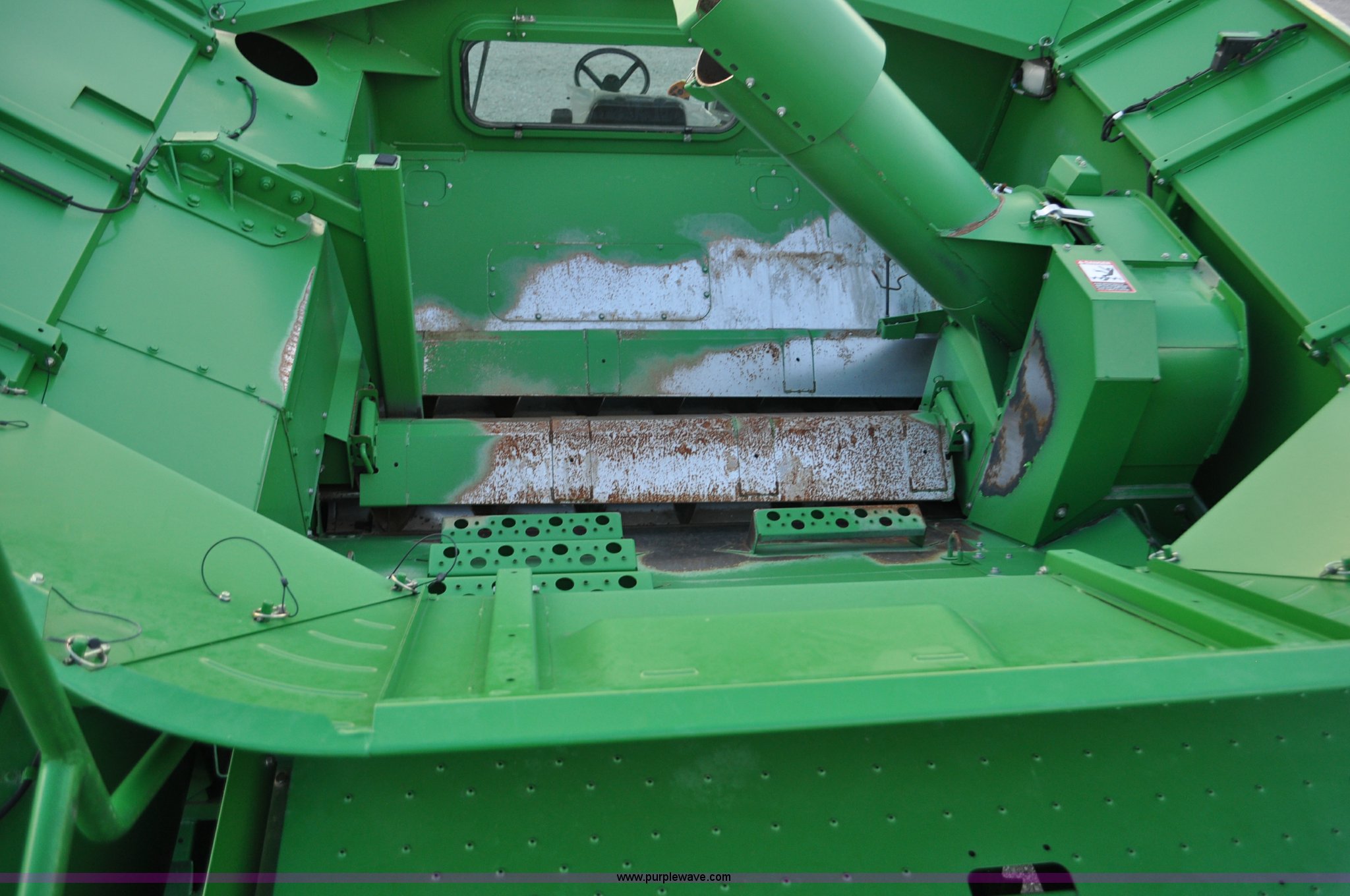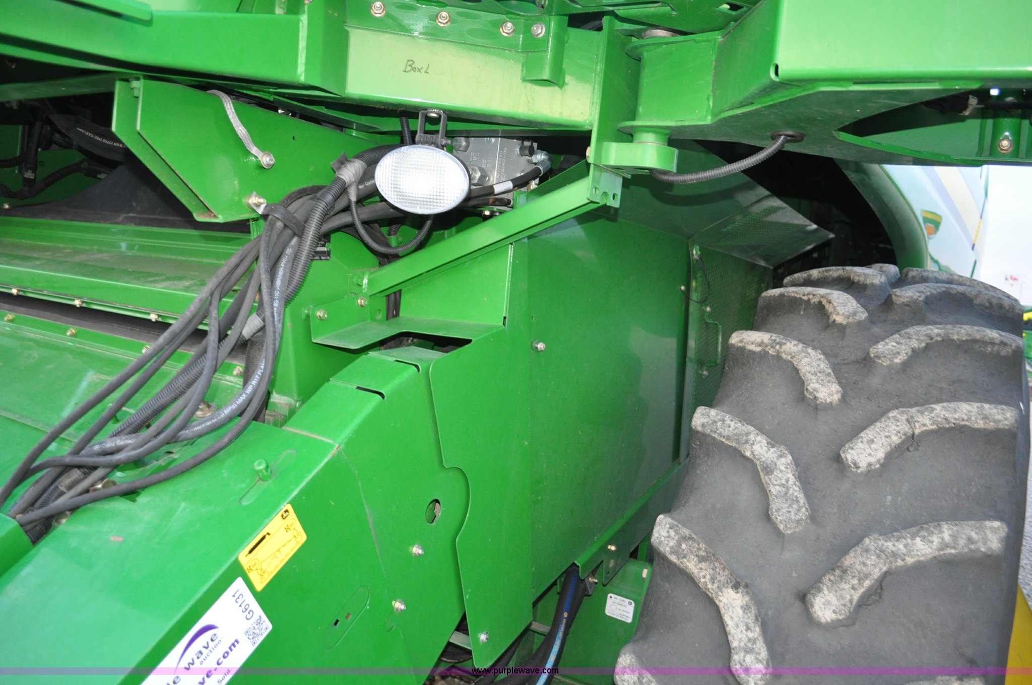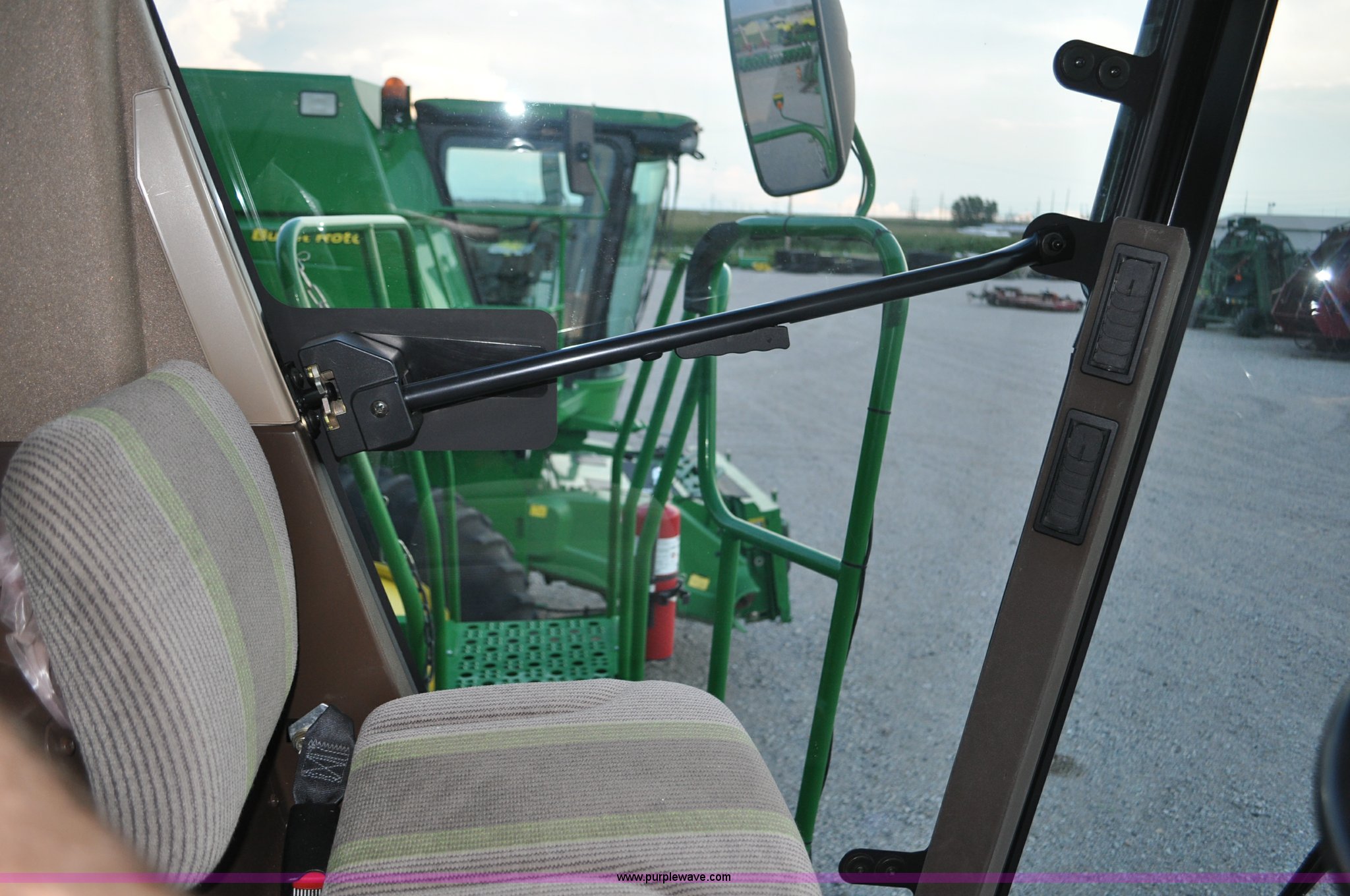 Purple Wave is selling a used Combine in Nebraska. This item is a 2008 John Deere 9870 STS 2WD combine with the following: 1,554 engine hours on meter, 1,076 separator hours on meter, John Deere 6135 13.5L six cylinder diesel engine, 440 HP, Hydrostatic transmission, 3F-3R gears, Contour Master feeder house, Reverser, Single point hookup, Straw chopper, AC and heat, AM/FM/CD/weatherband, Air suspension seat, Instructor's seat, Tilt steering wheel, Visor, Power mirrors, In-cab chaffer and sieve adjust, John Deere bin extensions, 300 bushel bin capacity, Work lights, Yield monitor, Greenstar ready, 520/85R42 dual drive tires, 480/70R30 rear tires, Serial H09870S725859, Unit# C009974