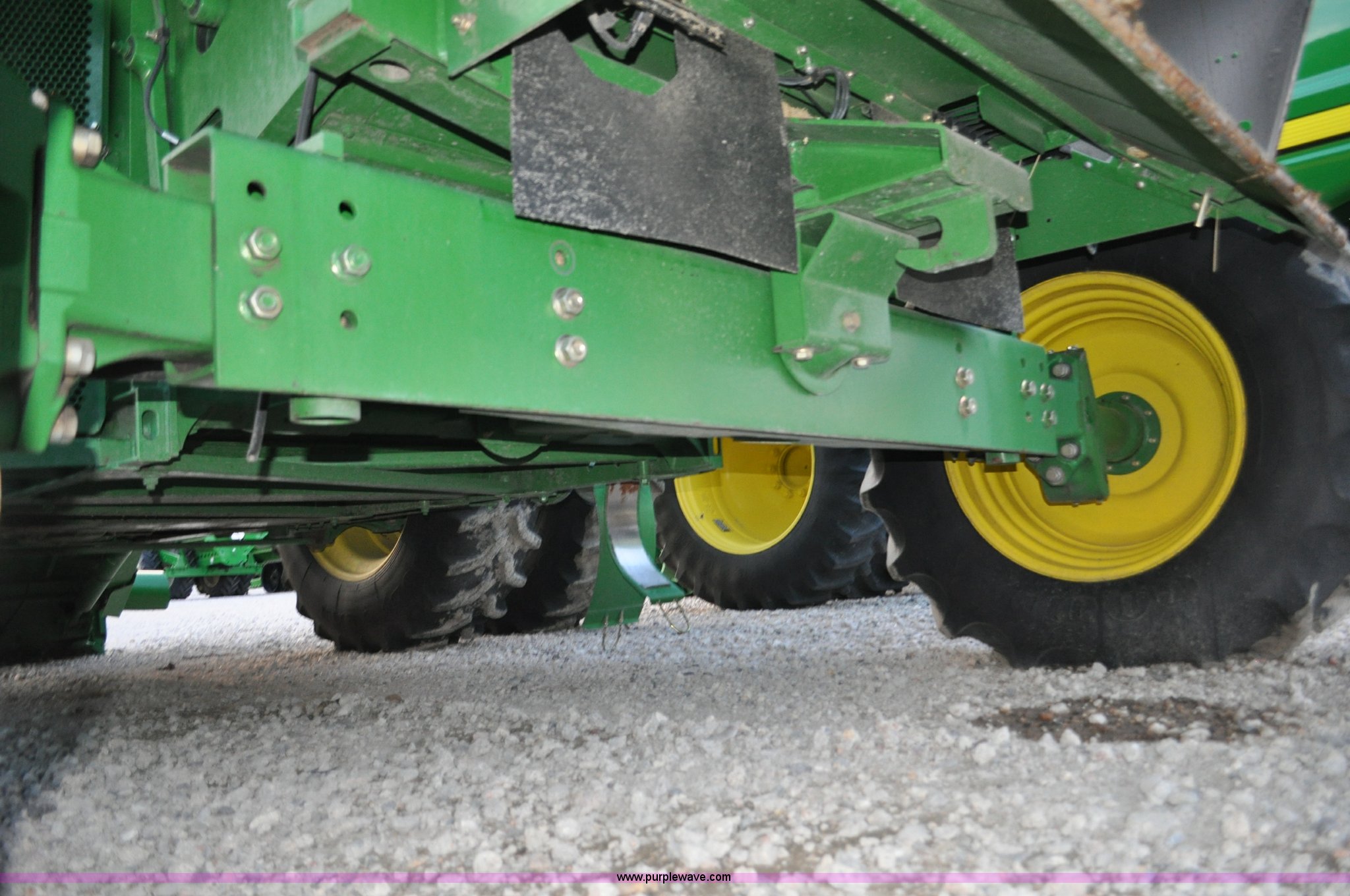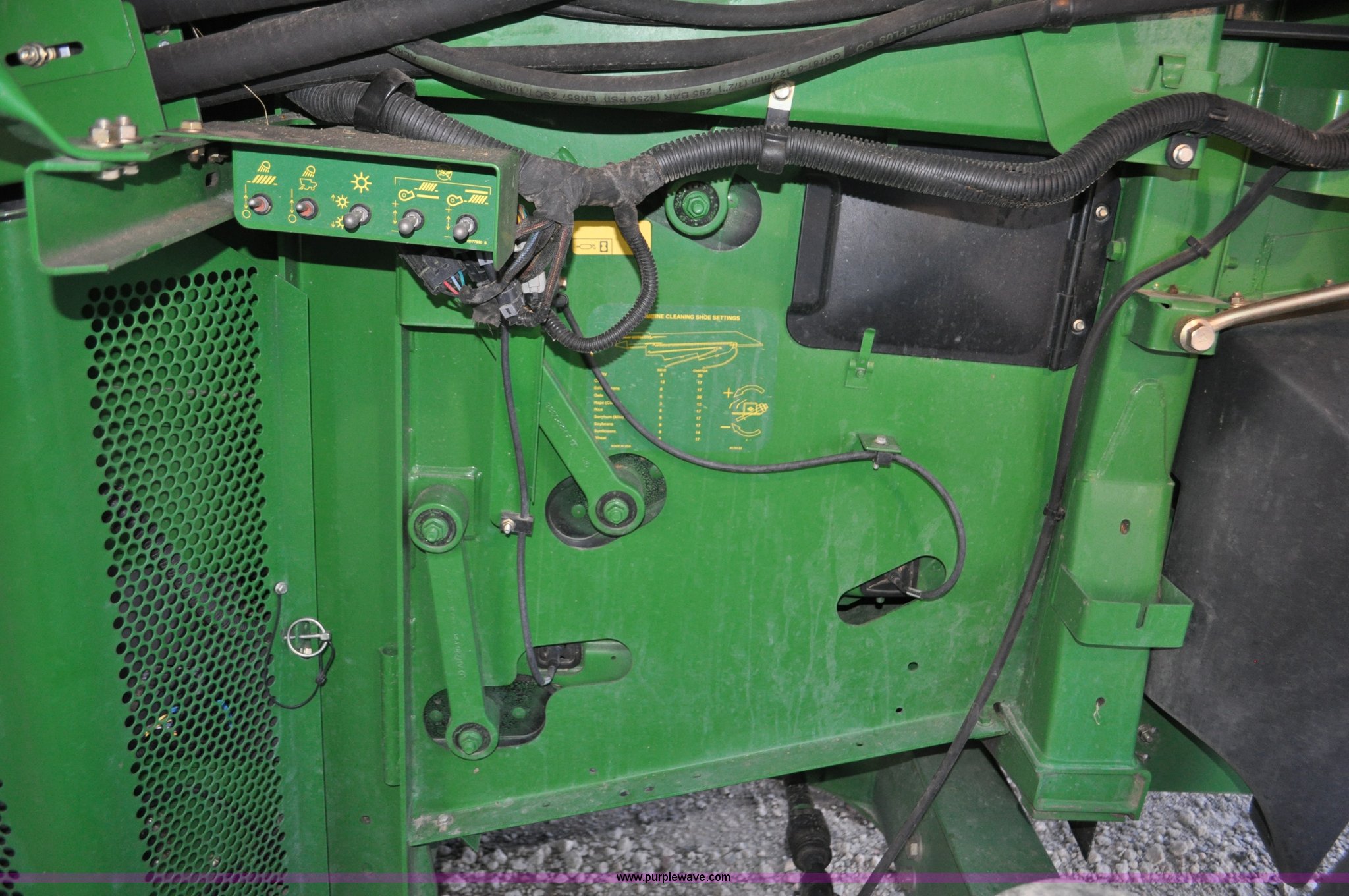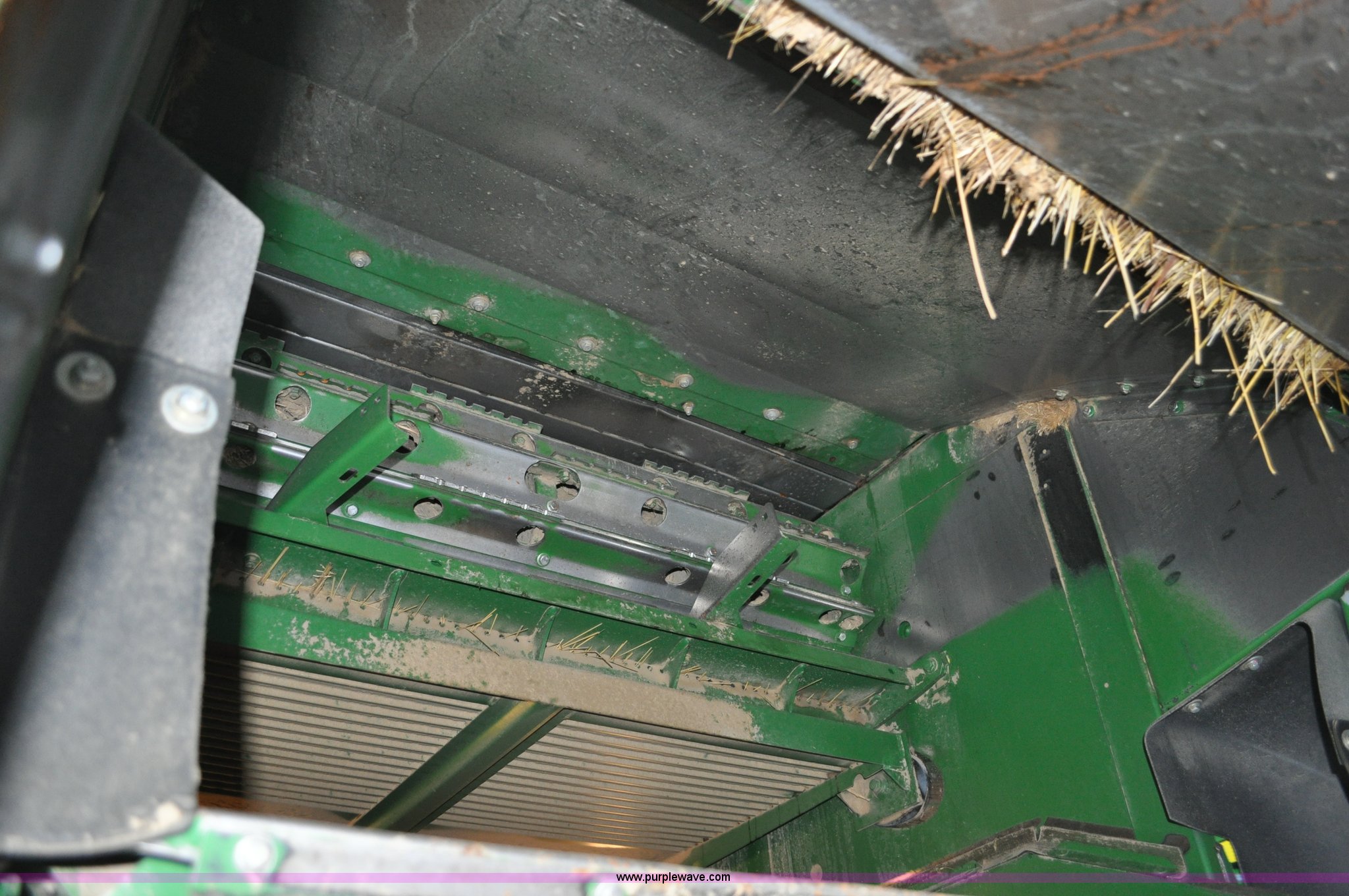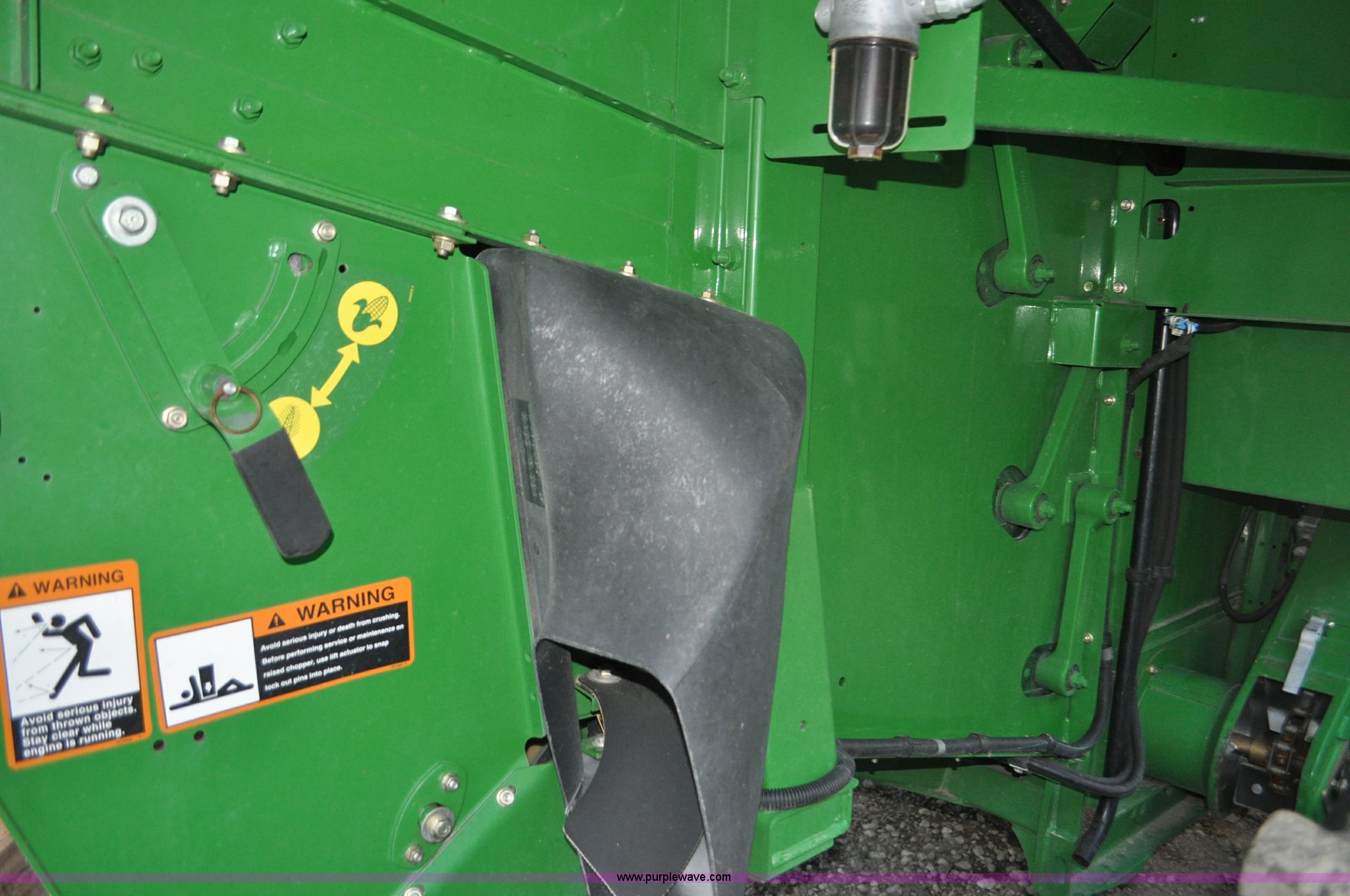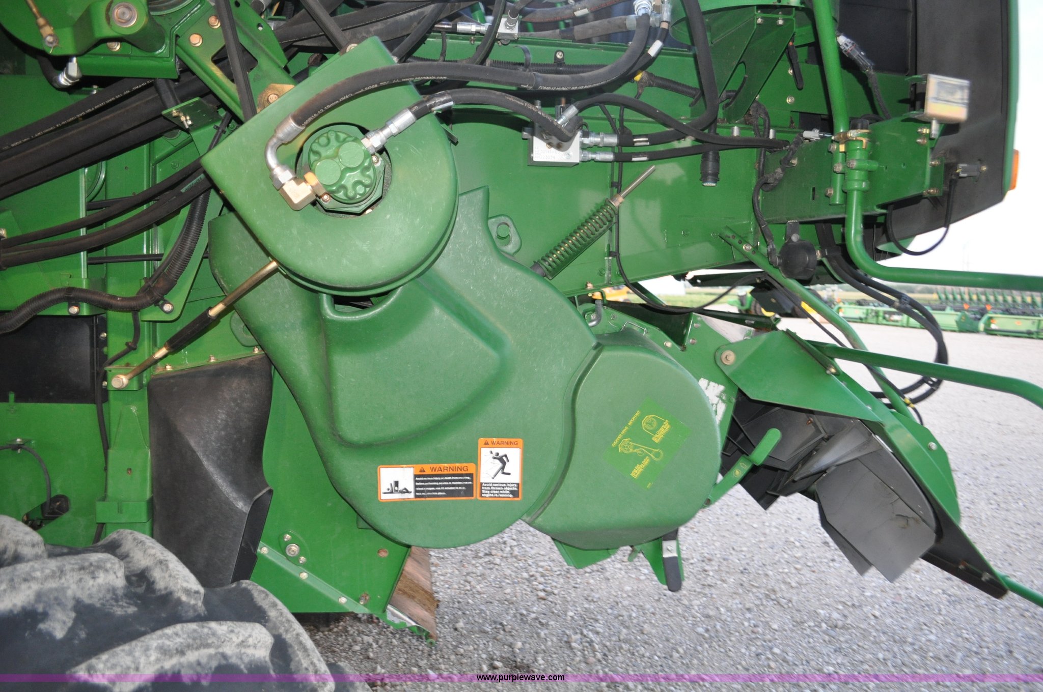 Purple Wave is selling a used Combine in Nebraska. This item is a 2008 John Deere 9870 STS 2WD combine with the following: 1,554 engine hours on meter, 1,076 separator hours on meter, John Deere 6135 13.5L six cylinder diesel engine, 440 HP, Hydrostatic transmission, 3F-3R gears, Contour Master feeder house, Reverser, Single point hookup, Straw chopper, AC and heat, AM/FM/CD/weatherband, Air suspension seat, Instructor's seat, Tilt steering wheel, Visor, Power mirrors, In-cab chaffer and sieve adjust, John Deere bin extensions, 300 bushel bin capacity, Work lights, Yield monitor, Greenstar ready, 520/85R42 dual drive tires, 480/70R30 rear tires, Serial H09870S725859, Unit# C009974