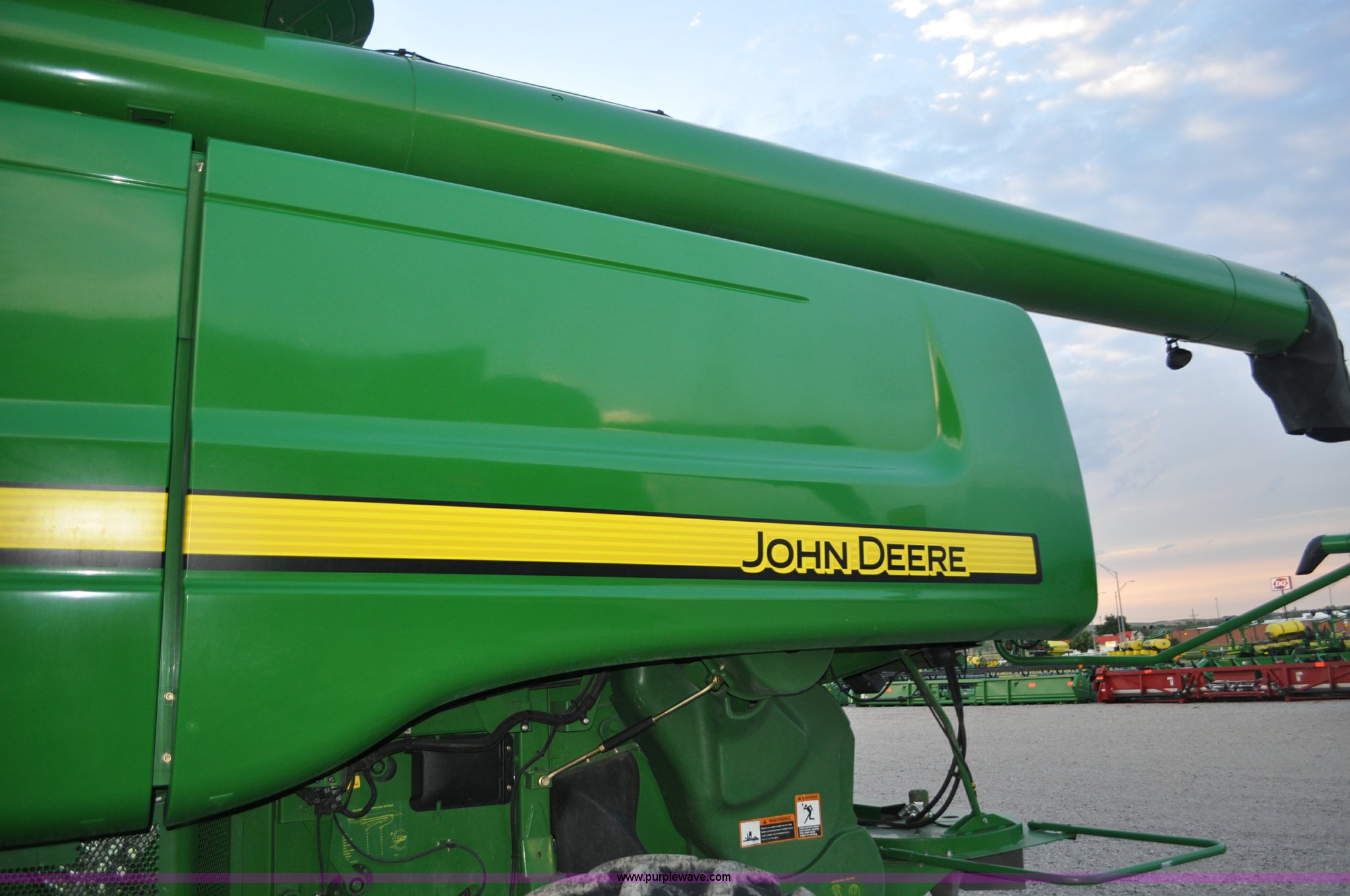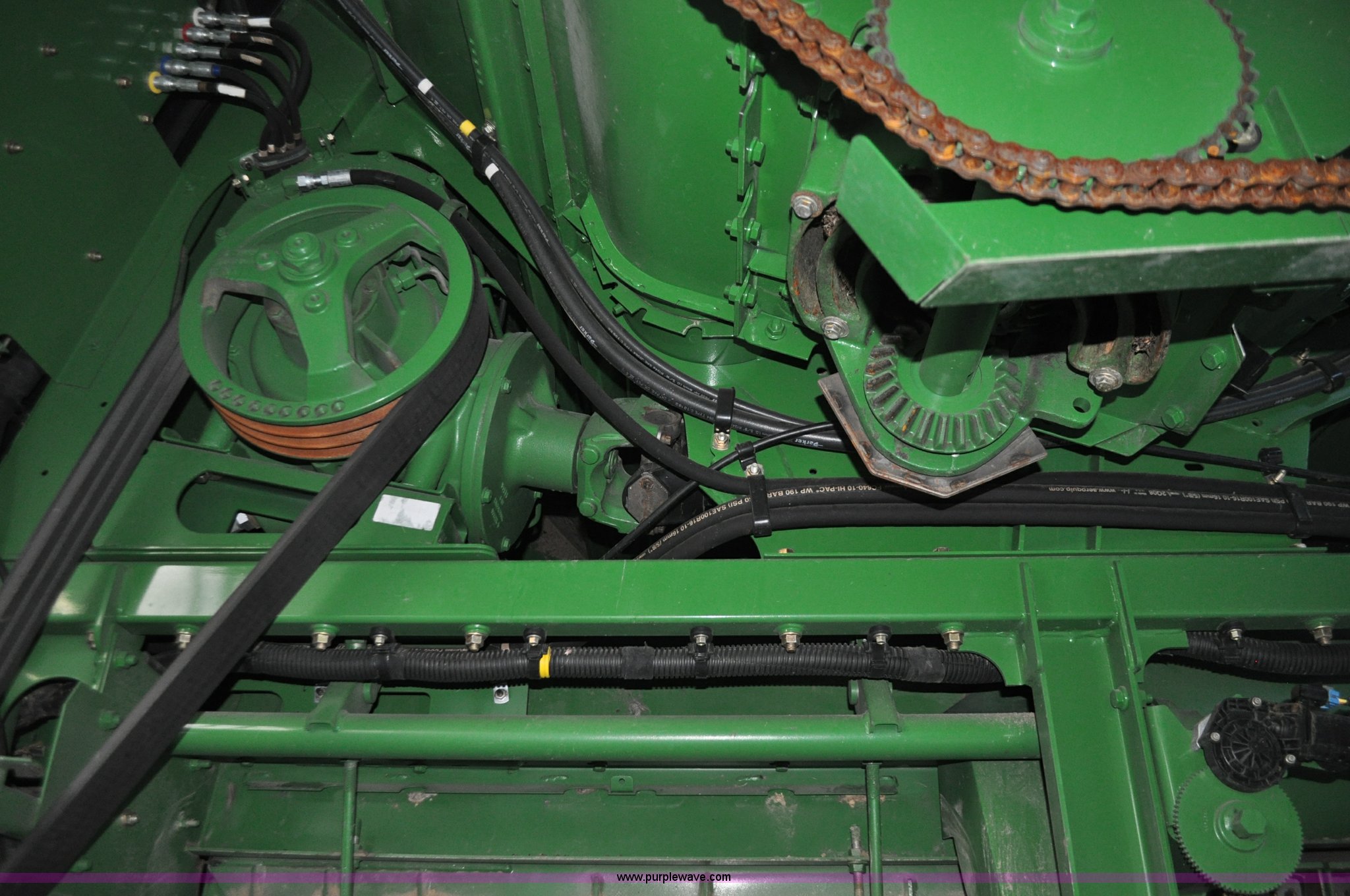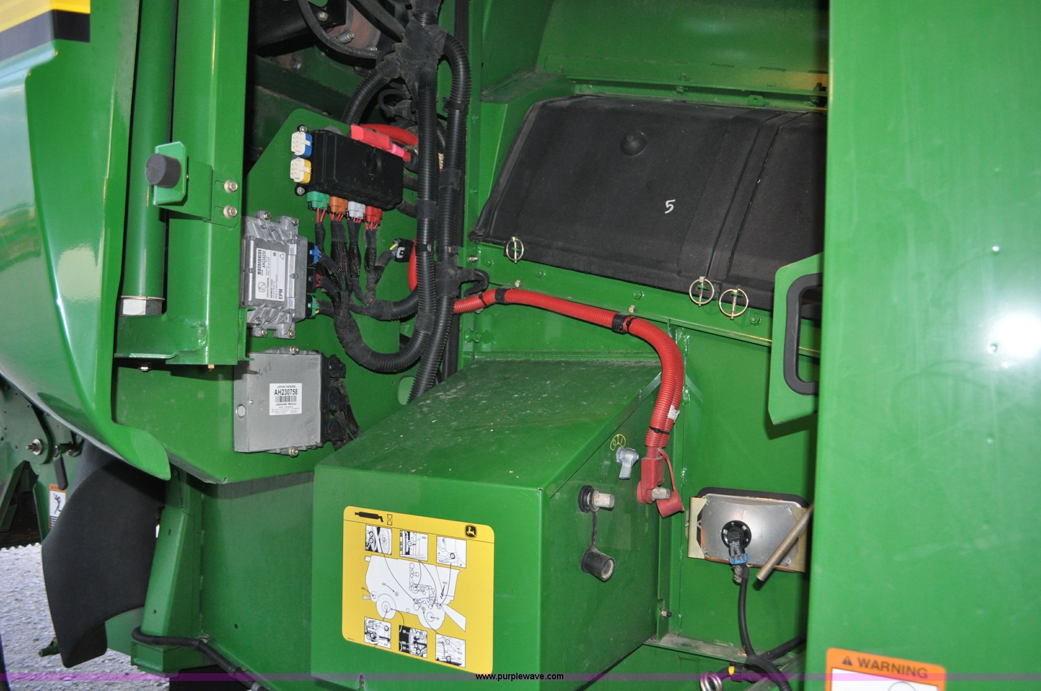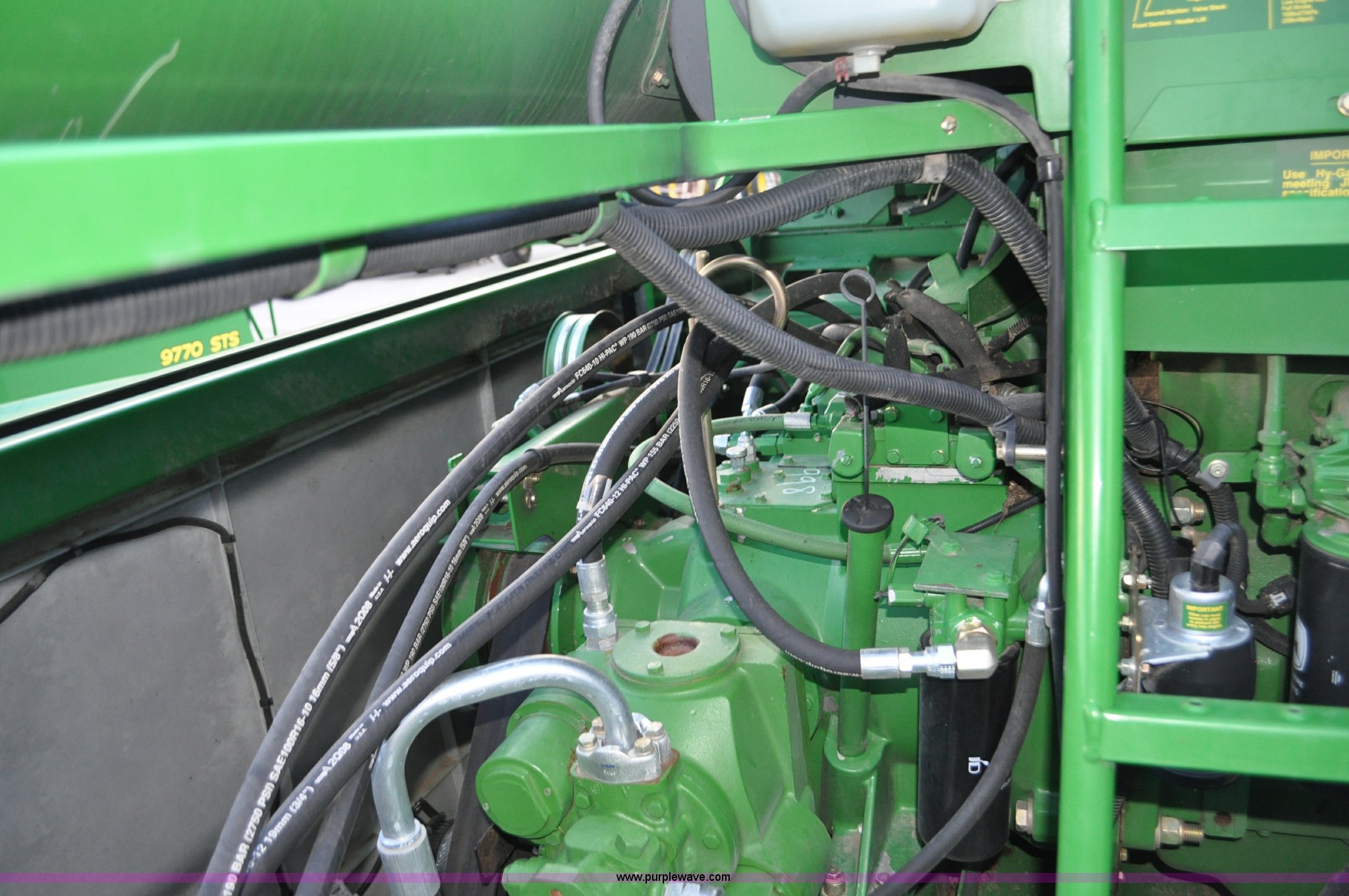 Purple Wave is selling a used Combine in Nebraska. This item is a 2008 John Deere 9870 STS 2WD combine with the following: 1,554 engine hours on meter, 1,076 separator hours on meter, John Deere 6135 13.5L six cylinder diesel engine, 440 HP, Hydrostatic transmission, 3F-3R gears, Contour Master feeder house, Reverser, Single point hookup, Straw chopper, AC and heat, AM/FM/CD/weatherband, Air suspension seat, Instructor's seat, Tilt steering wheel, Visor, Power mirrors, In-cab chaffer and sieve adjust, John Deere bin extensions, 300 bushel bin capacity, Work lights, Yield monitor, Greenstar ready, 520/85R42 dual drive tires, 480/70R30 rear tires, Serial H09870S725859, Unit# C009974