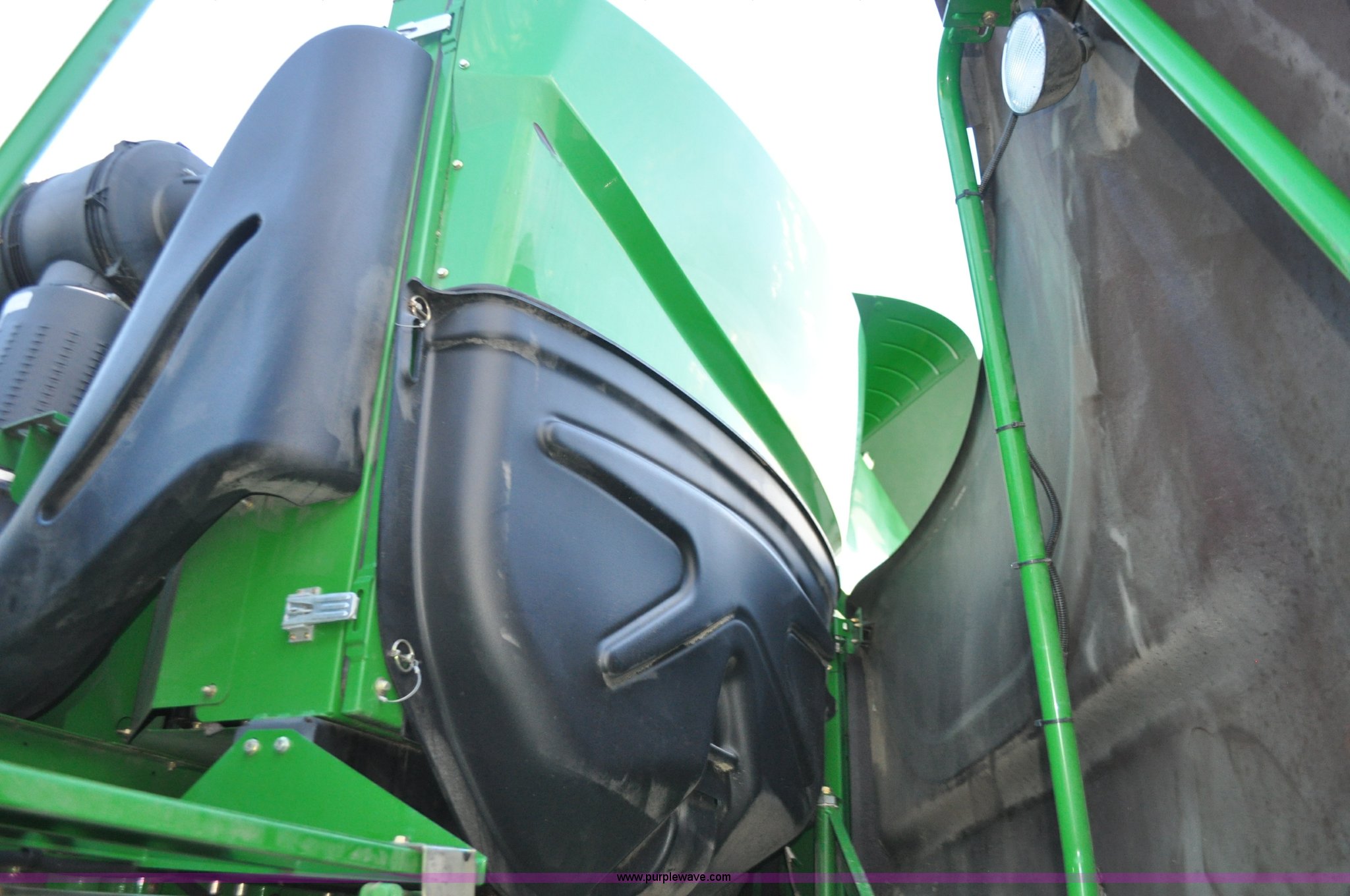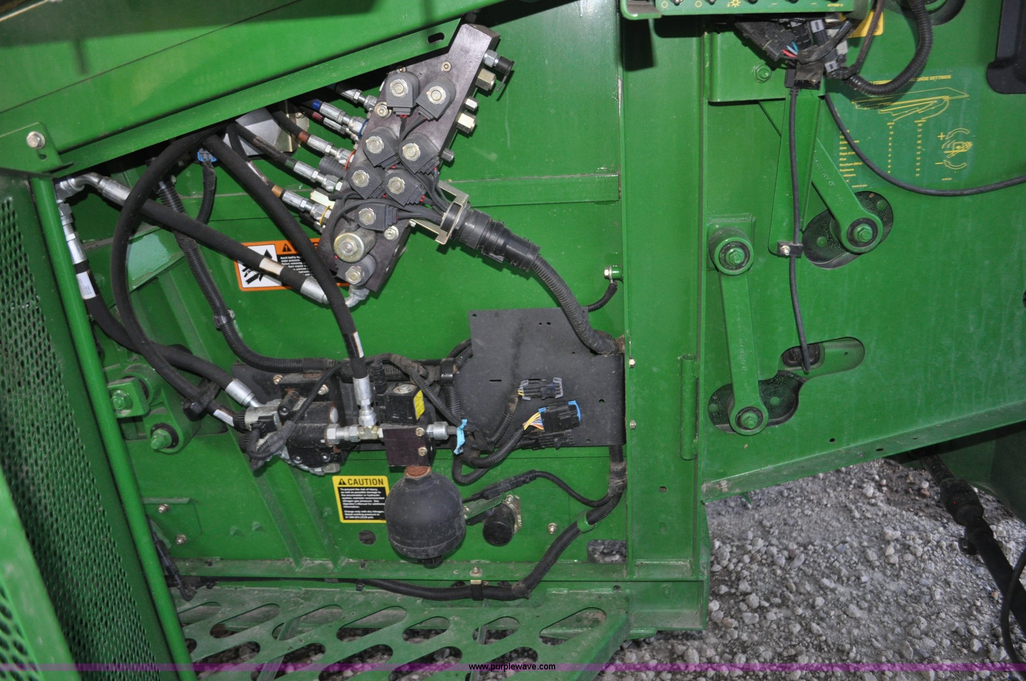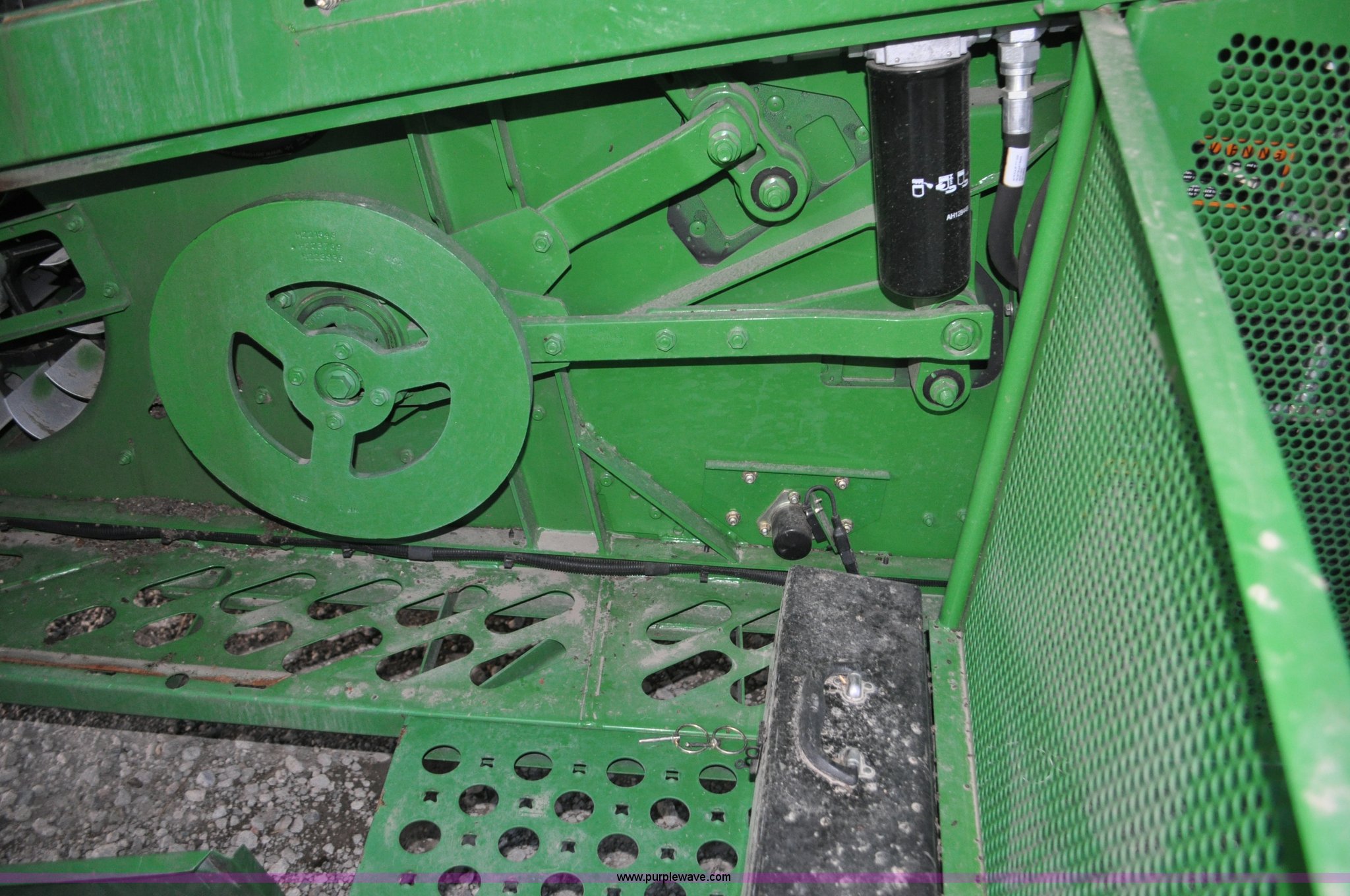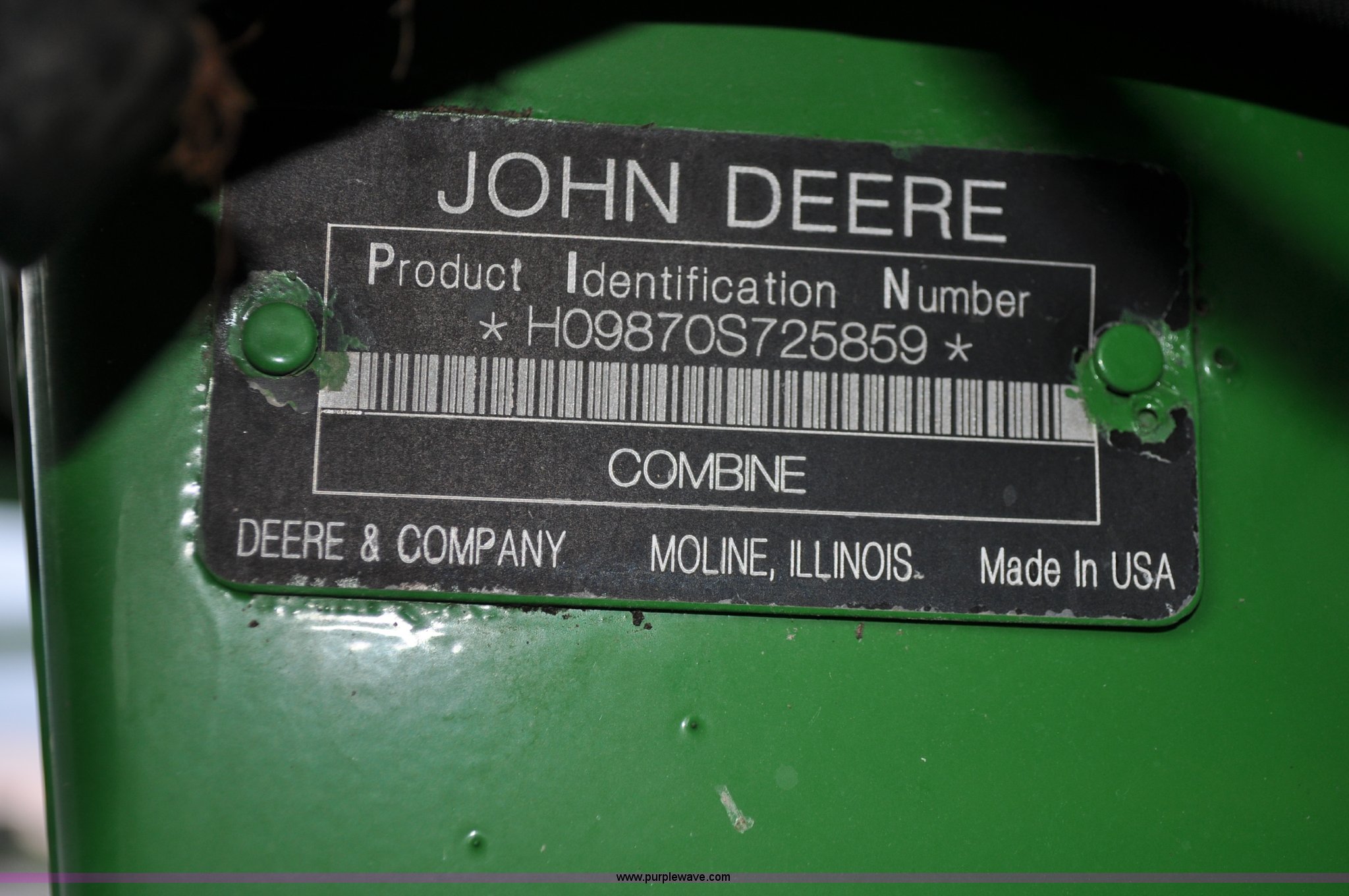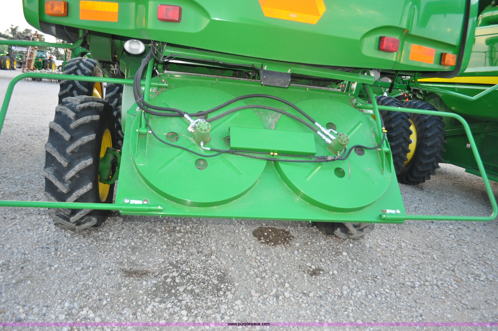 Purple Wave is selling a used Combine in Nebraska. This item is a 2008 John Deere 9870 STS 2WD combine with the following: 1,554 engine hours on meter, 1,076 separator hours on meter, John Deere 6135 13.5L six cylinder diesel engine, 440 HP, Hydrostatic transmission, 3F-3R gears, Contour Master feeder house, Reverser, Single point hookup, Straw chopper, AC and heat, AM/FM/CD/weatherband, Air suspension seat, Instructor's seat, Tilt steering wheel, Visor, Power mirrors, In-cab chaffer and sieve adjust, John Deere bin extensions, 300 bushel bin capacity, Work lights, Yield monitor, Greenstar ready, 520/85R42 dual drive tires, 480/70R30 rear tires, Serial H09870S725859, Unit# C009974