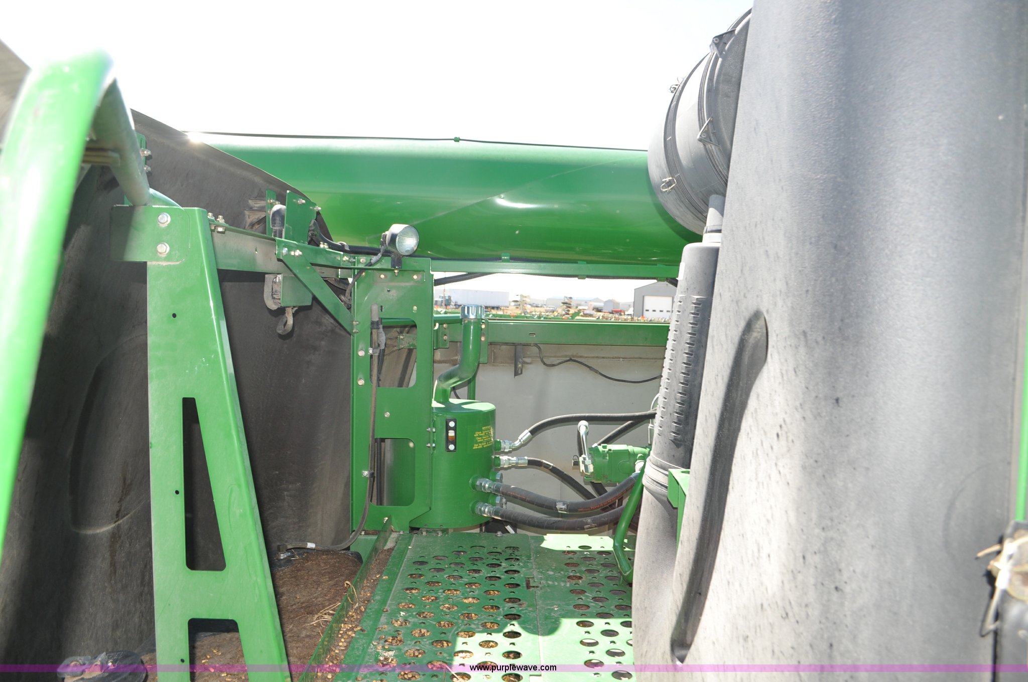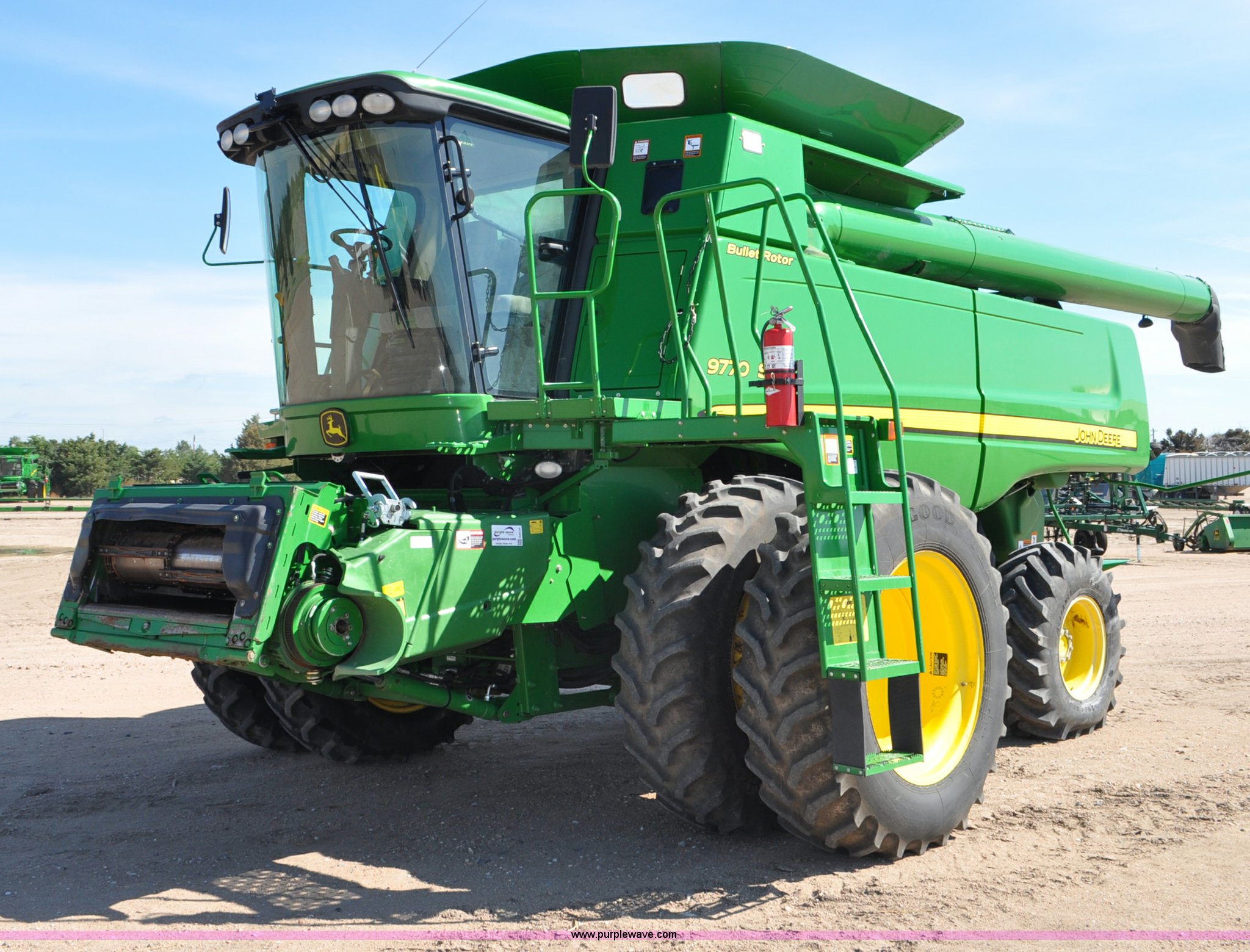 Purple Wave is selling a used Combine in Nebraska. This item is a 2009 John Deere 9770 STS 2WD combine with the following: 1,240 engine hours on meter, 877 separator hours on meter, John Deere 6090 9.0L six cylinder diesel engine, 360 HP, Serial RG6090L090074, Hydrostatic transmission, 3F-3R gears, Contour Master feeder house, Reverser, Single point hookup, Custom cutter extended wear package, Straw chopper, Premier cab, AC and heat, AM/FM/CD, Air seat, Instructor's seat, Tilt steering wheel, Visor, Bin extension, Work lights, Two speed rotor, Yield monitor, Greenstar ready, 520/85R42 dual drive tires, 18.4R26 rear tires, Serial H09770S733698, Unit# C020572