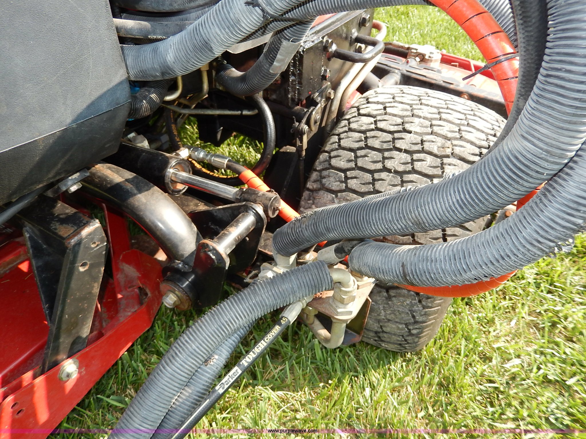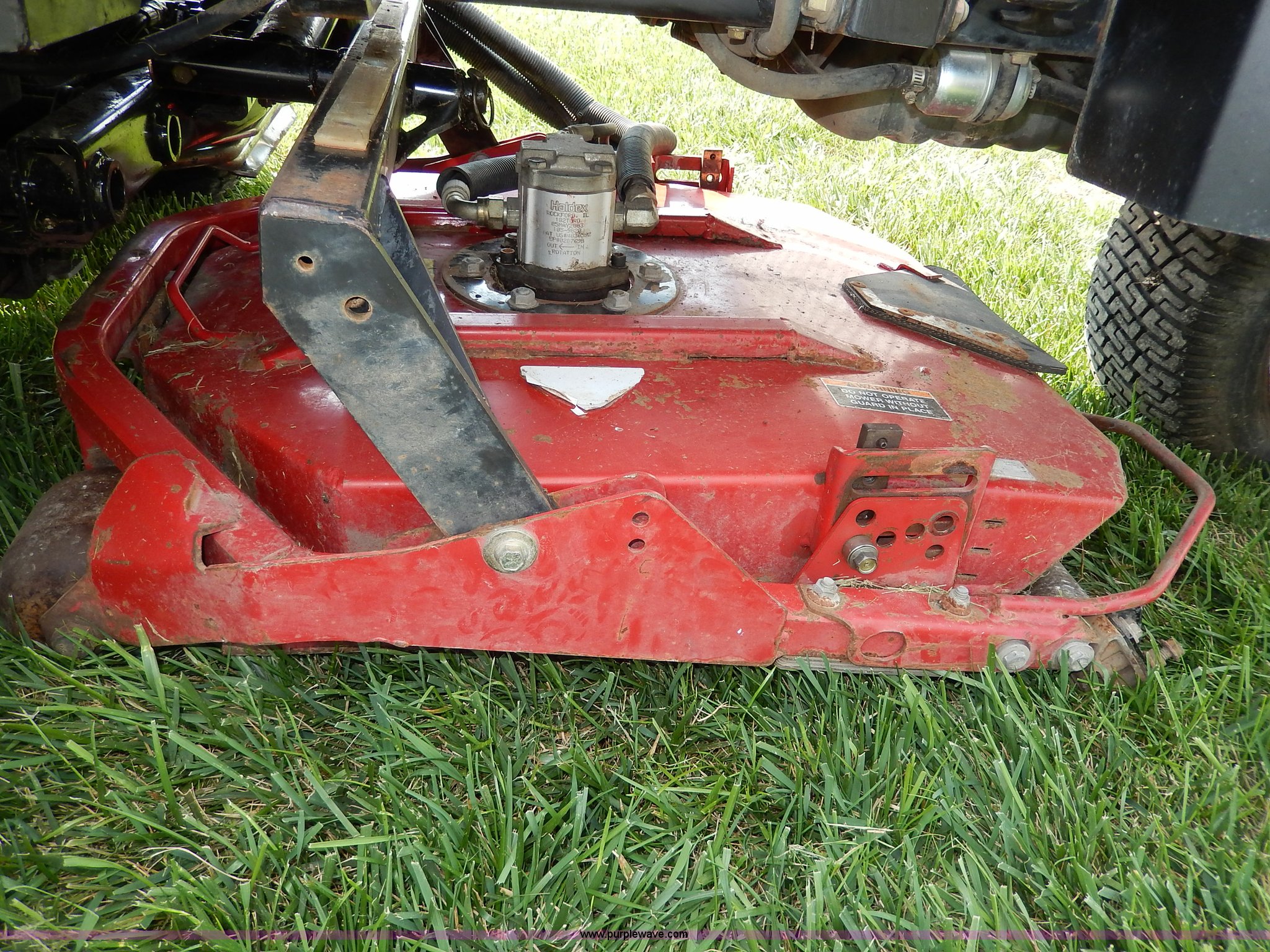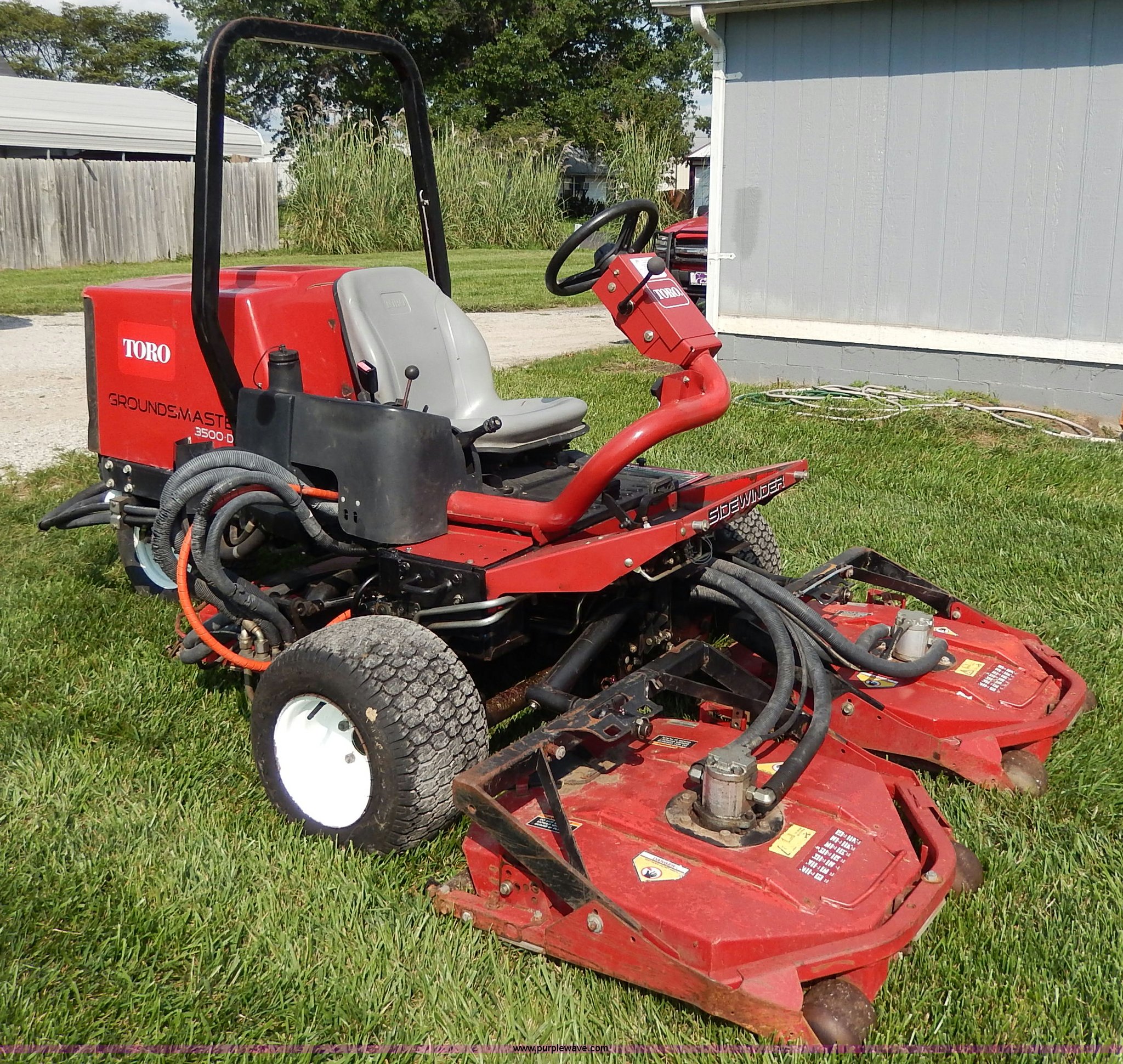 Purple Wave is selling a used Commercial Turf Mower in Kansas. This item is a 2004 Toro Sidewinder turf mower with the following: 3,056 hours on meter, 72" cut, Kubota 32 HP turbo diesel engine, Model D1105-T-E, Hydrostatic trasnmission, Front deck slides side to side, Recycler bafflers can be removed to cut regular lawn grass, 20 x 12.00-10 front tires, 20 x 10.00-10 rear tires, Recently serviced, Service manual, Serial 7955