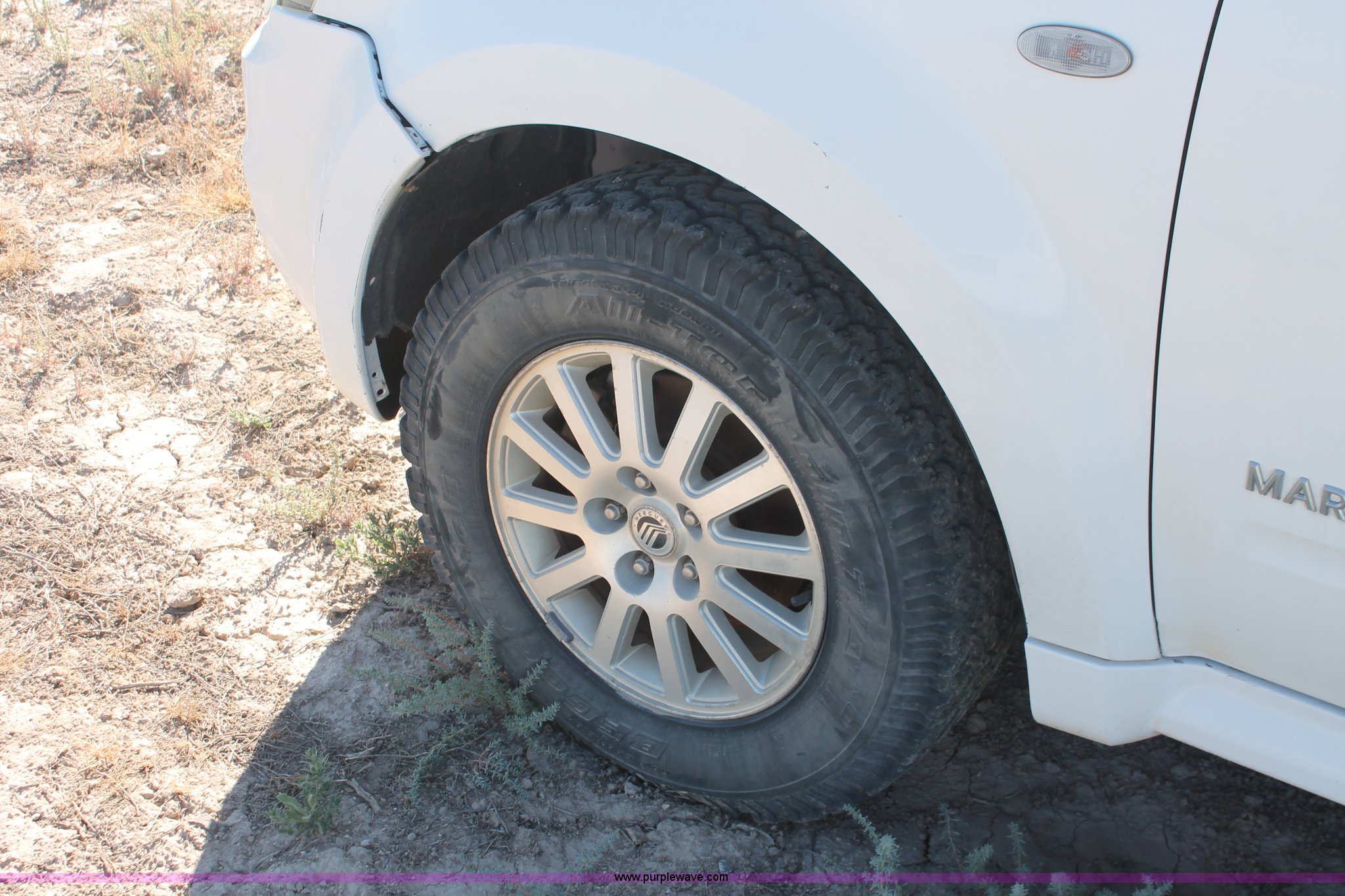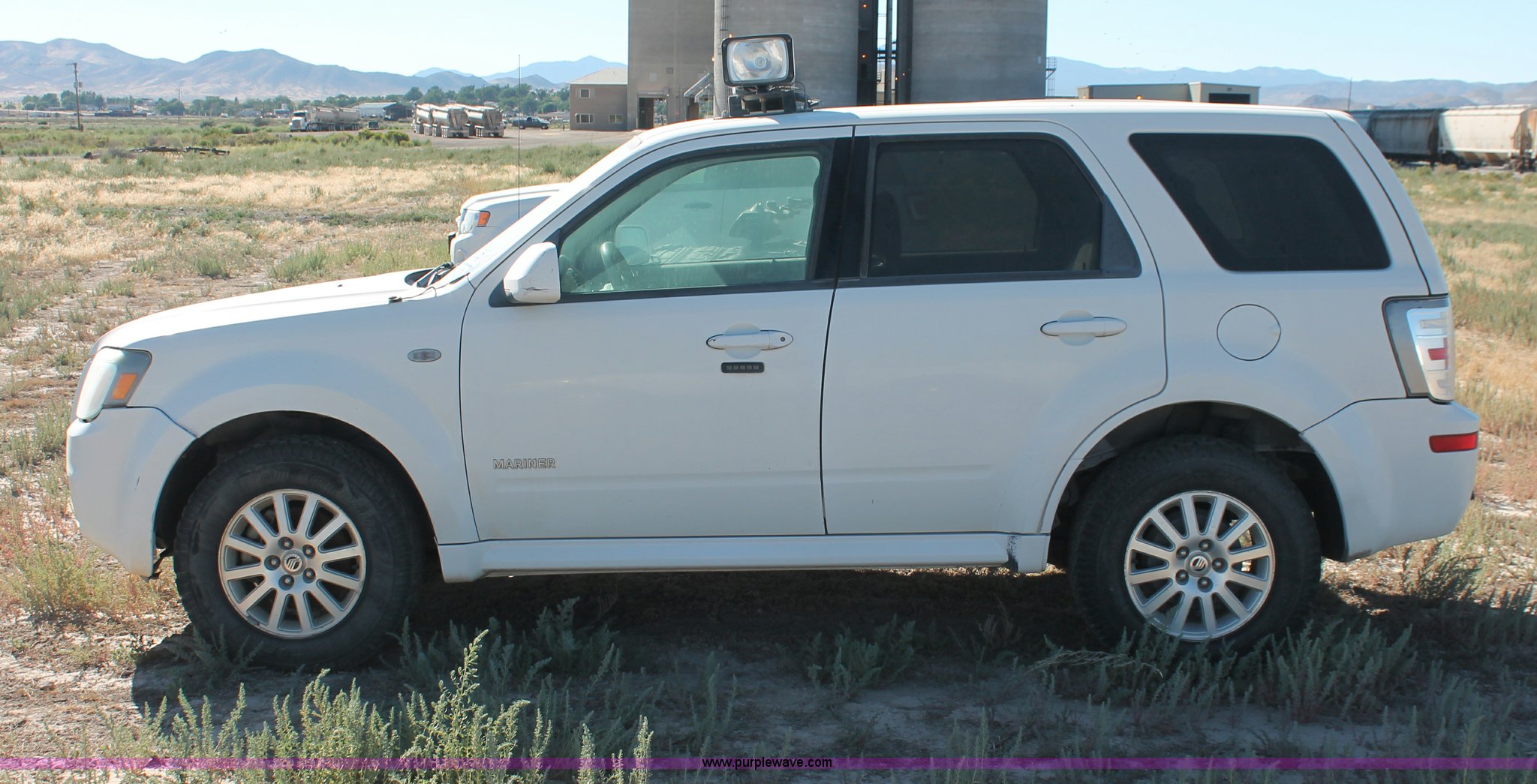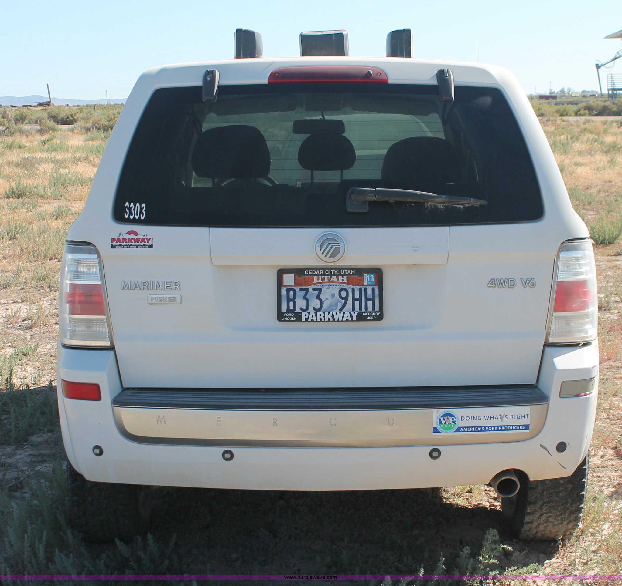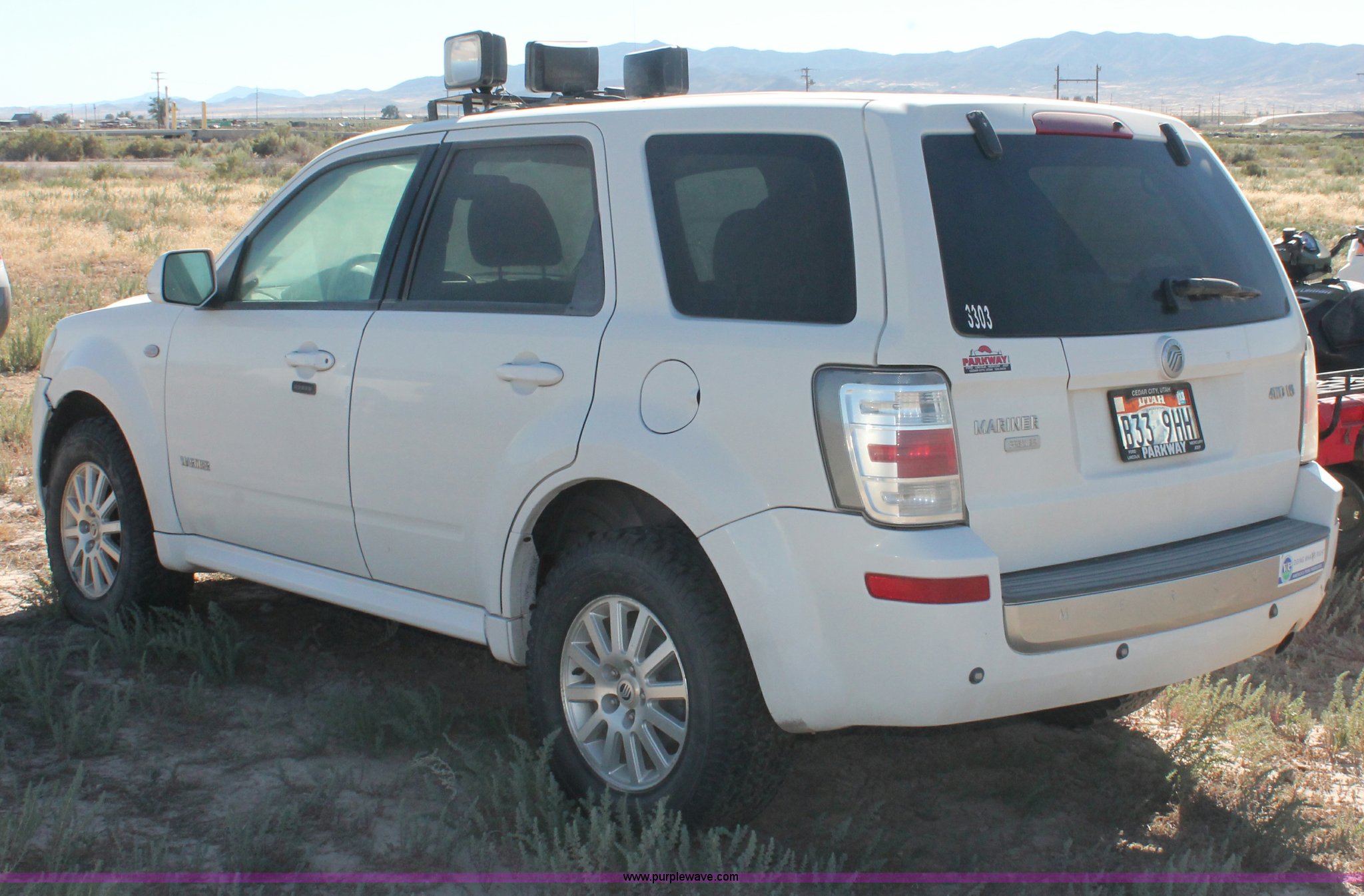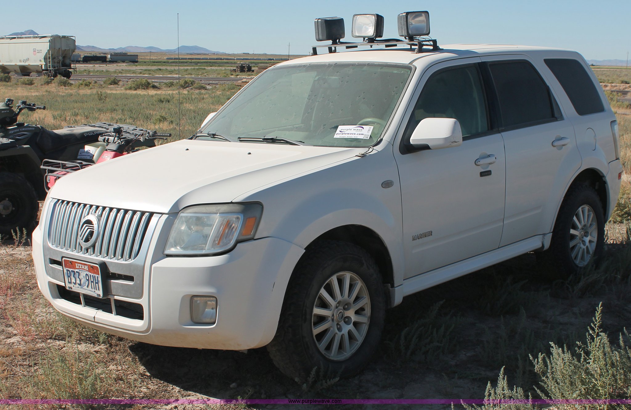 Purple Wave is selling a used Passenger Vehicle in Utah. This item is a 2008 Mercury Mariner Premier SUV with the following: 170,743 miles on odometer, Miles as of May 8, 2012, 3.0L V6 DOHC 24V gas engine, Automatic transmission, Four wheel drive, AC and heat, Tilt, Cruise, AM/FM/CD, Power windows, locks, mirrors, and seats, Leather/cloth interior, Keyless entry, Traction control, Roof mounted work lights, LT235/70R16 tires, Rear seat unattached, Dead battery, Transmission will not shift into high gear, Unit# 3303