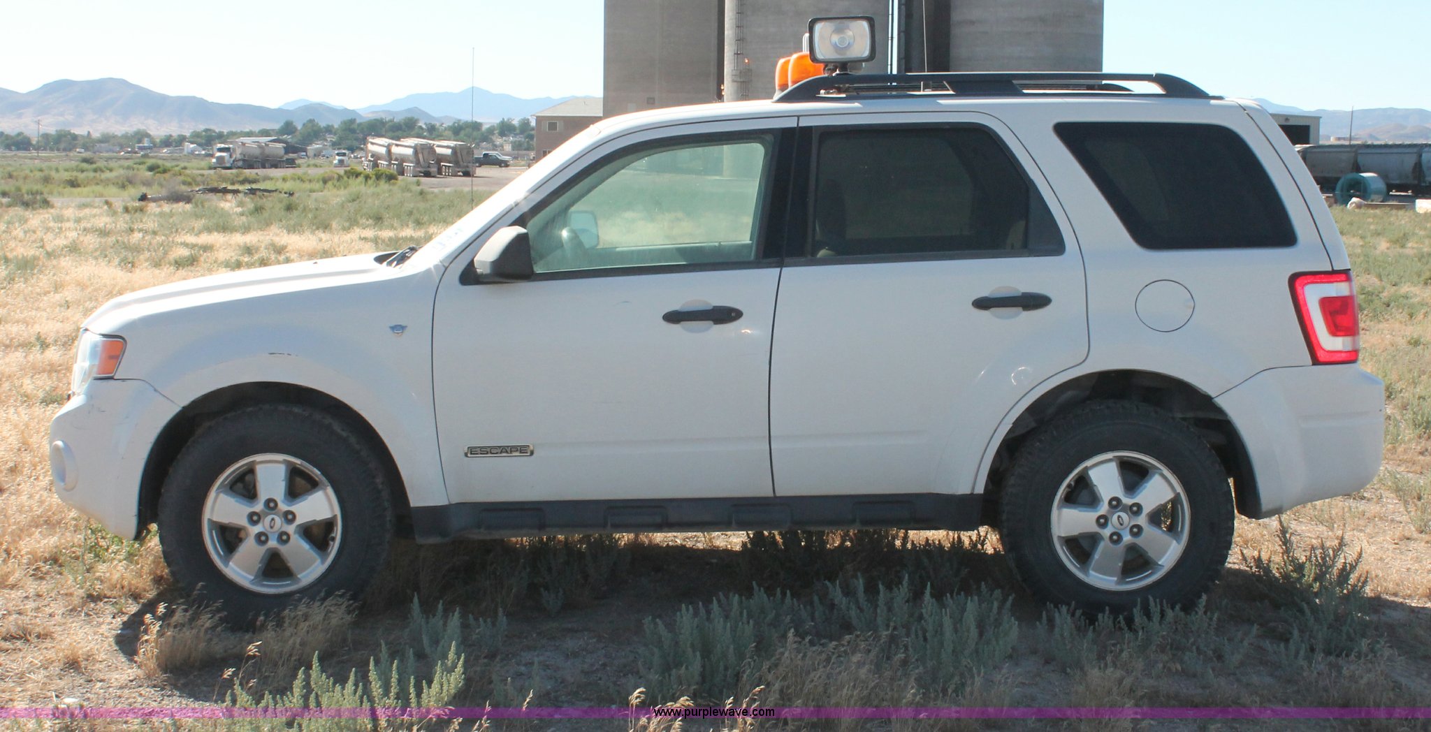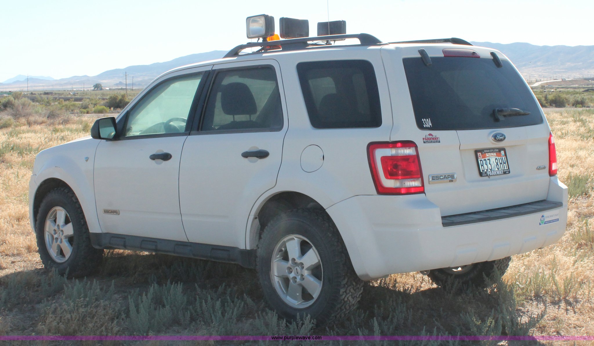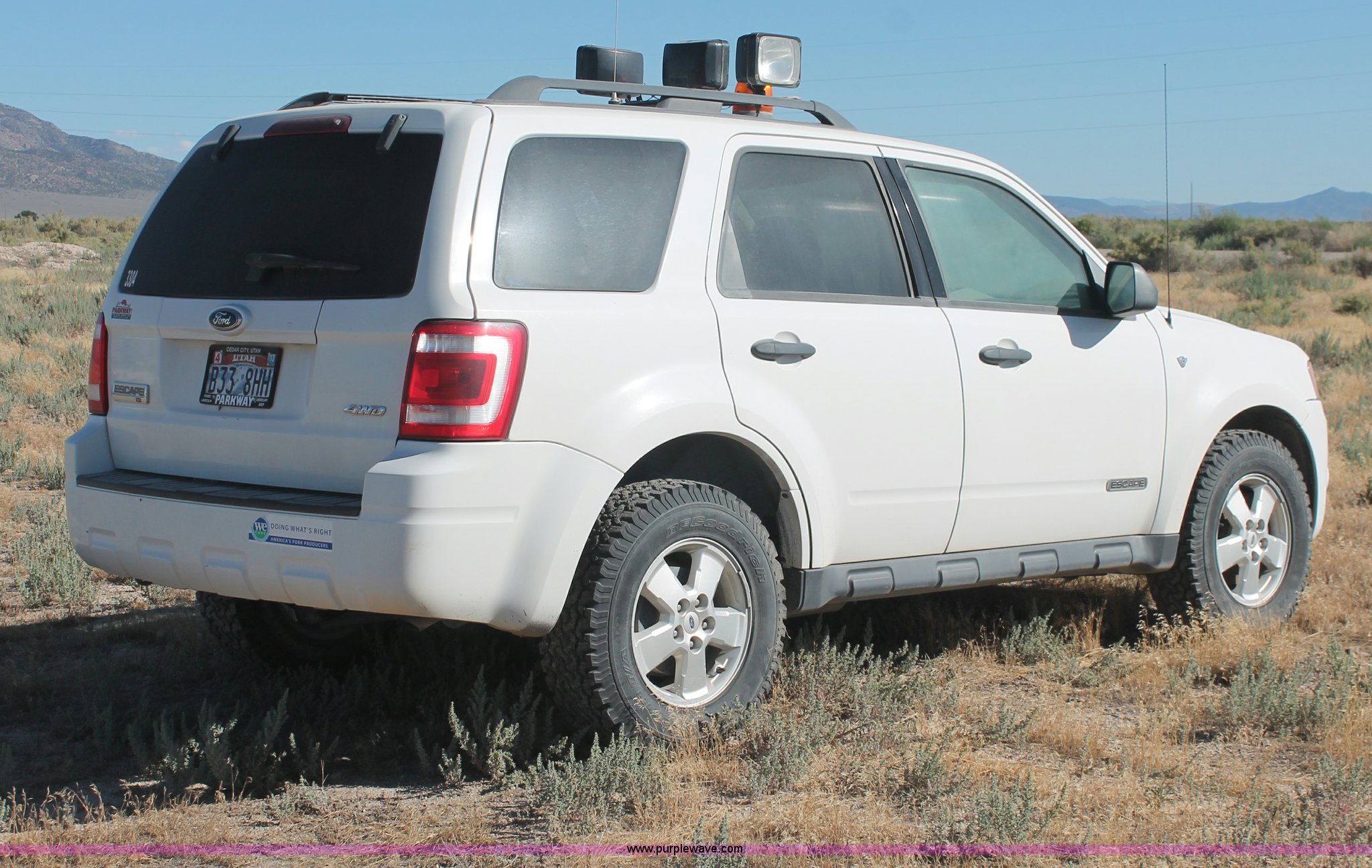 Purple Wave is selling a used Passenger Vehicle in Utah. This item is a 2008 Ford Escape XLT SUV with the following: 165,361 actual miles, 3.0L V6 SFI gas engine, Automatic transmission, Four wheel drive, AC and heat, Tilt, Cruise, AM/FM/CD, Auxiliary audio input, Power windows, locks, mirrors, and seats, Cloth interior, Traction control, Motorola CB radio, Roof mounted work lights, LT235/70R16 tires, Rear seat cushions in bag, Unit# 3304