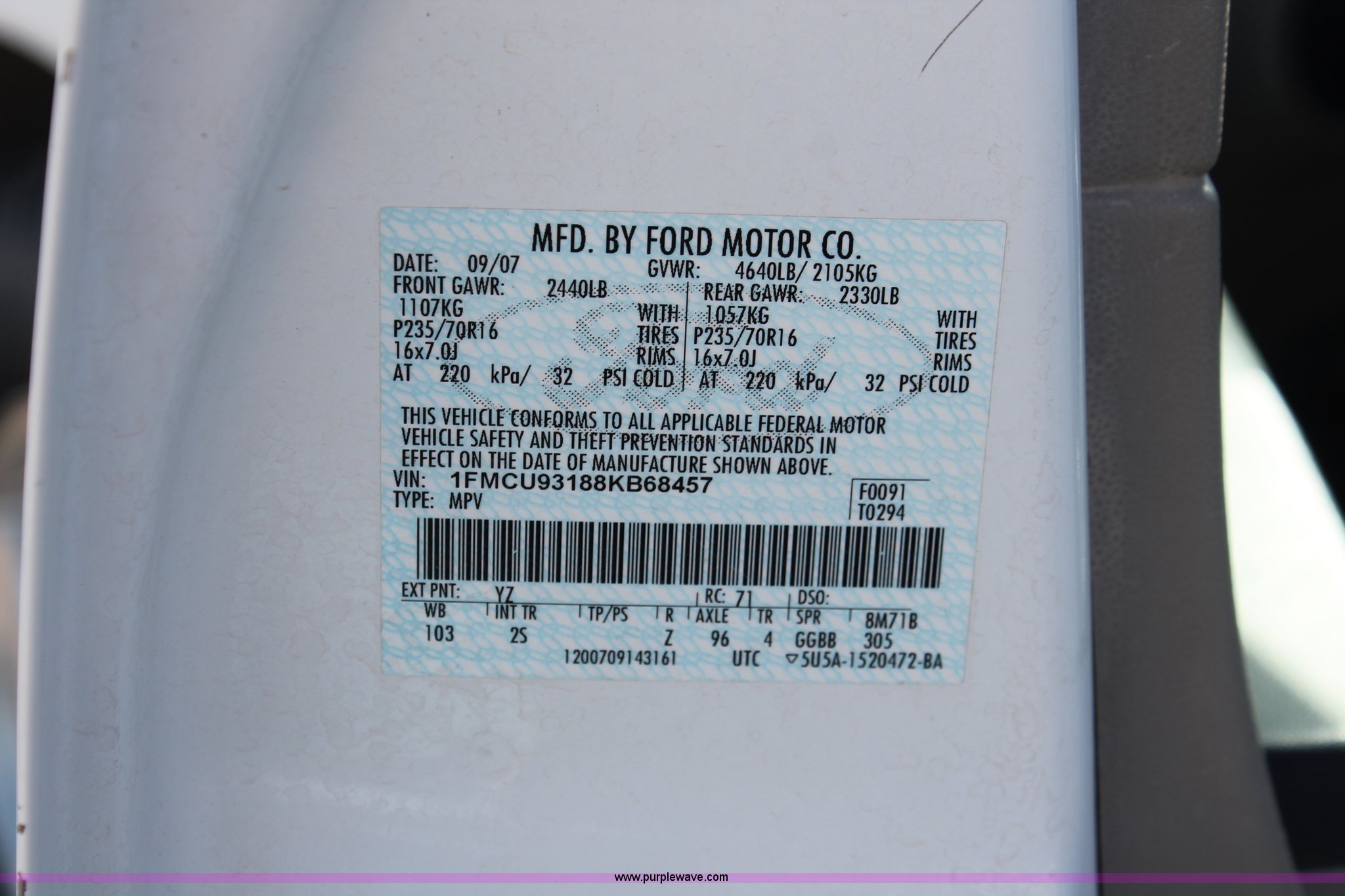 2008 Ford Escape XLT SUV. 165,361 actual miles, 3.0L V6 SFI gas engine, Automatic transmission, Four wheel drive, AC and heat, Tilt, Cruise, AM/FM/CD, Auxiliary audio input, Power windows, locks, mirrors, and seats, Cloth interior, Traction control, Motorola CB radio, Roof mounted work lights, LT235/70R16 tires, Rear seat cushions in bag, Unit# 3304. 1FMCU93188KB68457. Shipping quotes available. Murphy Brown, LLC. 341 S Main St. Milford, UT 84751