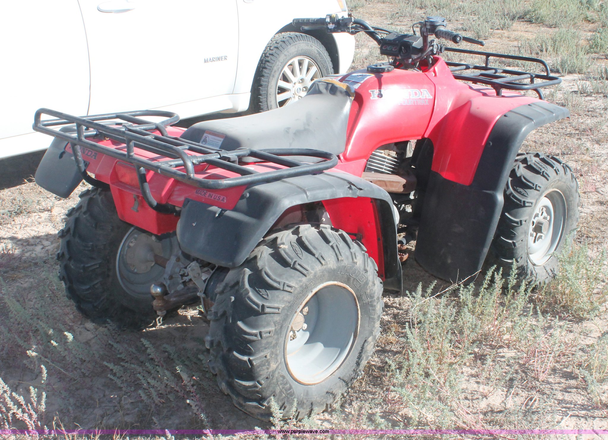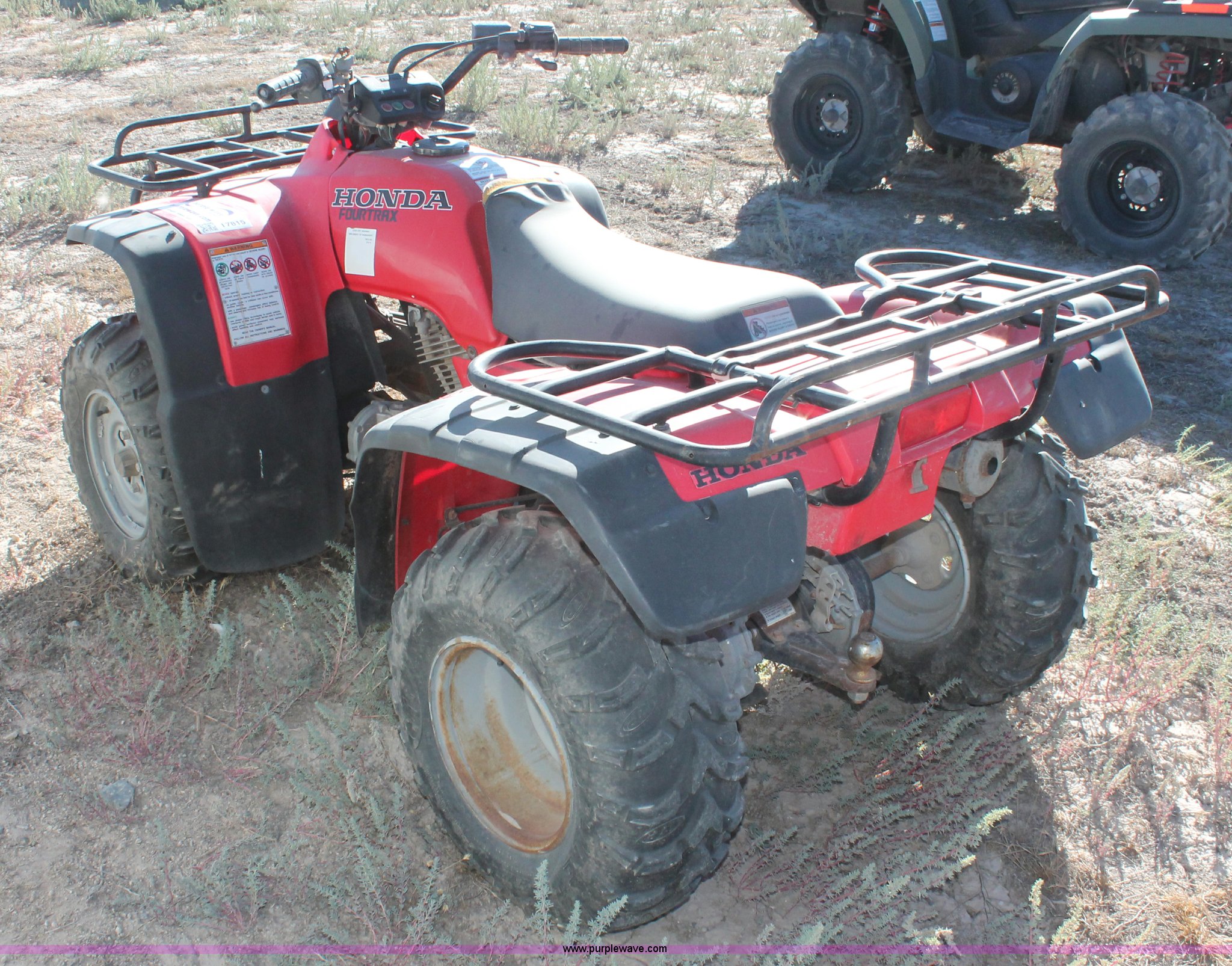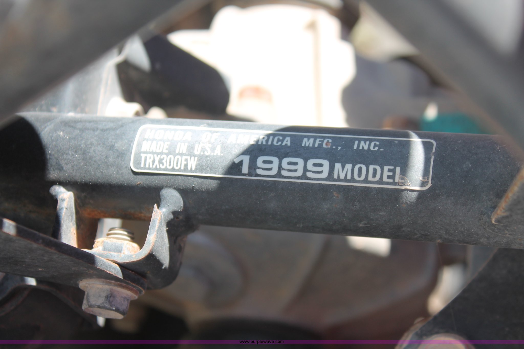 Purple Wave is selling a used ATV in Utah. This item is a 1999 Honda Fourtrax 300 ATV with the following: Unknown hours on meter, Honda 282cc four stroke gas engine, Air cooled, Four wheel drive, Electric and kick start, Double wishbone front suspension, Single shock sling arm rear suspension, Drum brakes, 850 lbs towing capacity, 3.3 gallon fuel tank, Front and rear bumper racks, 2" ball, 24x9-11 tires