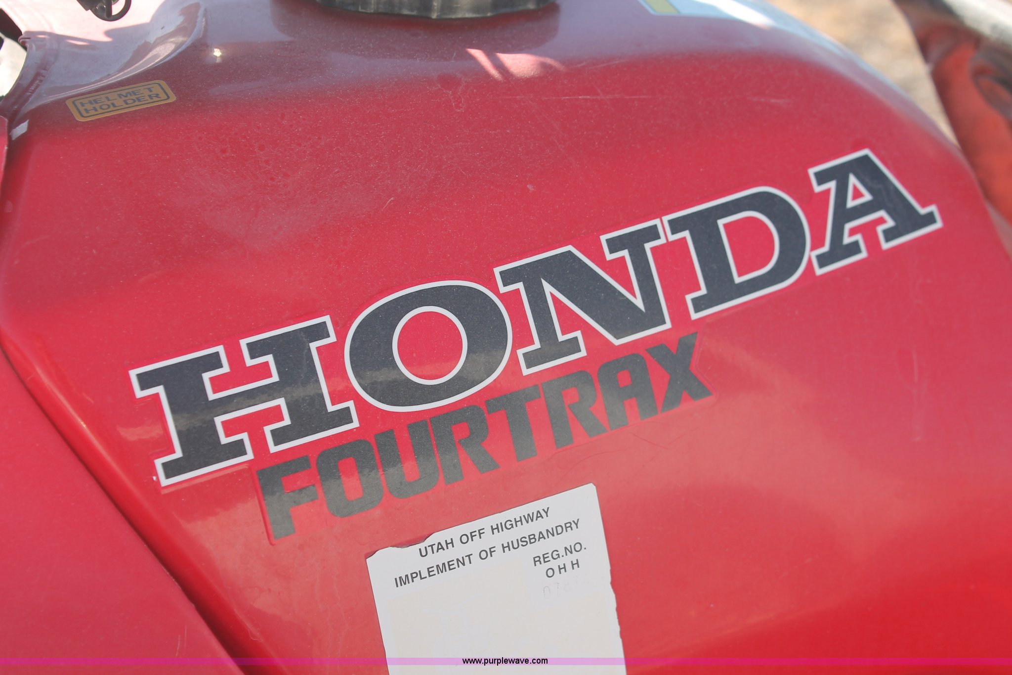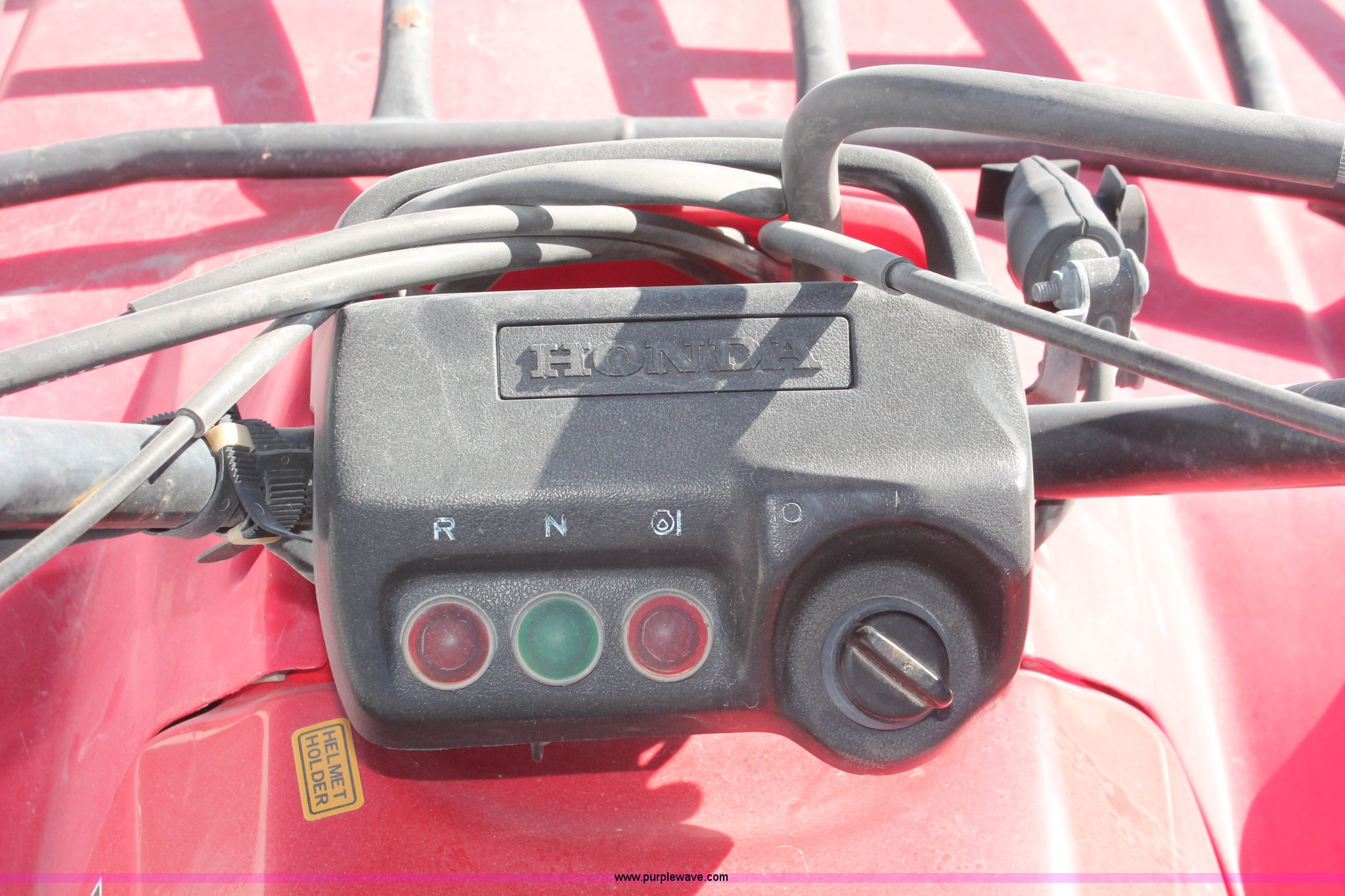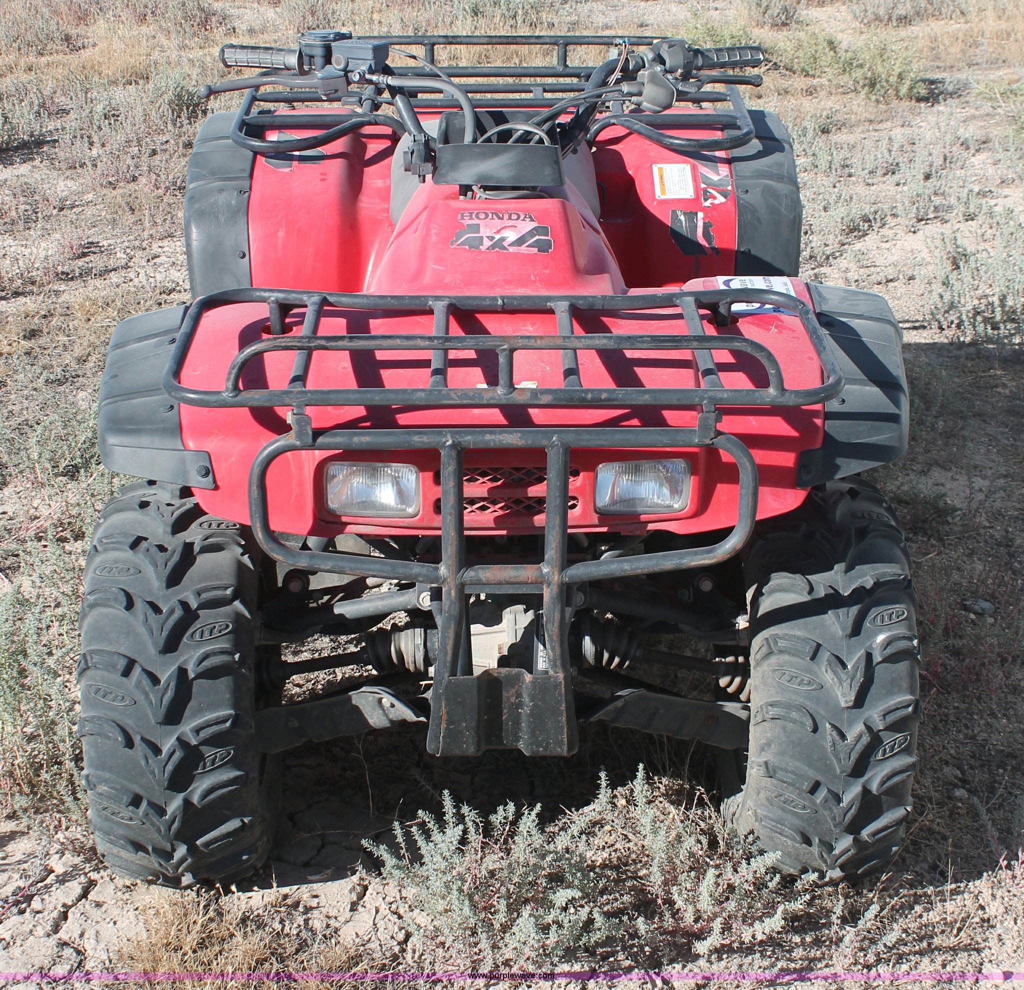Purple Wave is selling a used ATV in Utah. This item is a 1999 Honda Fourtrax 300 ATV with the following: Unknown hours on meter, Honda 282cc four stroke gas engine, Air cooled, Four wheel drive, Electric and kick start, Double wishbone front suspension, Single shock sling arm rear suspension, Drum brakes, 850 lbs towing capacity, 3.3 gallon fuel tank, Front and rear bumper racks, 2" ball, 24x9-11 tires
