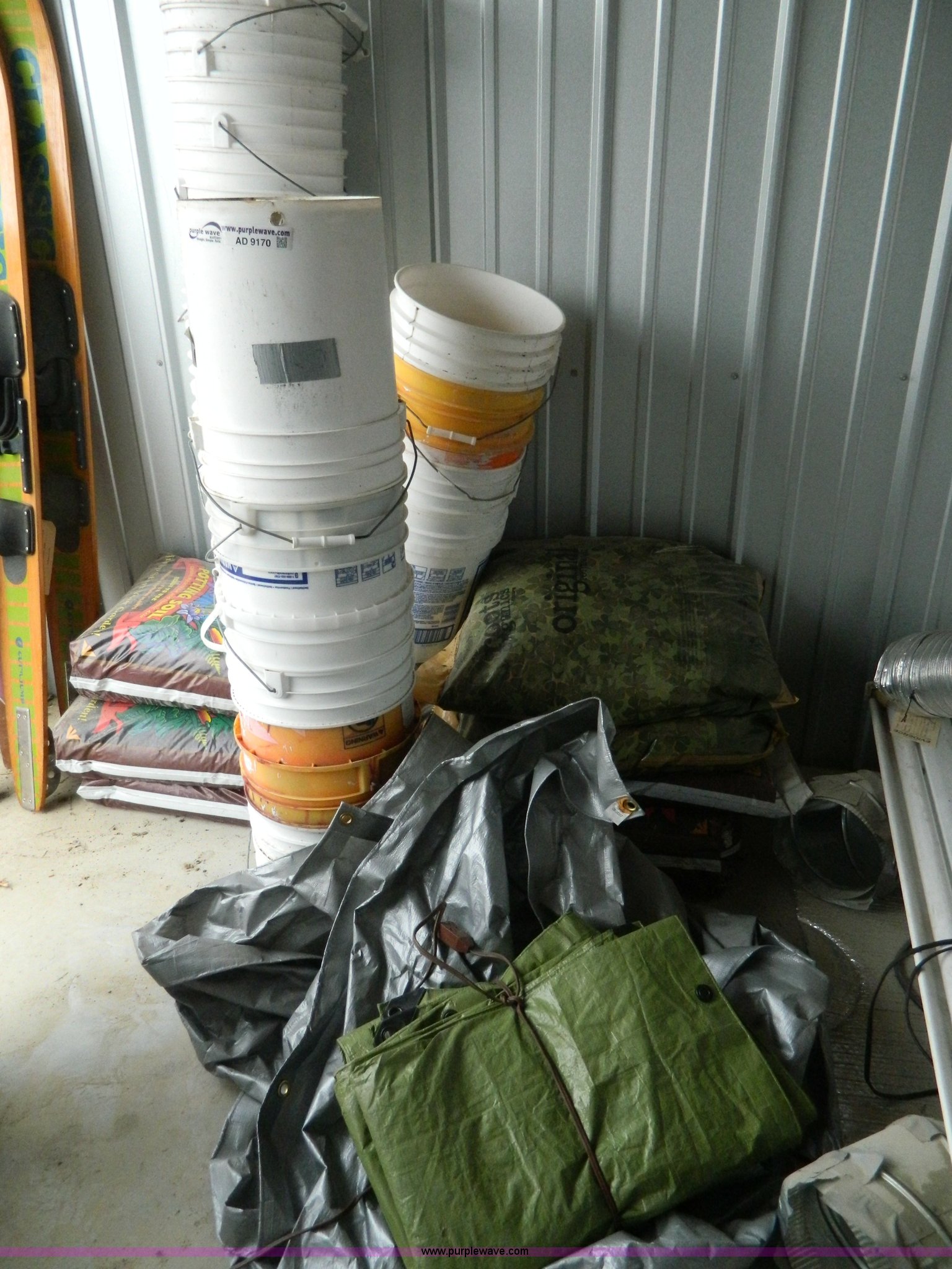 Assorted items. Plastic buckets, Tarps, (7) bags of potting soil. Unit seized. Shipping quotes available. Mitchell County Sheriff Department. 3075 B Kansas 9 Highway. Beloit, KS 67420