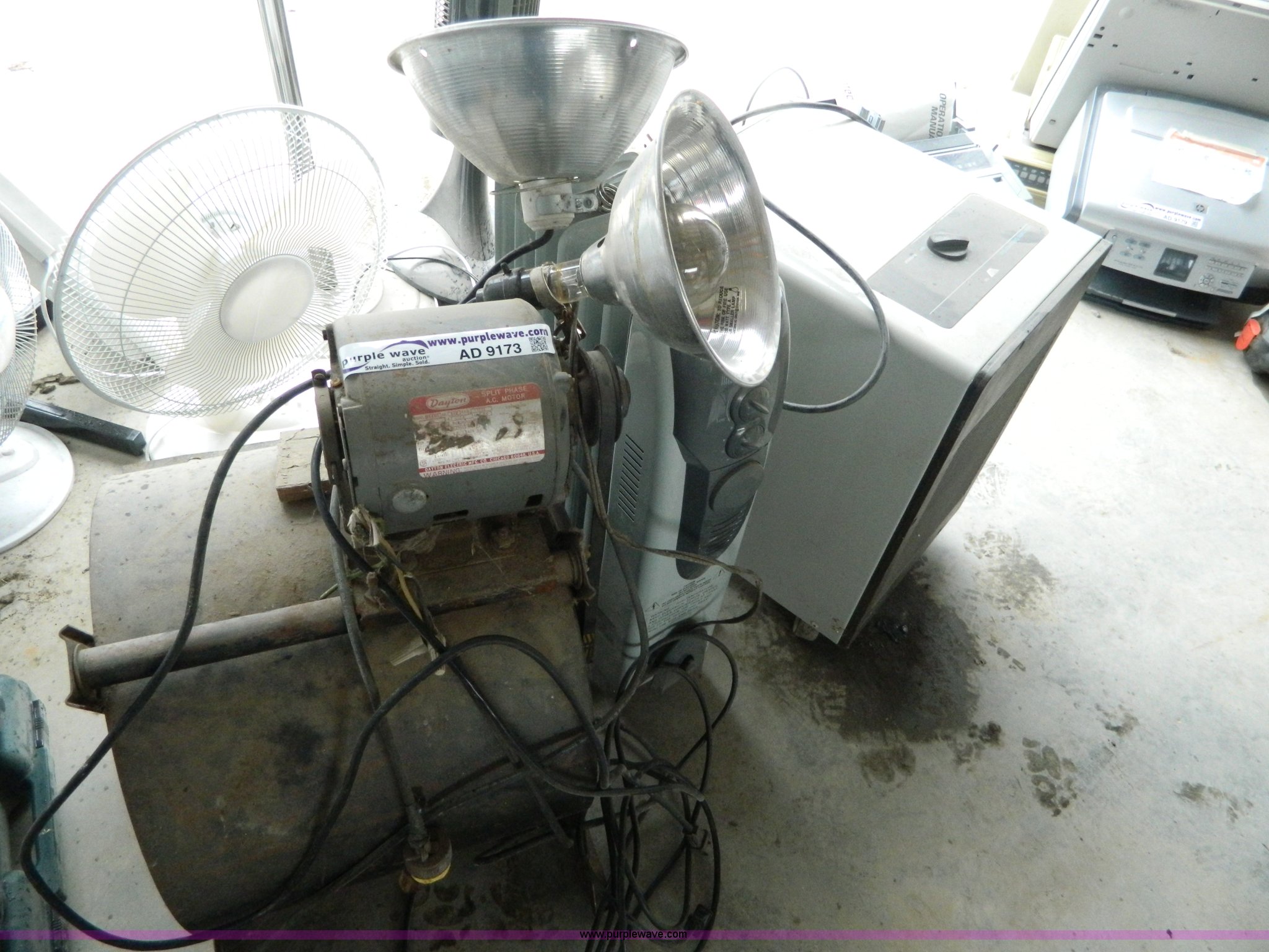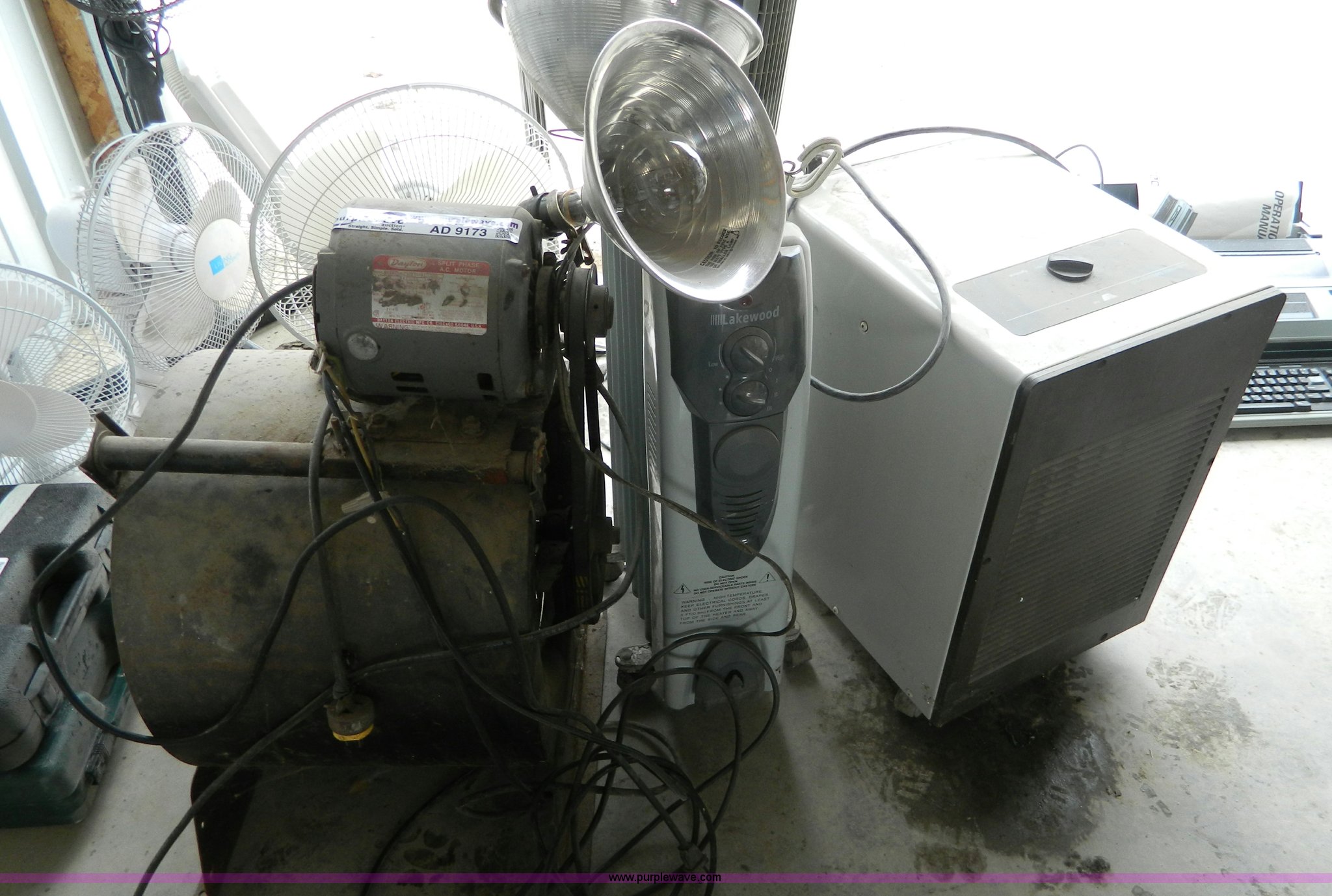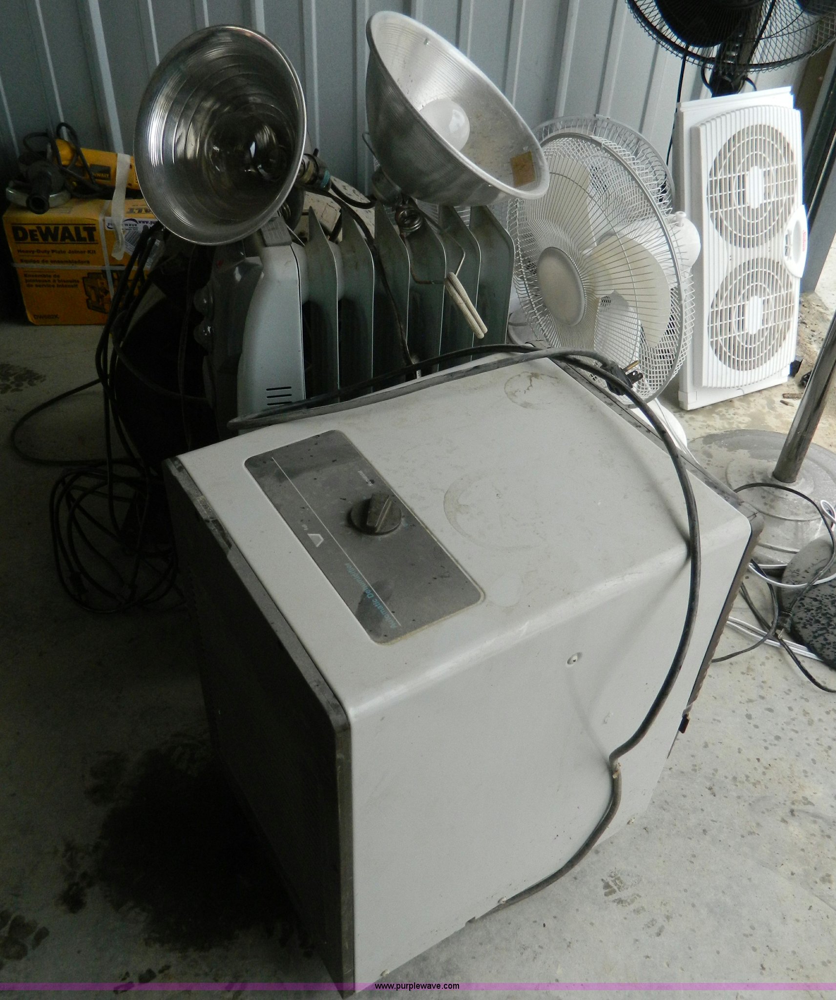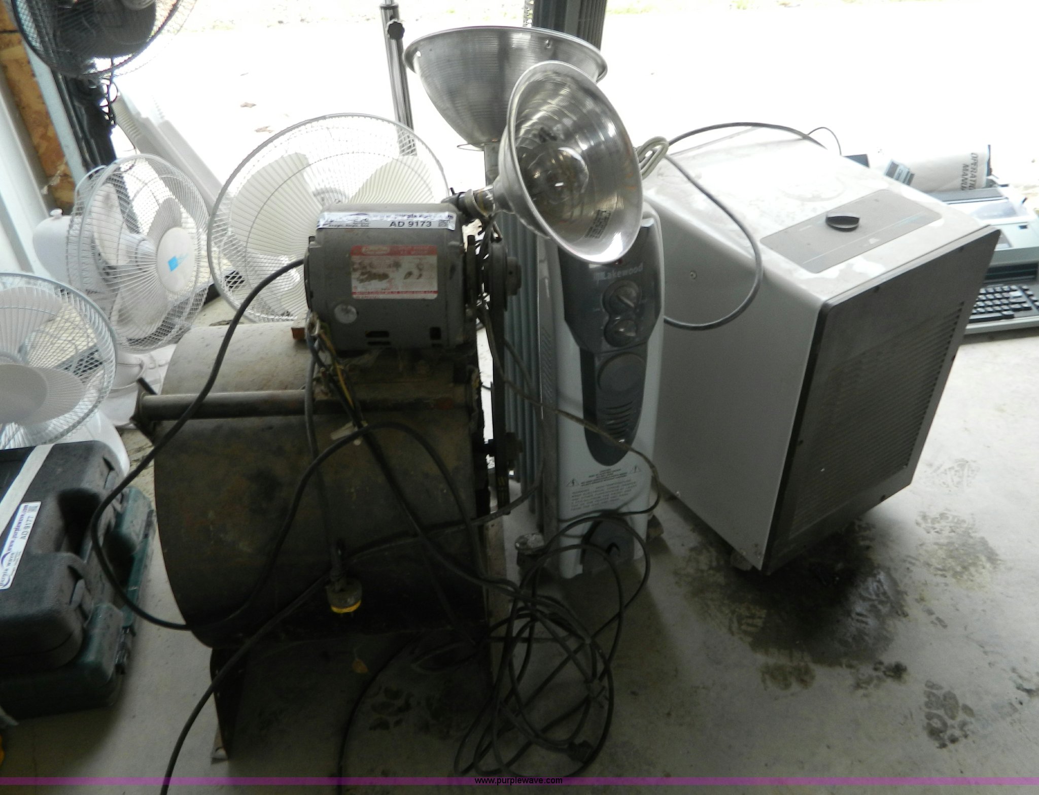 Purple Wave is selling a used Tools in Kansas. This item is a Assorted items with the following: Squrell cage fan, Dehumidifier, Oil heater, Broder lamps