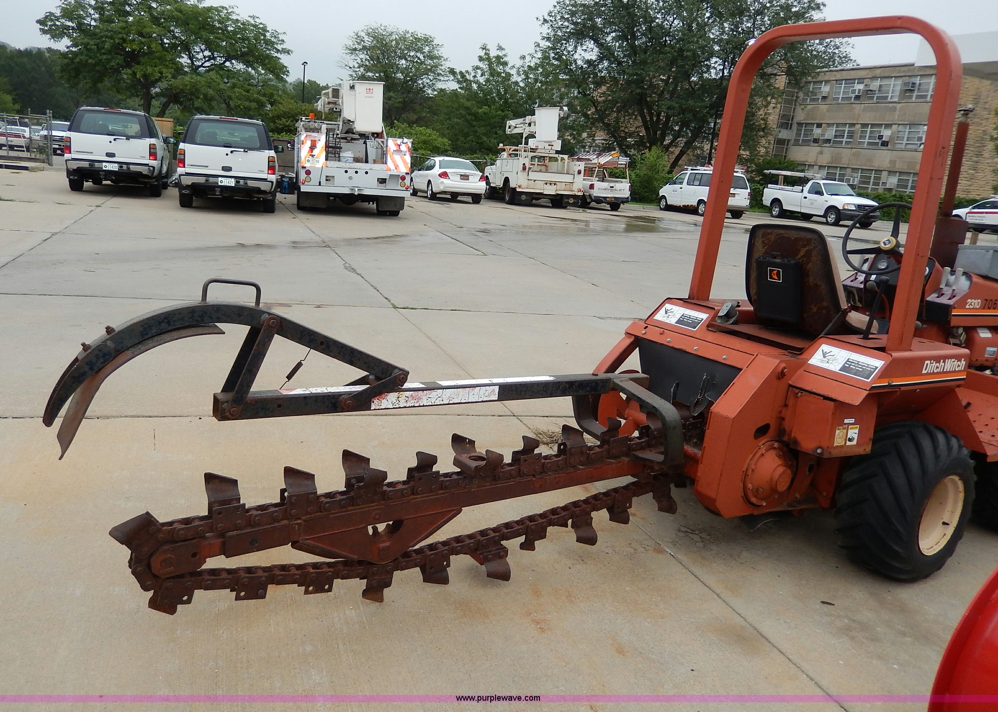 Purple Wave is selling a used Trencher or Rock Saw in Kansas. This item is a 1988 Ditch Witch 2310 trencher with the following: 280 hours on meter, Wisconsin VH4D gas engine, 57" front blade, Bottom edge worn, Front hydraulics, 6' boom, 7'L x 9"W trench capacity, 26 x 12-12 tires, Recently replaced front tire, Serial SE0853
