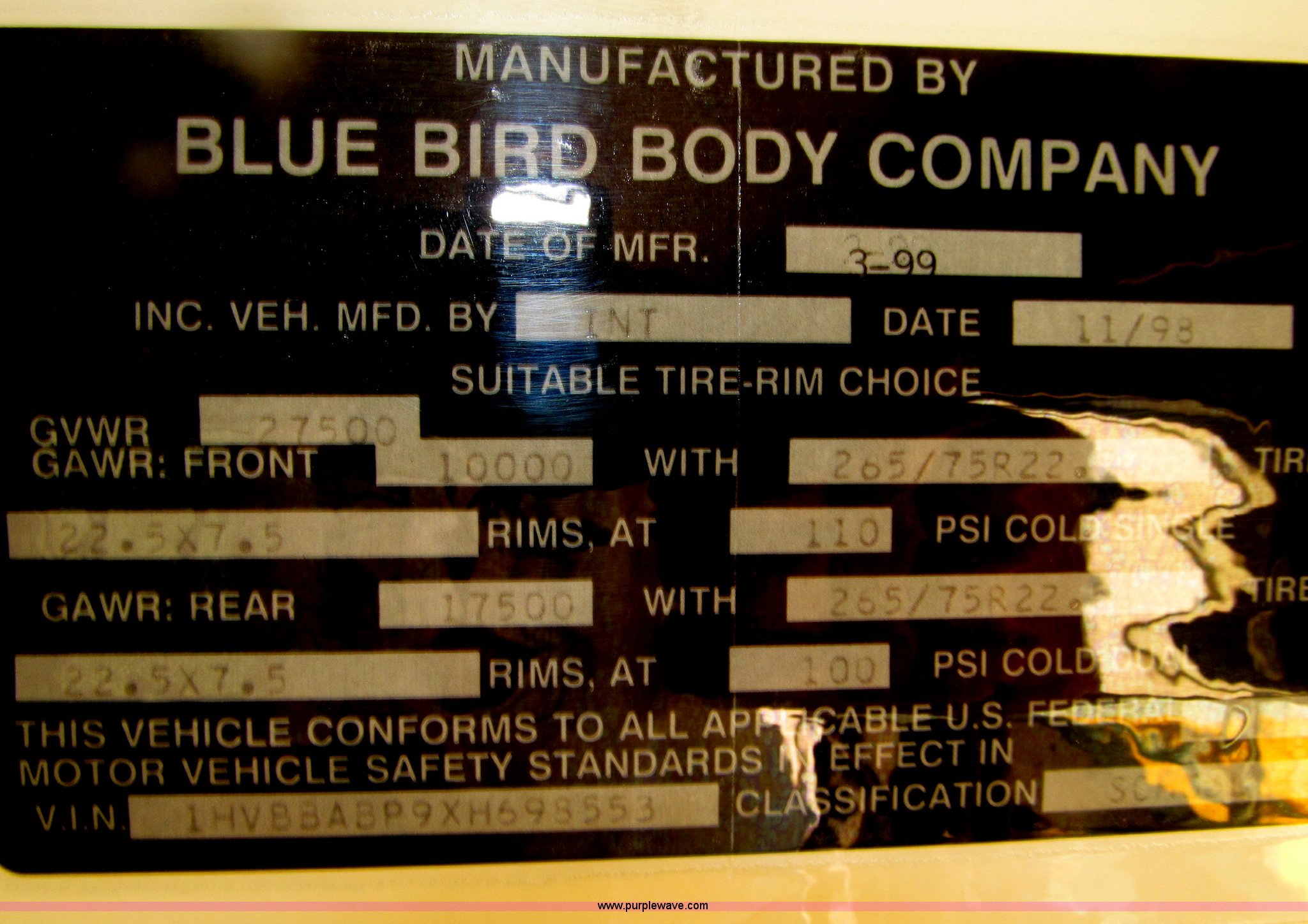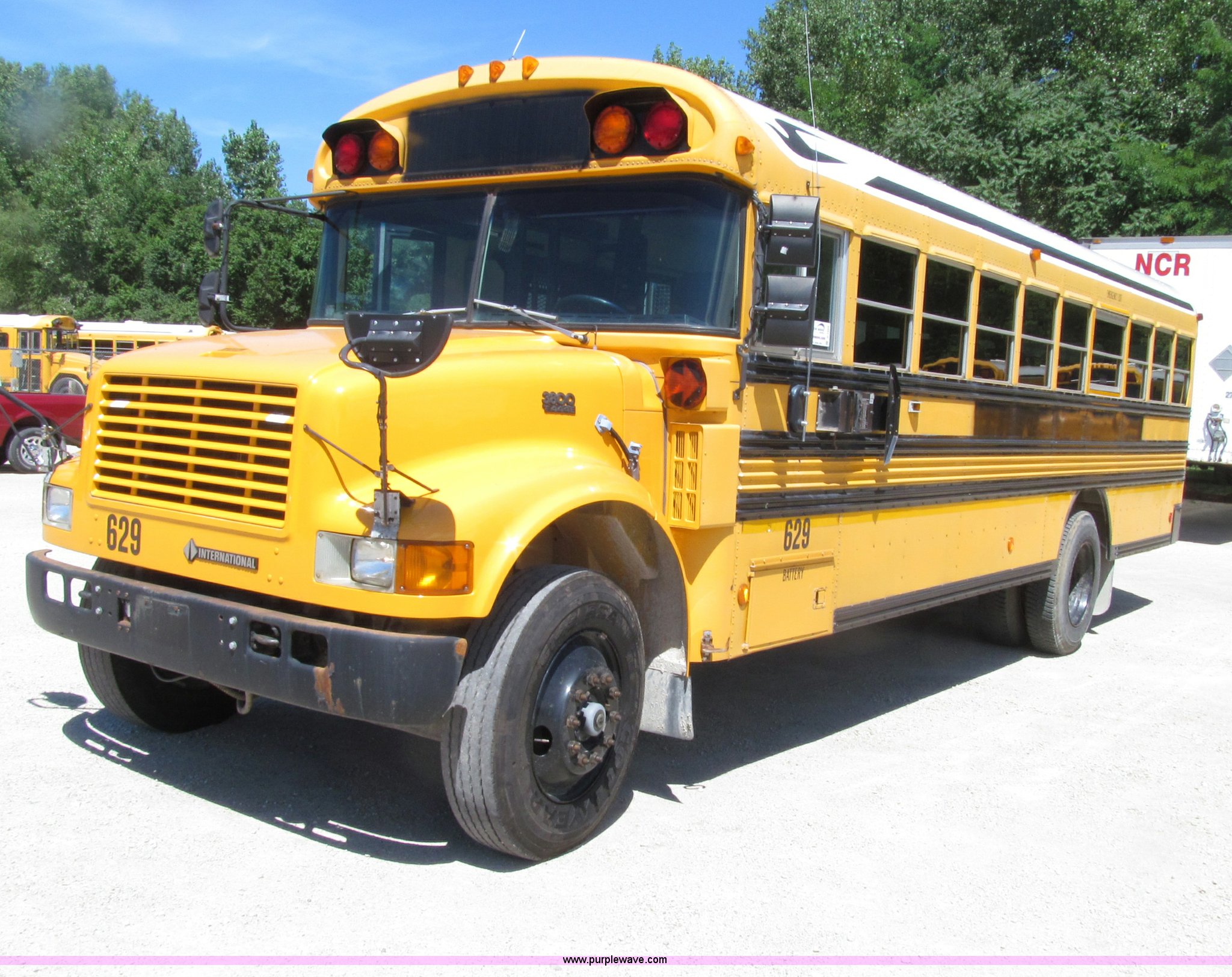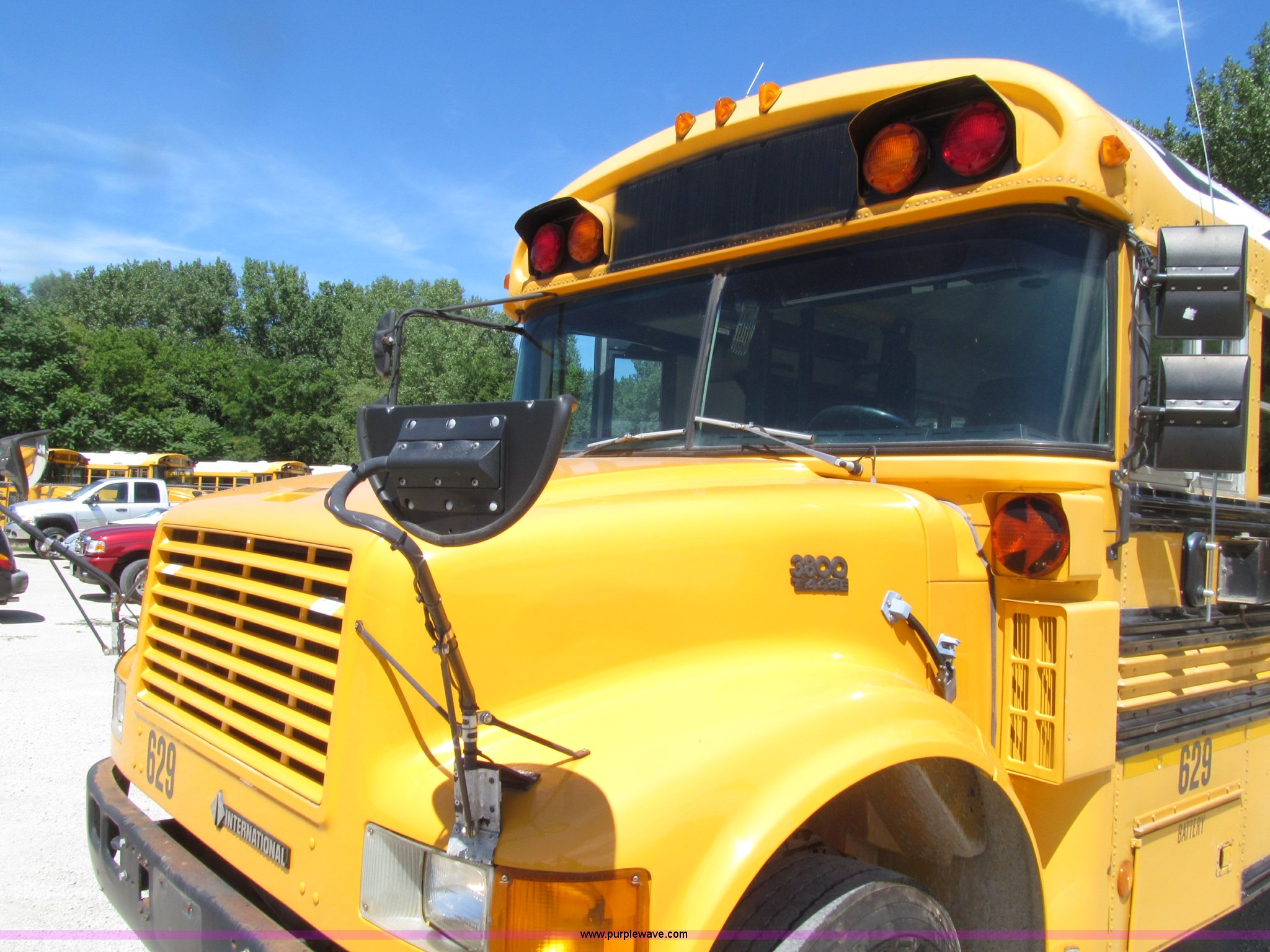 Purple Wave is selling a used Bus in Iowa. This item is a 1999 International 3800 school bus with the following: 116,177 actual miles, 10,037 hours on meter, International T444 7.3L V8 turbo diesel engine, Automatic transmission, Heat, Tilt, Cruise, AM/FM/cassette, Manual windows, Vinyl interior, 36 passenger capacity, (3) emergency egress, Braun wheelchair lift, Model L208U64ARS, Bluebird body No. M89920, Spring suspension, 10R22.5 tires, Silent witness camera is not included, Unit# 629