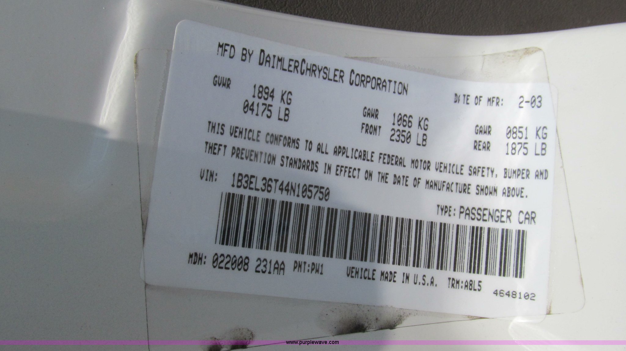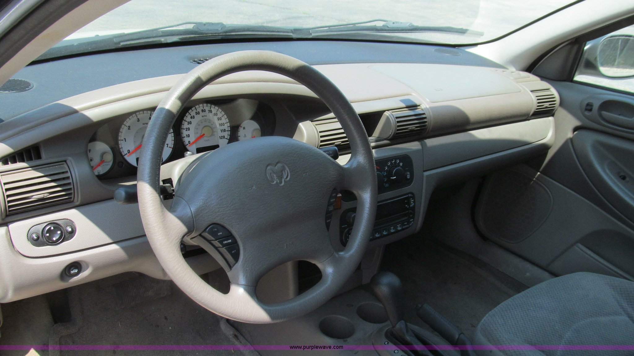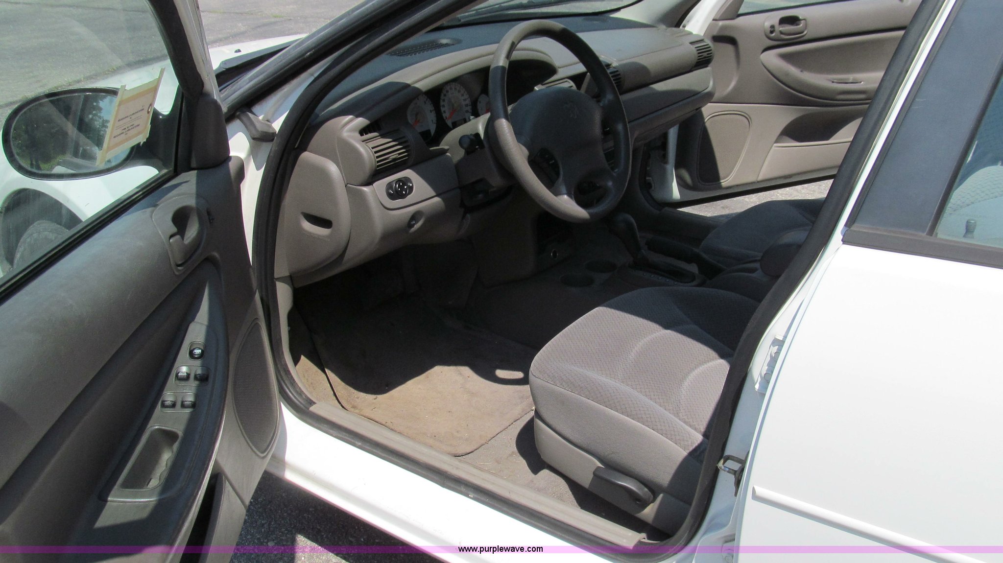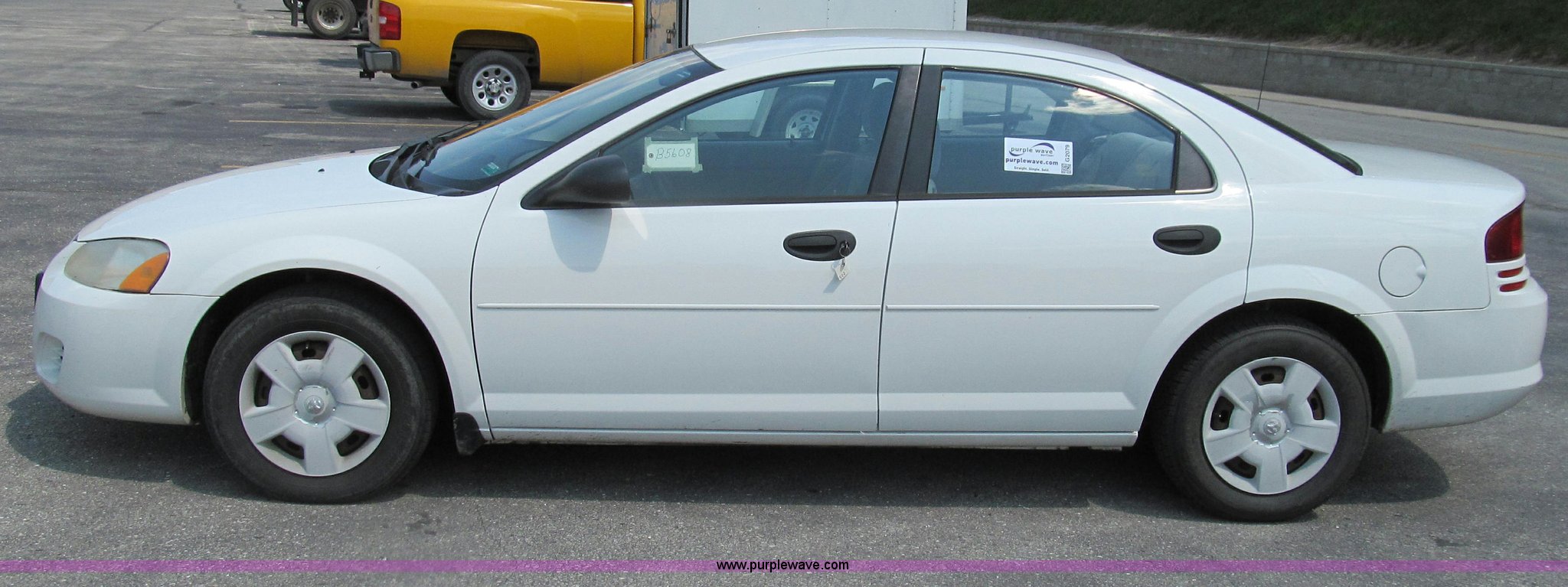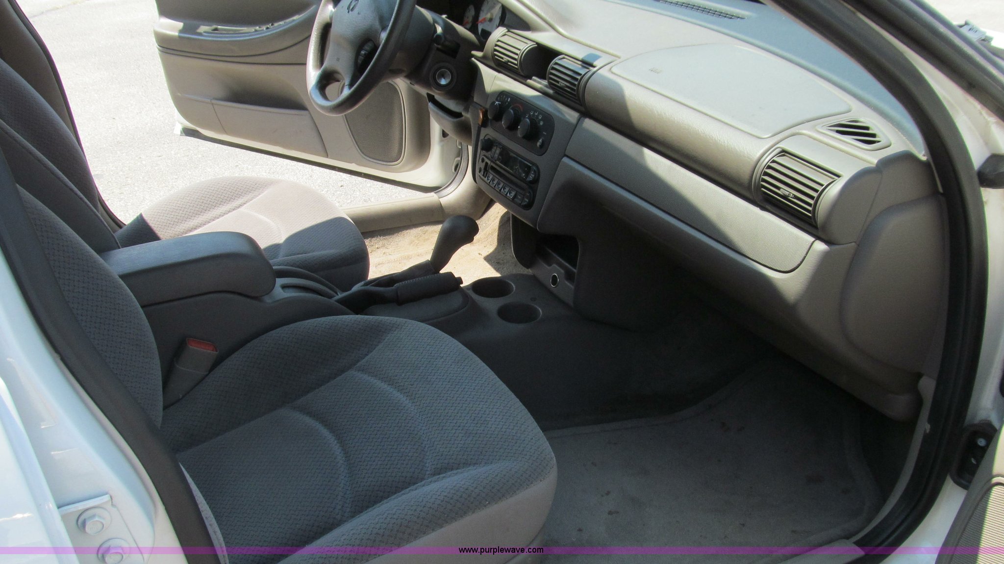 Purple Wave is selling a used Passenger Vehicle in Missouri. This item is a 2004 Dodge Stratus SE with the following: 118,552 miles on odometer, 2.7L V6 DOHC 24V FFV gas engine, Automatic transmission, AC and heat, Tilt, Cruise, AM/FM/CD, Power windows, locks, and mirrors, Cloth interior, 205/65R15 tires, Chipped windshield, Scratches and chips, Passenger side interior door molding broken, Headliner stained, MoDOT ID B5608