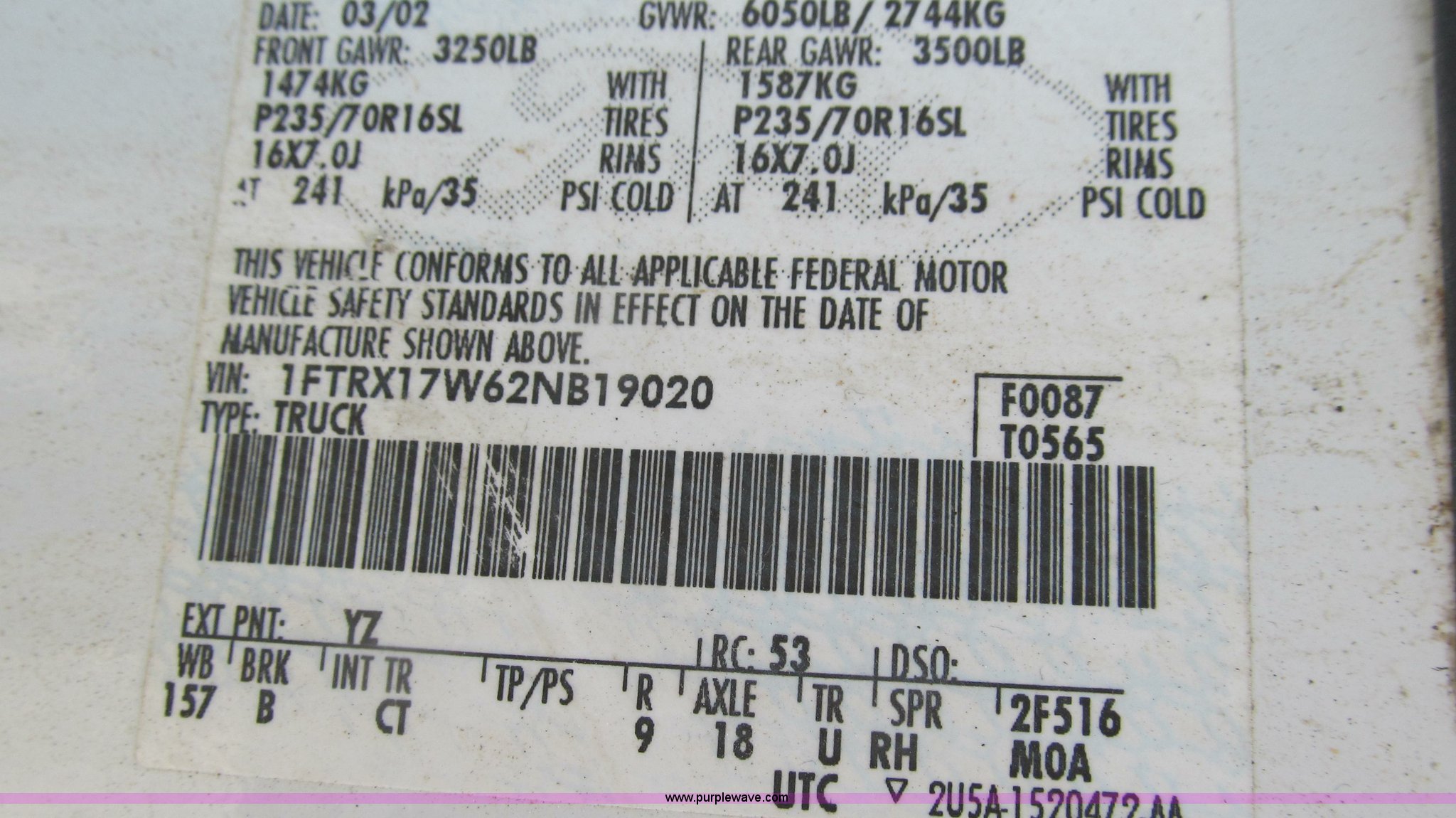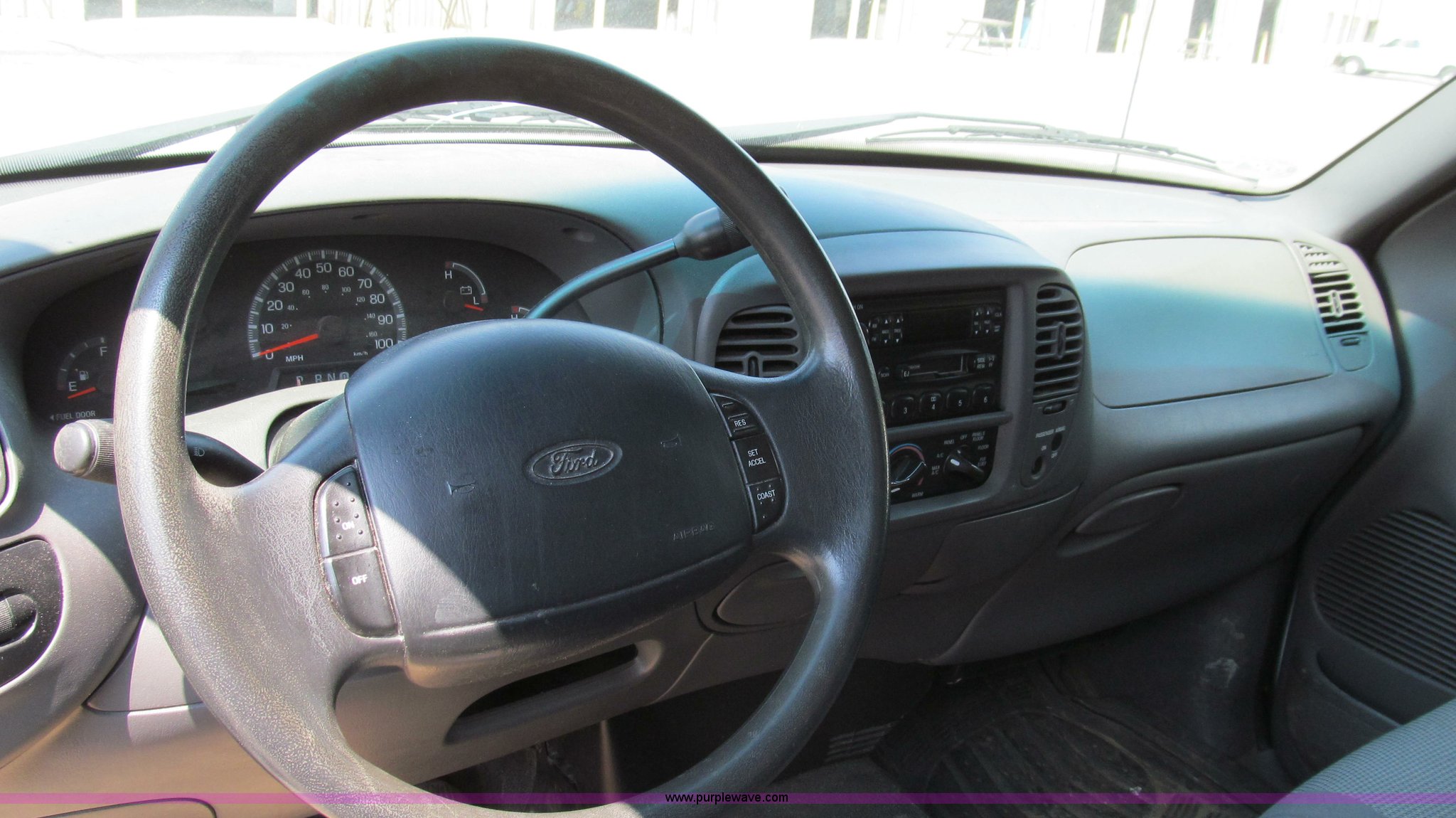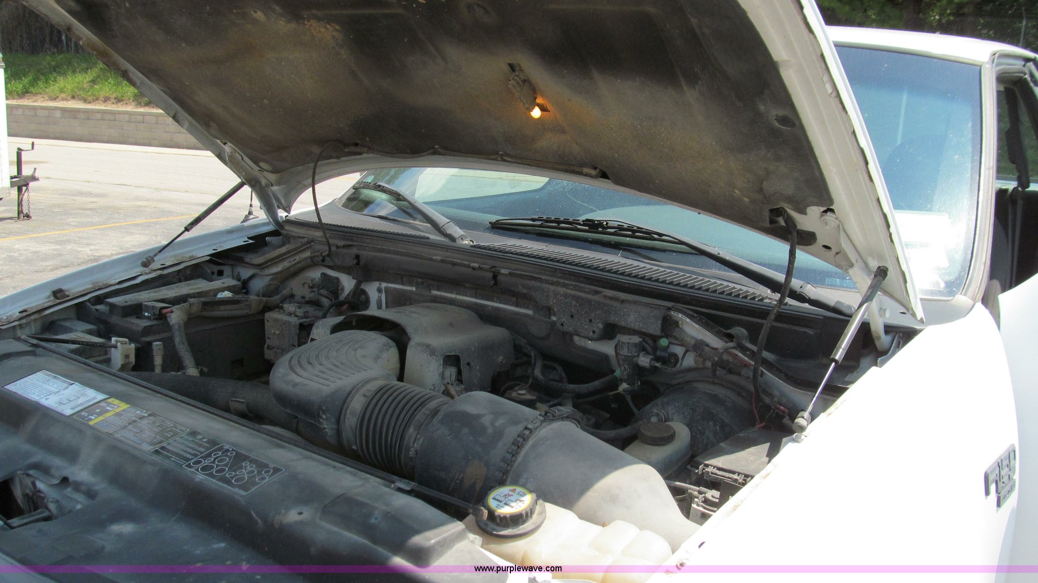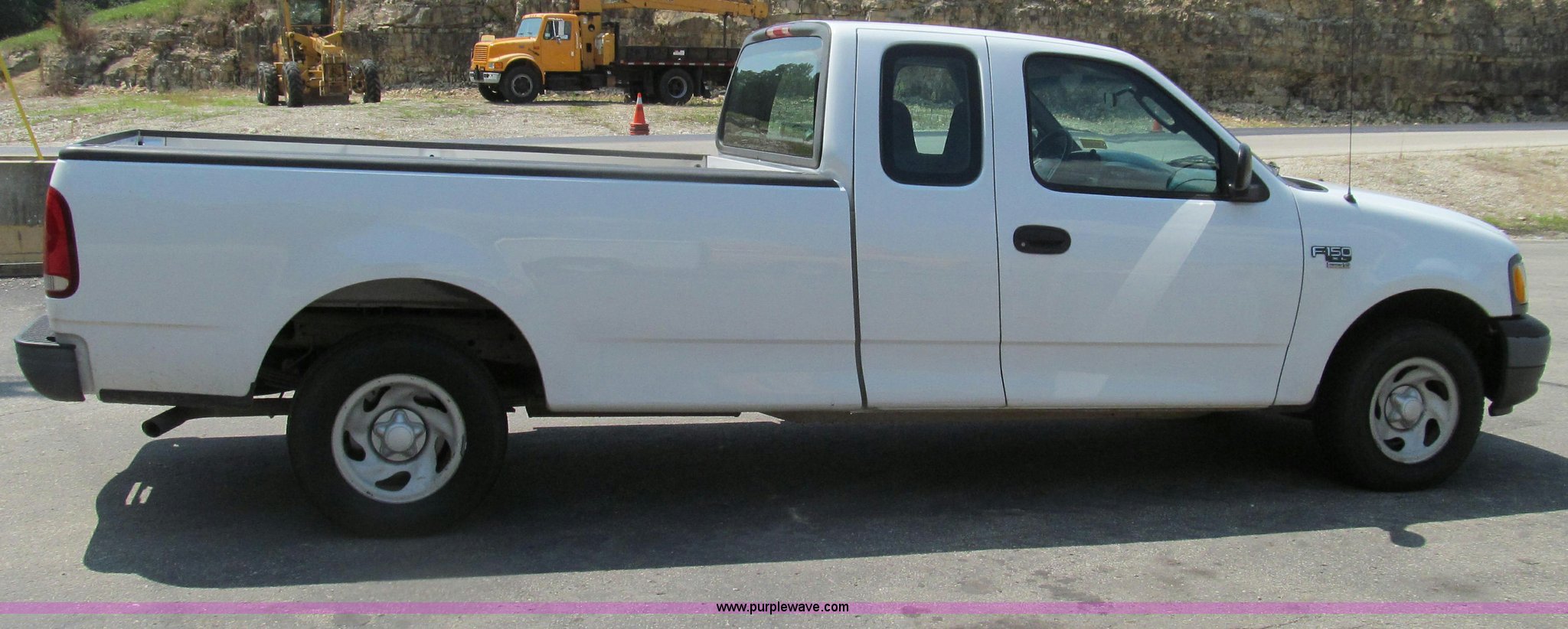 Purple Wave is selling a used Passenger Vehicle in Missouri. This item is a 2002 Ford F150 XL SuperCab pickup truck with the following: 159,468 miles on odometer, 4.6L V8 SOHC 16V gas engine, Automatic transmission, AC and heat, Tilt, Cruise, AM/FM/cassette, Manual windows and locks, Cloth interior, Long bed, Trailer wiring, 235/70R16 tires, Cracked windshield, Heater core leaks, Scratches and chips, MoDOT ID B5345