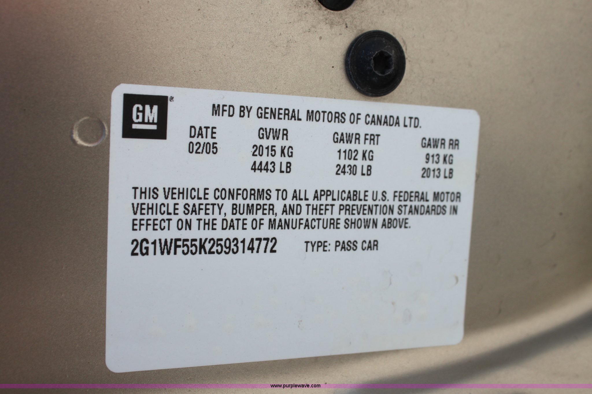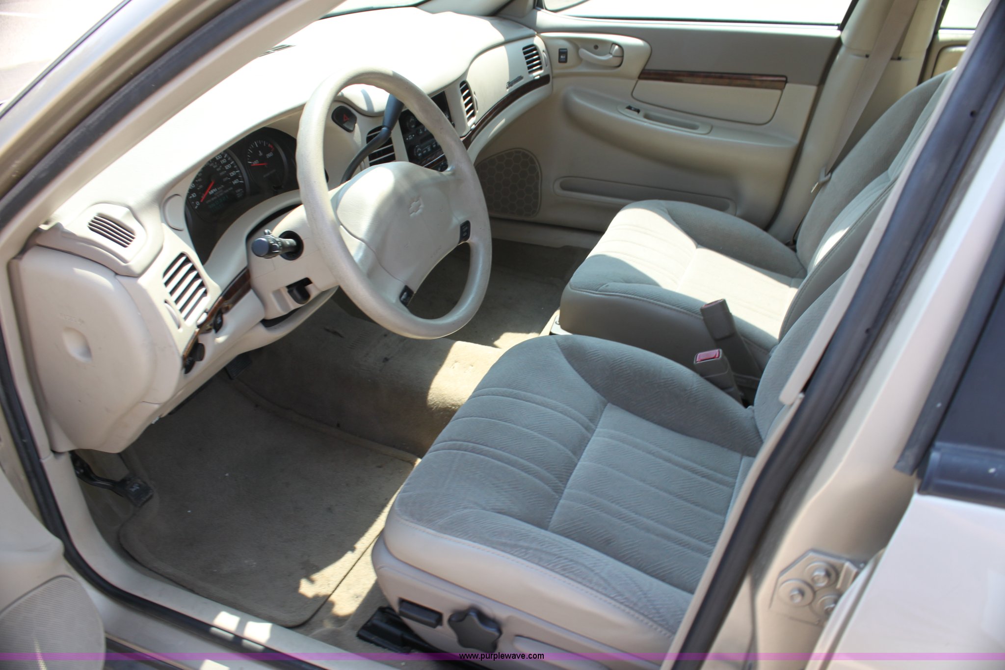 Purple Wave is selling a used Passenger Vehicle in Kansas. This item is a 2005 Chevrolet Impala with the following: 117,591 miles on odometer, 3.8L V6 OHV 12V gas engine, Automatic transmission, AC and heat, Tilt, Cruise, AM/FM/cassette, Power windows, locks, and mirrors, Cloth interior, Interior/exterior cosmetic damage